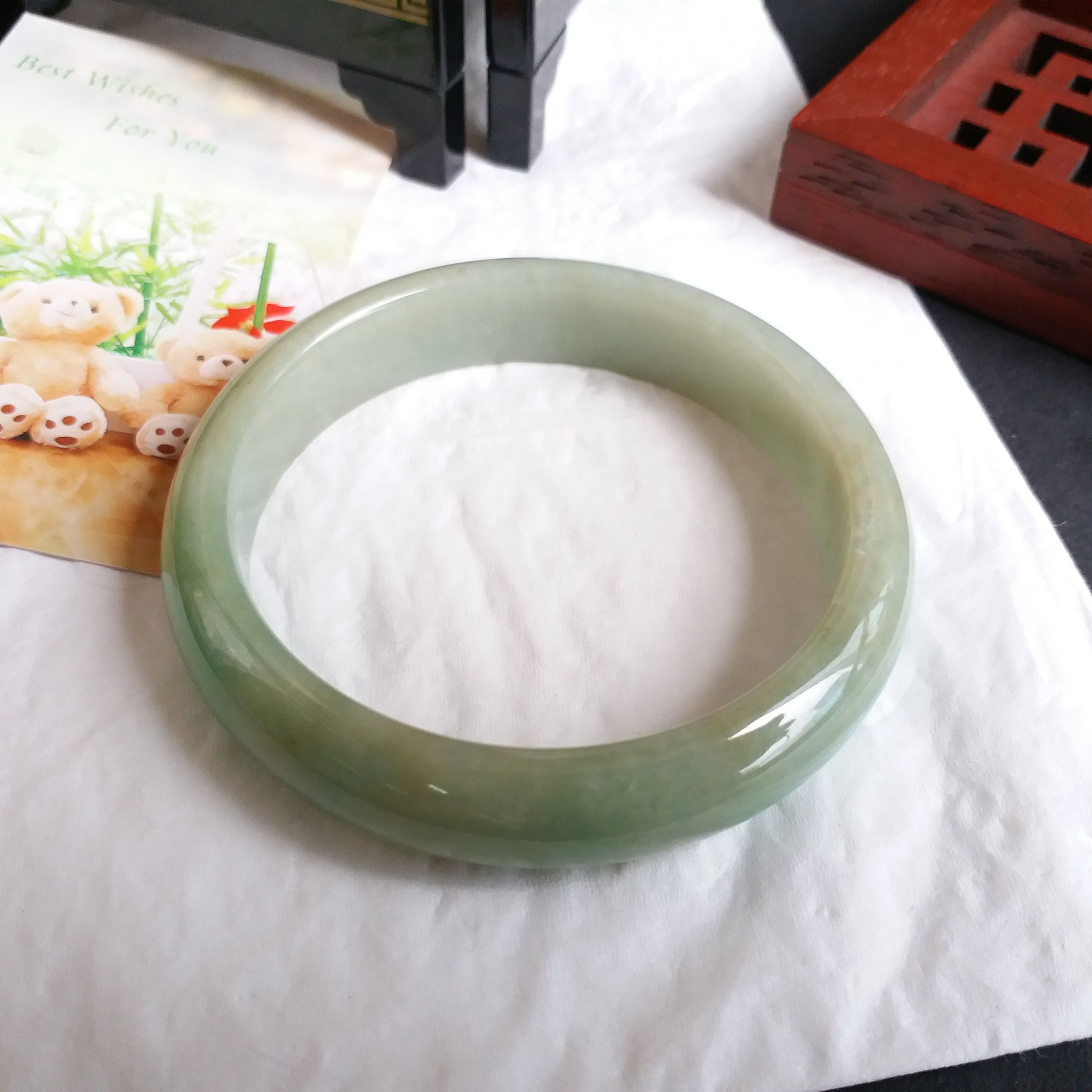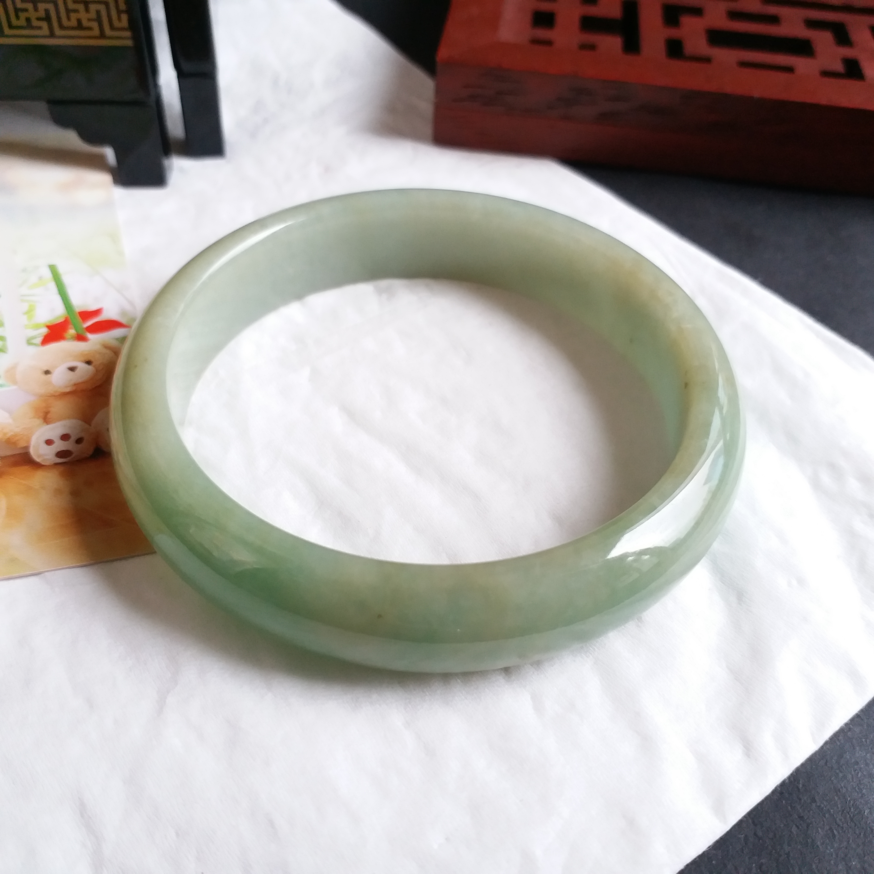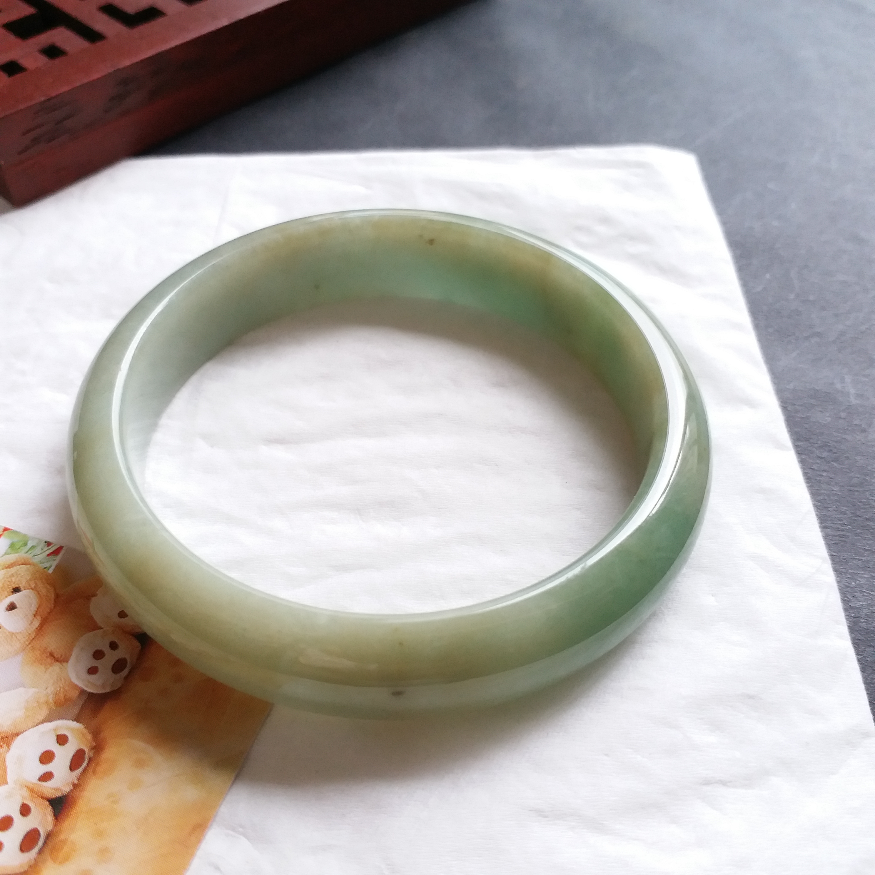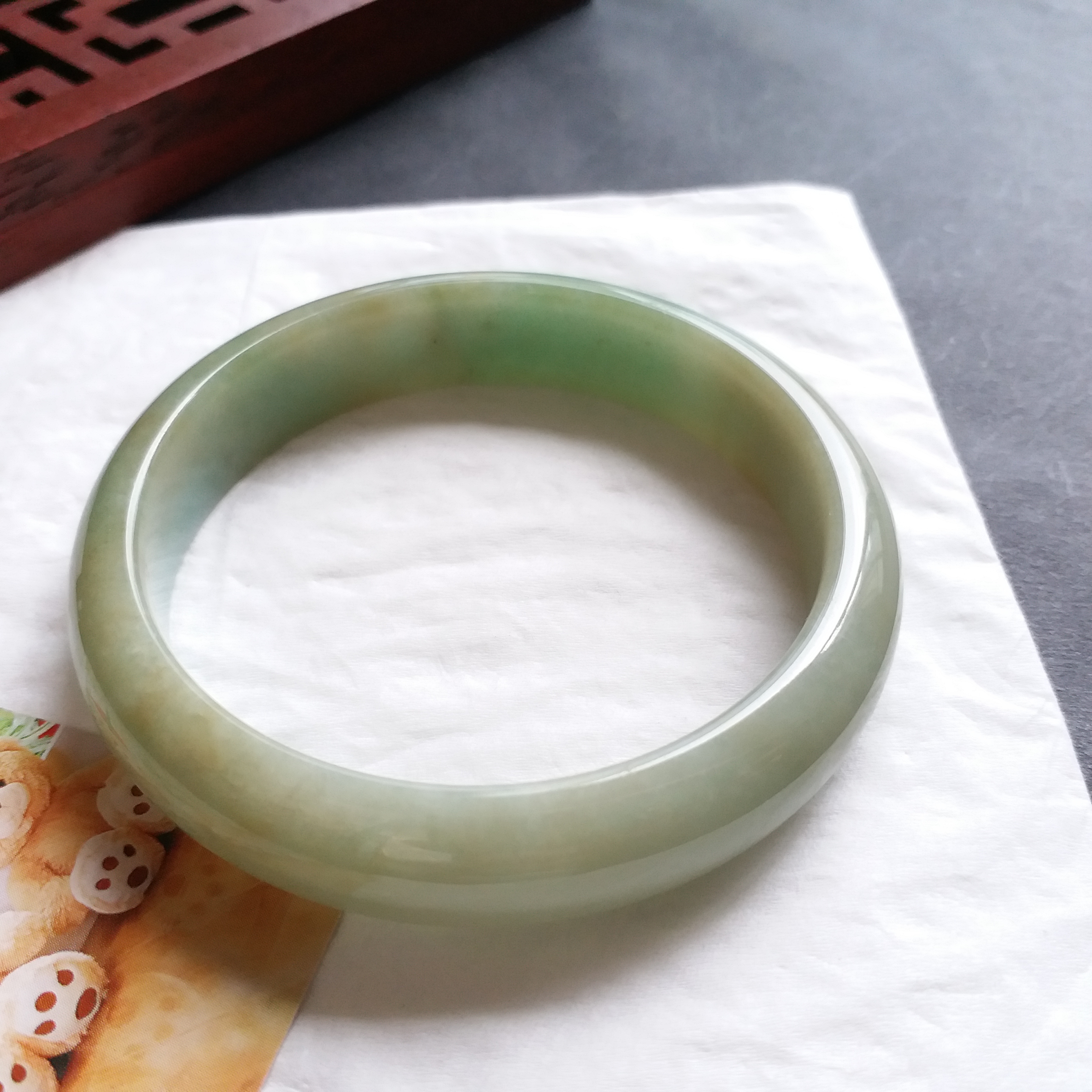 J1082 冰糯蜜黃果綠玉鐲 55.6mm (1.48)