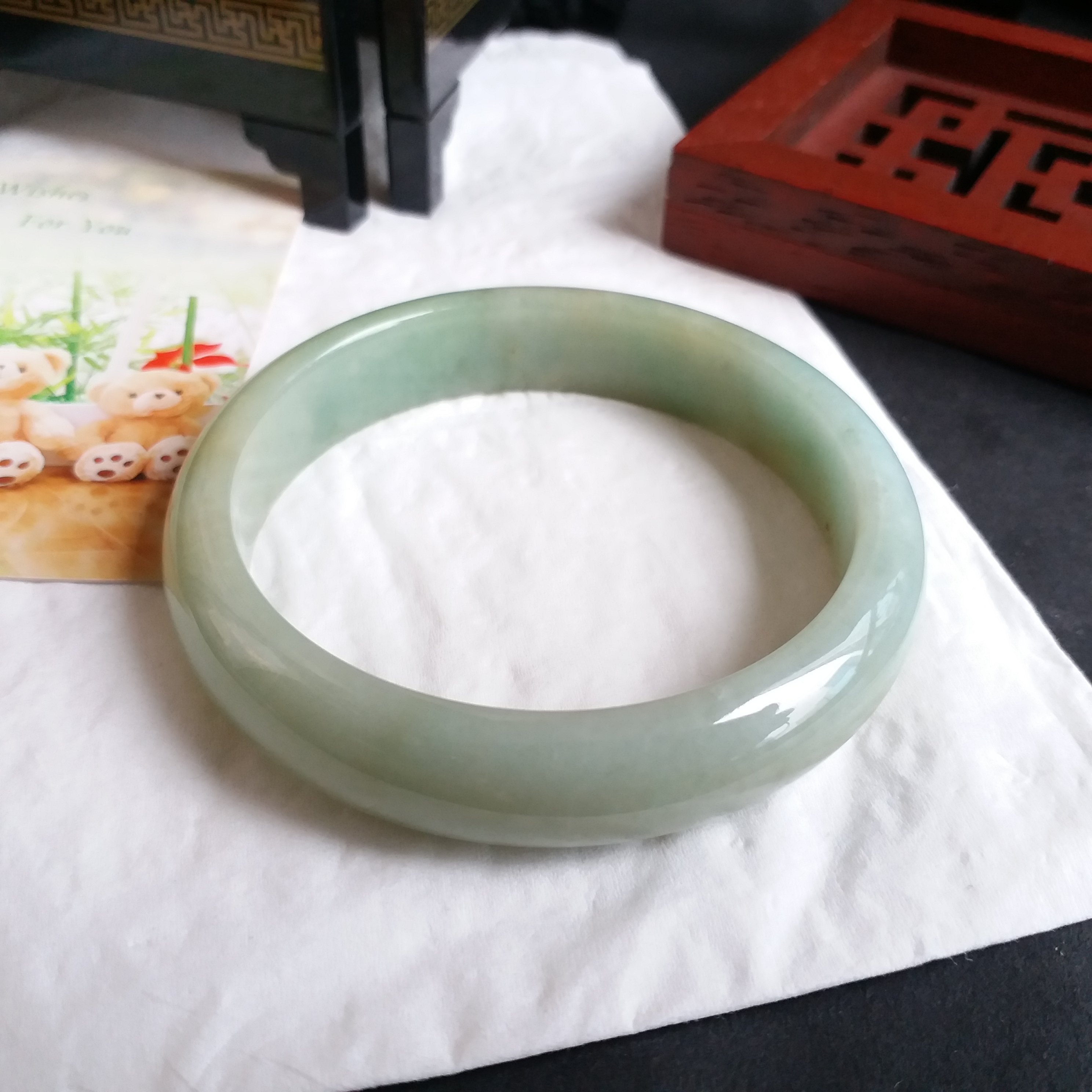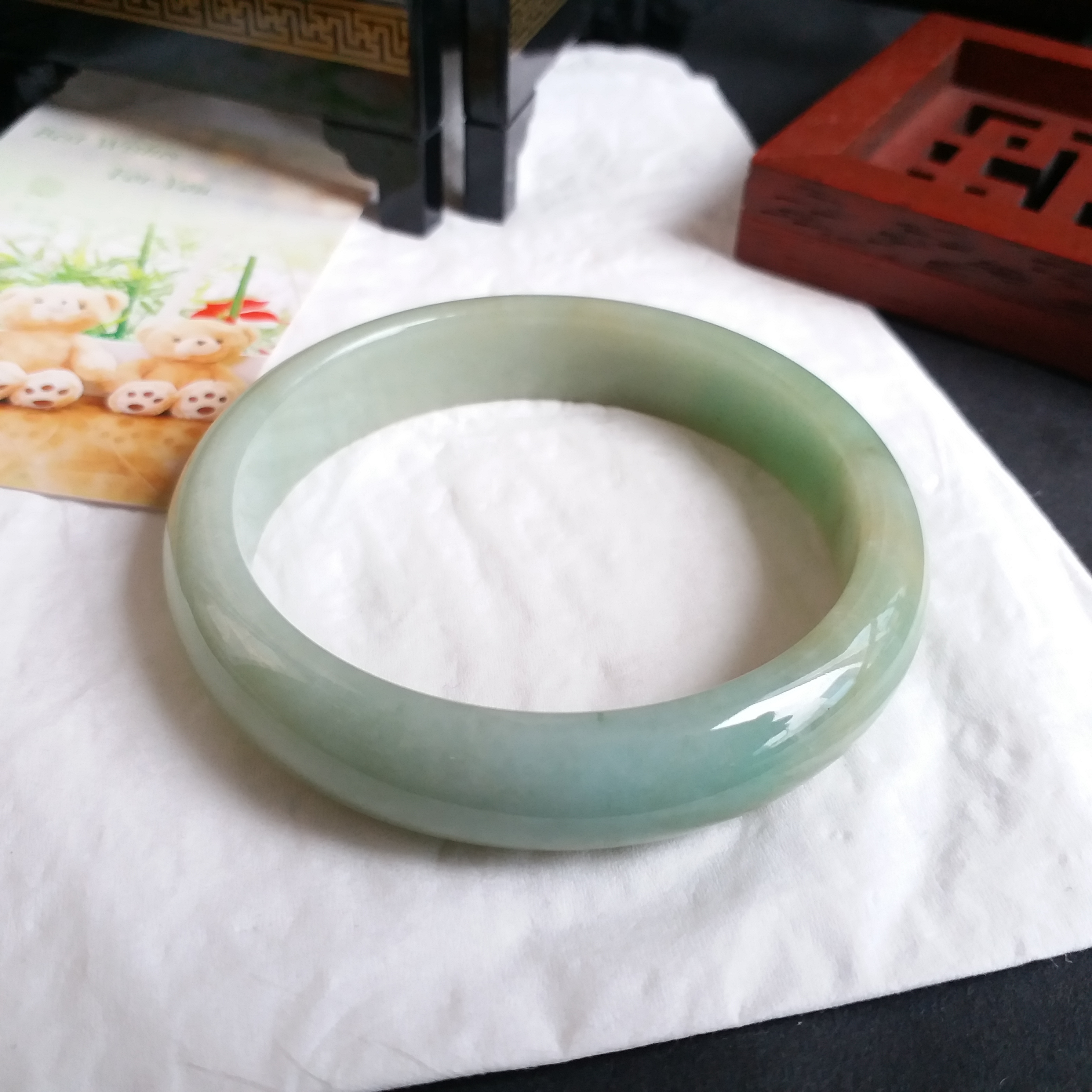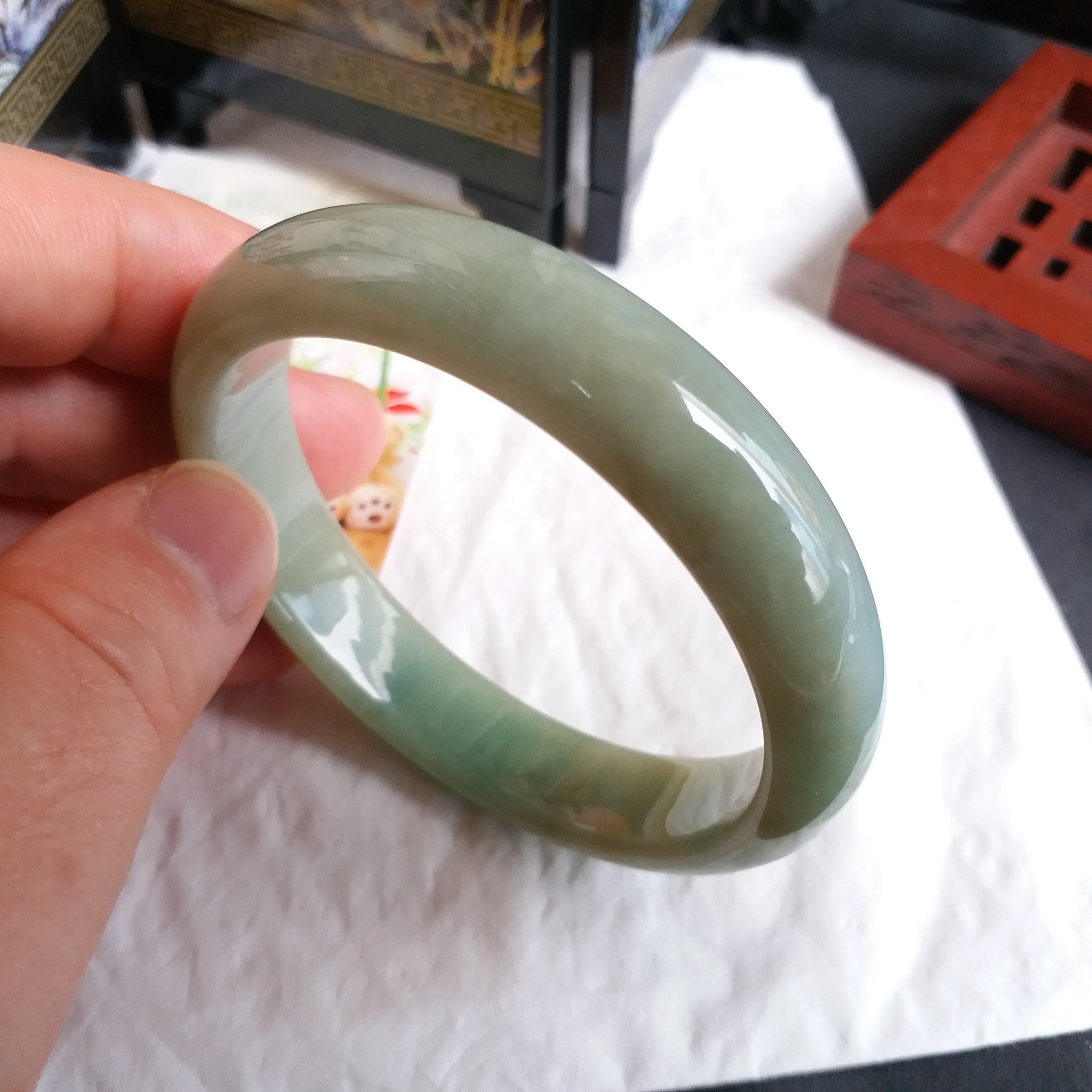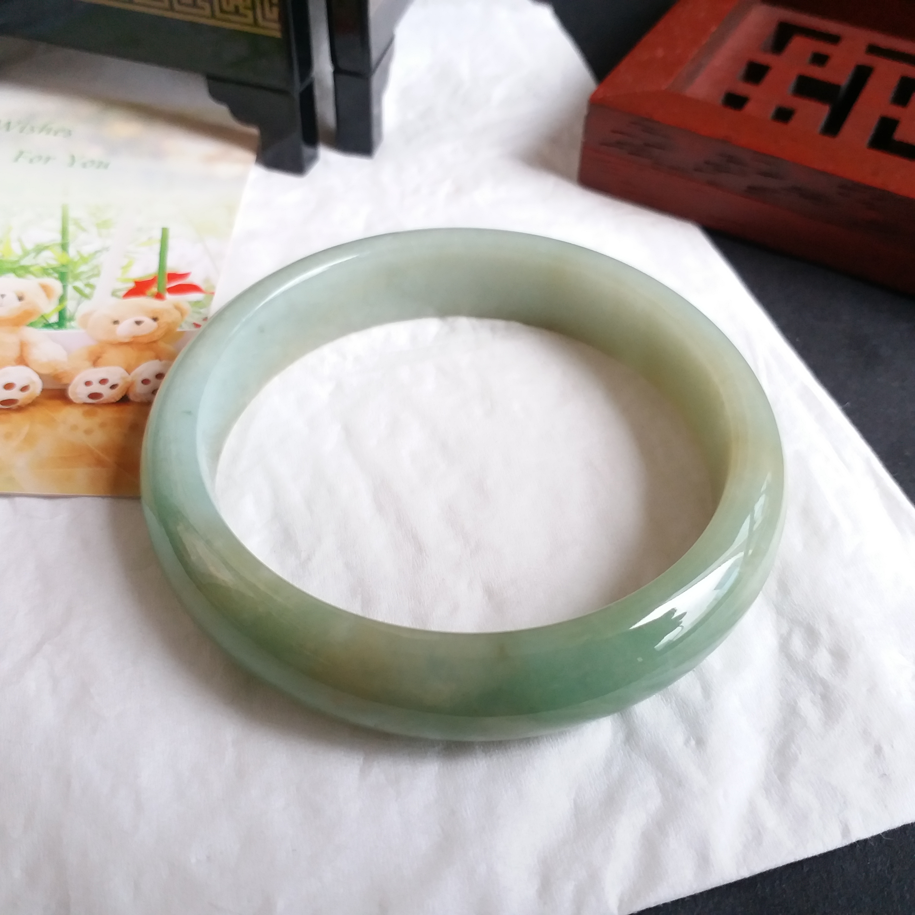 J1082 冰糯蜜黃果綠玉鐲 55.6mm (1.48)
