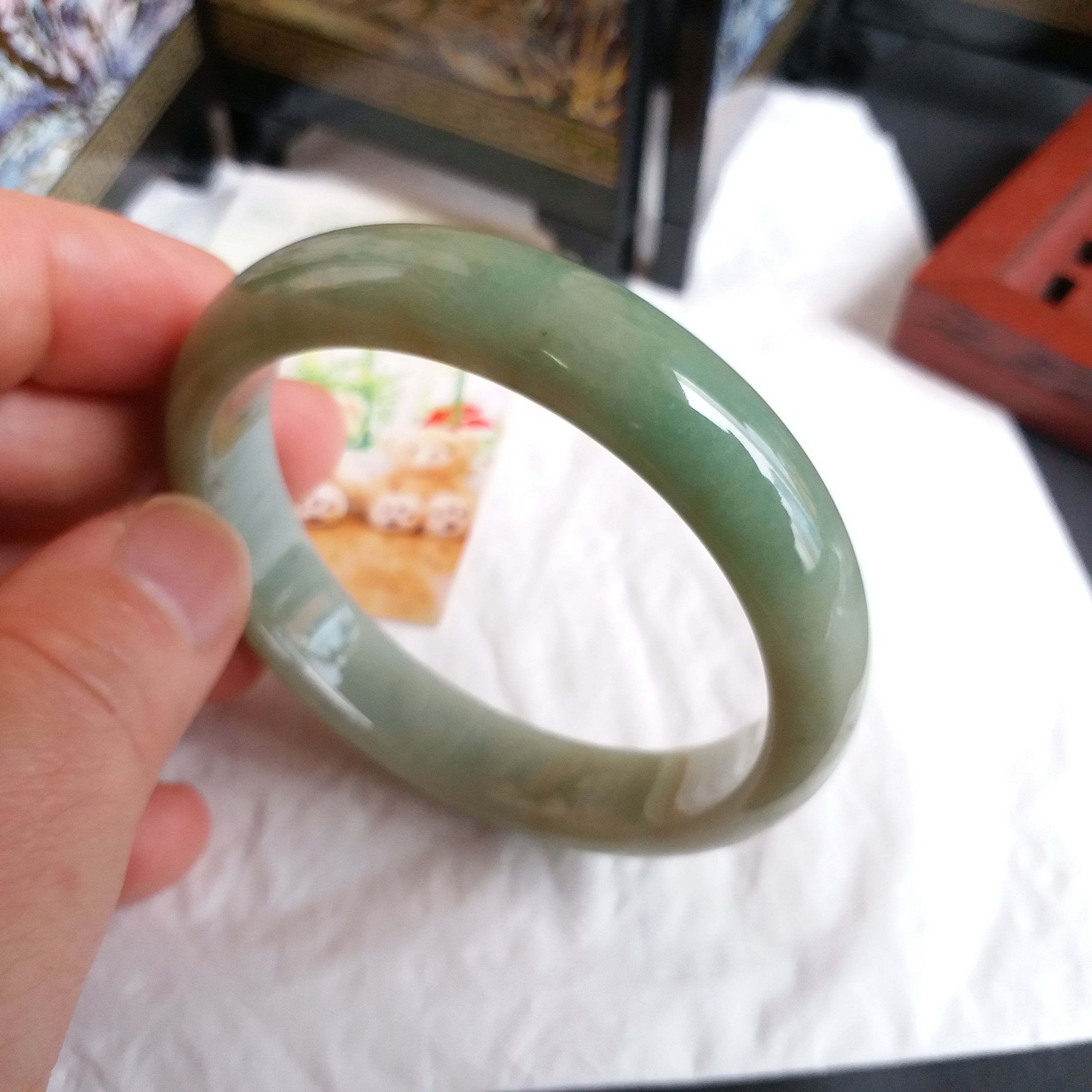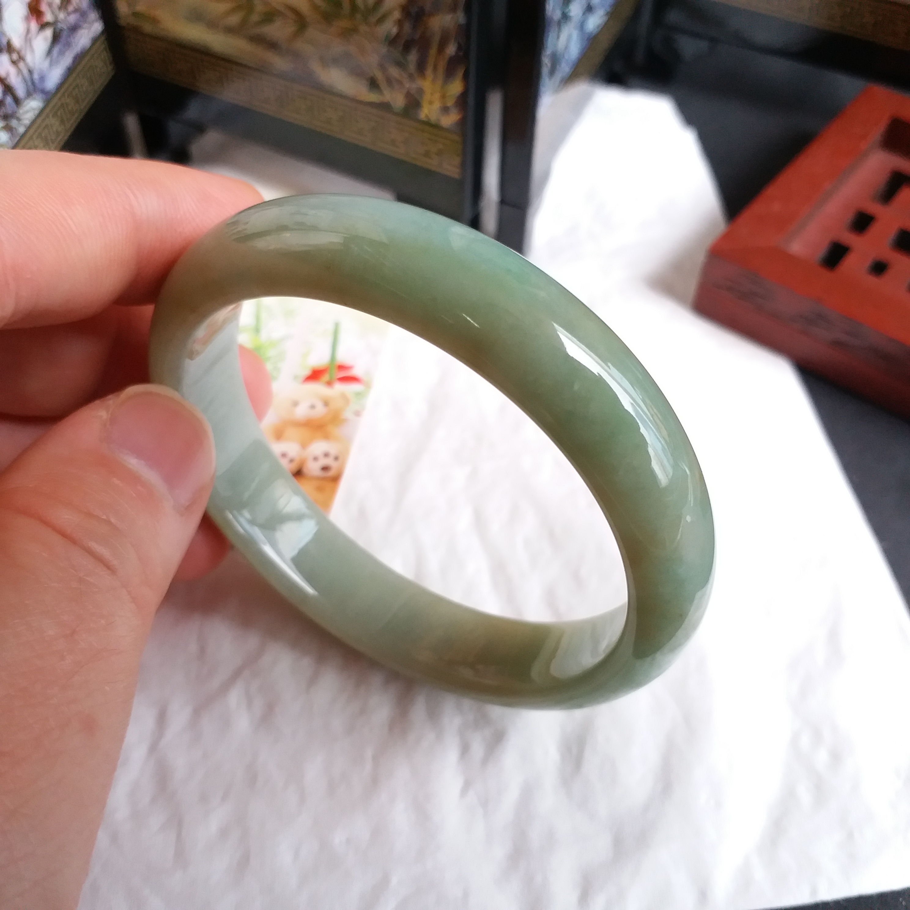 - 天然玉石在不同光線下,會呈現出不同的顏色變化;