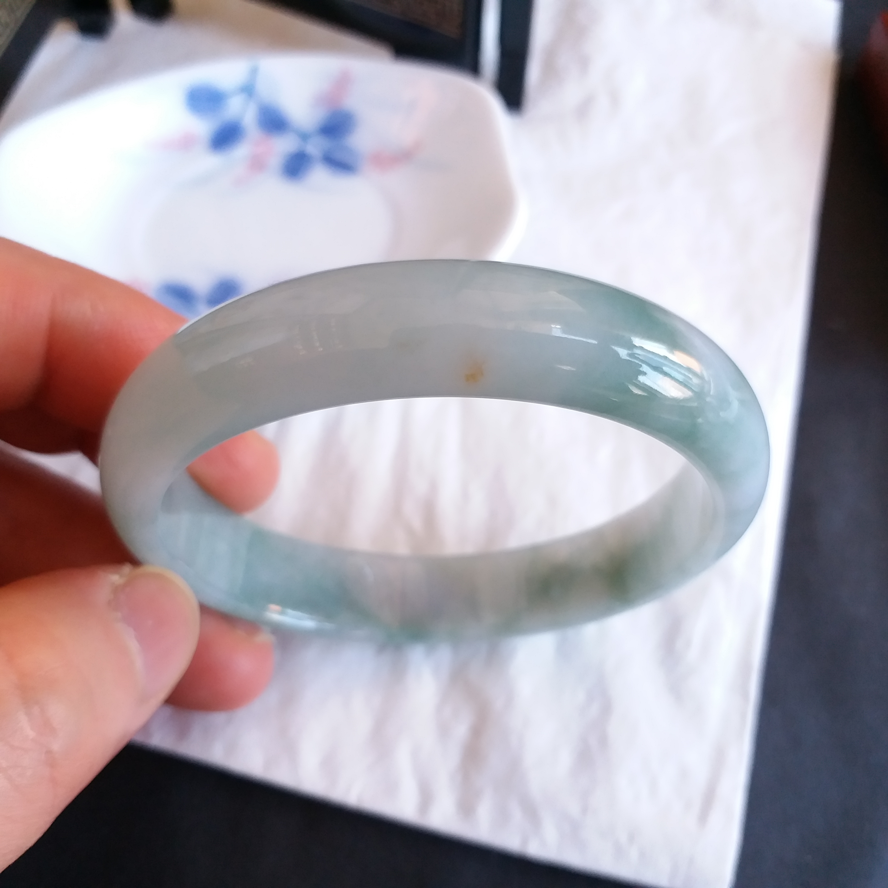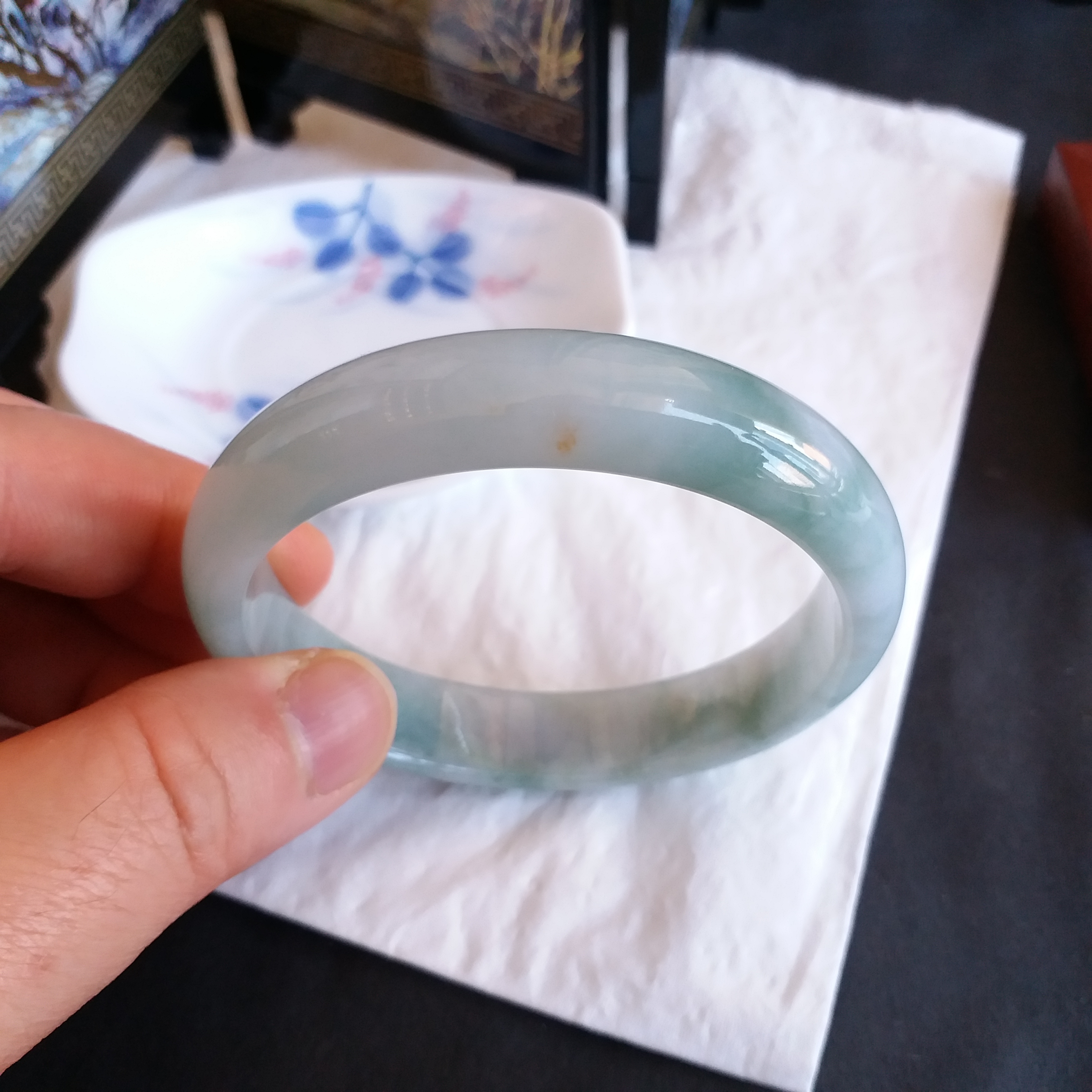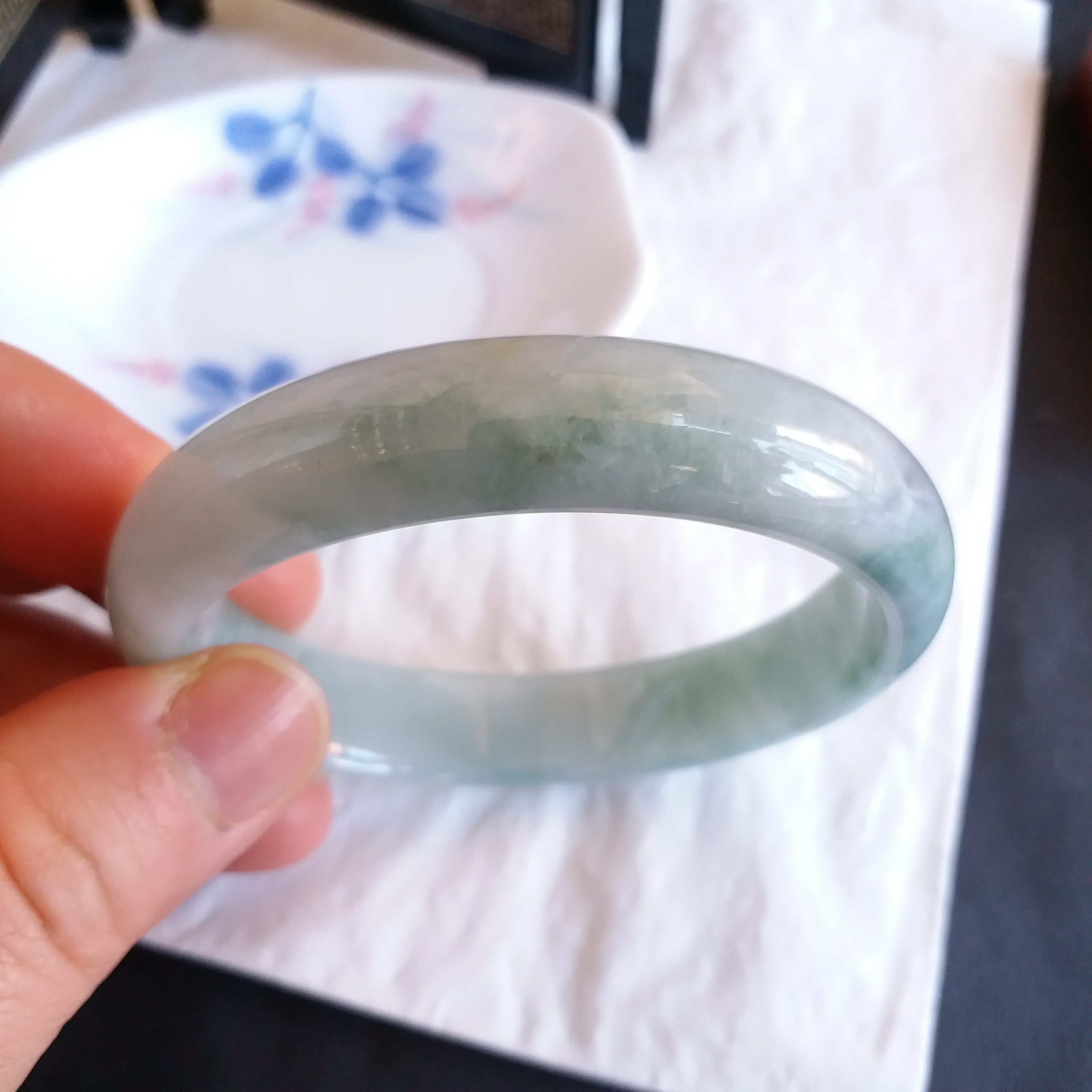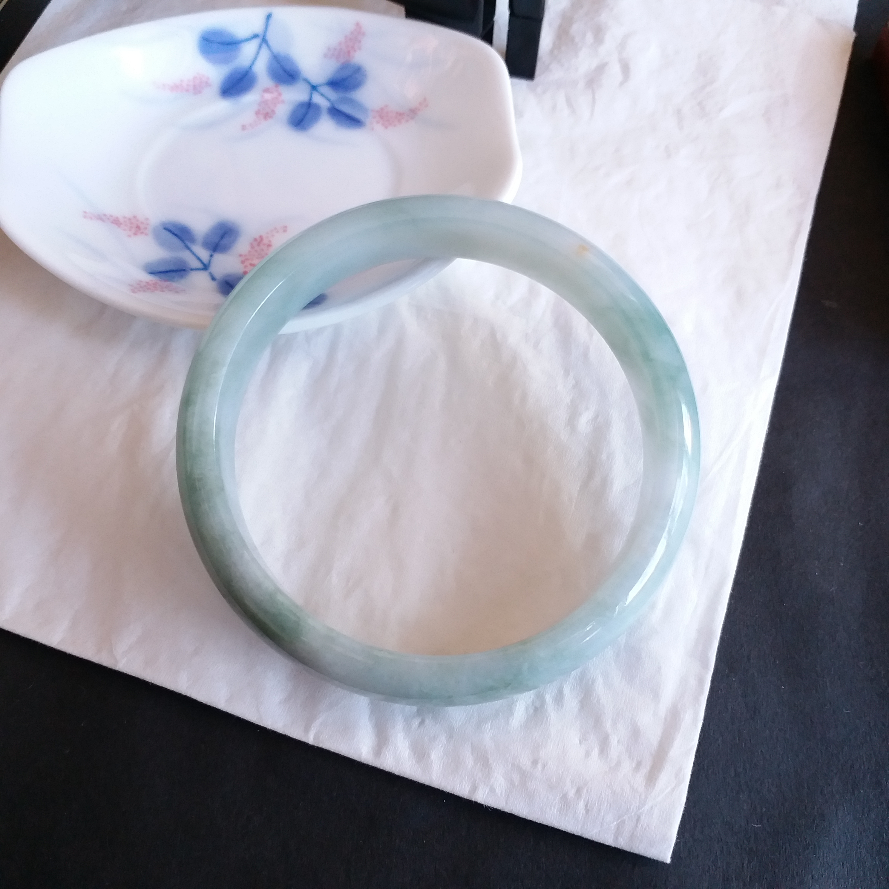 • 冰糯飄花玉鐲 58mm, 天然翡翠A玉, 緬甸玉, Jade, Jadeite