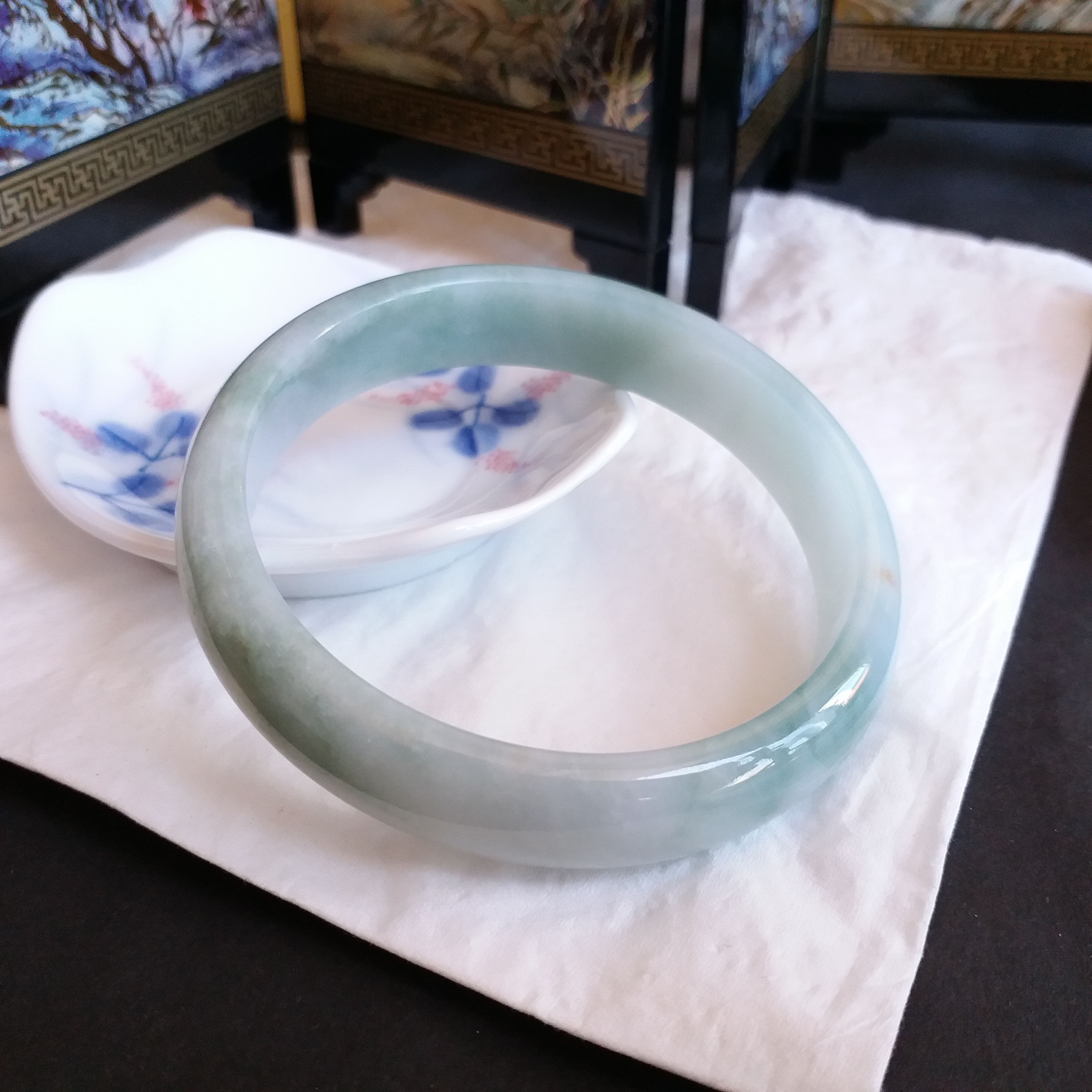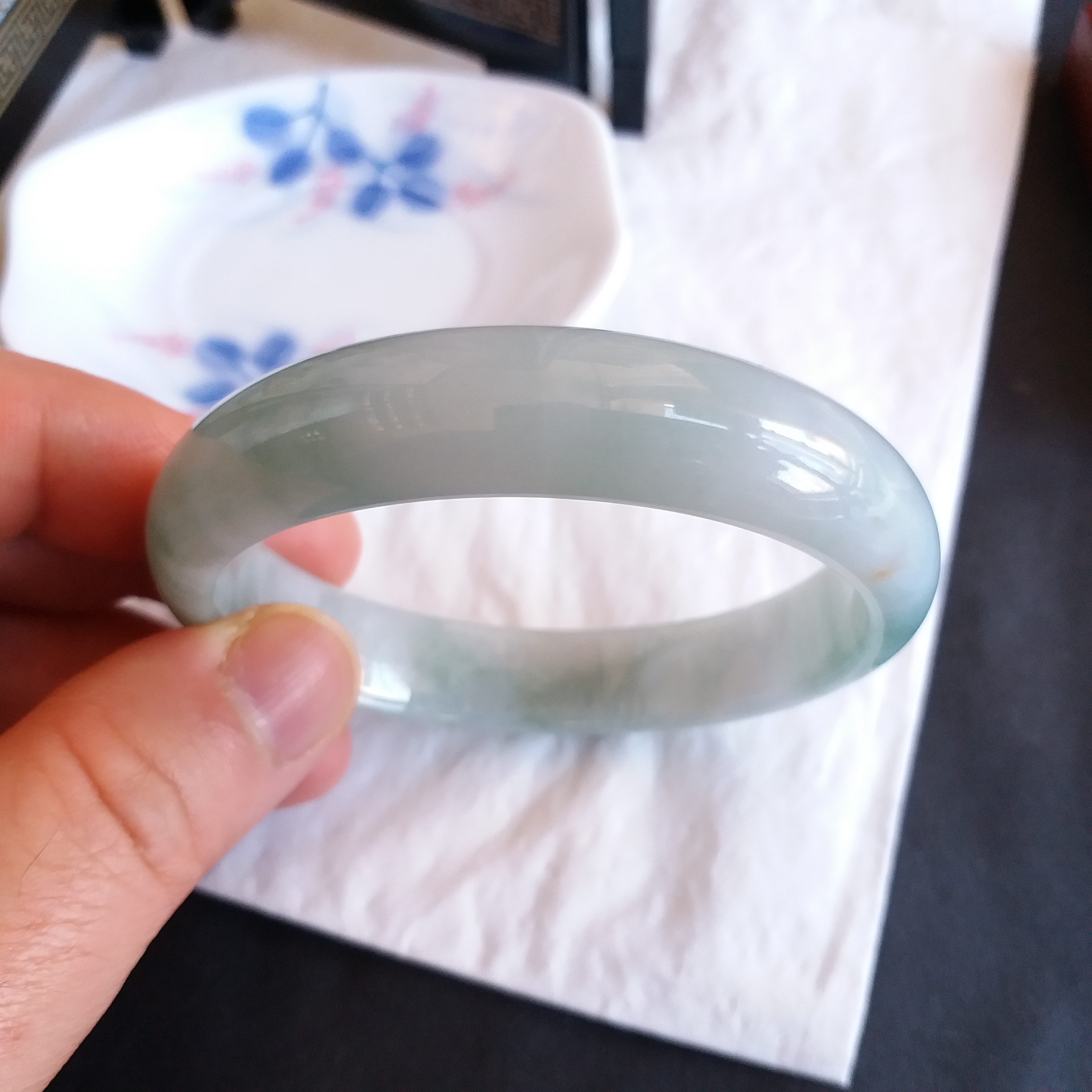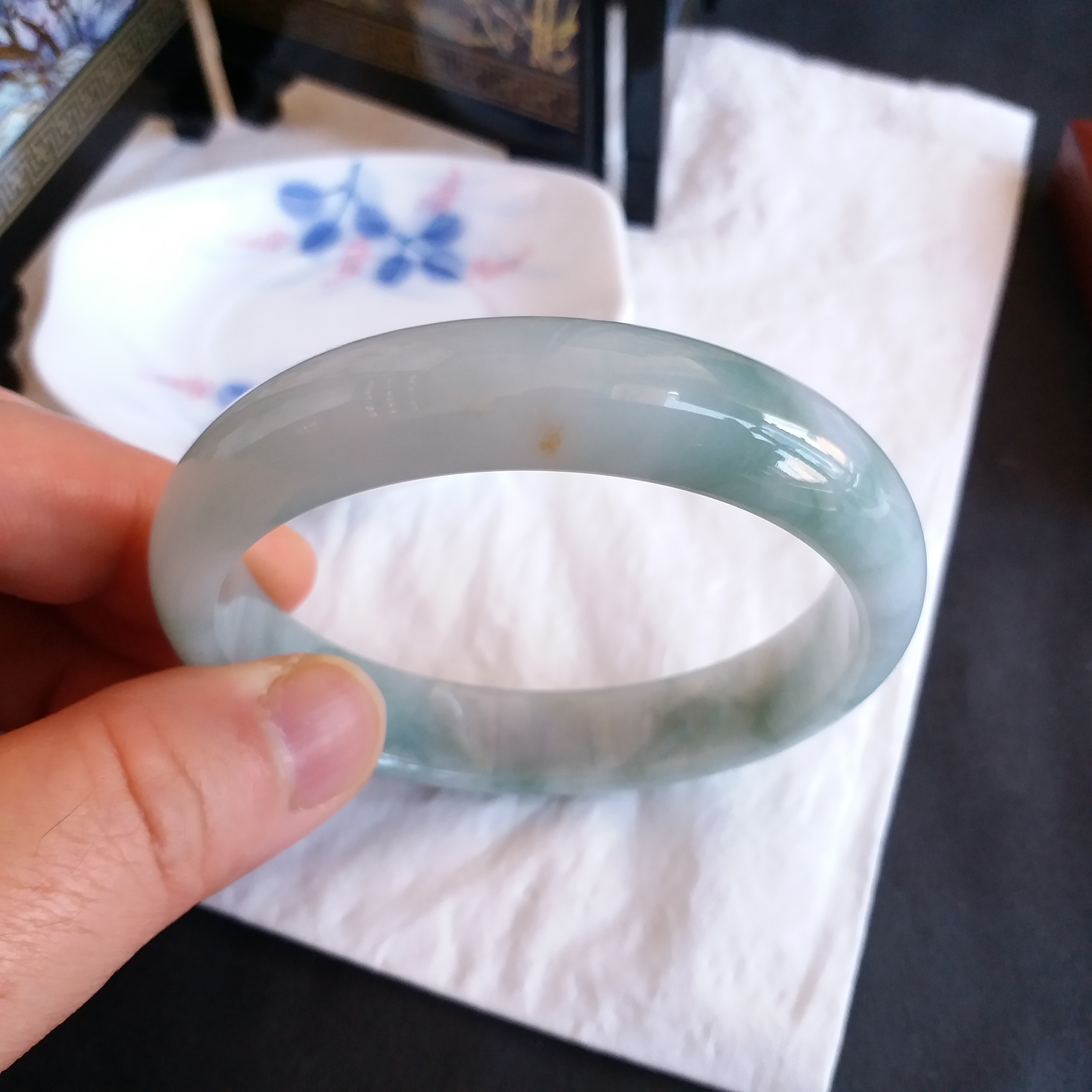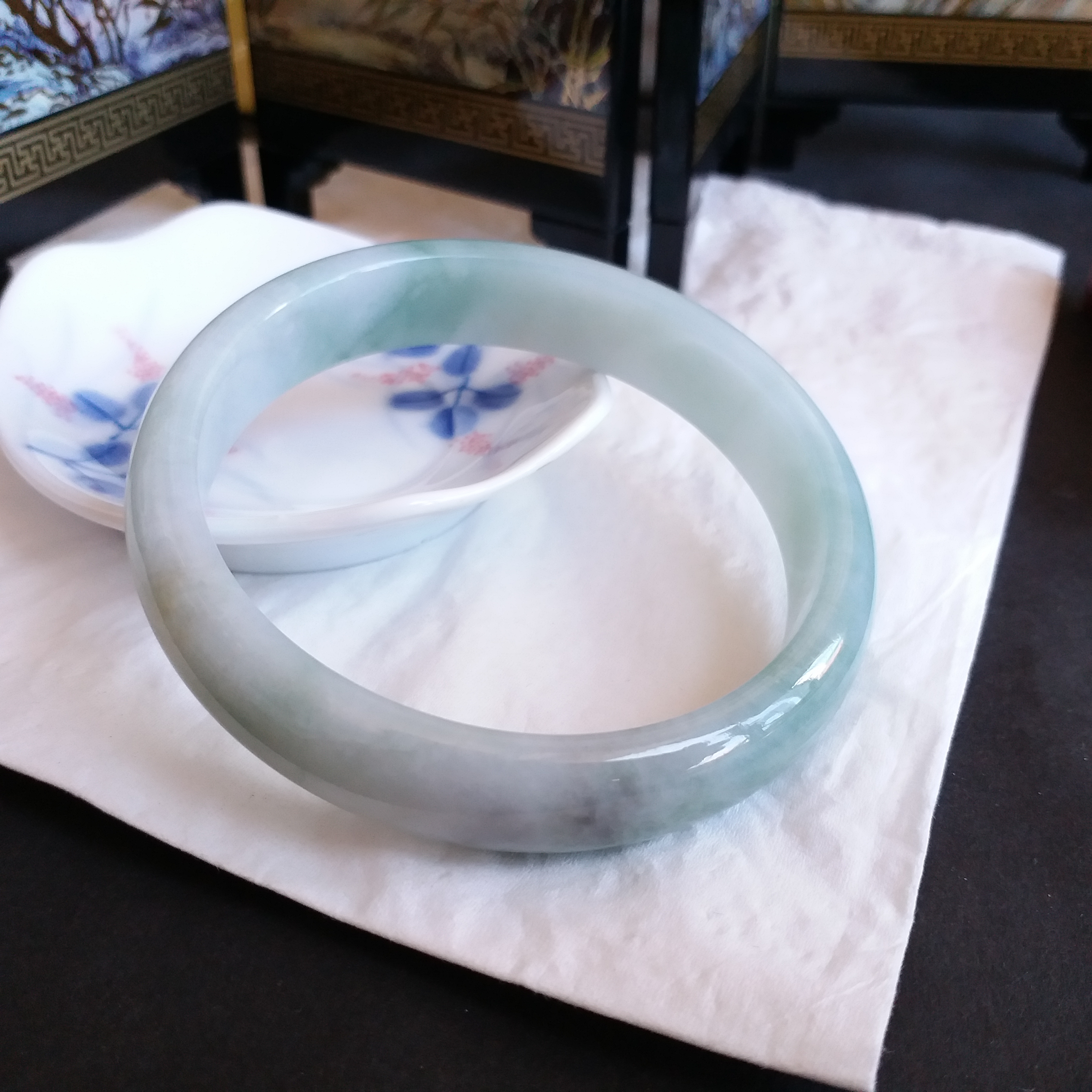 • 冰糯飄花玉鐲 58mm, 天然翡翠A玉, 緬甸玉, Jade, Jadeite
