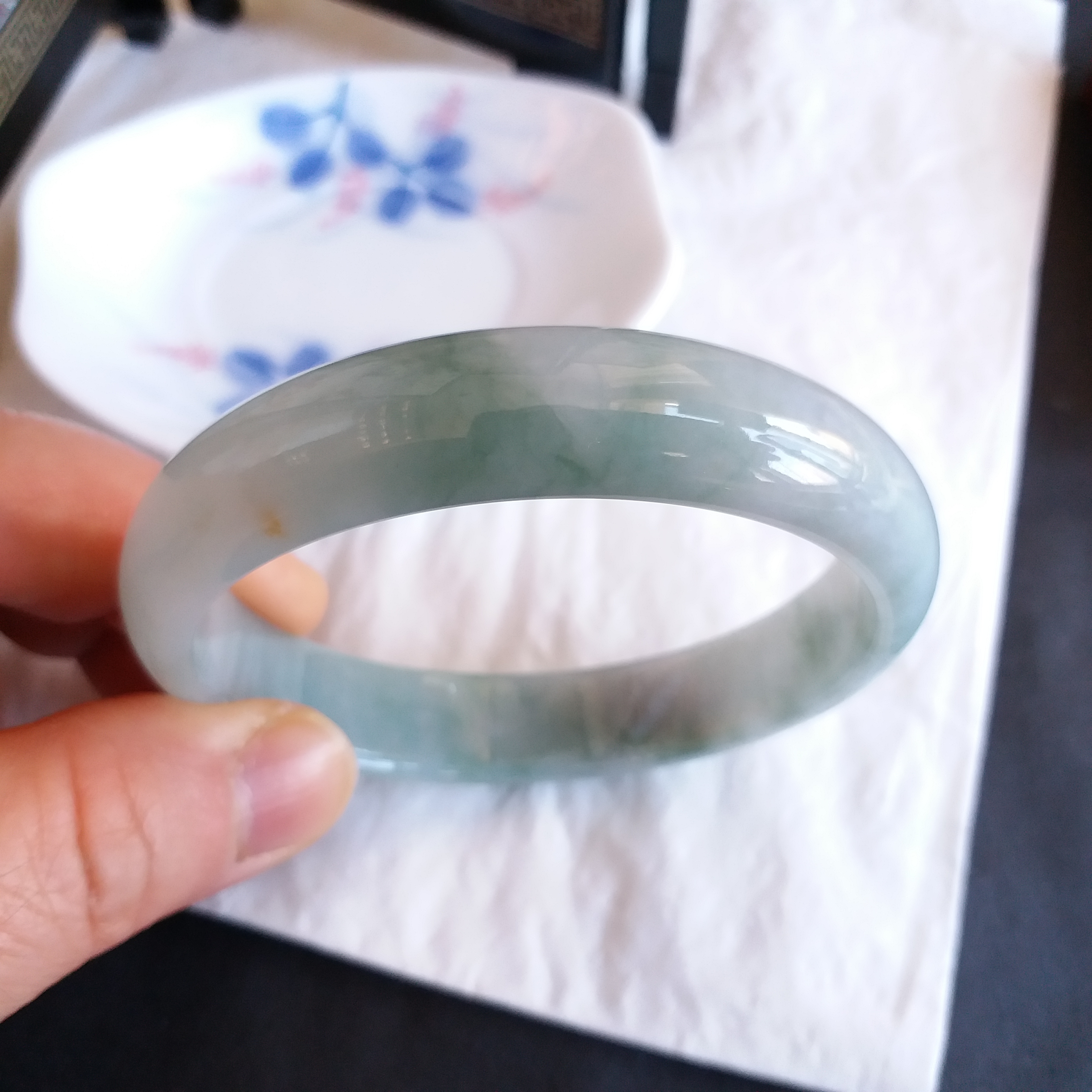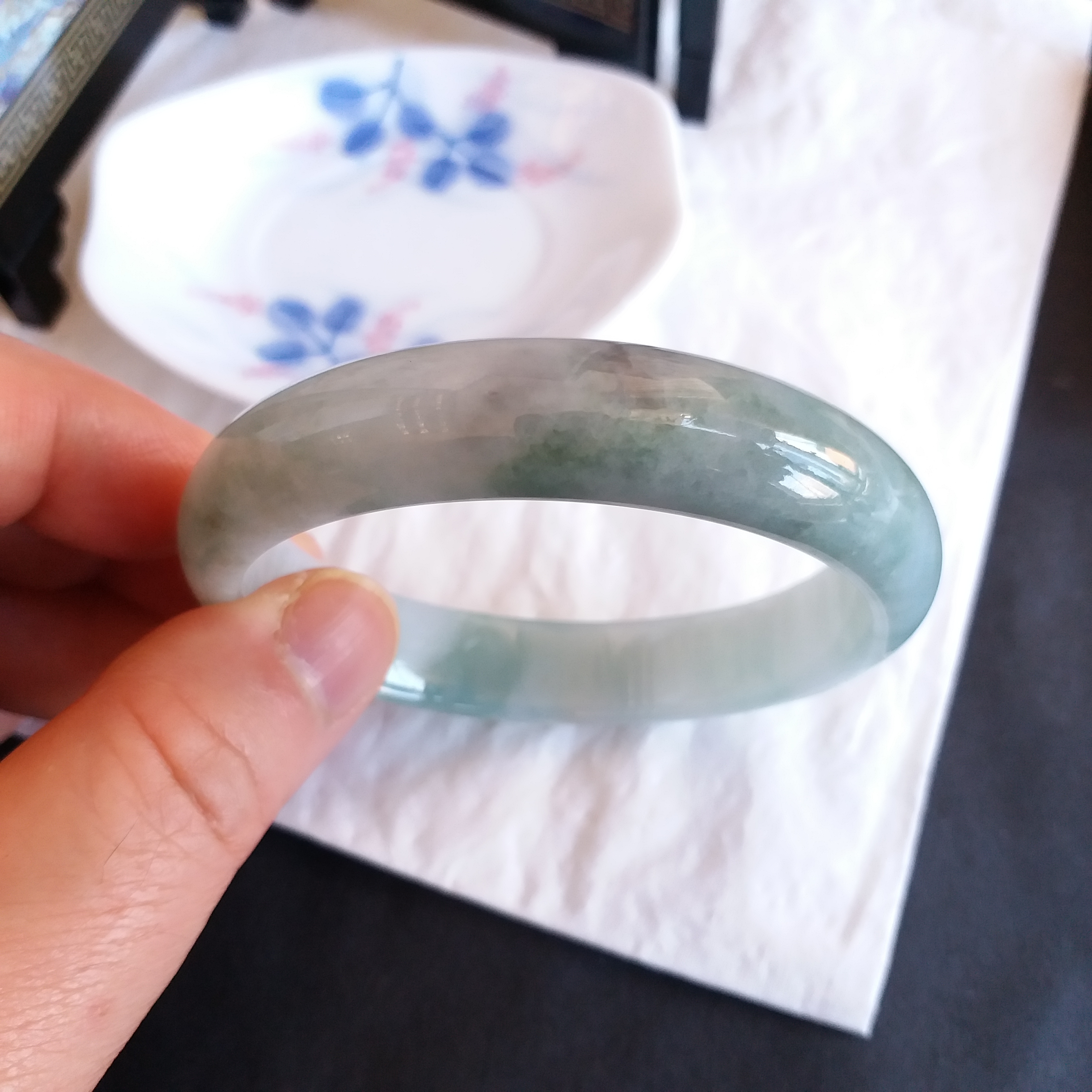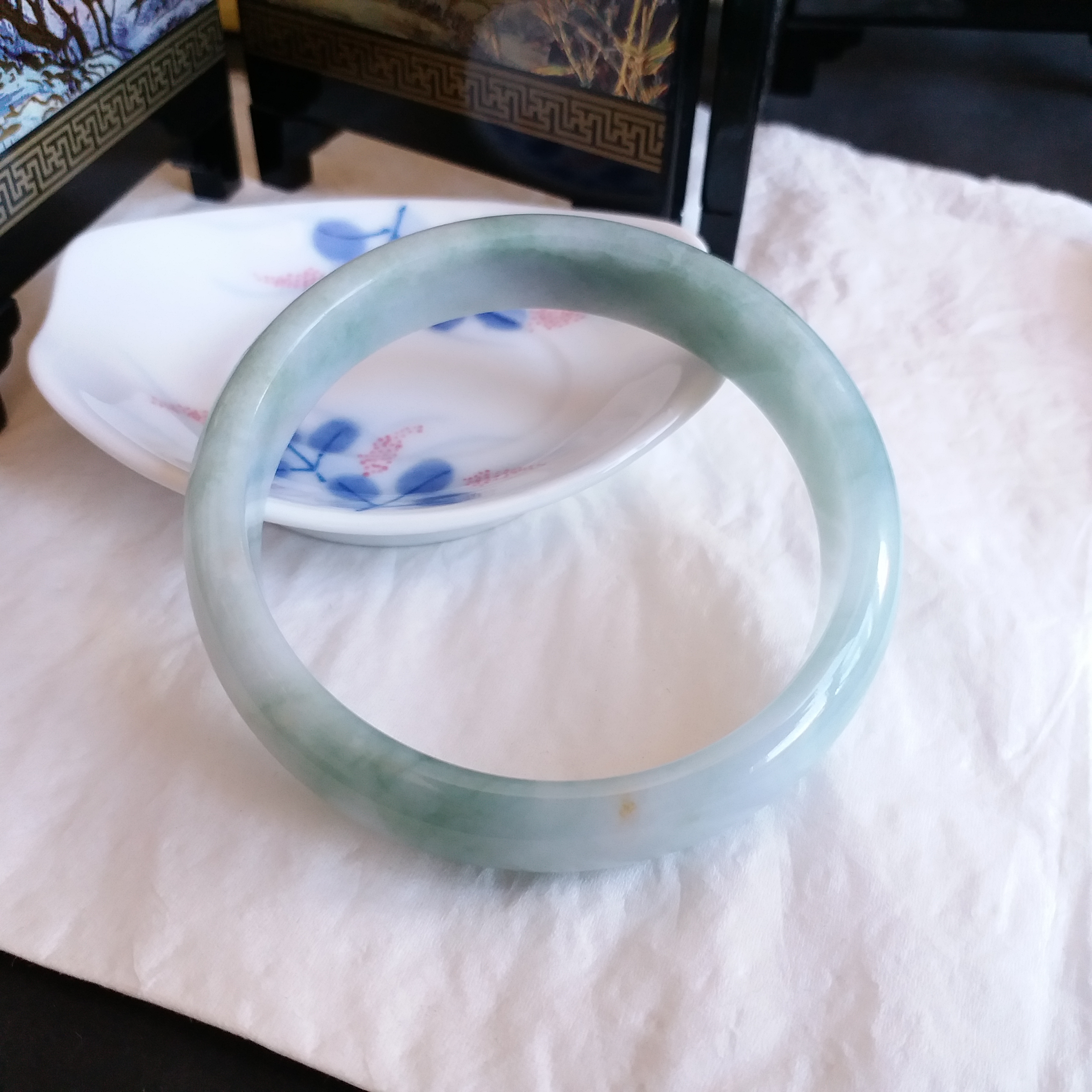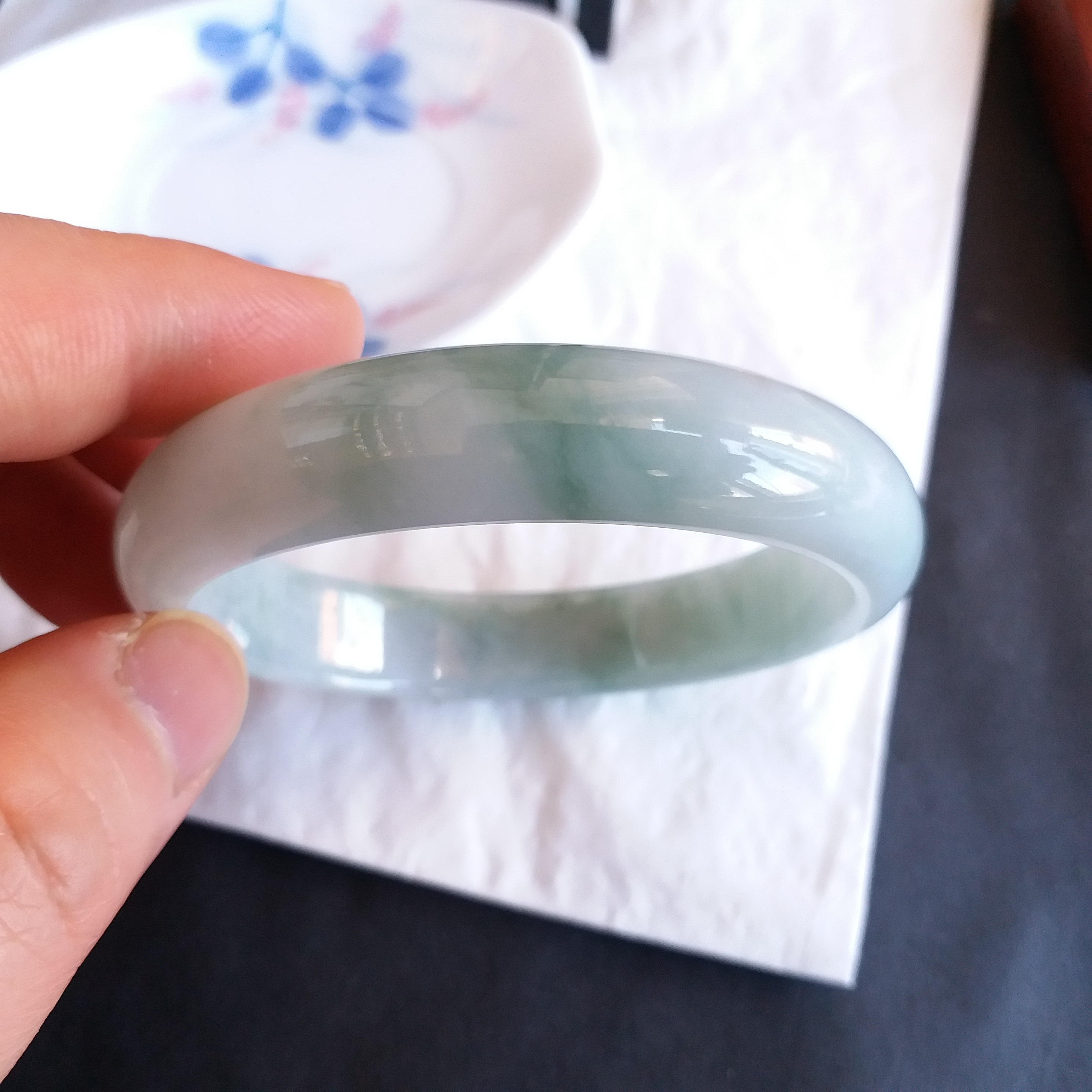• 冰糯飄花玉鐲 58mm, 天然翡翠A玉, 緬甸玉, Jade, Jadeite