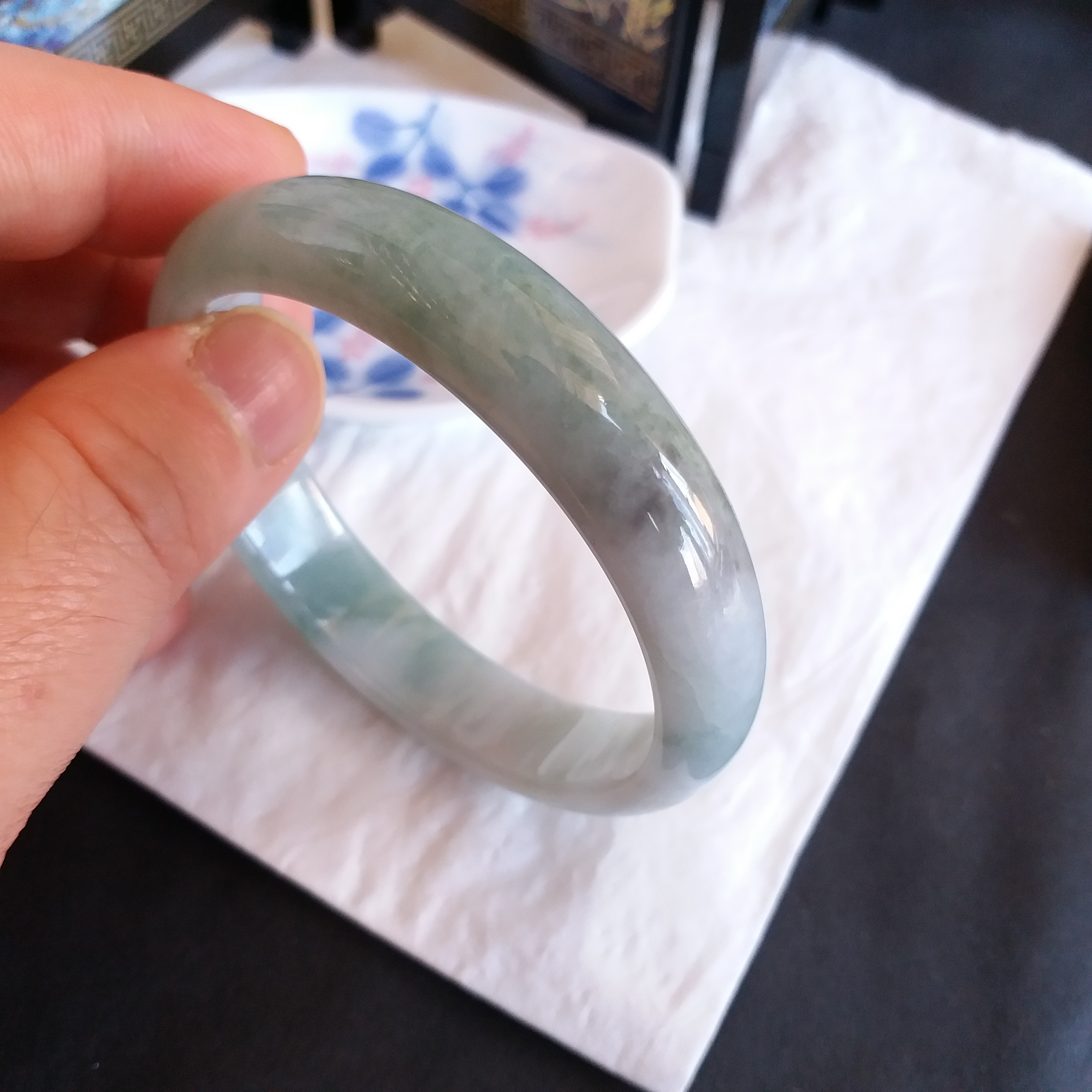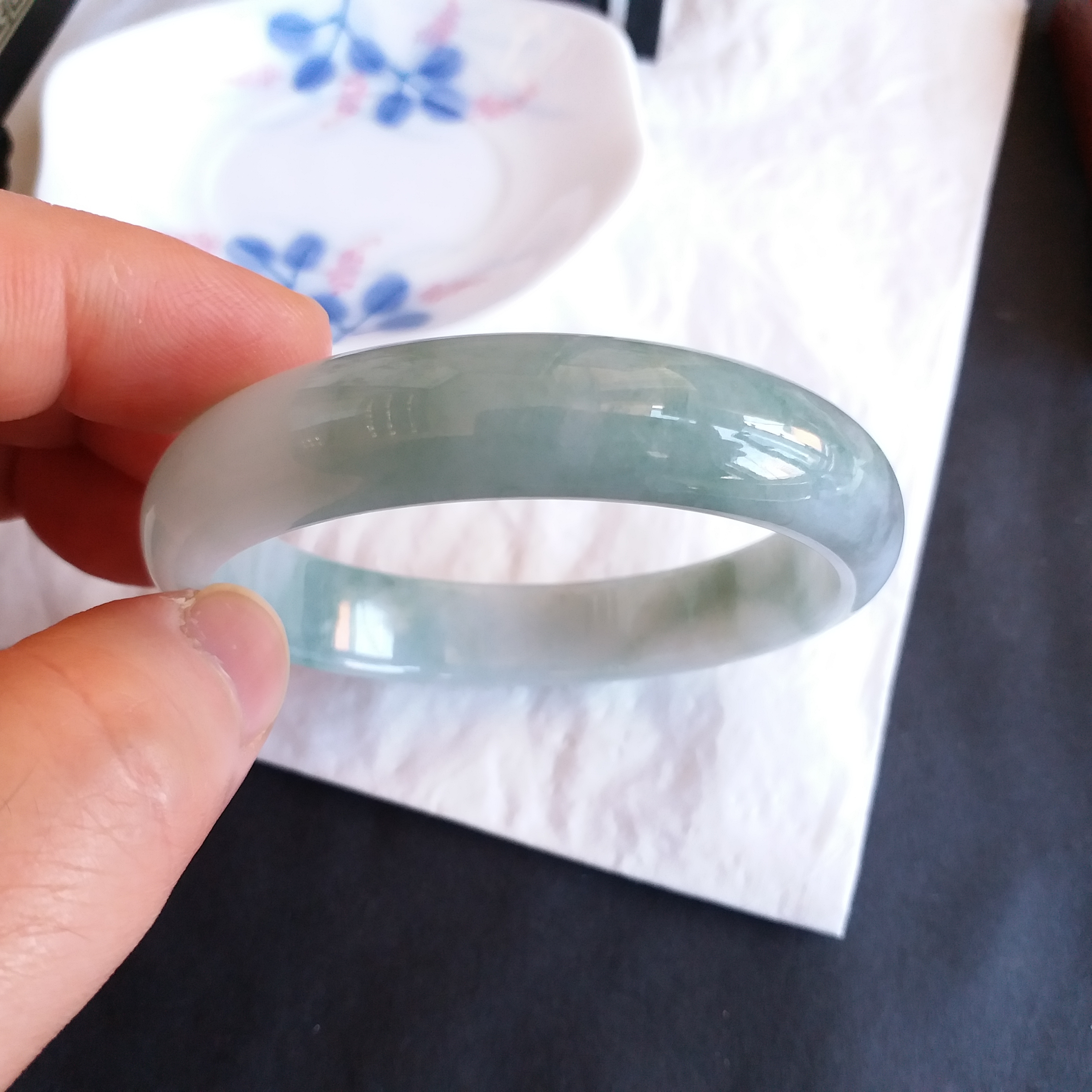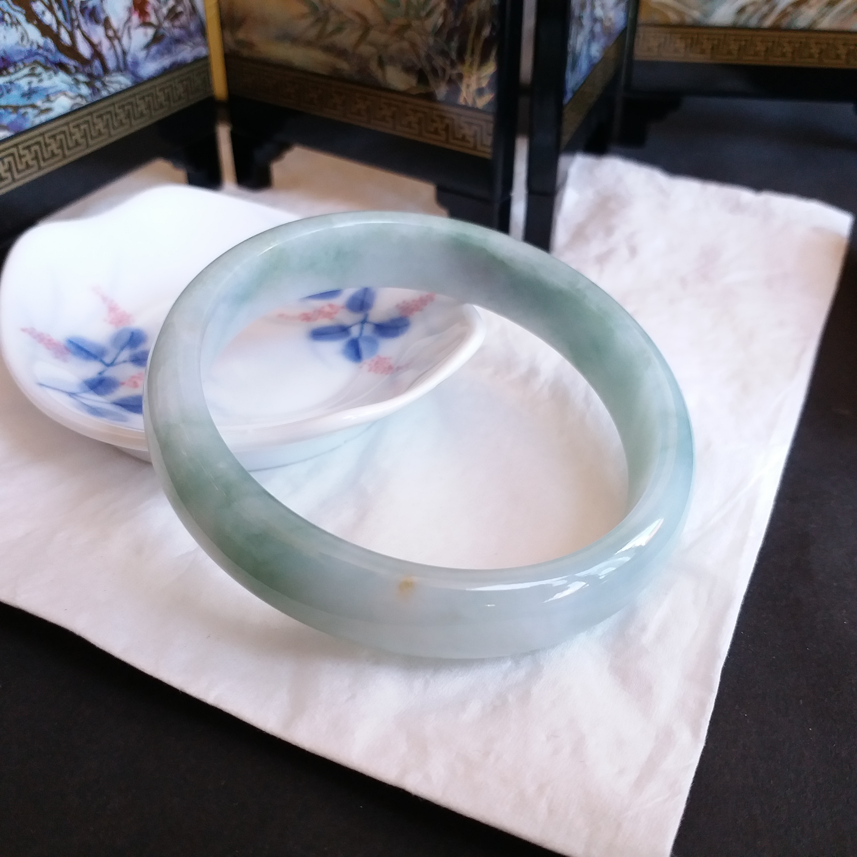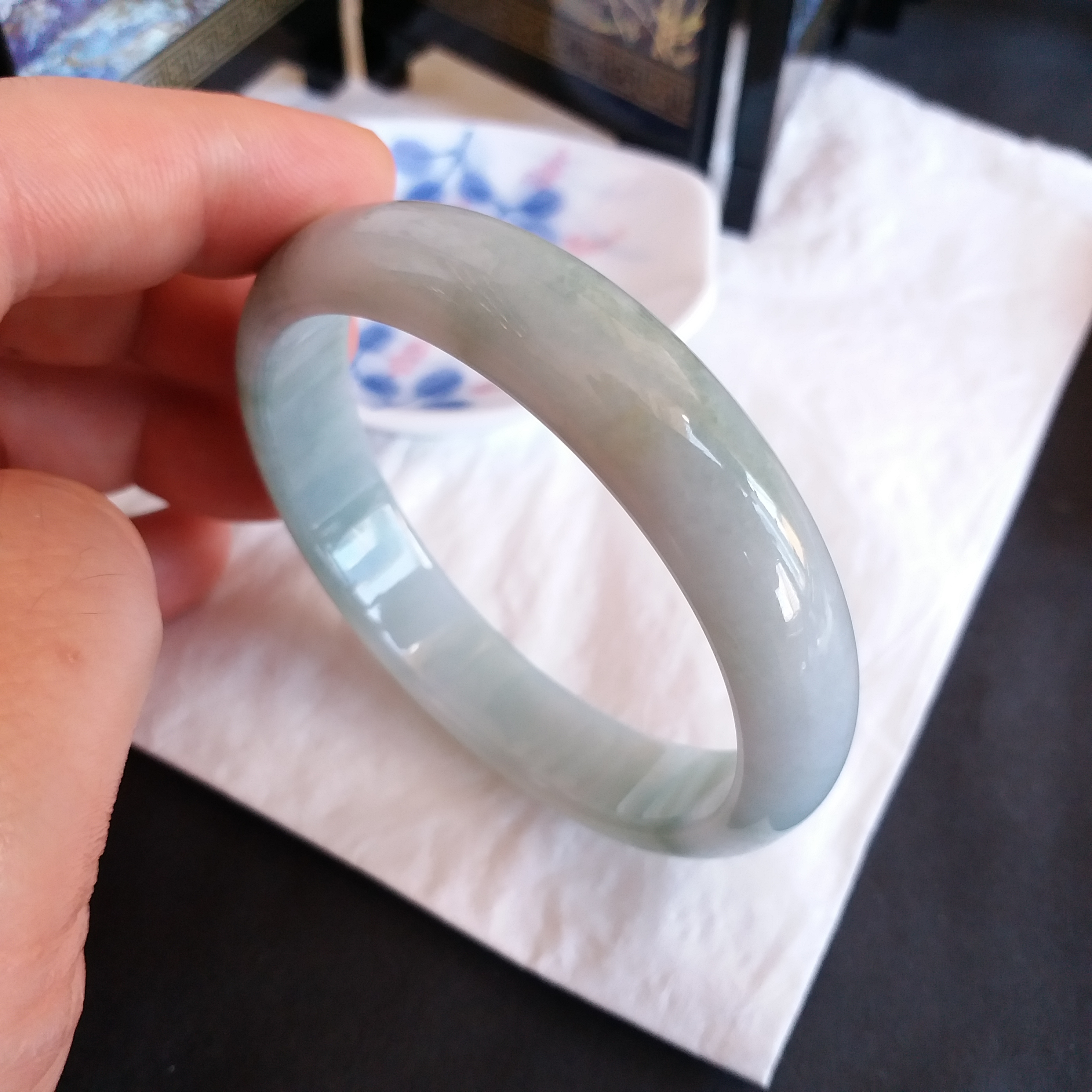 • 冰糯飄花玉鐲 58mm, 天然翡翠A玉, 緬甸玉, Jade, Jadeite