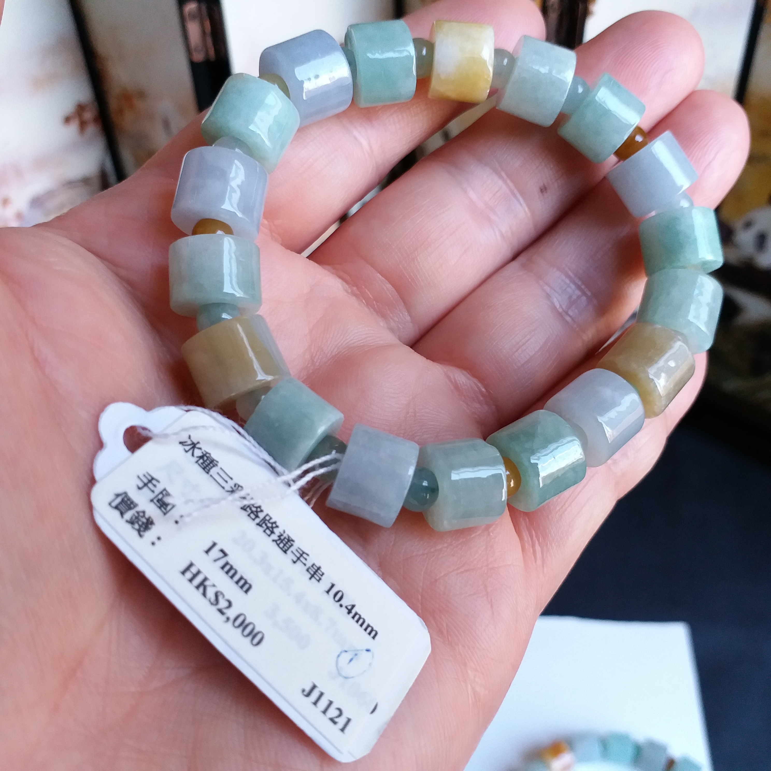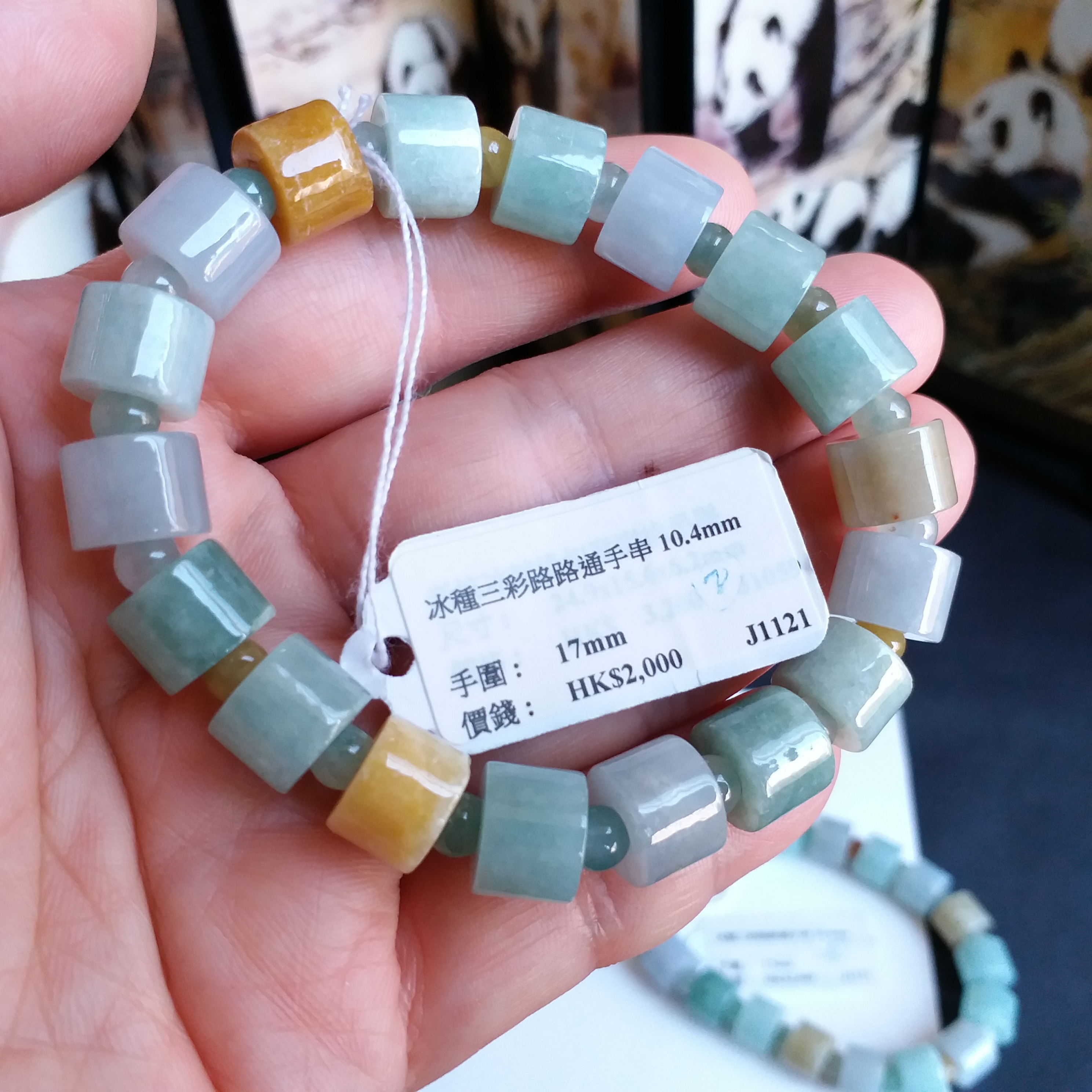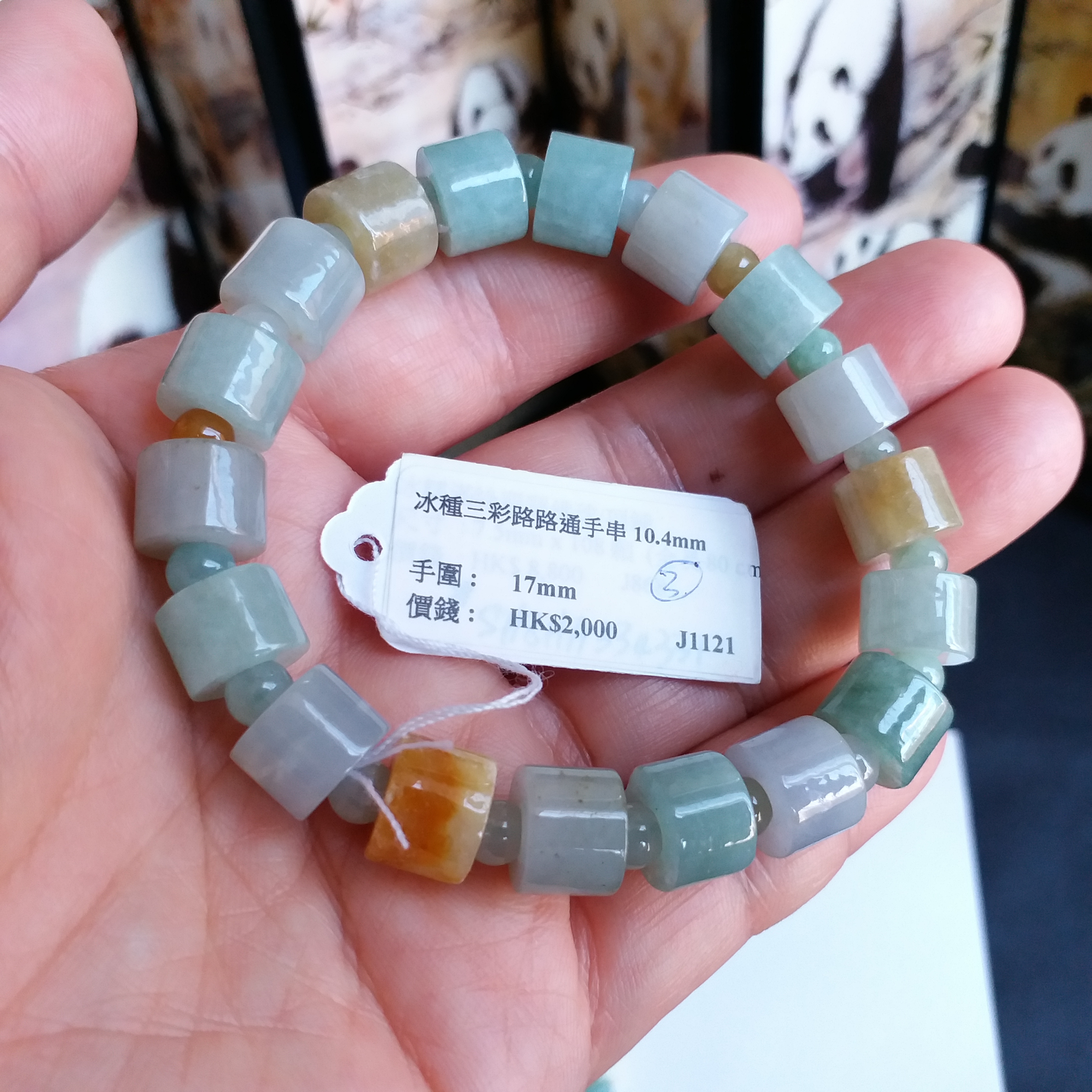 J1121 冰種三彩路路通手串 (10.4mm直徑)