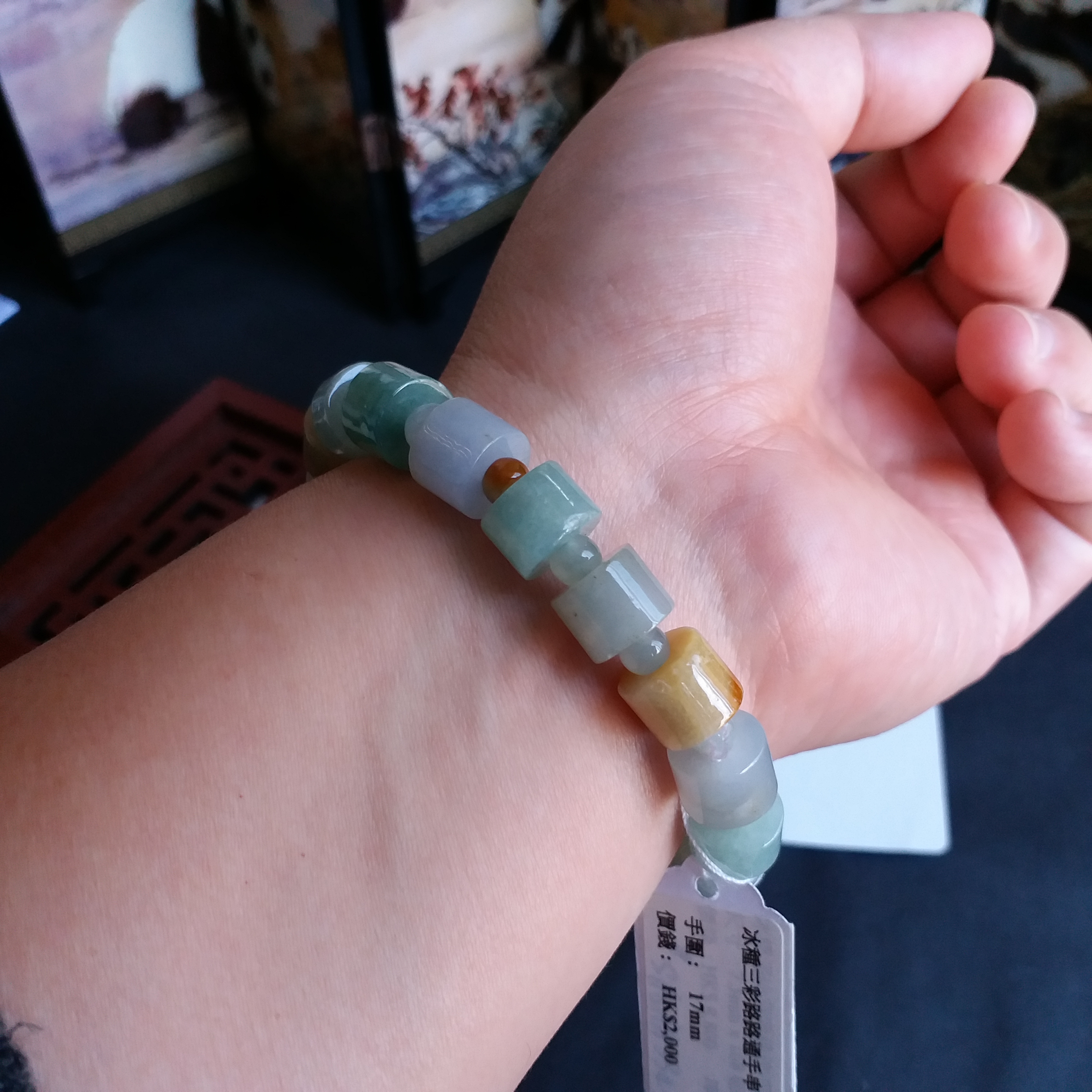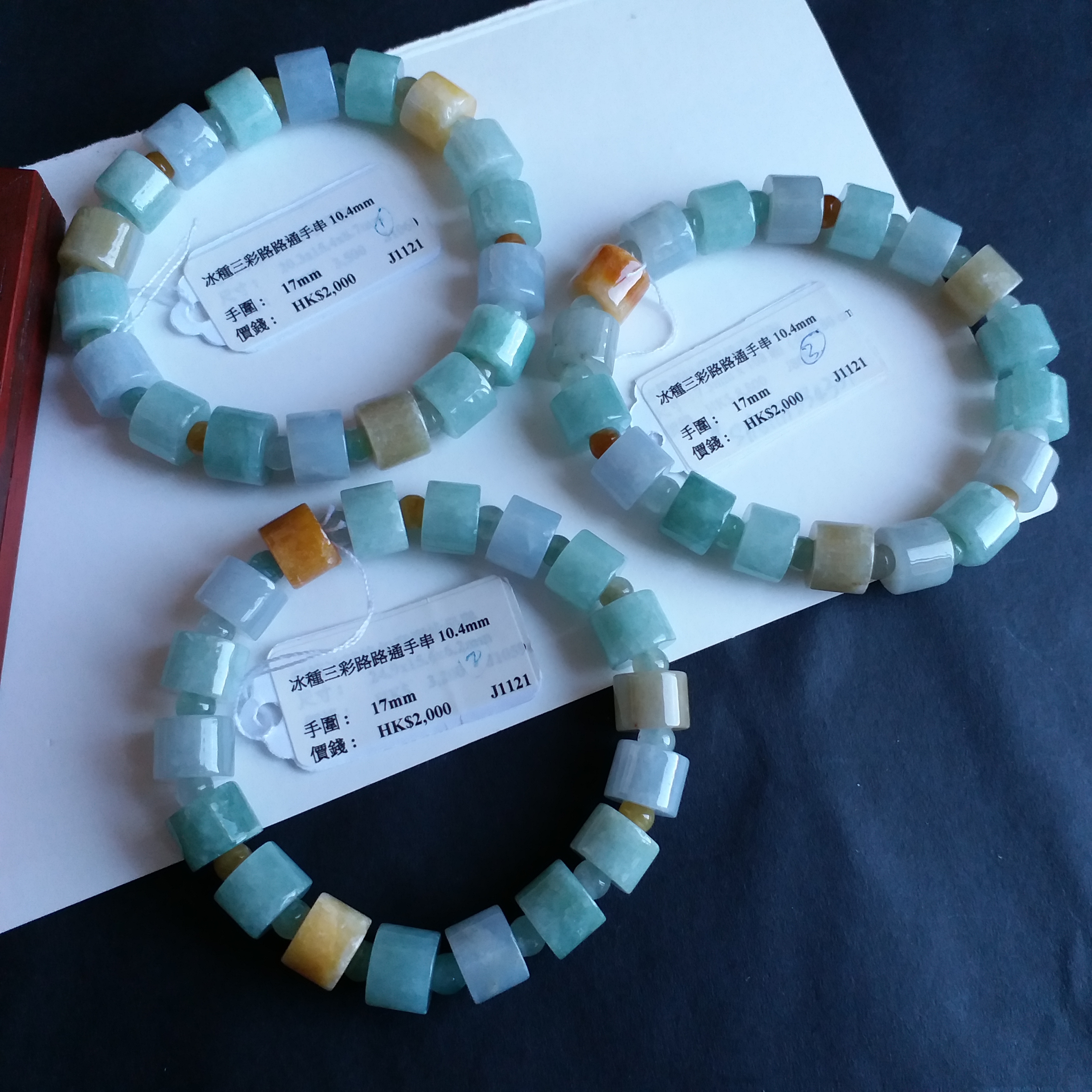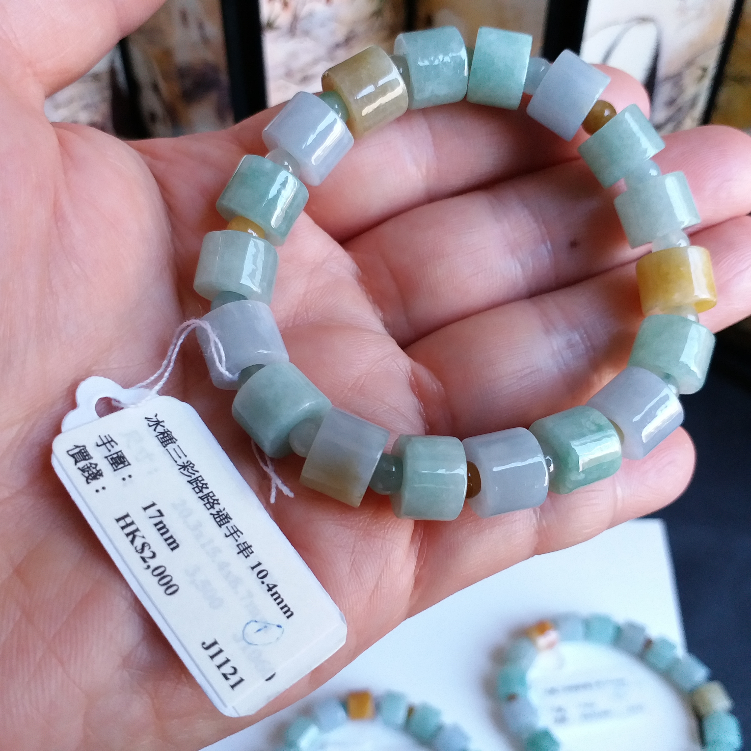 J1121 冰種三彩路路通手串 (10.4mm直徑)
