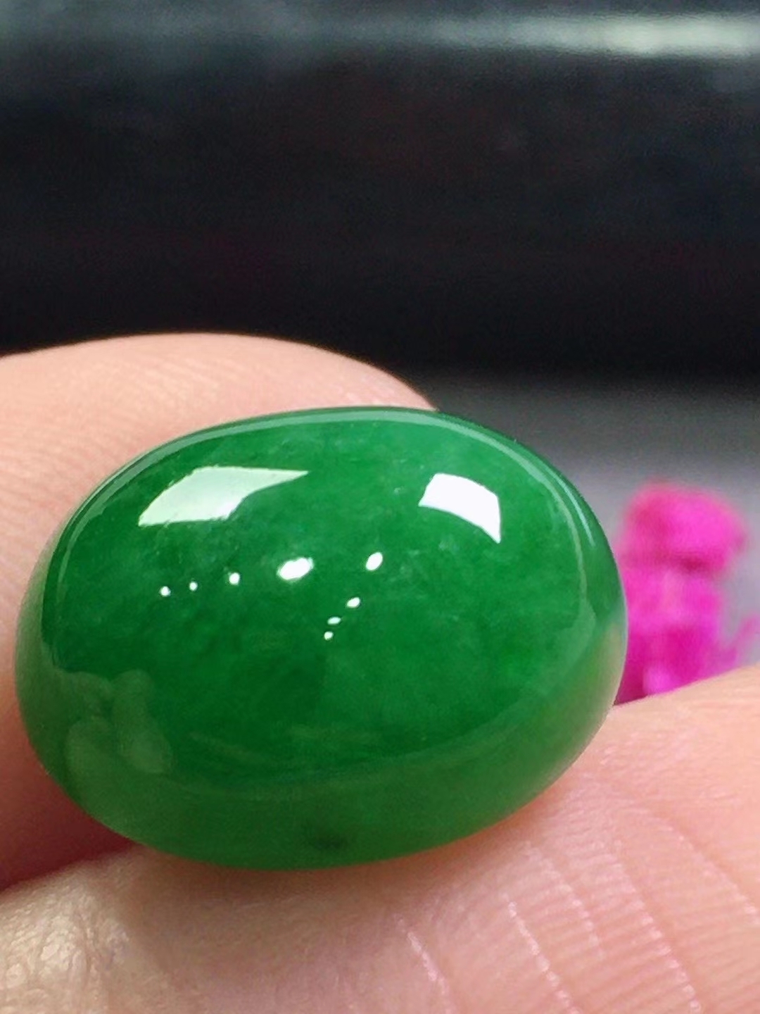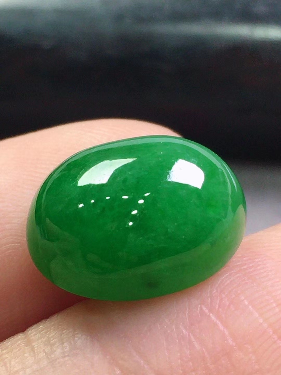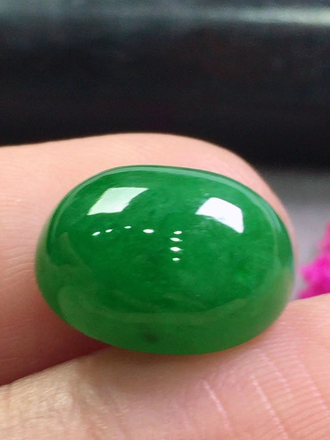 天然翡翠A玉,飽滿,辣陽綠,鮮豔奪目,厚裝,鑲嵌後價值倍增,完美無紋裂,這粒夠辣、夠水,而且夠「卜」夠厚,鑲戒指一流!