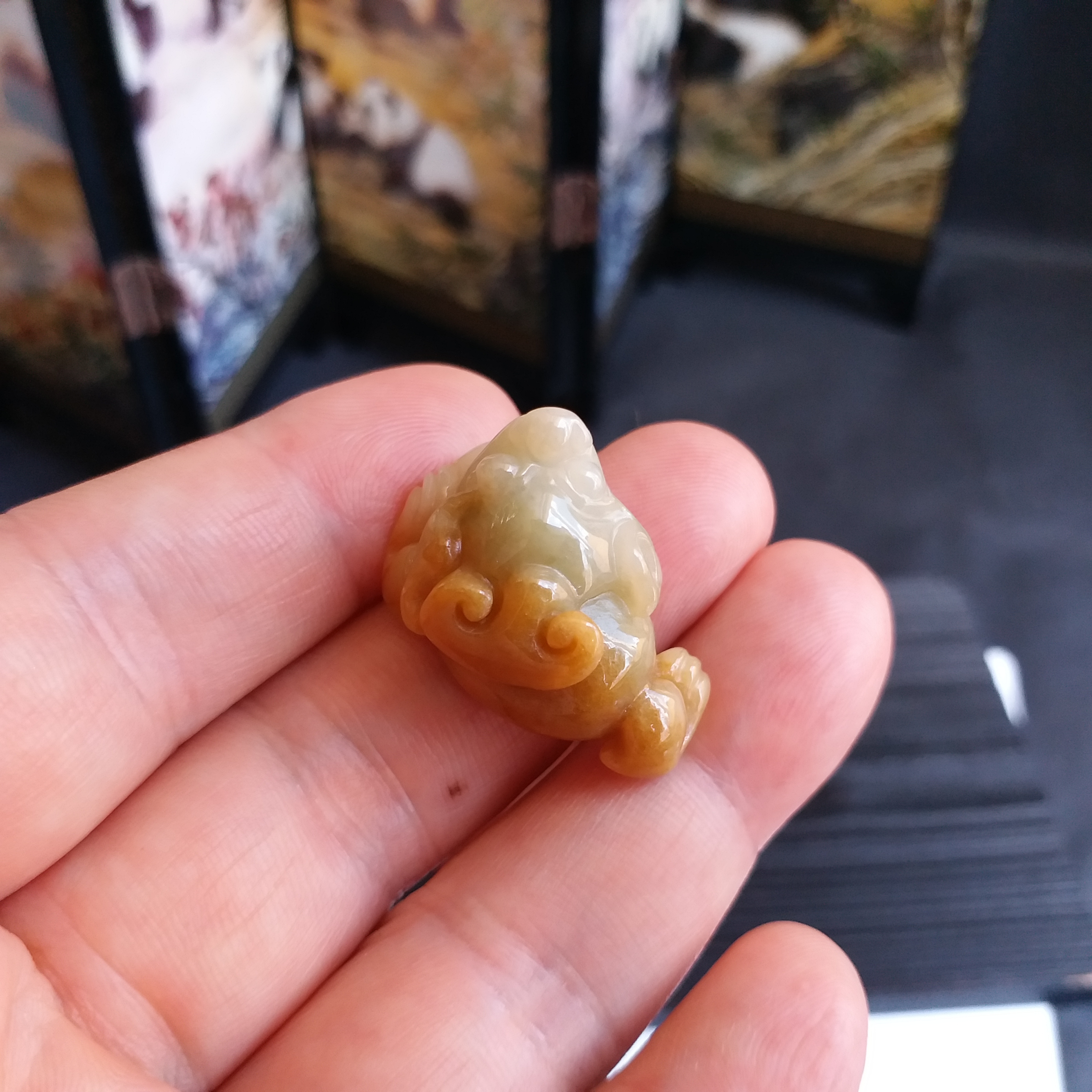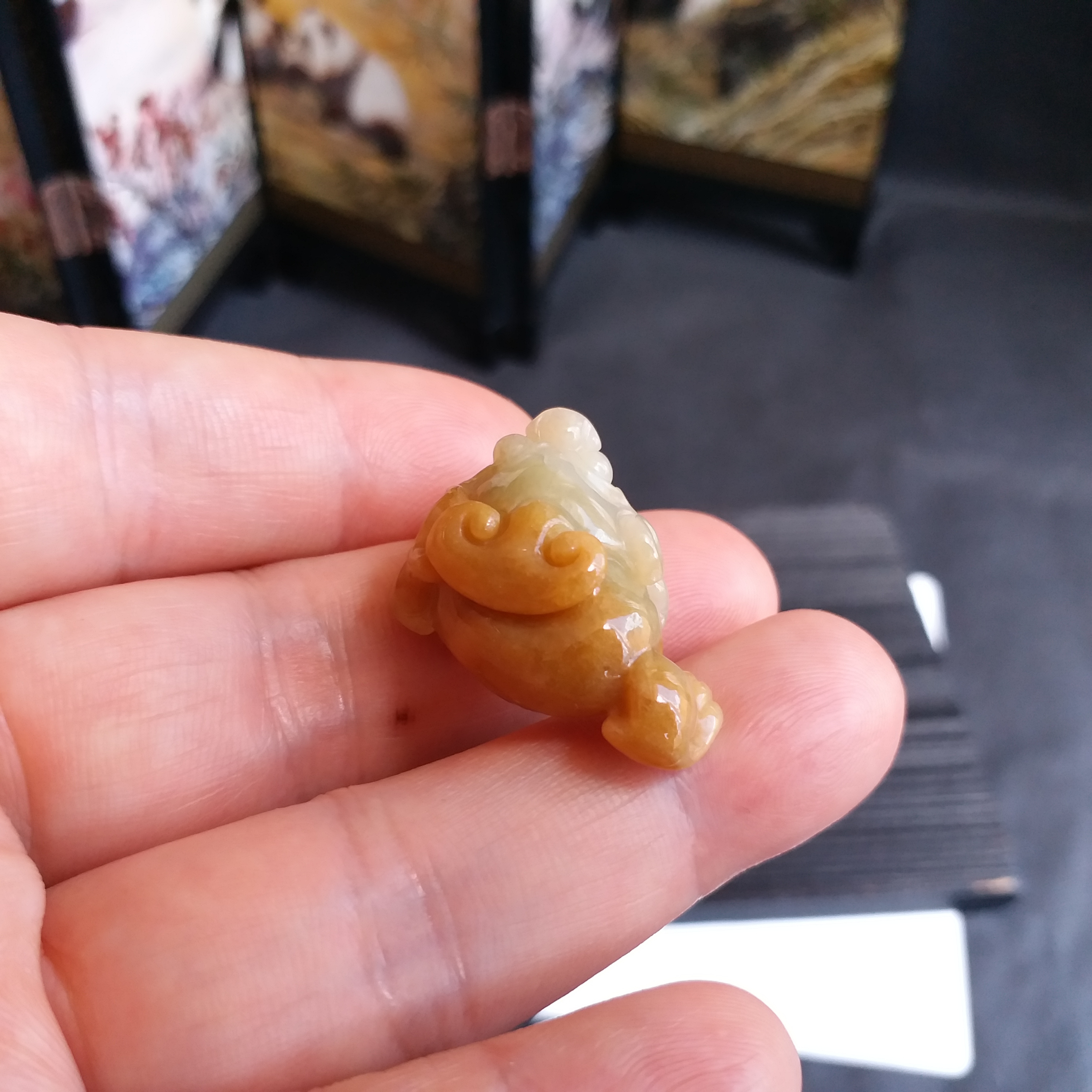 • 翡翠黃翡招財金蟾, 天然翡翠A玉, 緬甸玉, Jade, Jadeite