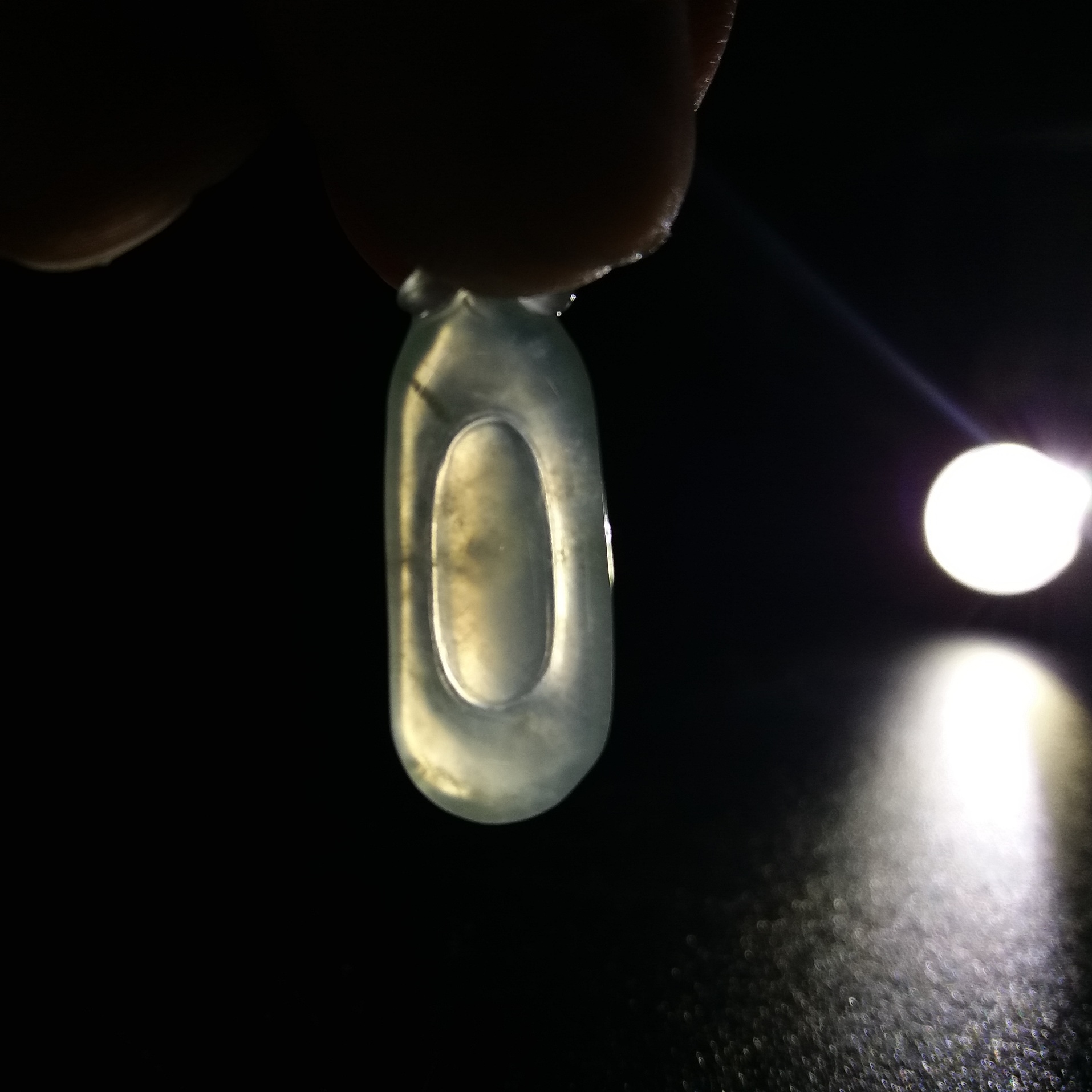 天然翡翠A玉,冰底綠,通透,有孔,完美無裂