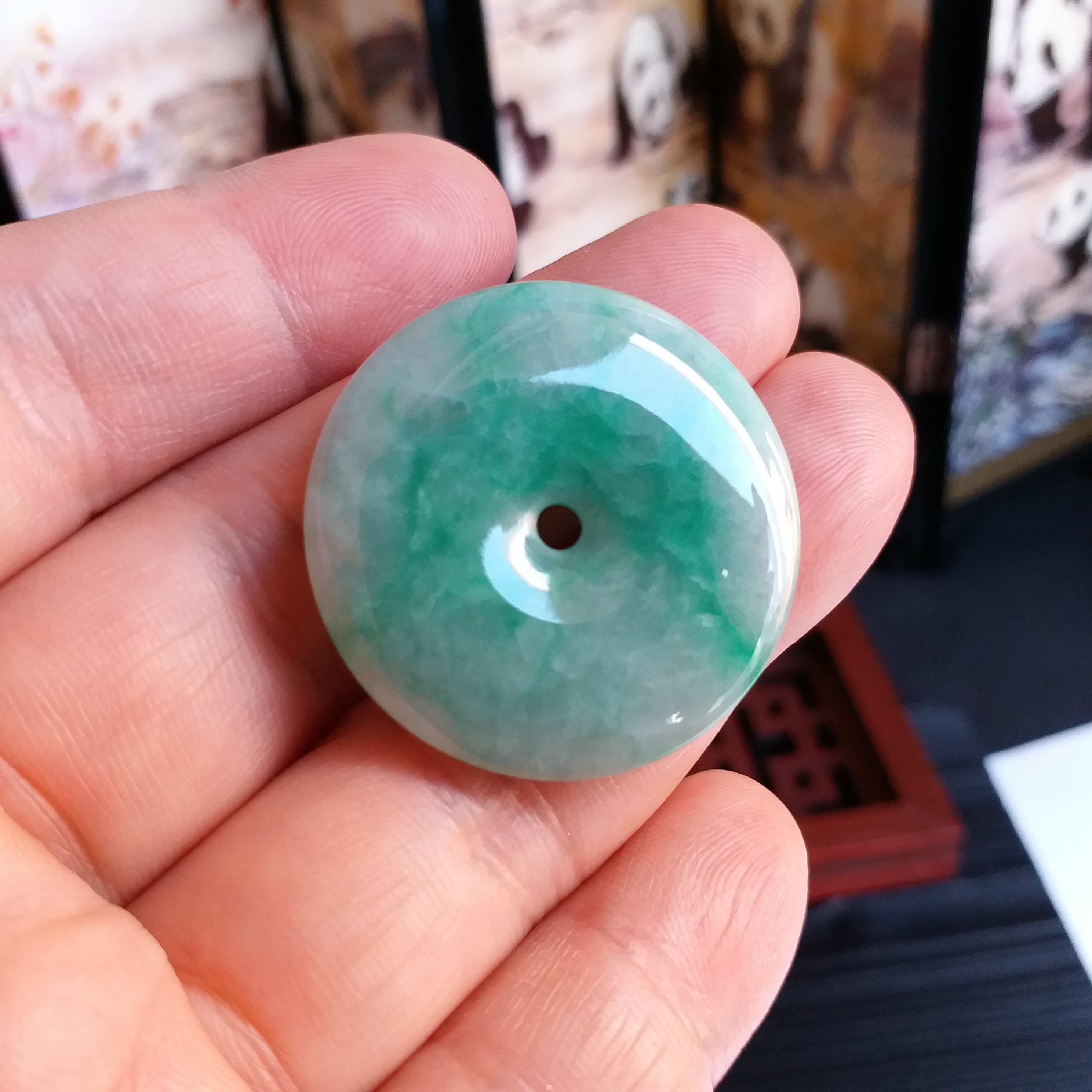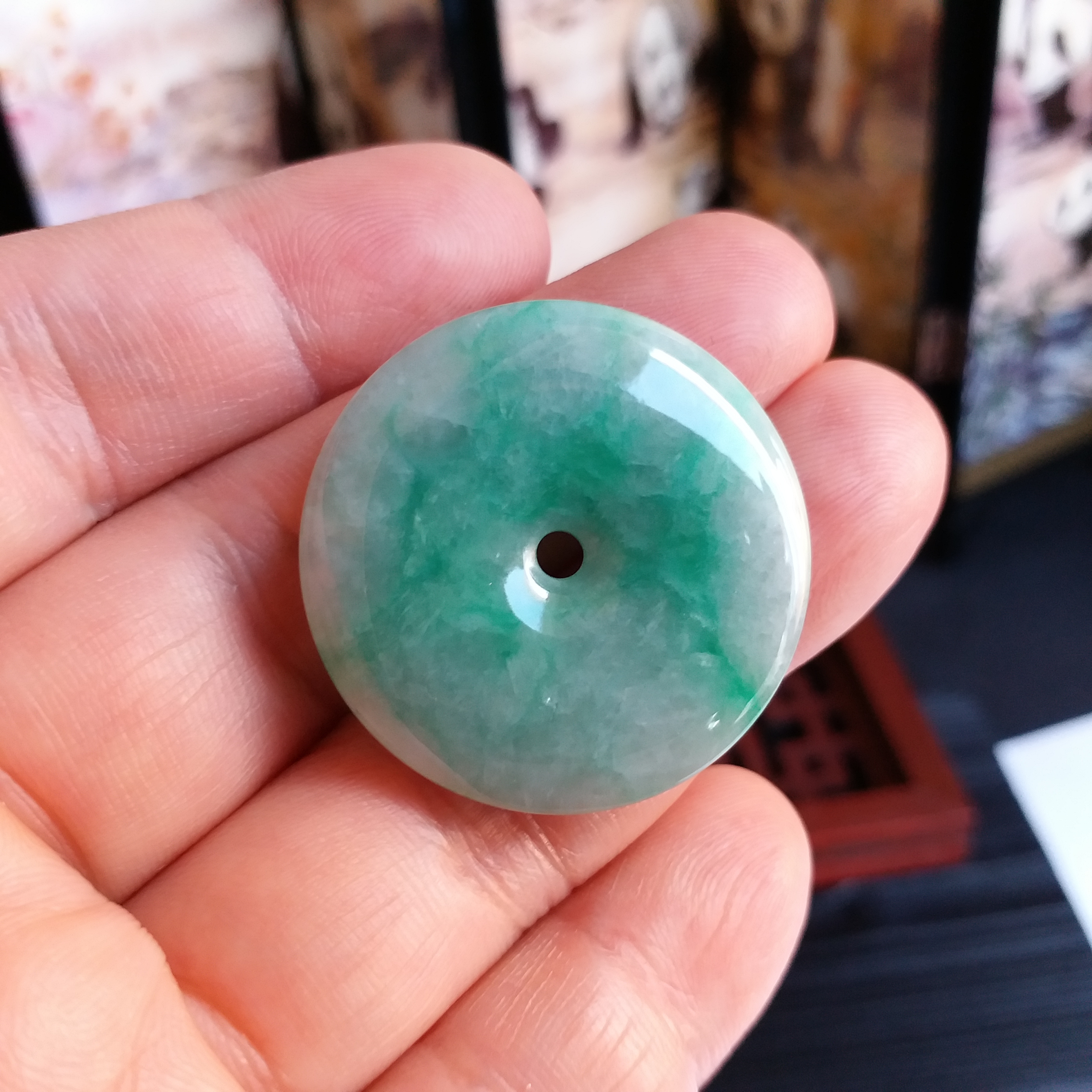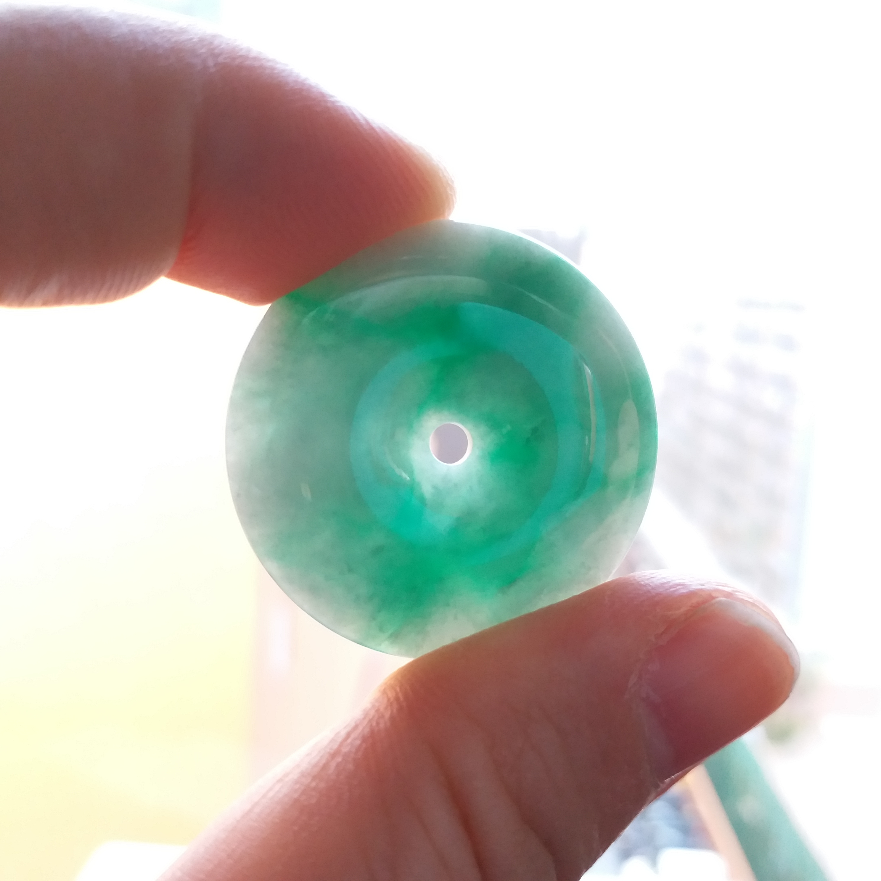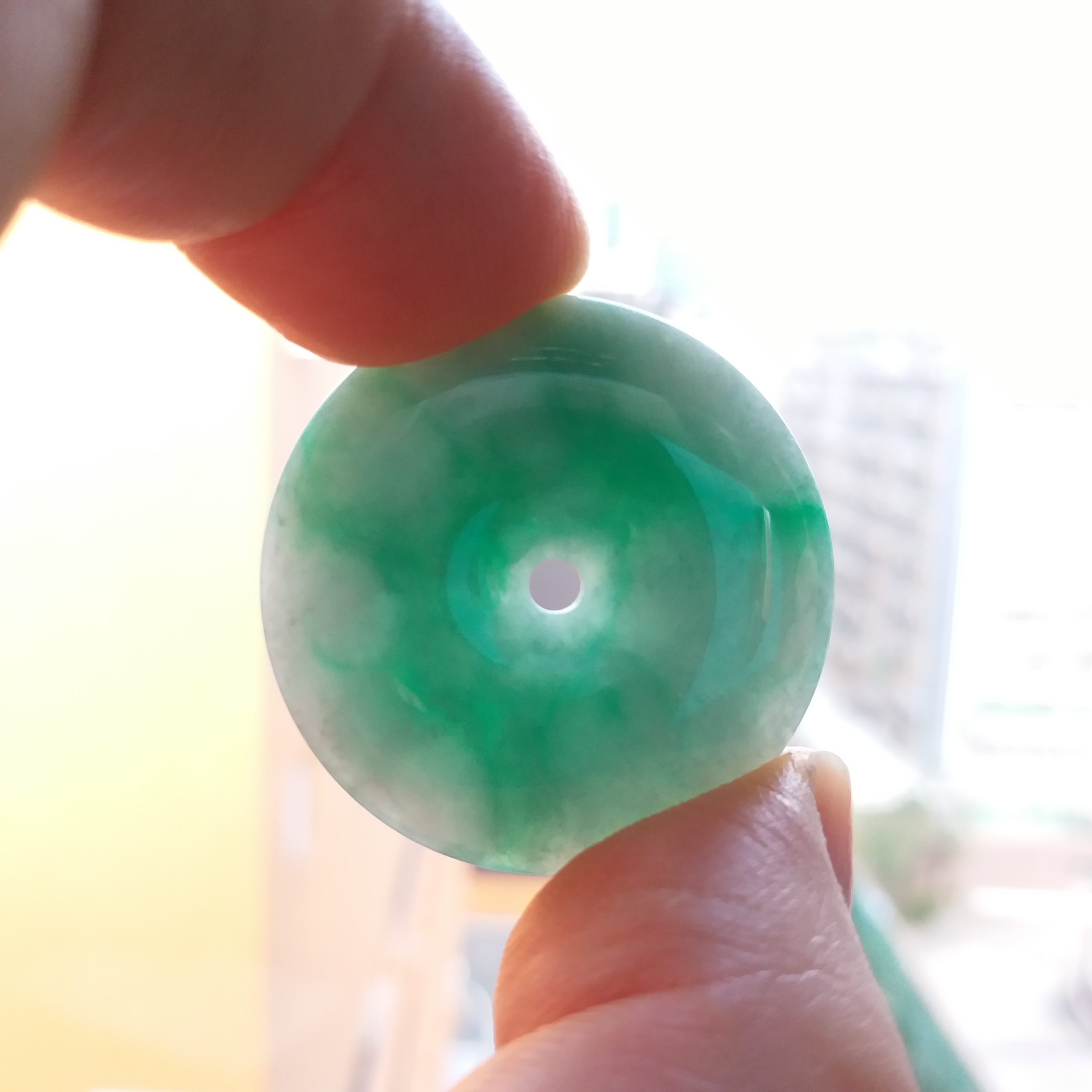 J1196 冰糯飄綠花平安扣 (31.4mm直徑)