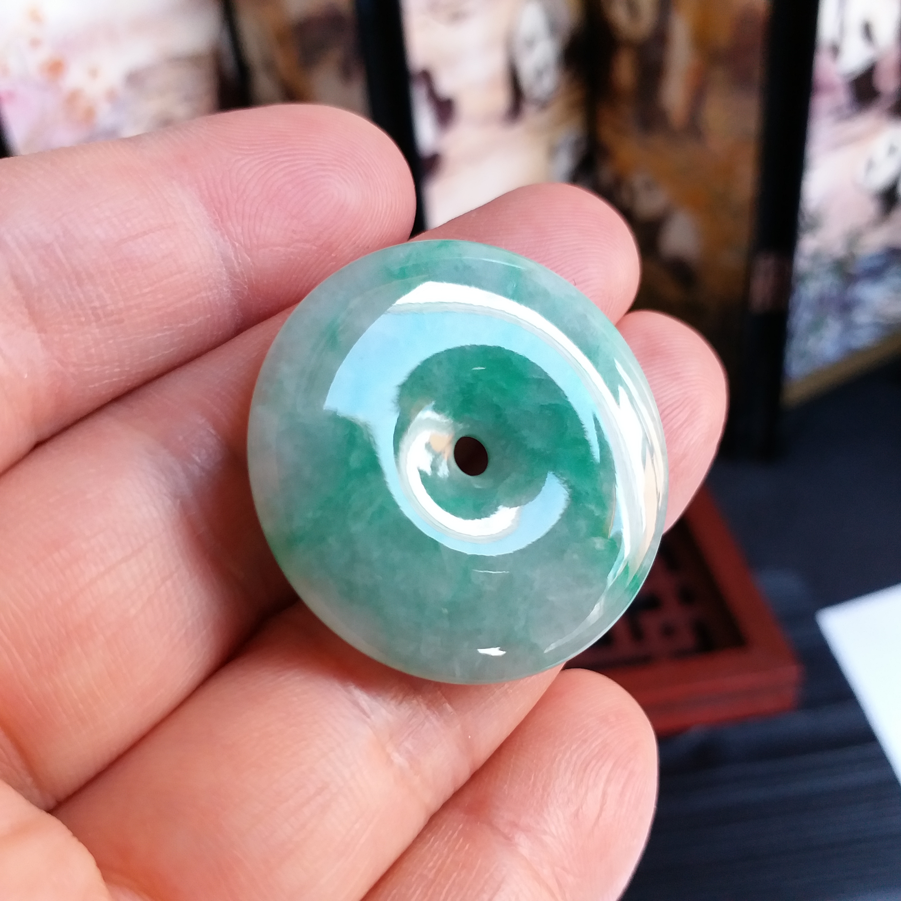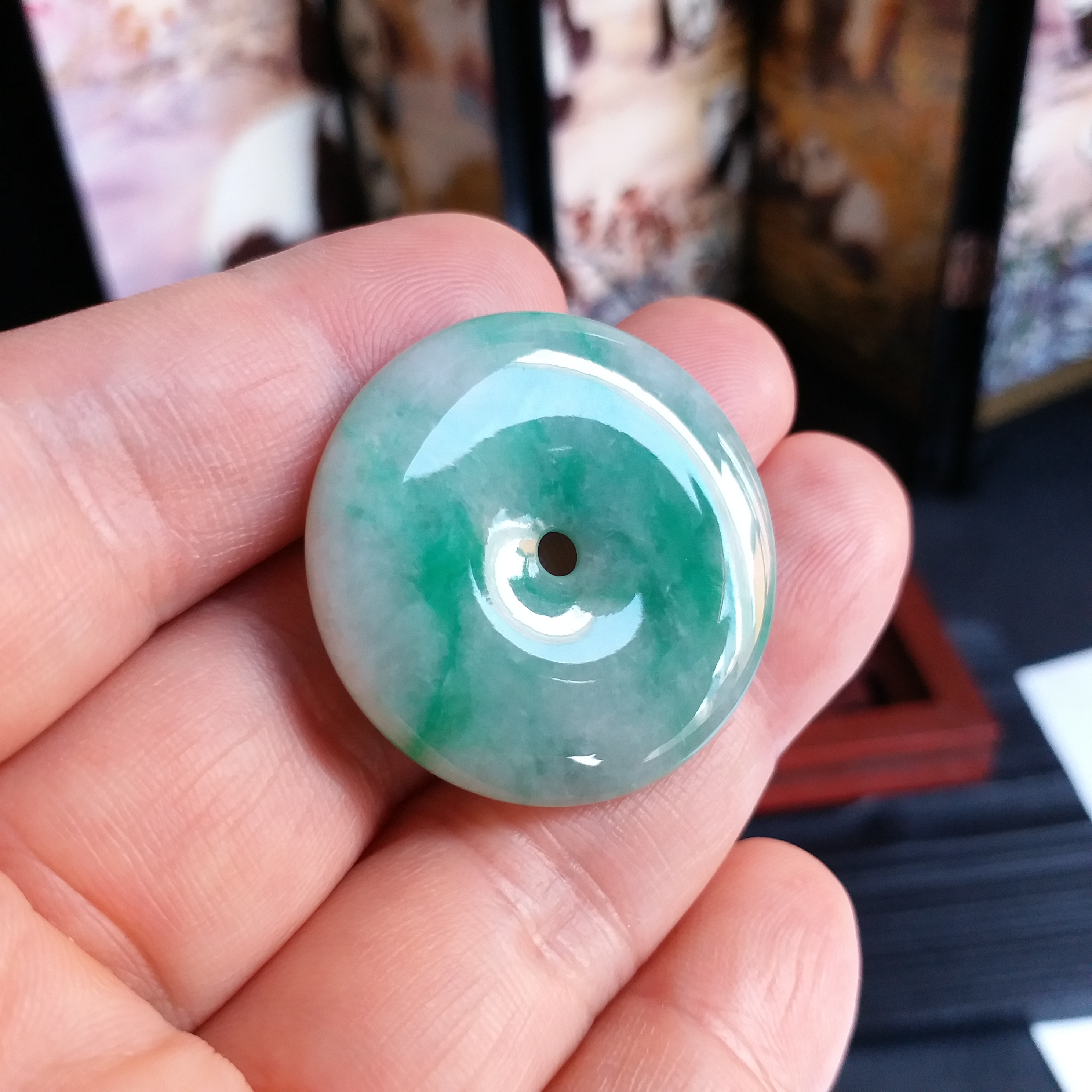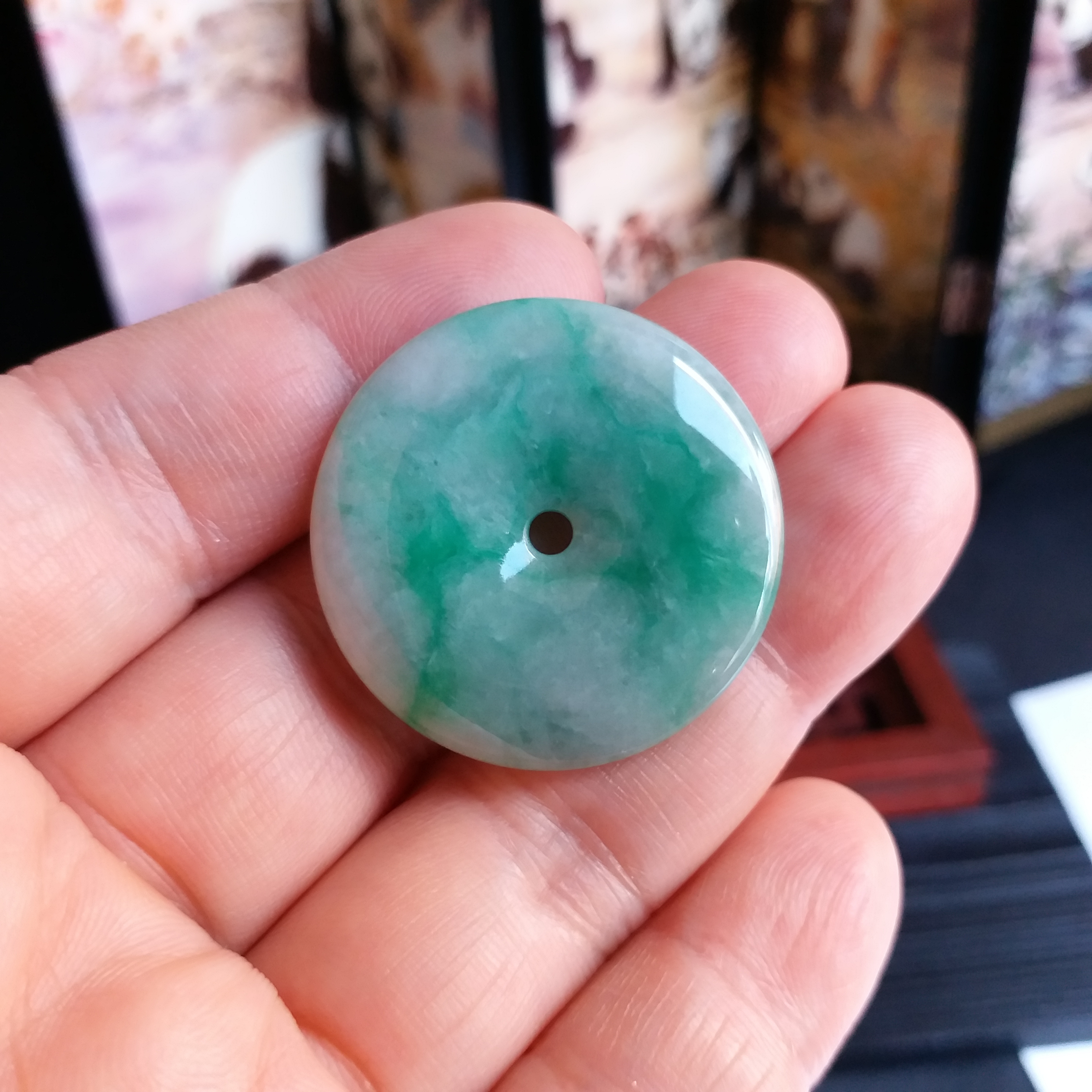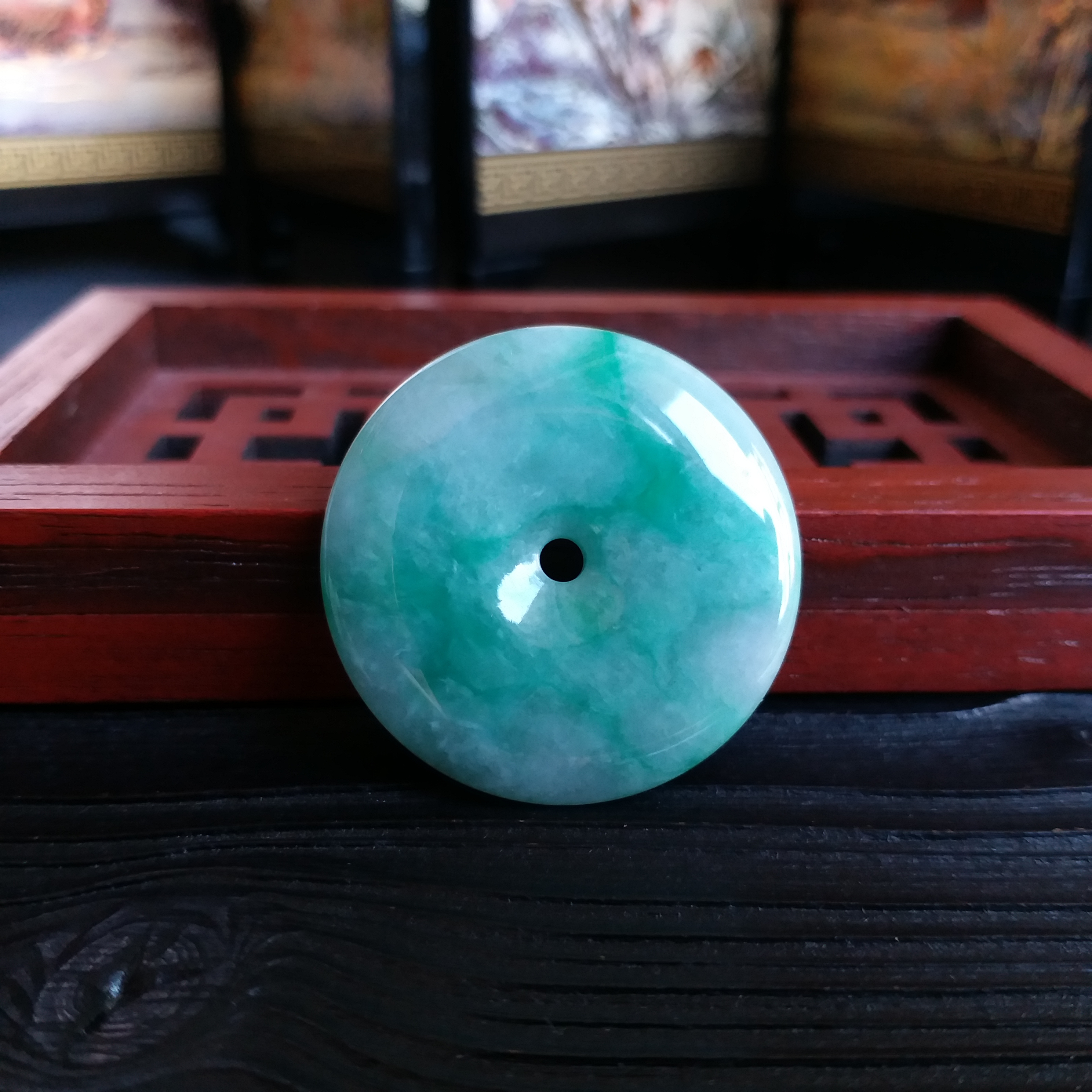 J1196 冰糯飄綠花平安扣 (31.4mm直徑)