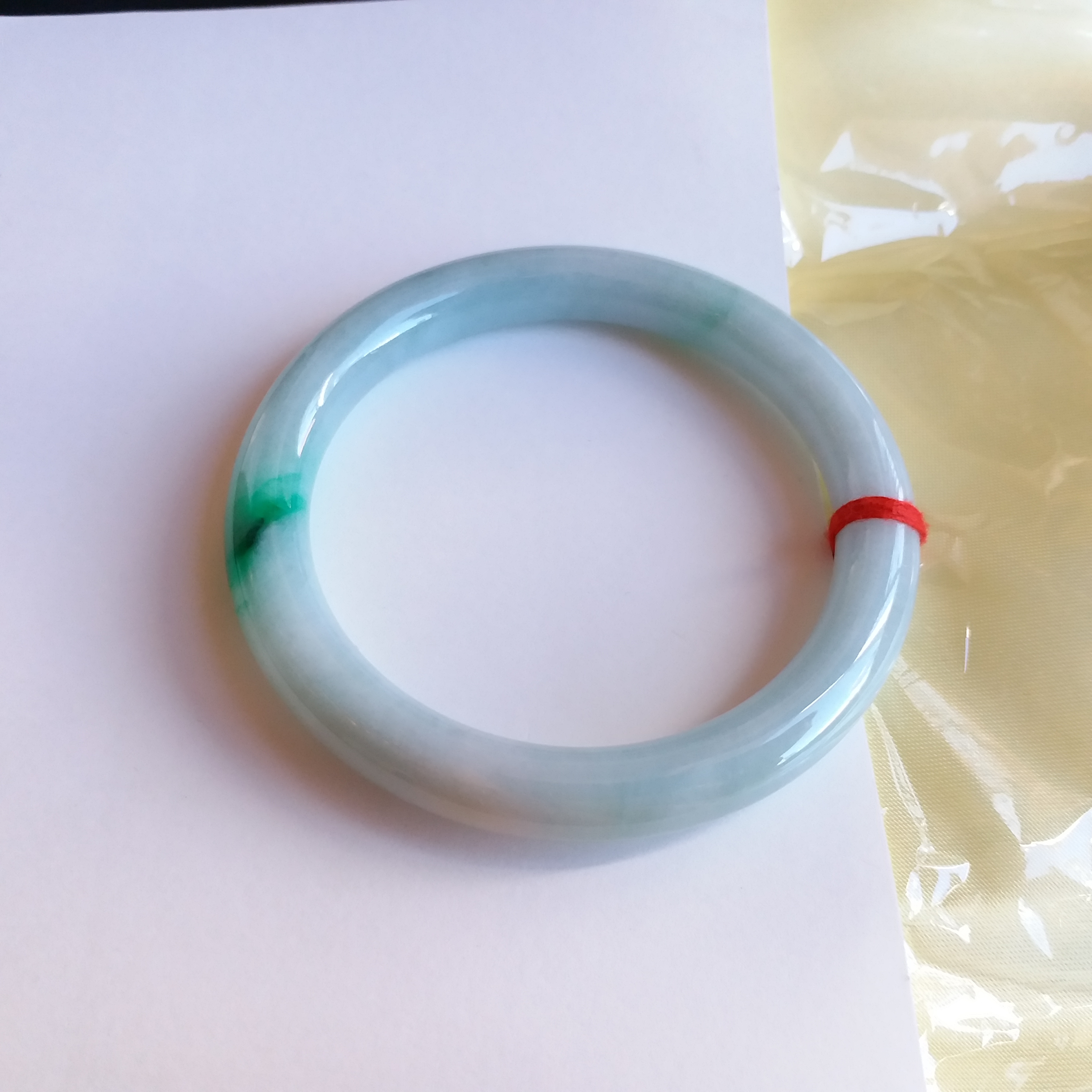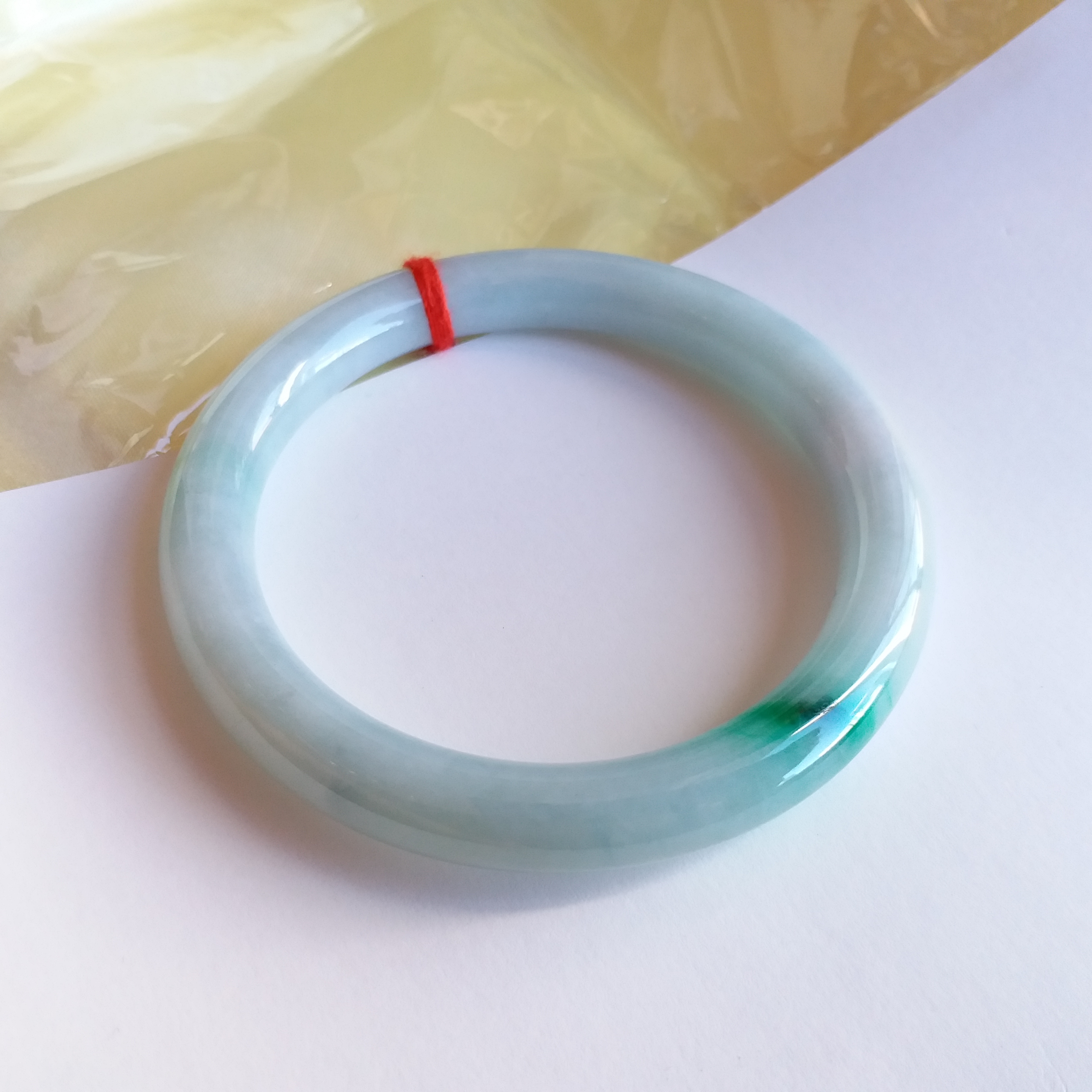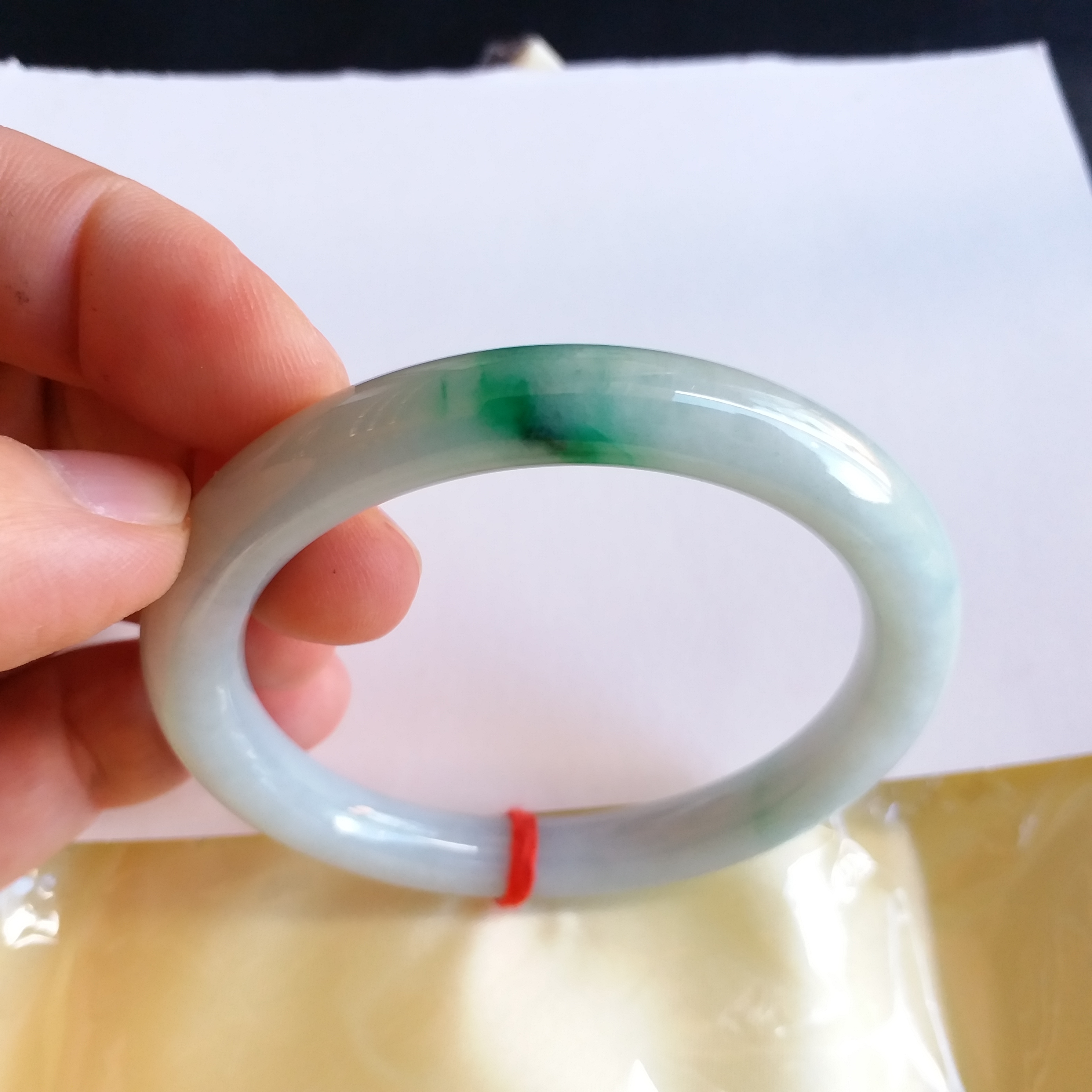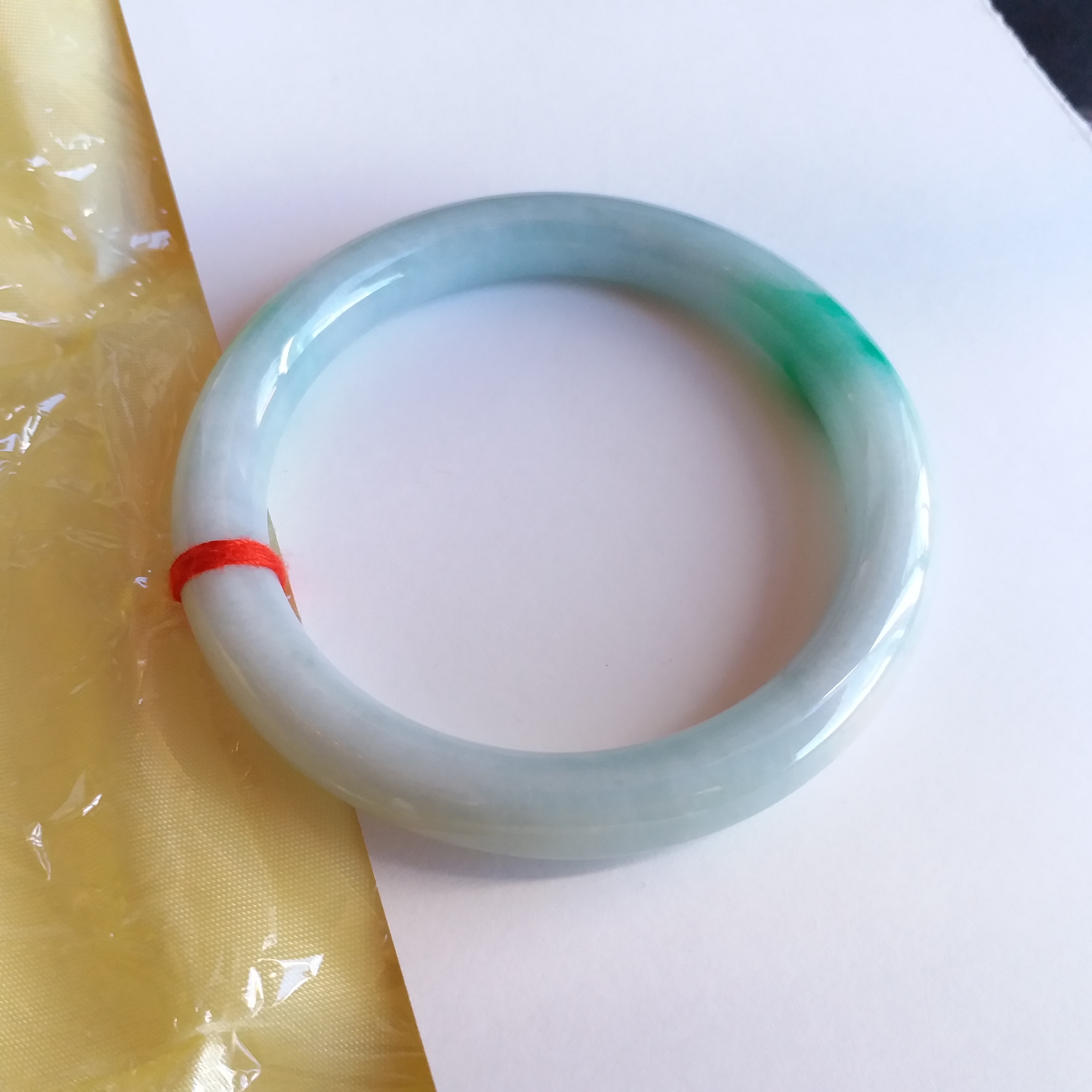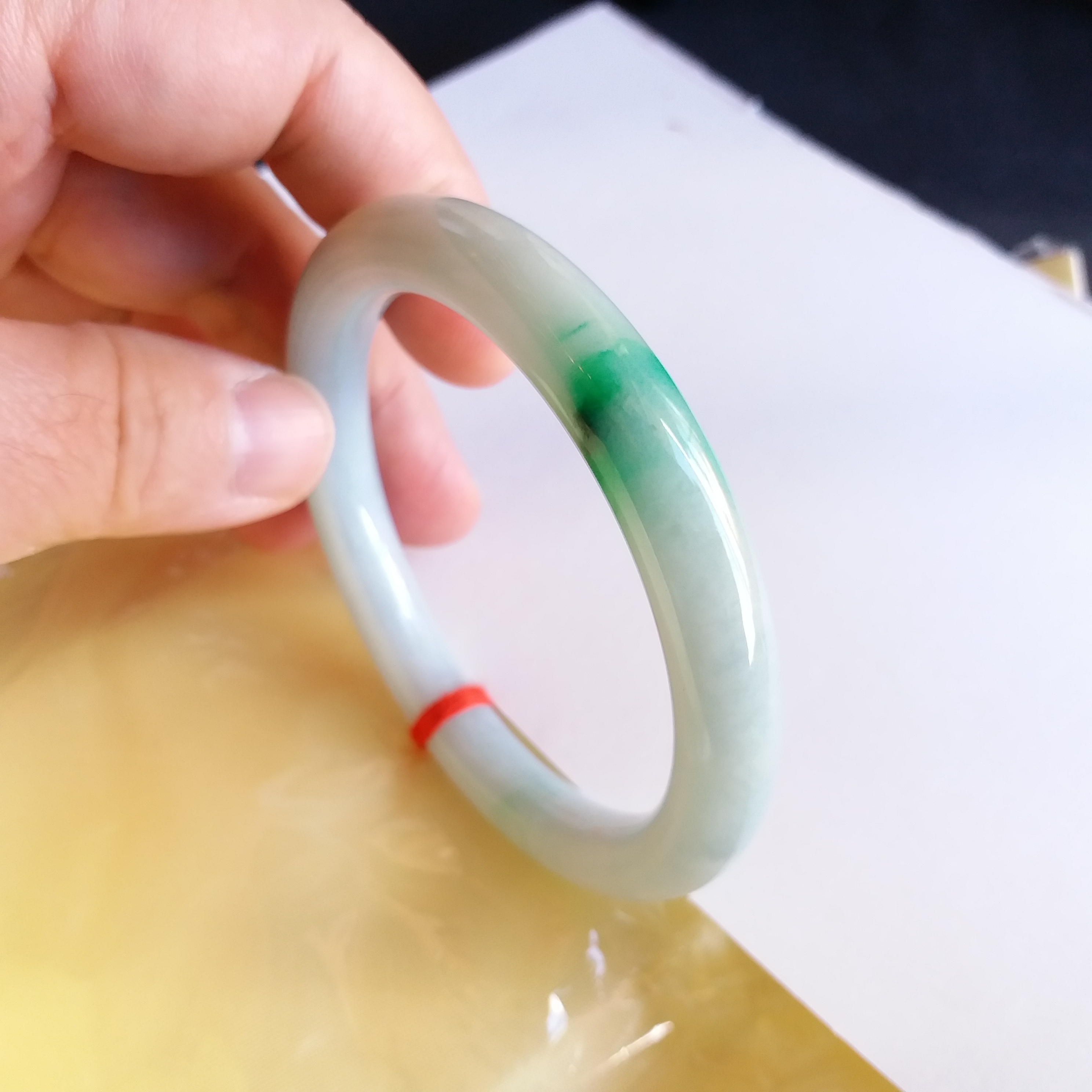 • 冰糯飄晴綠圓條玉鐲 56.2mm, 天然翡翠A玉, 緬甸玉, Jade, Jadeite