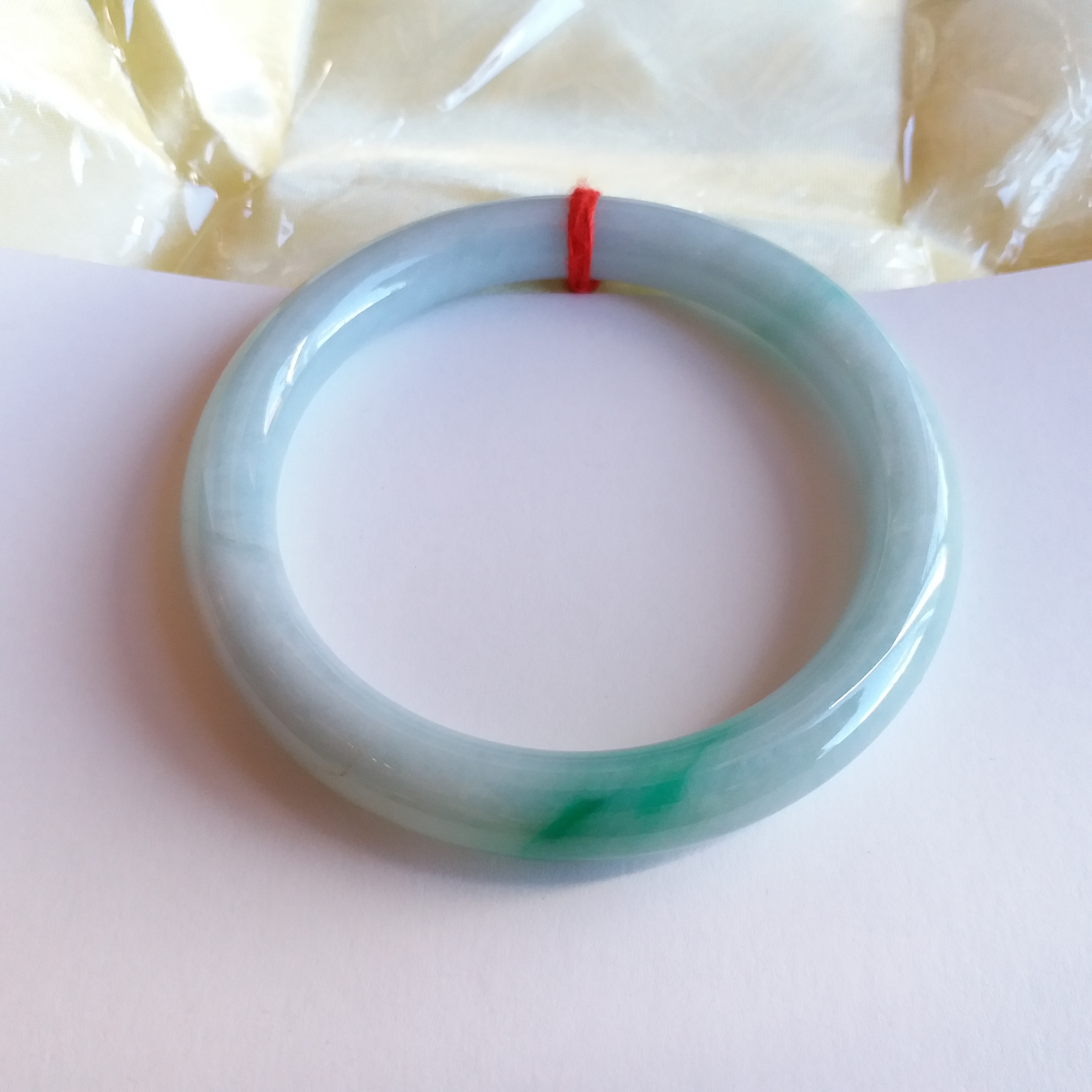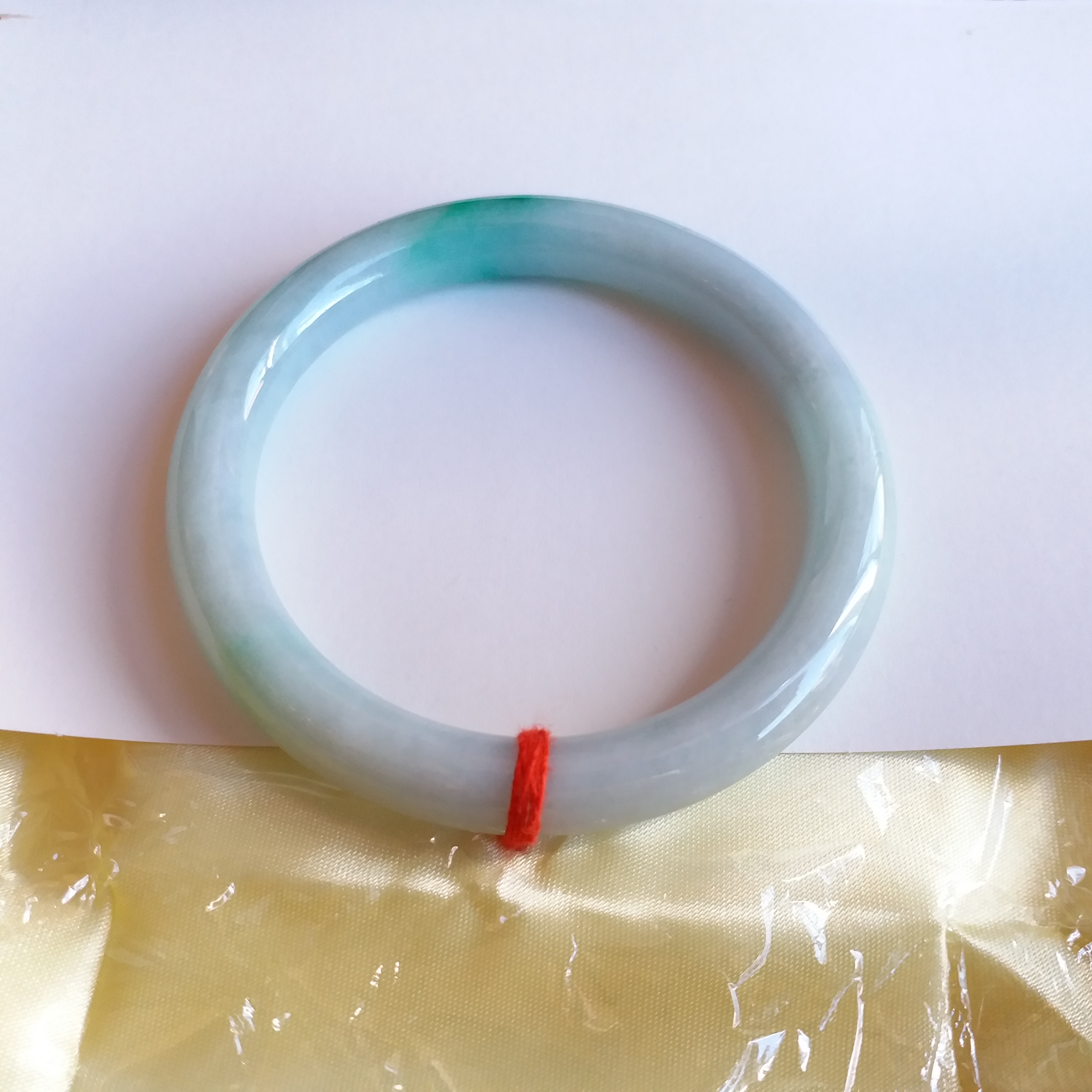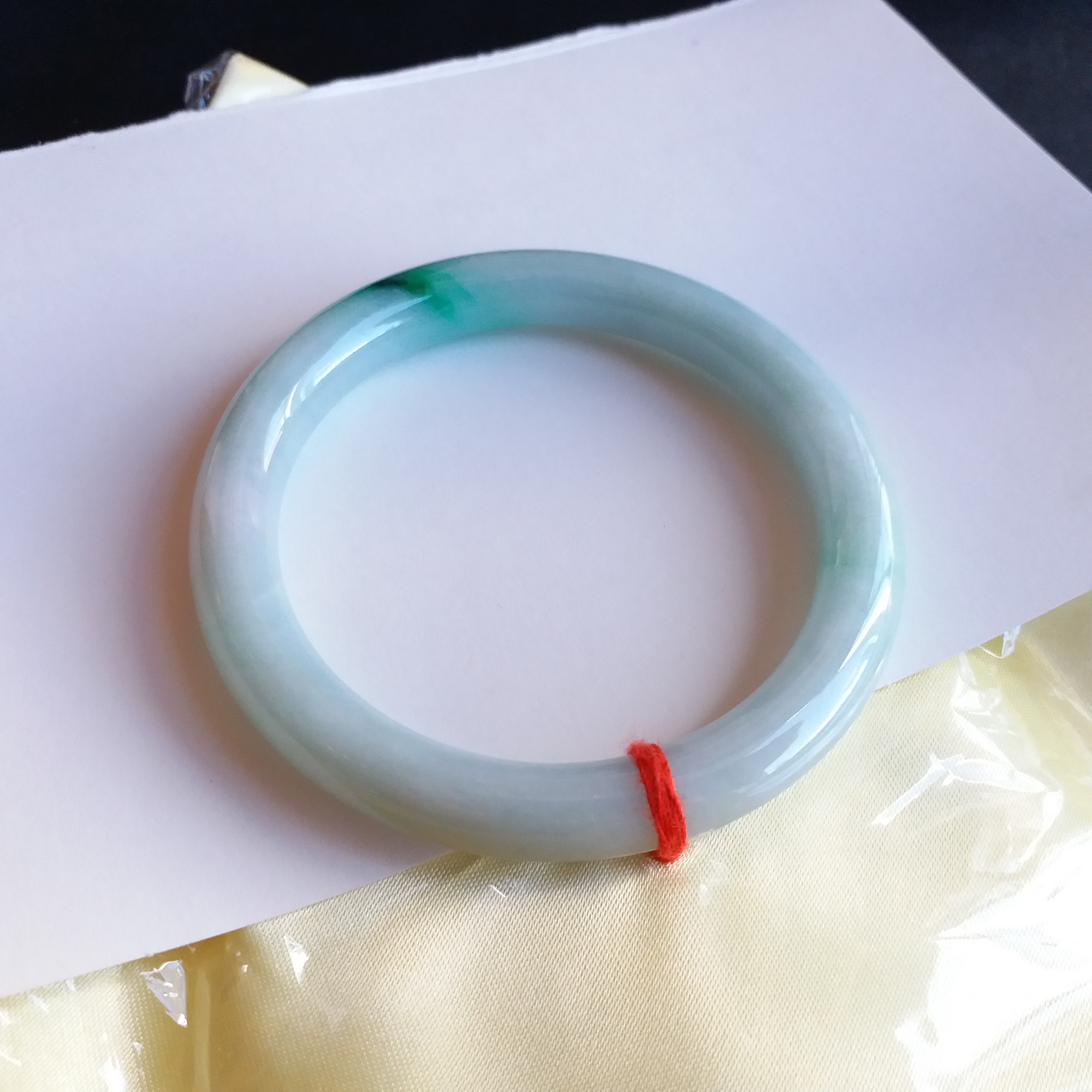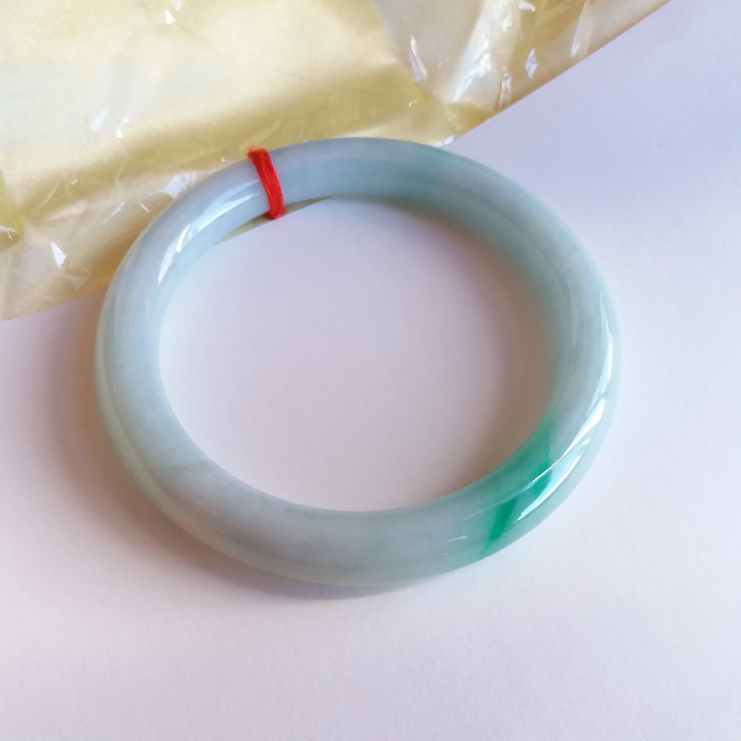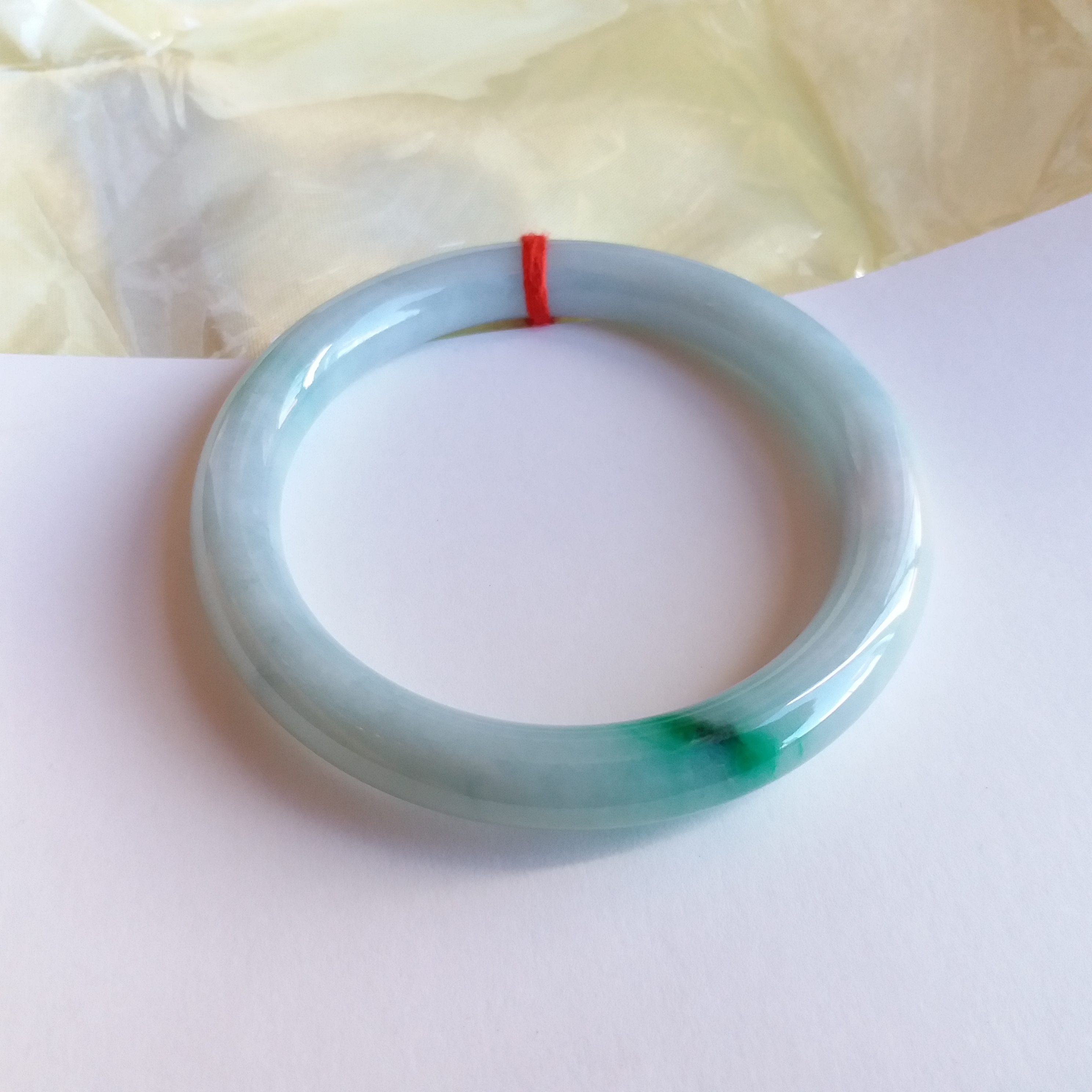 • 冰糯飄晴綠圓條玉鐲 56.2mm, 天然翡翠A玉, 緬甸玉, Jade, Jadeite