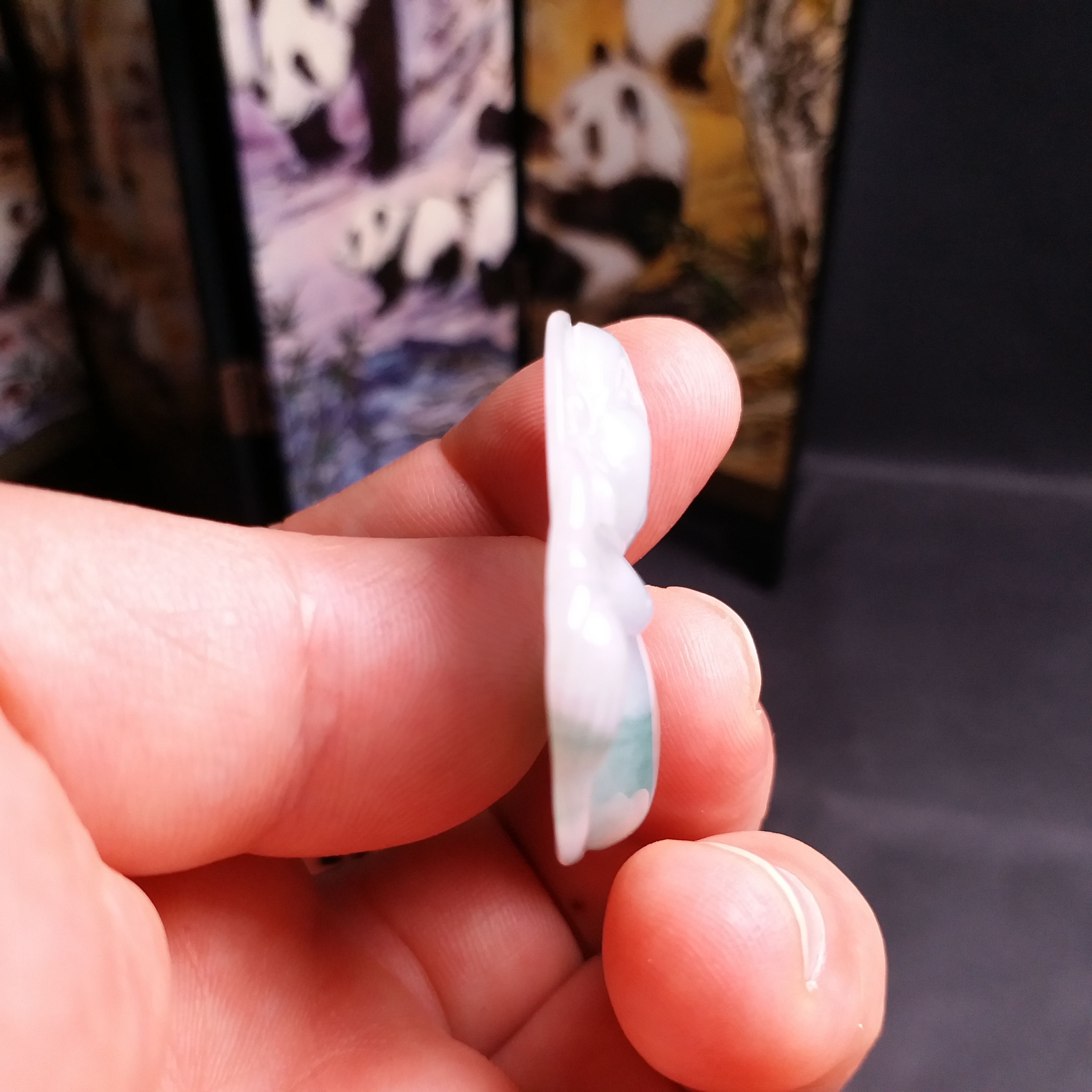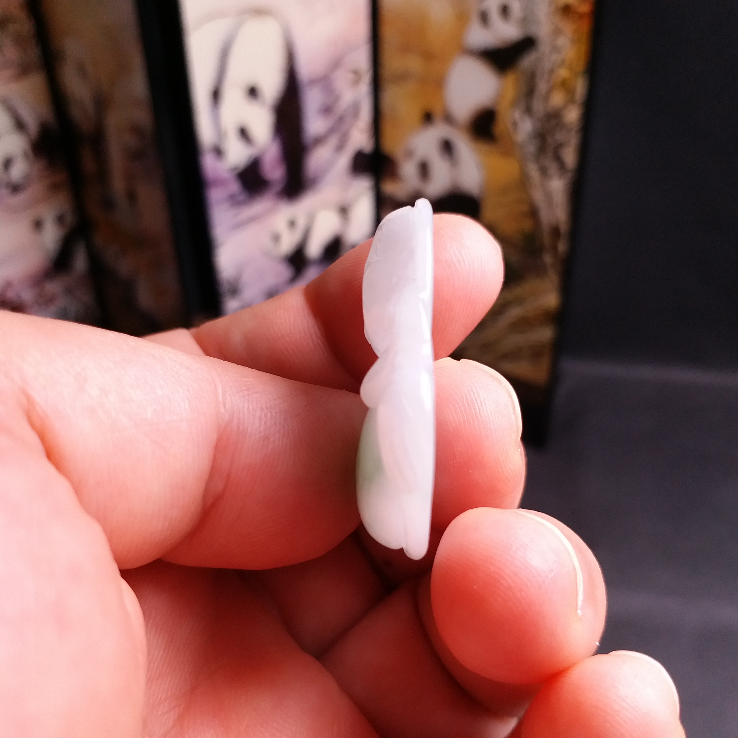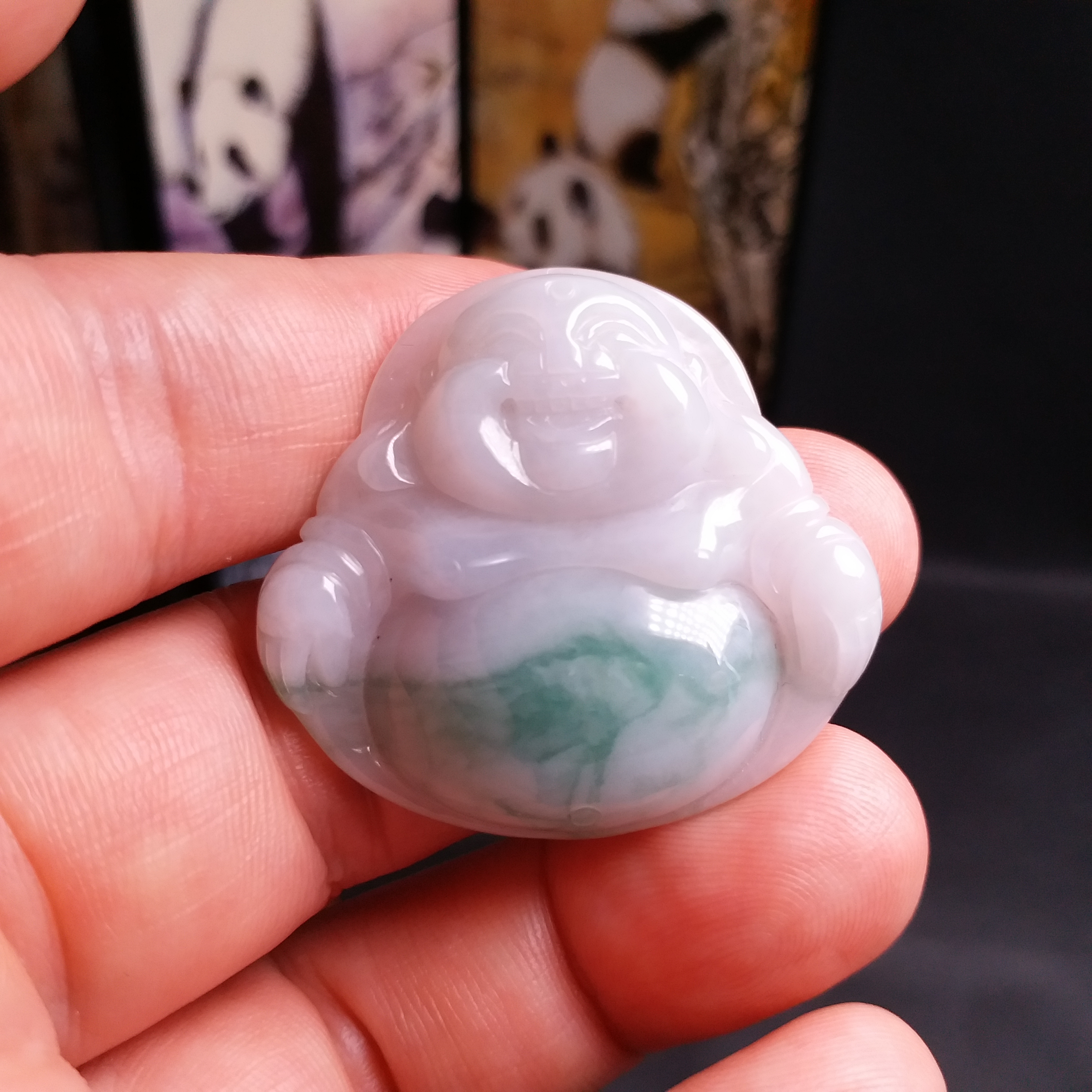 • 冰糯白底飄花笑佛吊墜, 天然翡翠A玉, 緬甸玉, Jade, Jadeite
