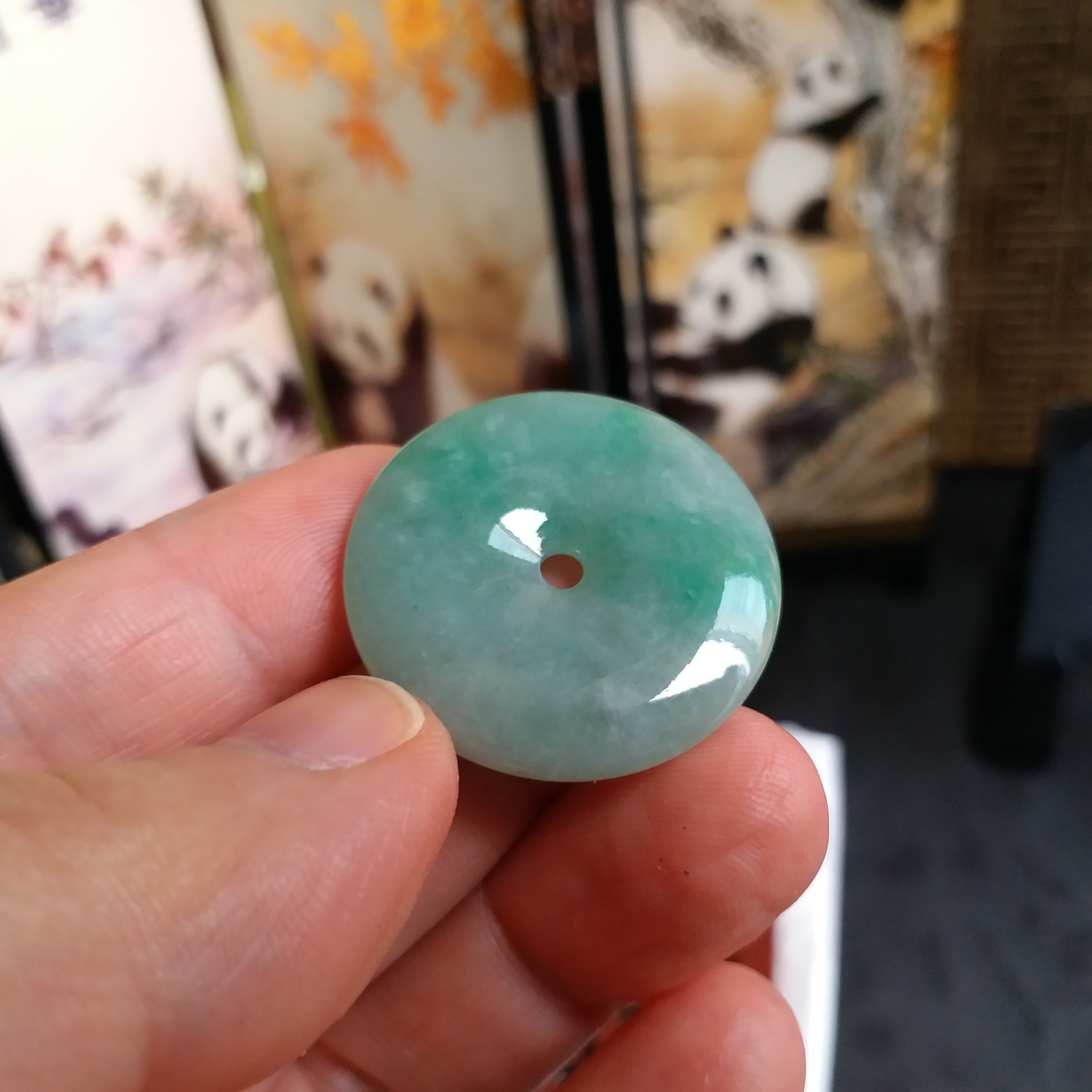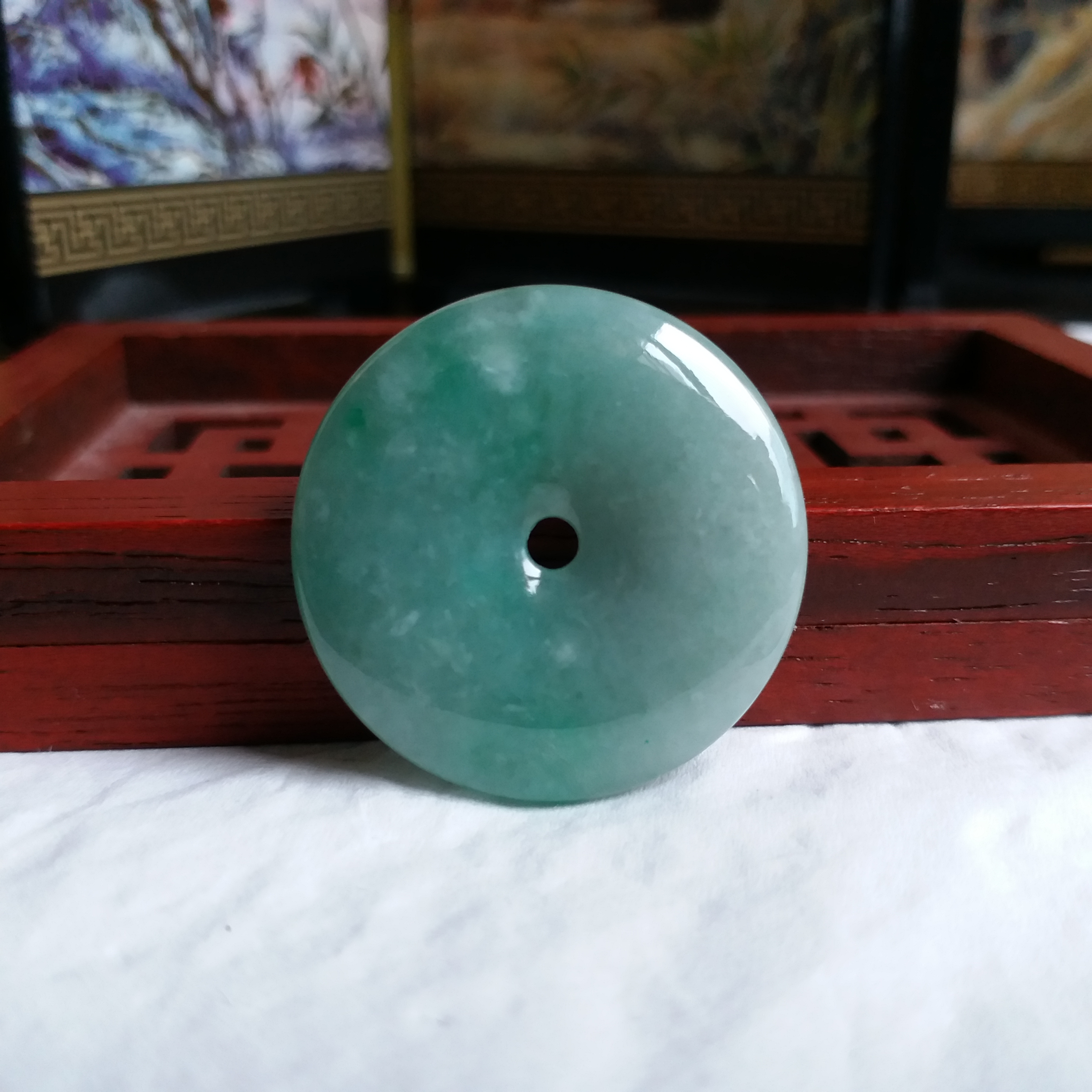 J1337 冰糯滿綠平安扣