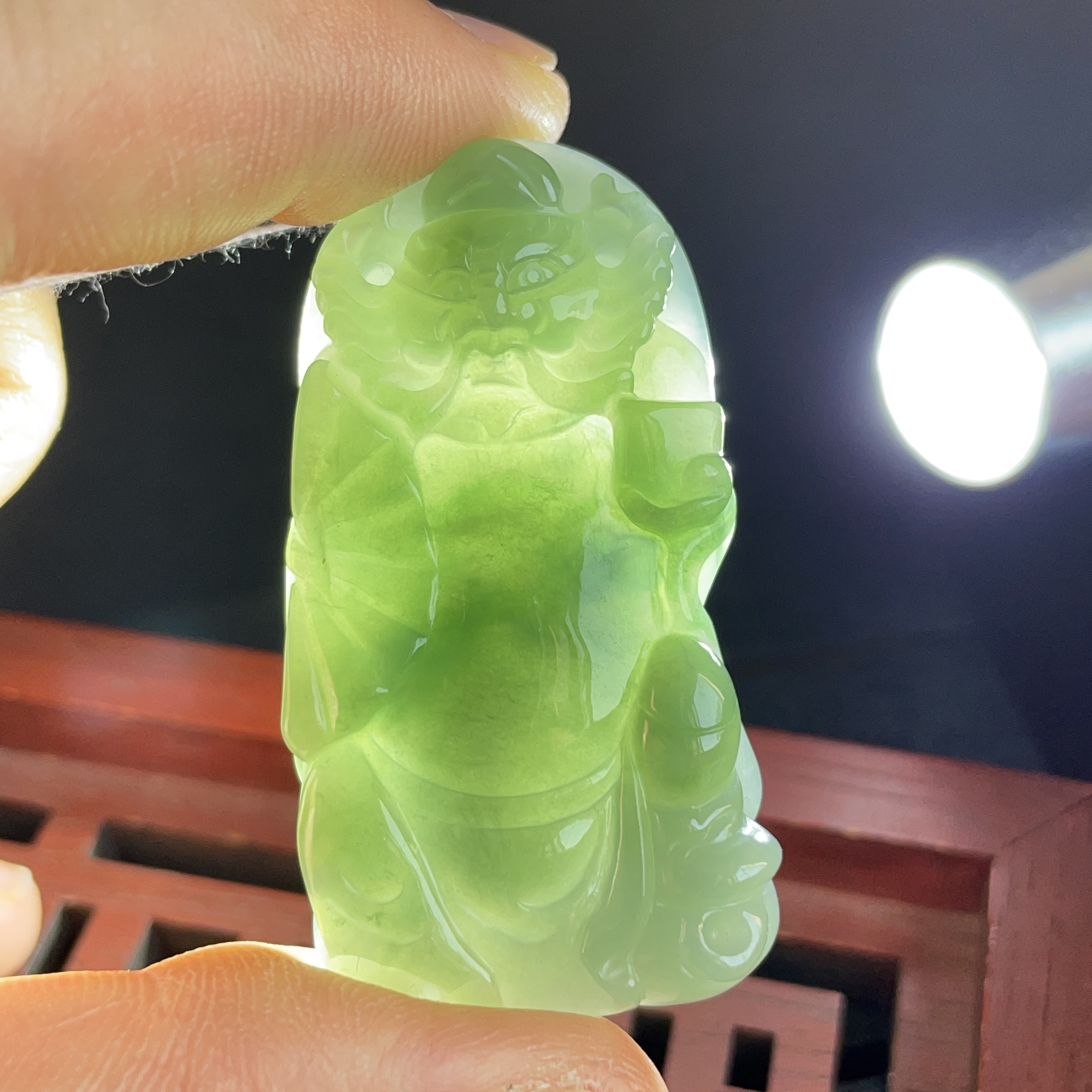 • 翡翠冰糯油綠鍾馗吊墜,天然翡翠A玉, 緬甸玉, Jade, Jadeite