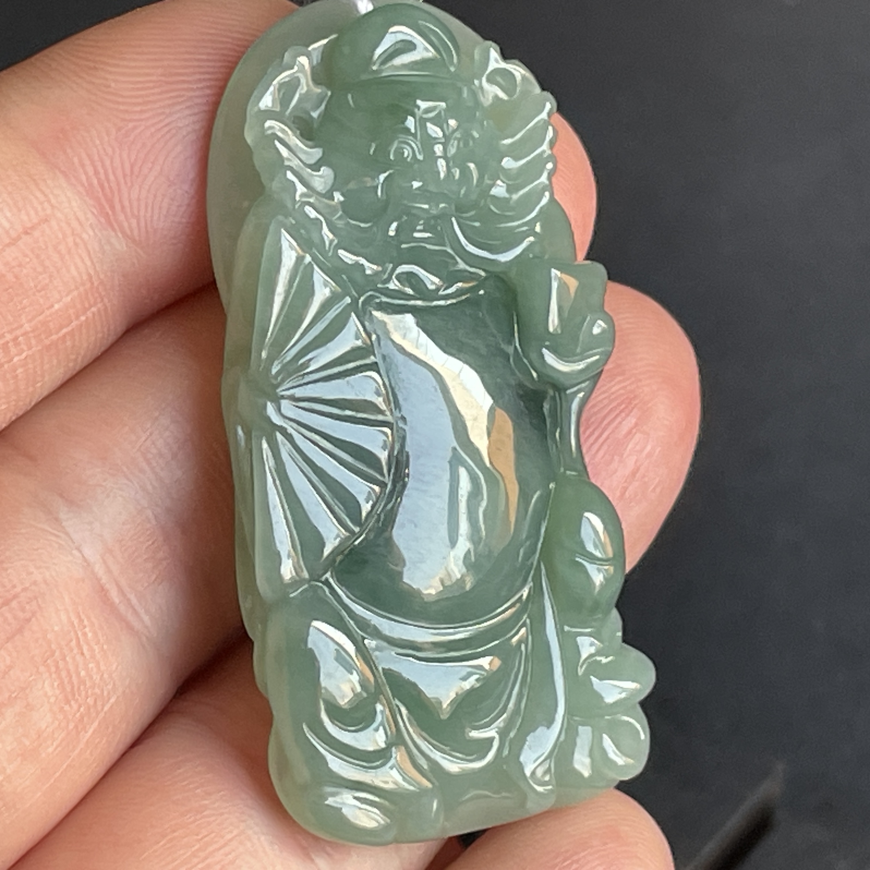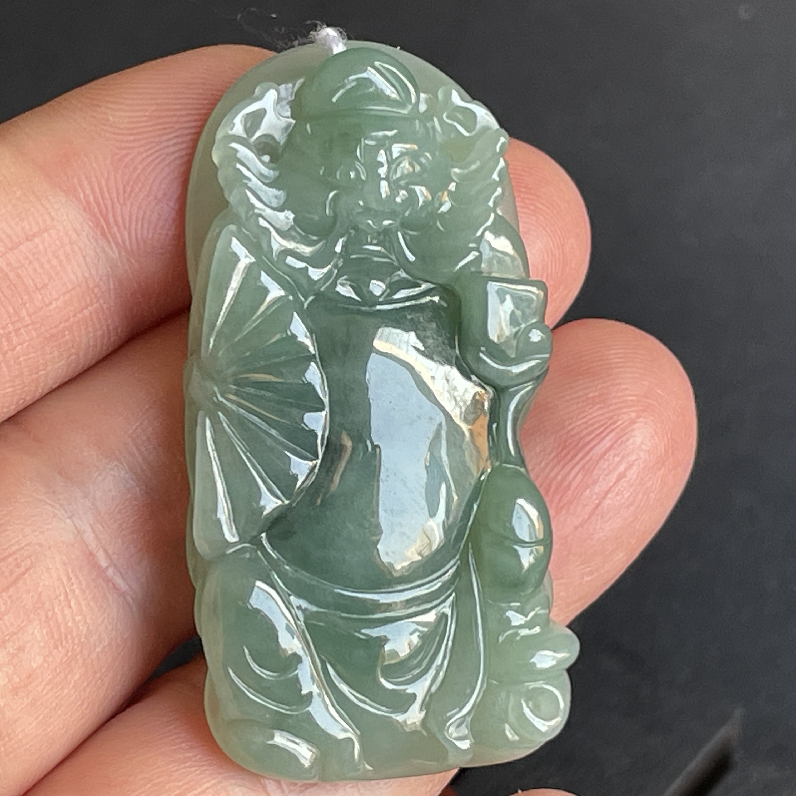 J1371 翡翠冰糯油綠鍾馗吊墜