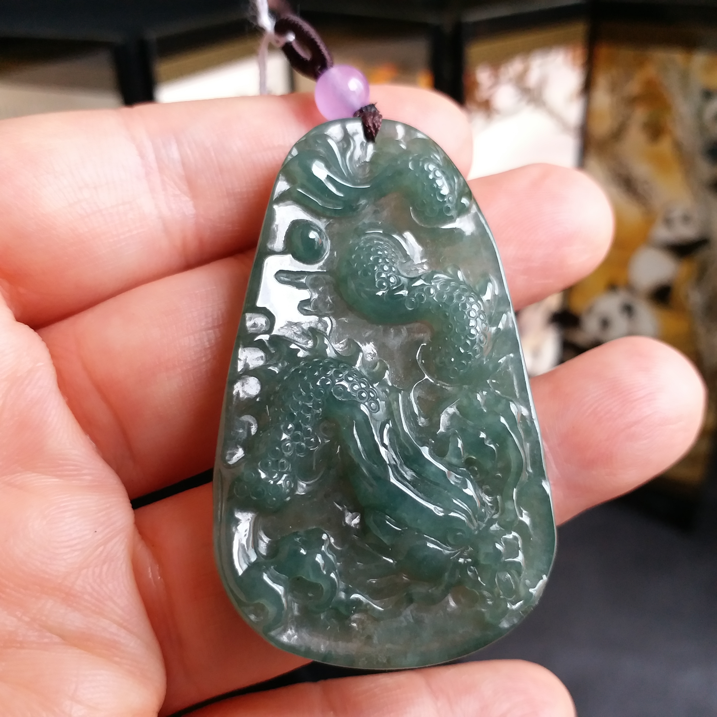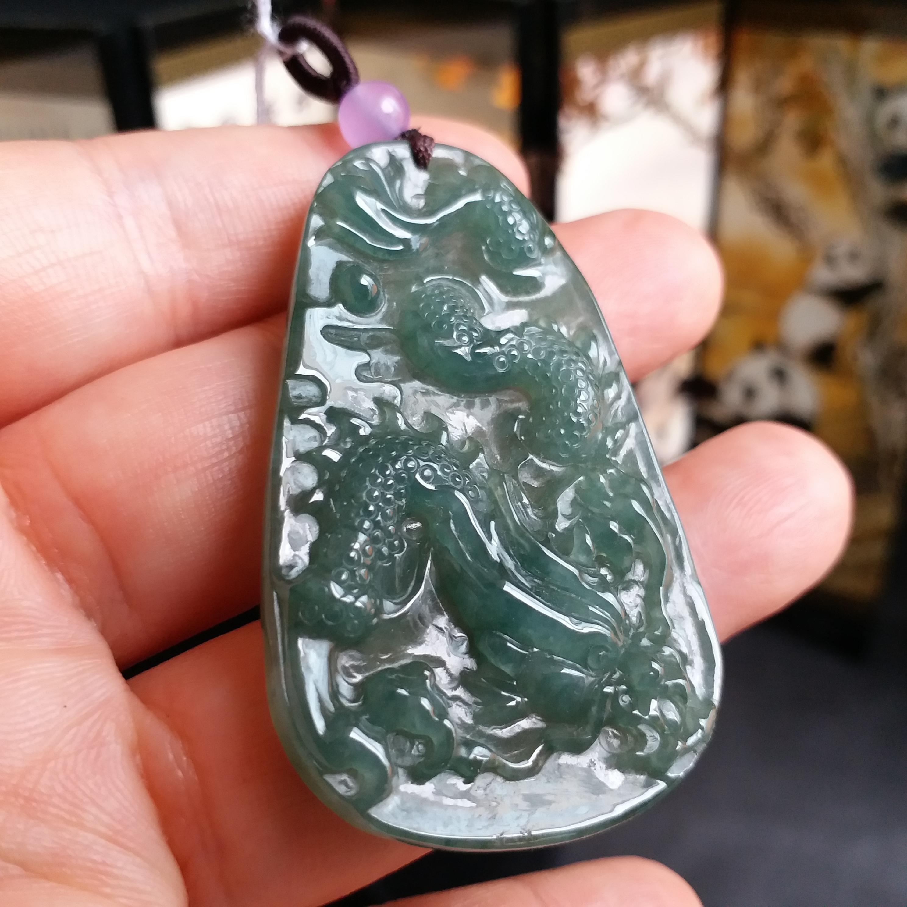 • 冰油綠龍吊墜, 天然翡翠A玉, 緬甸玉, Jade, Jadeite