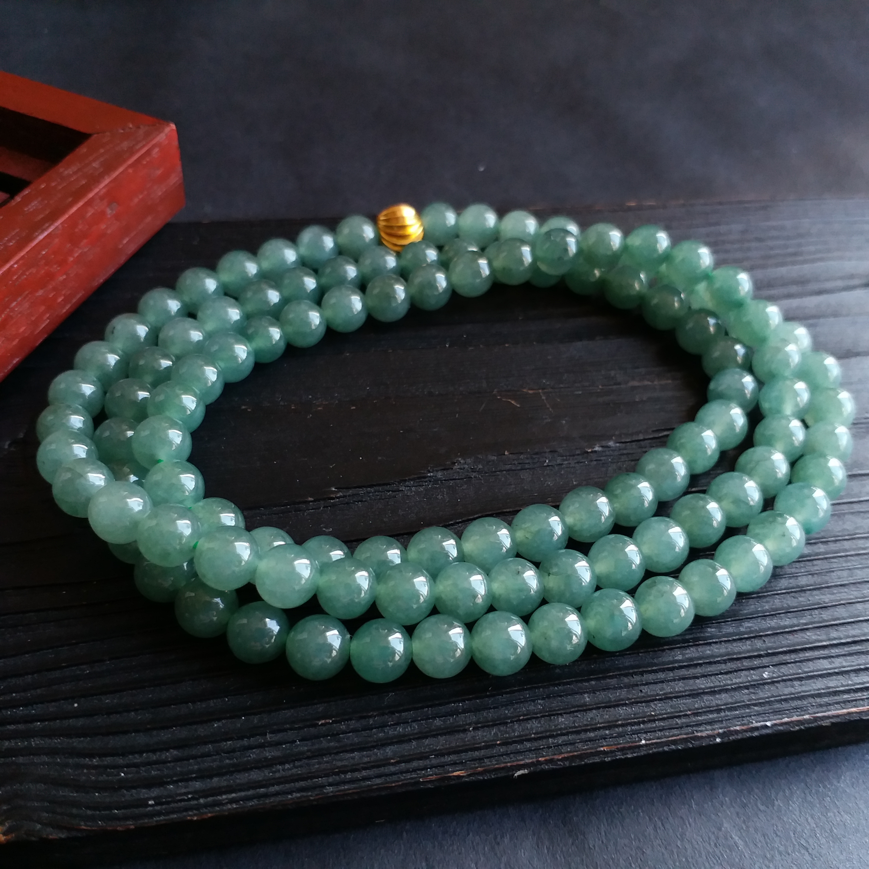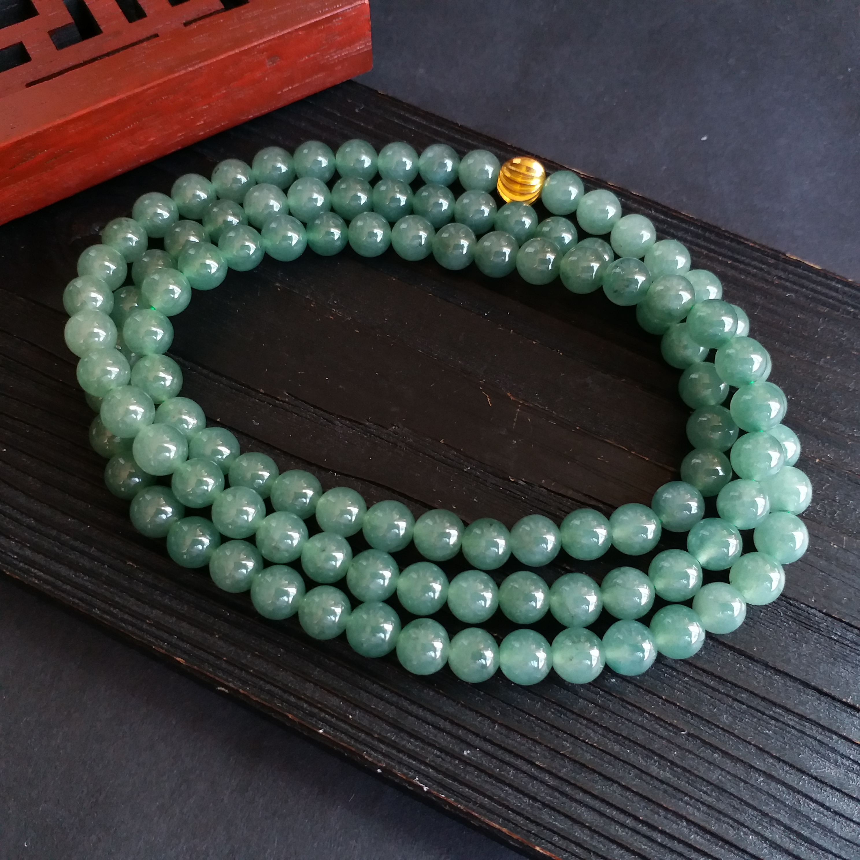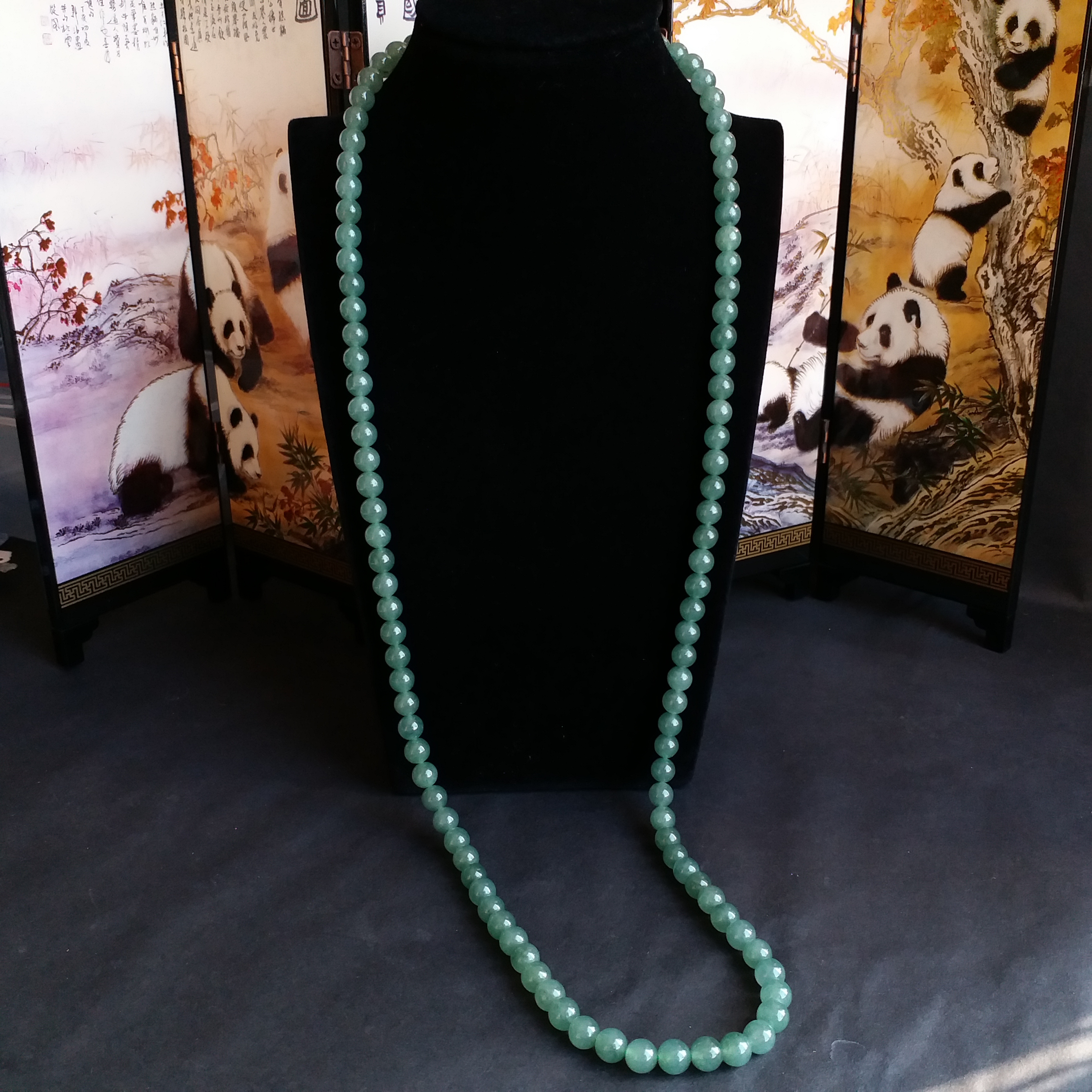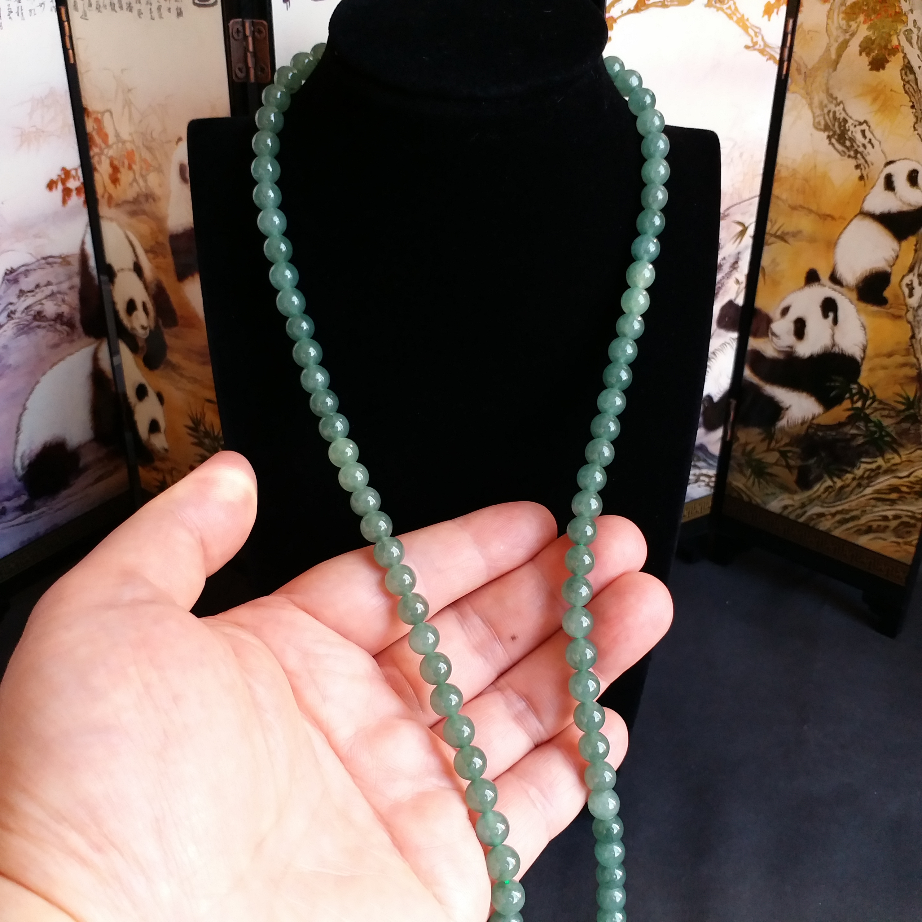 • 冰油綠翡翠玉珠項鍊 (6.9mm直徑), 天然翡翠A玉, 緬甸玉, Jade, Jadeite