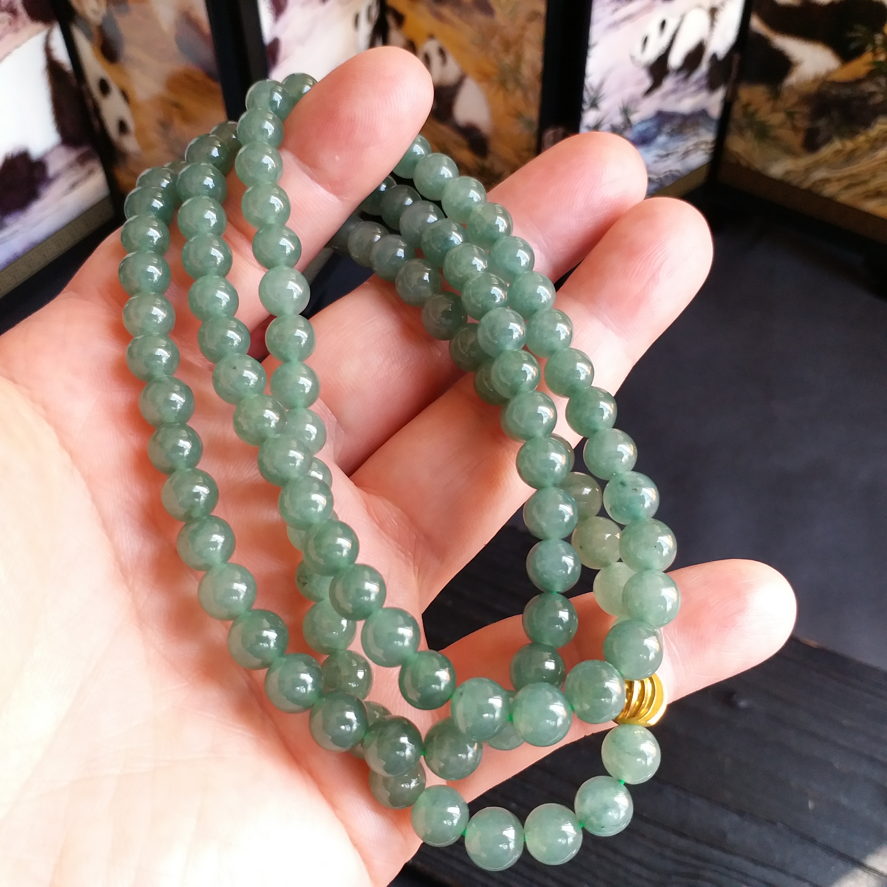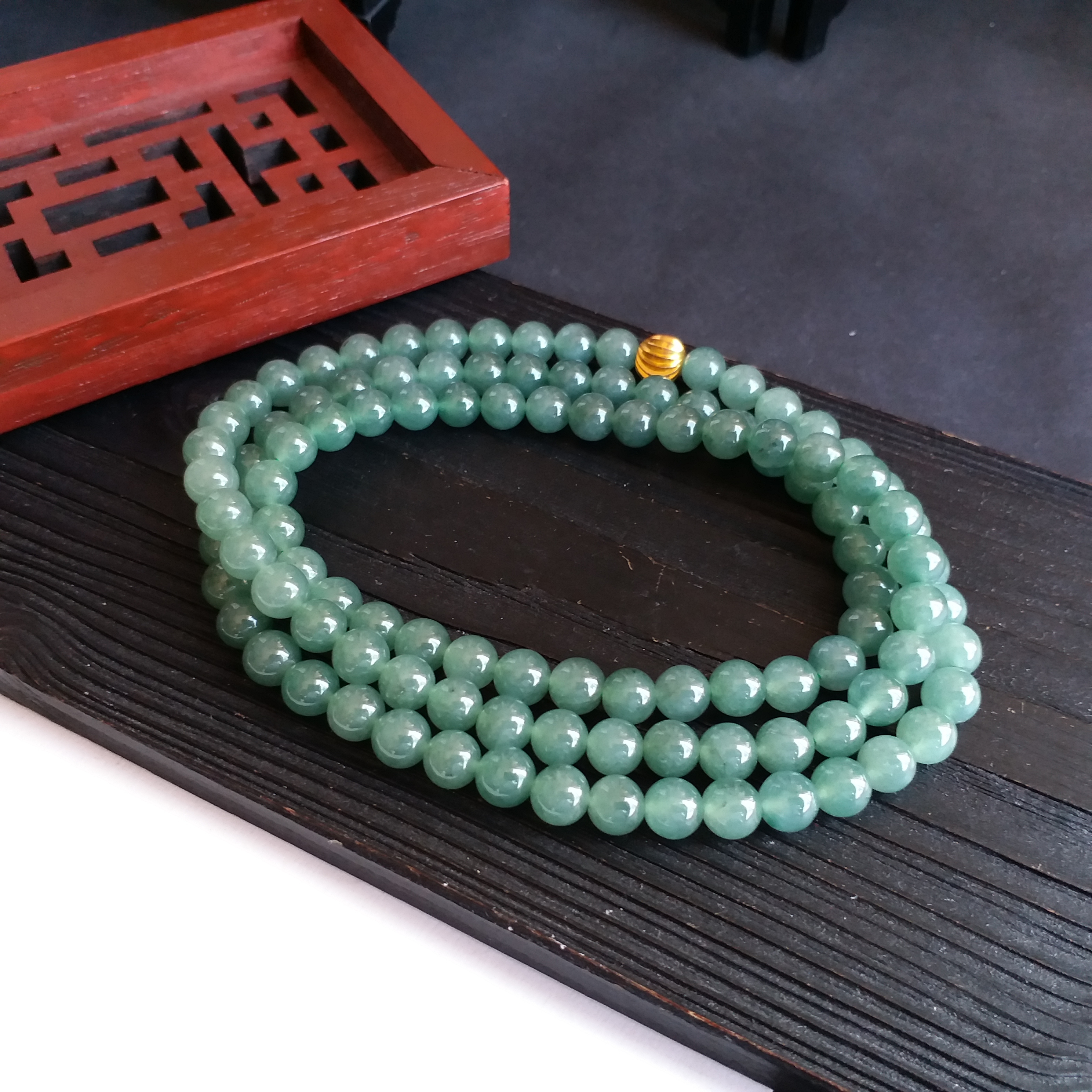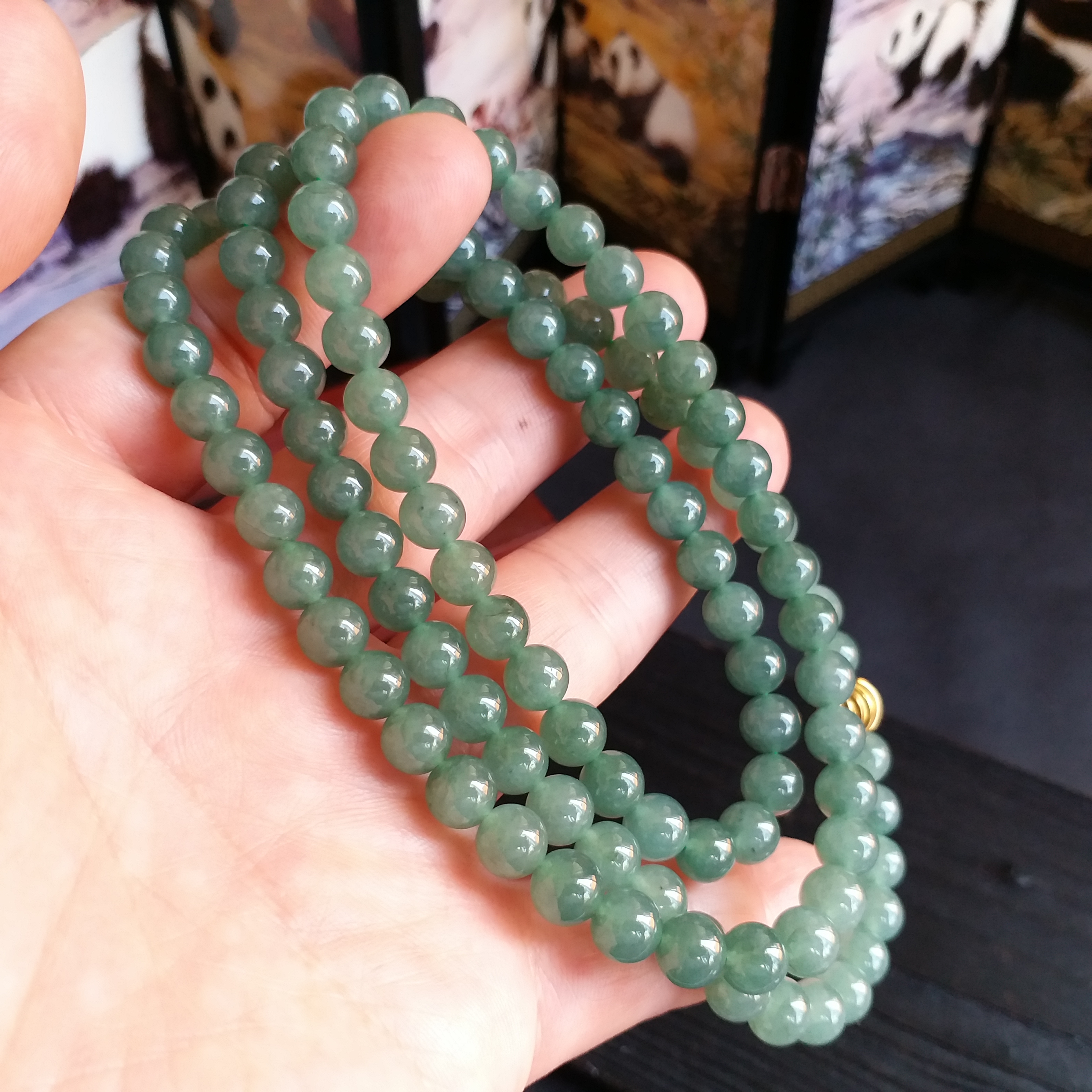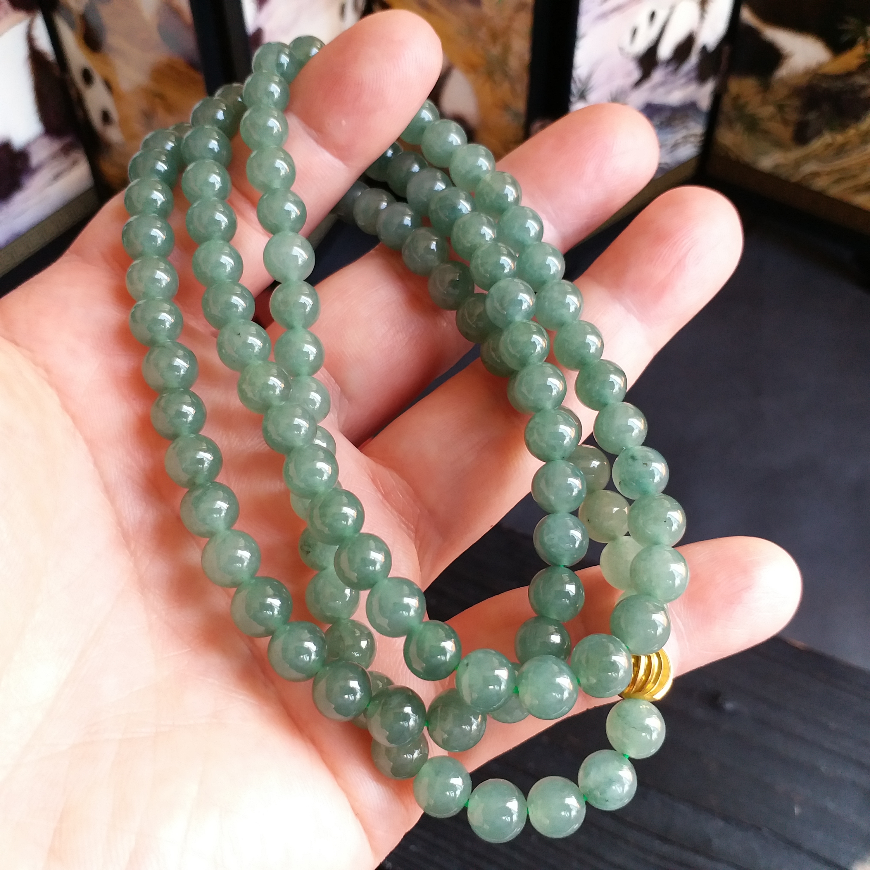 • 冰油綠翡翠玉珠項鍊 (6.9mm直徑), 天然翡翠A玉, 緬甸玉, Jade, Jadeite
