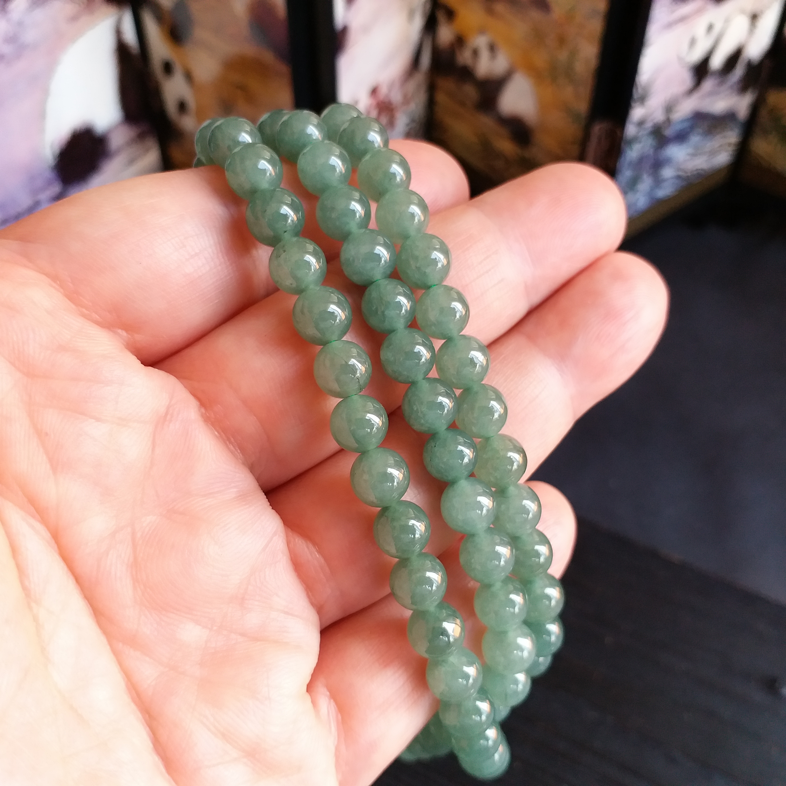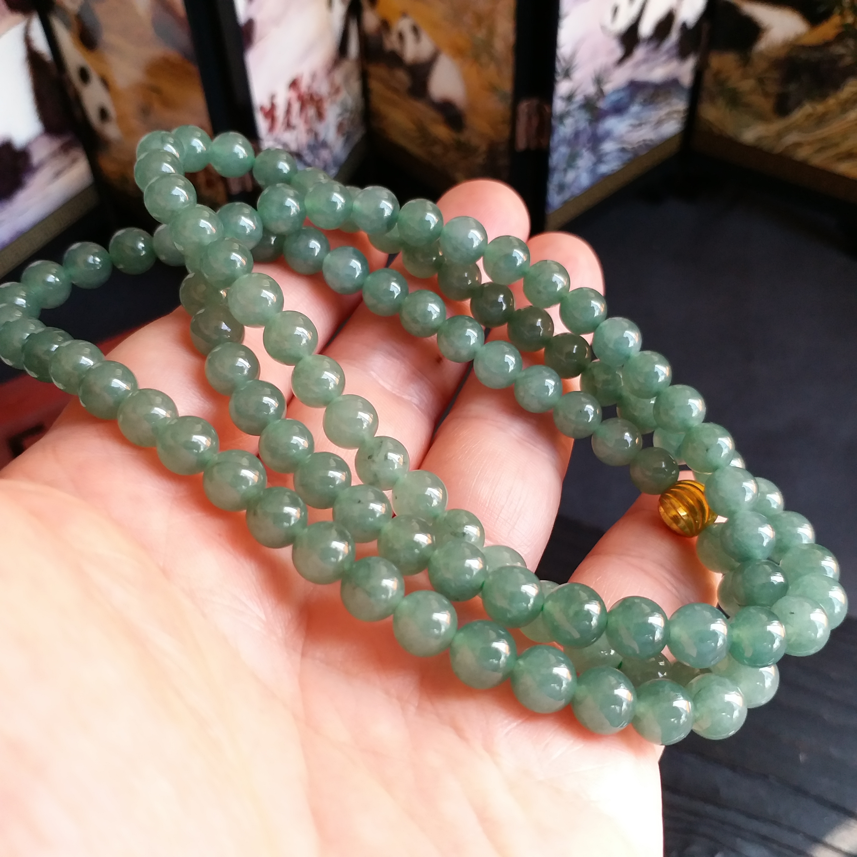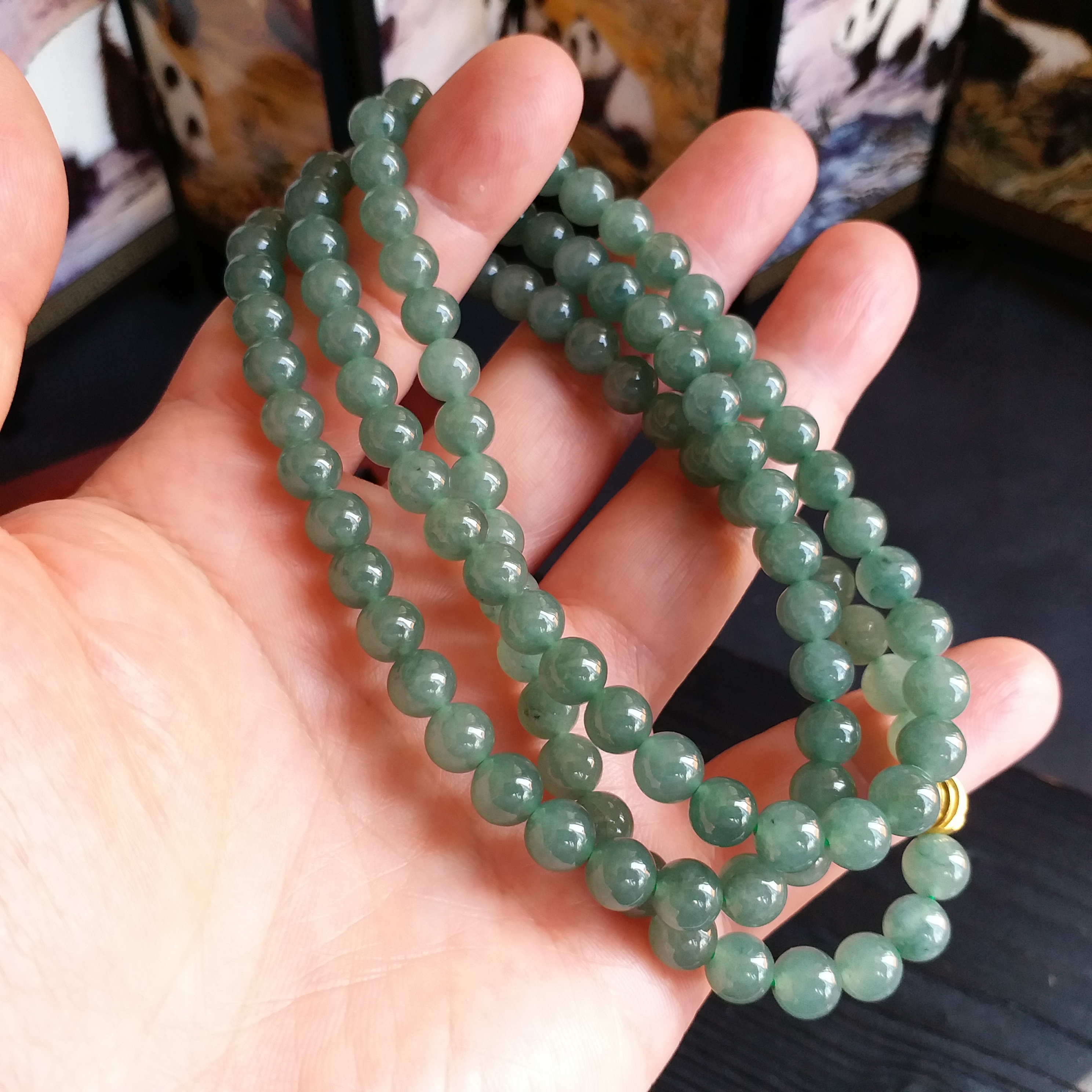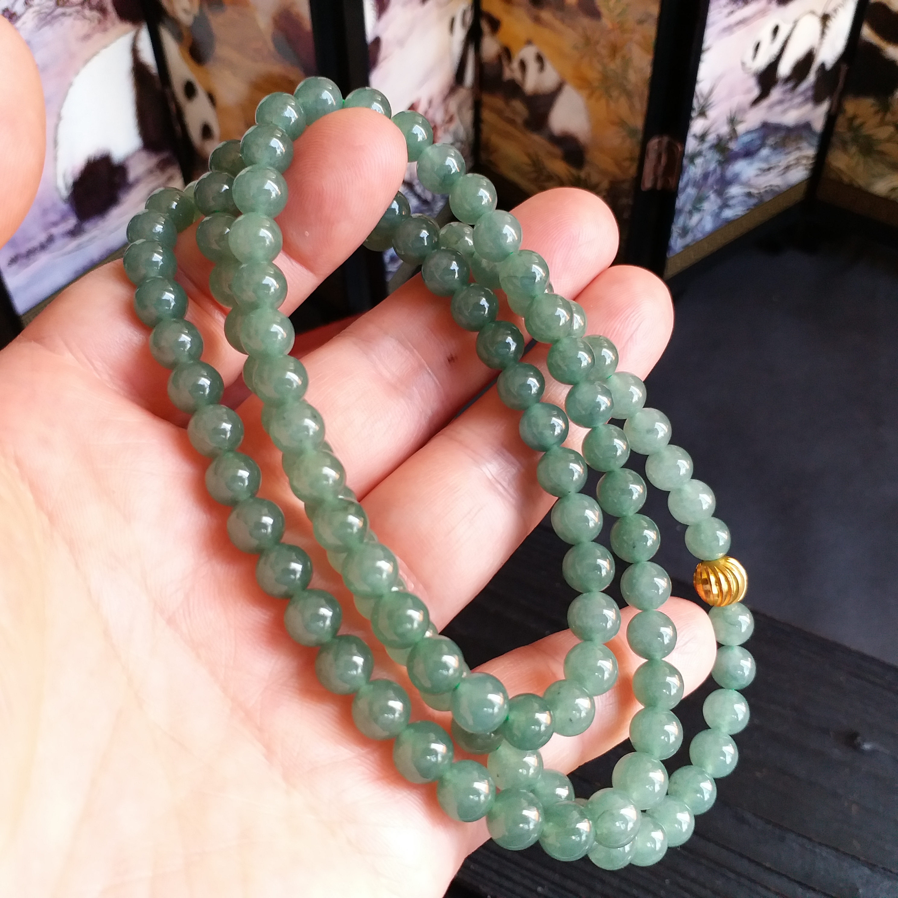 • 冰油綠翡翠玉珠項鍊 (6.9mm直徑), 天然翡翠A玉, 緬甸玉, Jade, Jadeite