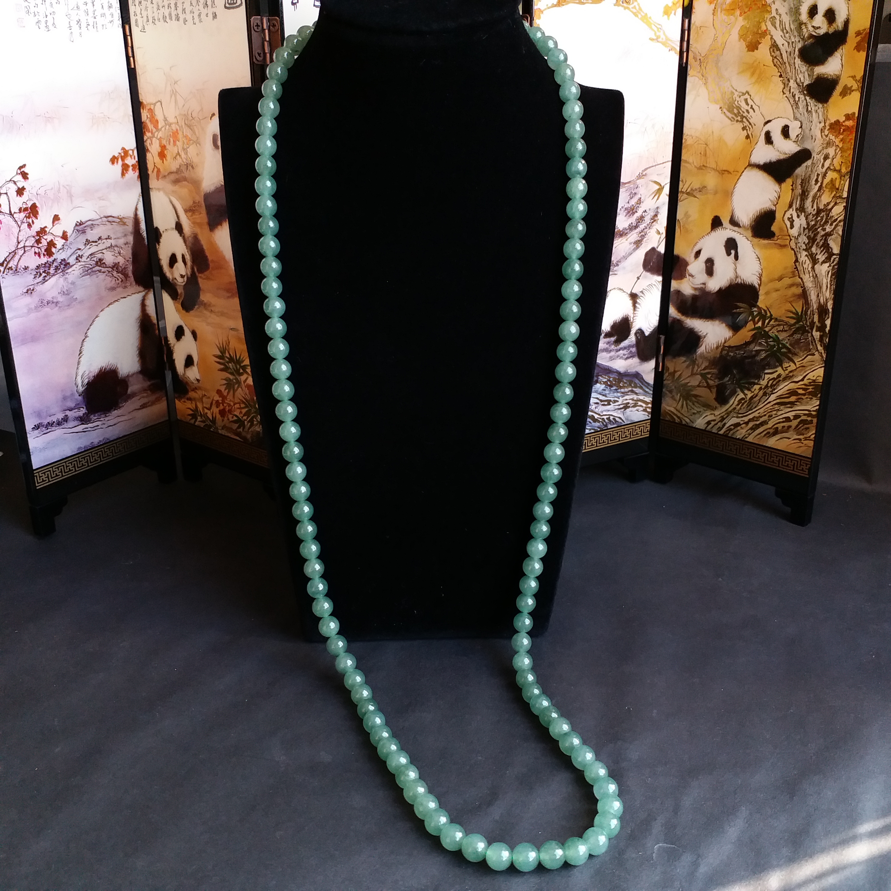 J1405 冰油綠翡翠玉珠項鍊 (6.9mm直徑)