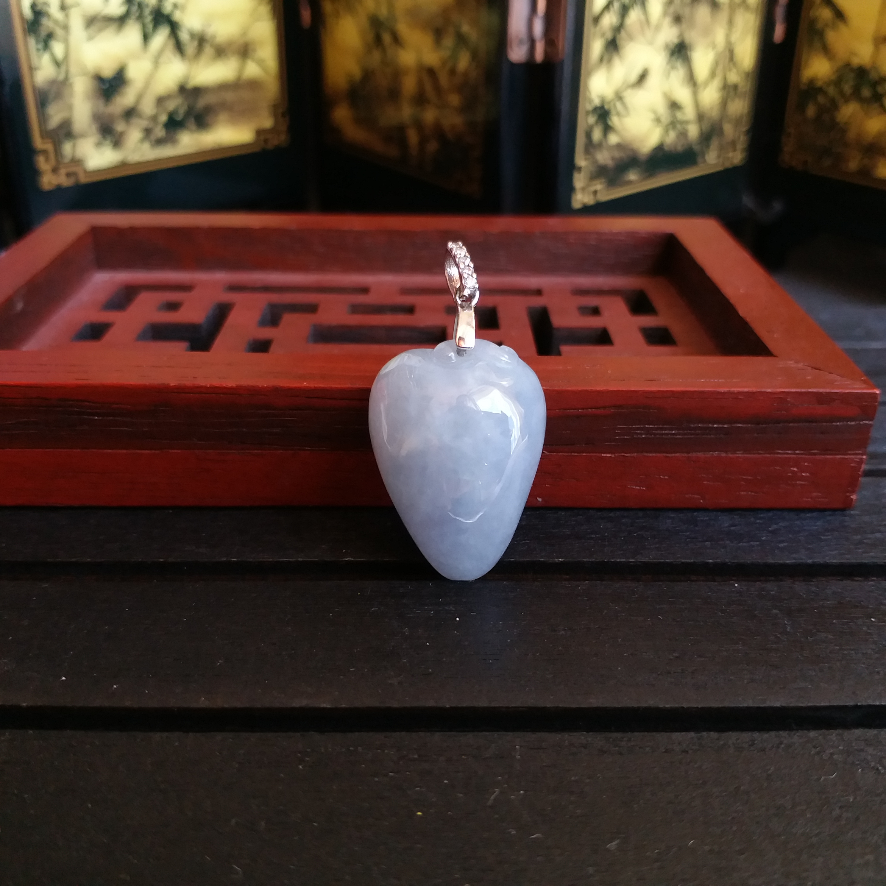 J1410 冰糯紫壽桃吊墜