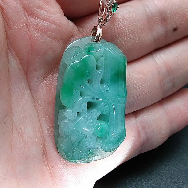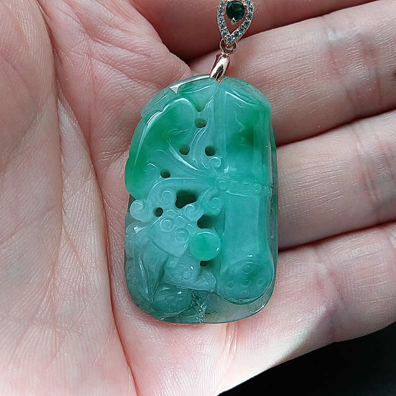 • 極品冰種油青帶陽綠如意富竹吊墜, 天然翡翠A玉, 緬甸玉, Jade, Jadeite