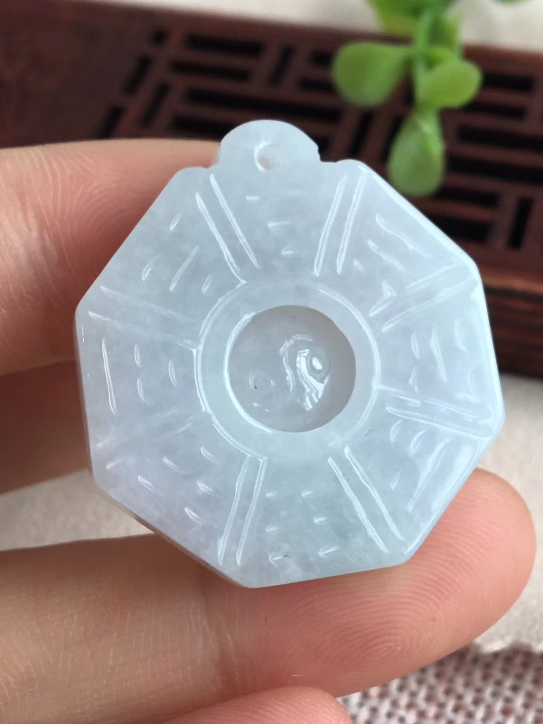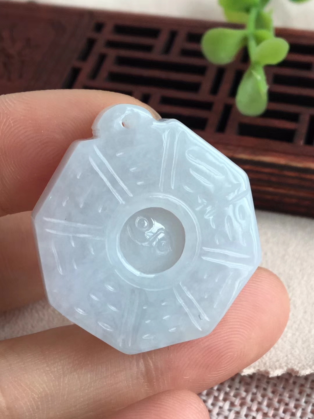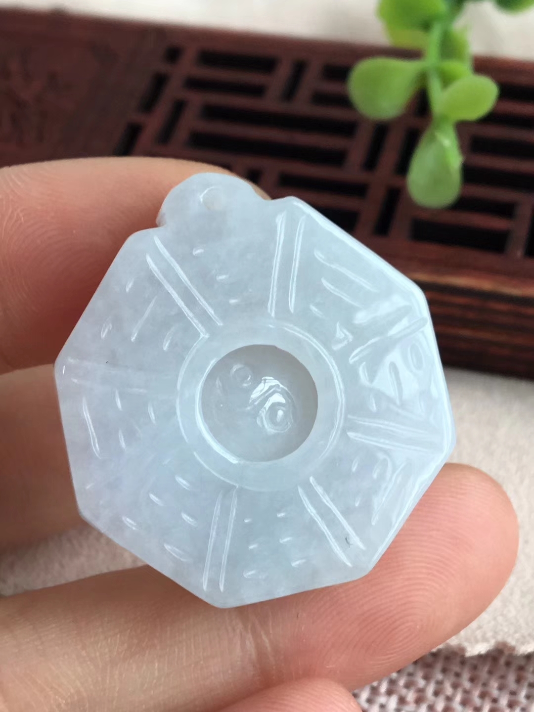 • 冰白八卦吊墜, 天然翡翠A玉, 緬甸玉, Jade, Jadeite