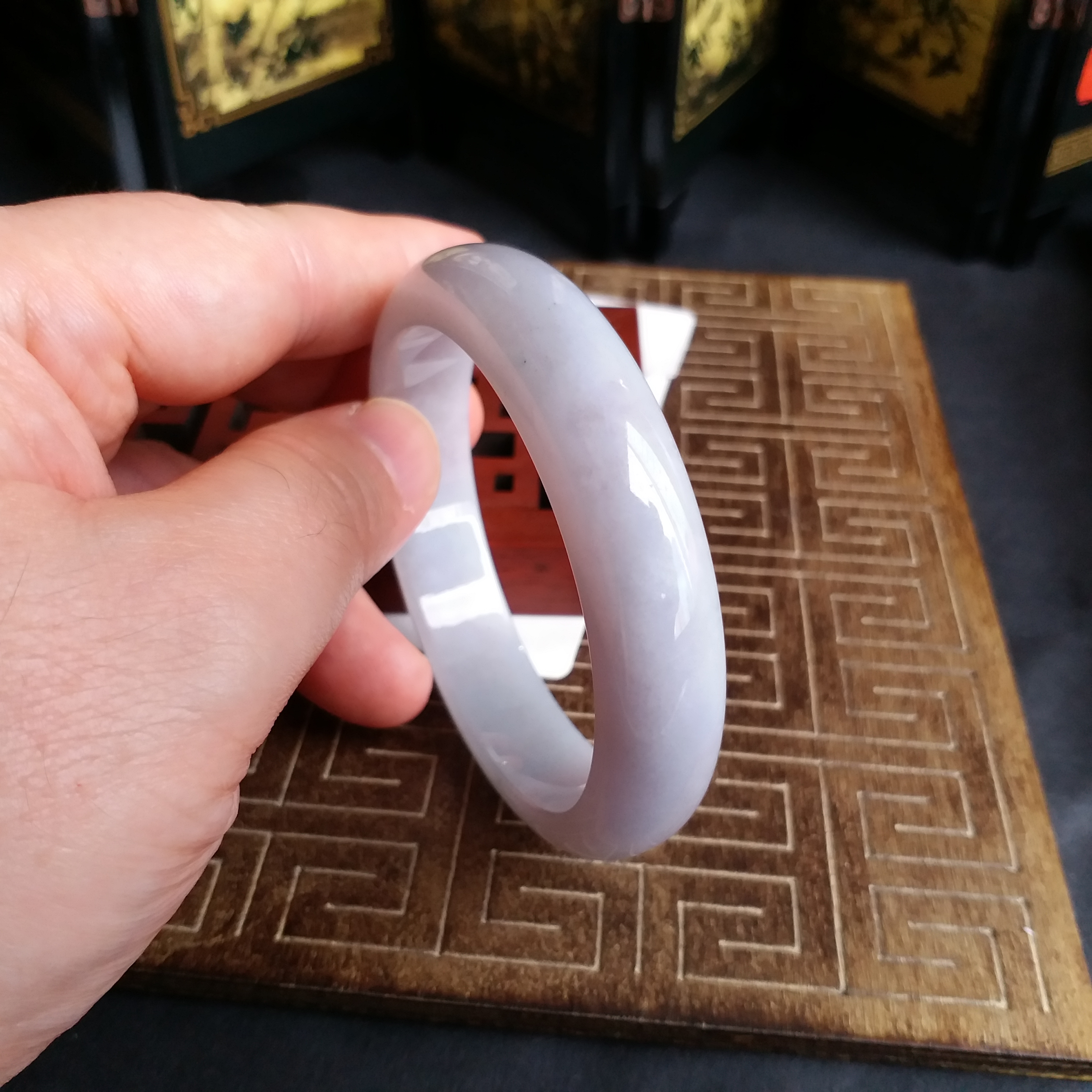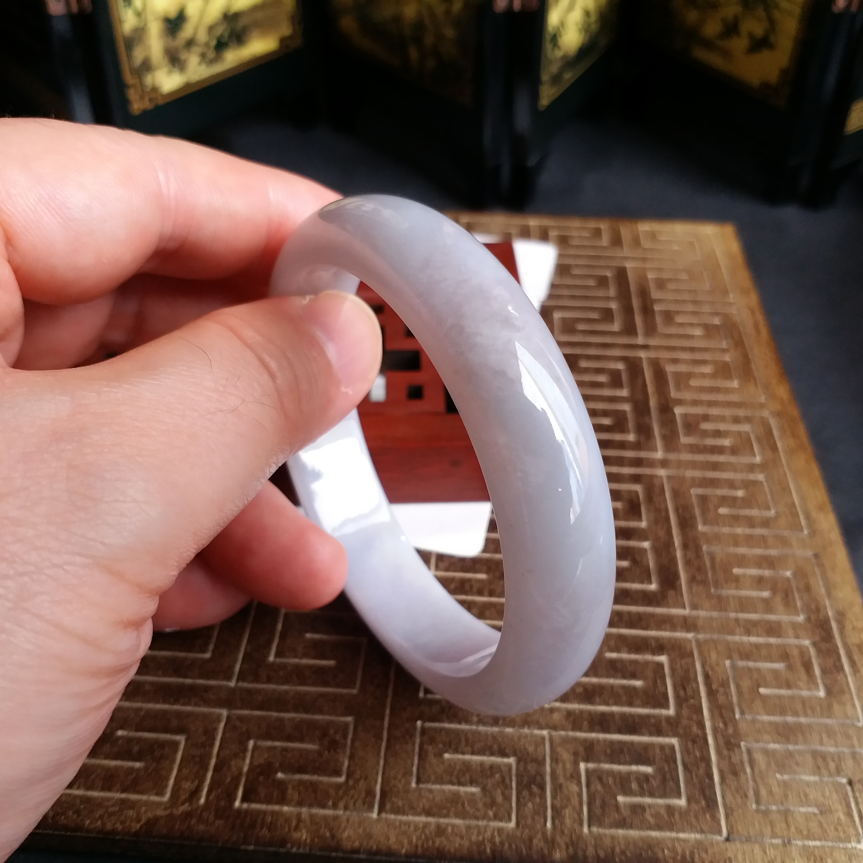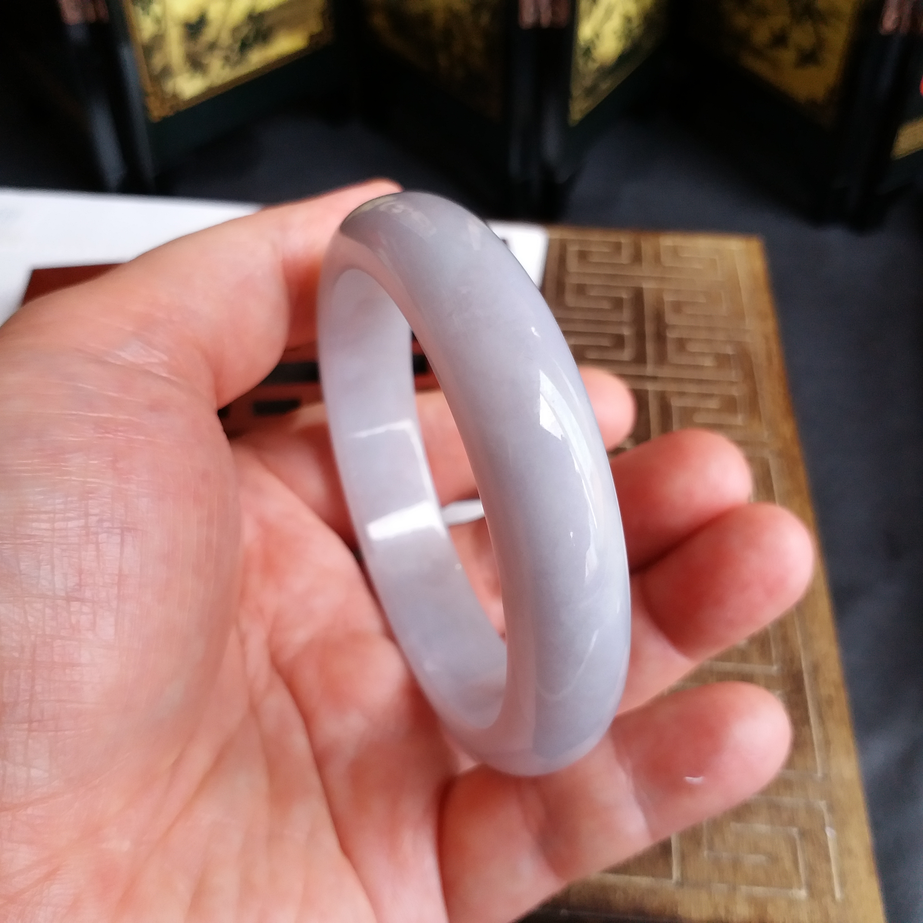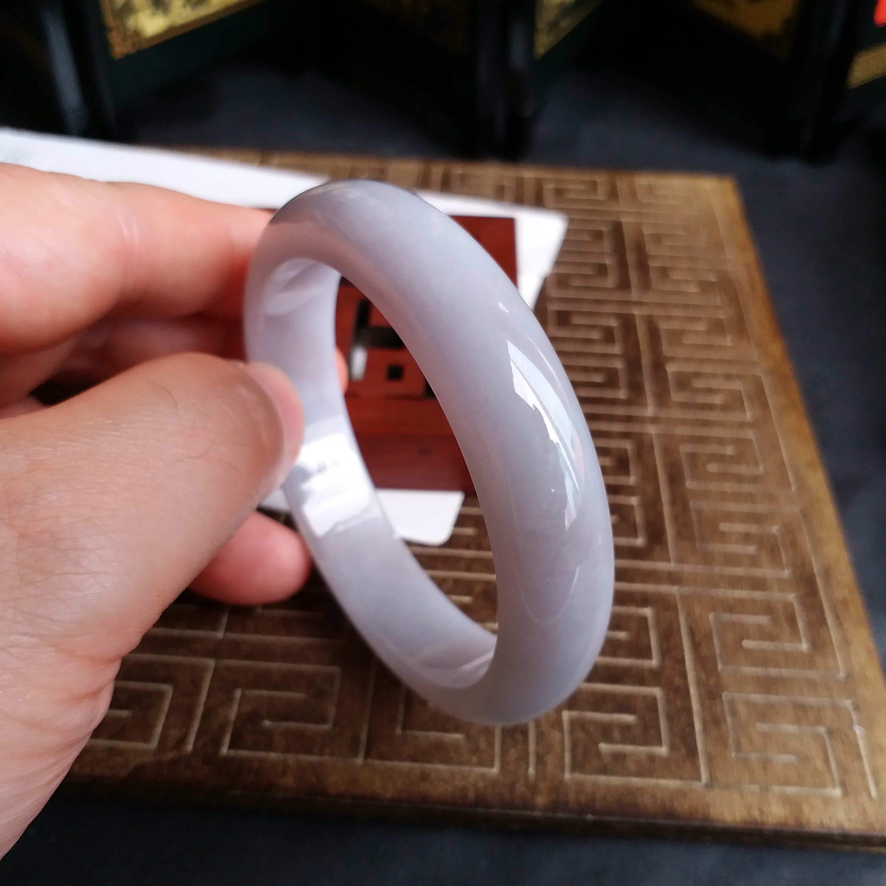 • 冰糯淡紫玉鐲 56.3mm, 天然翡翠A玉, 緬甸玉, Jade, Jadeite