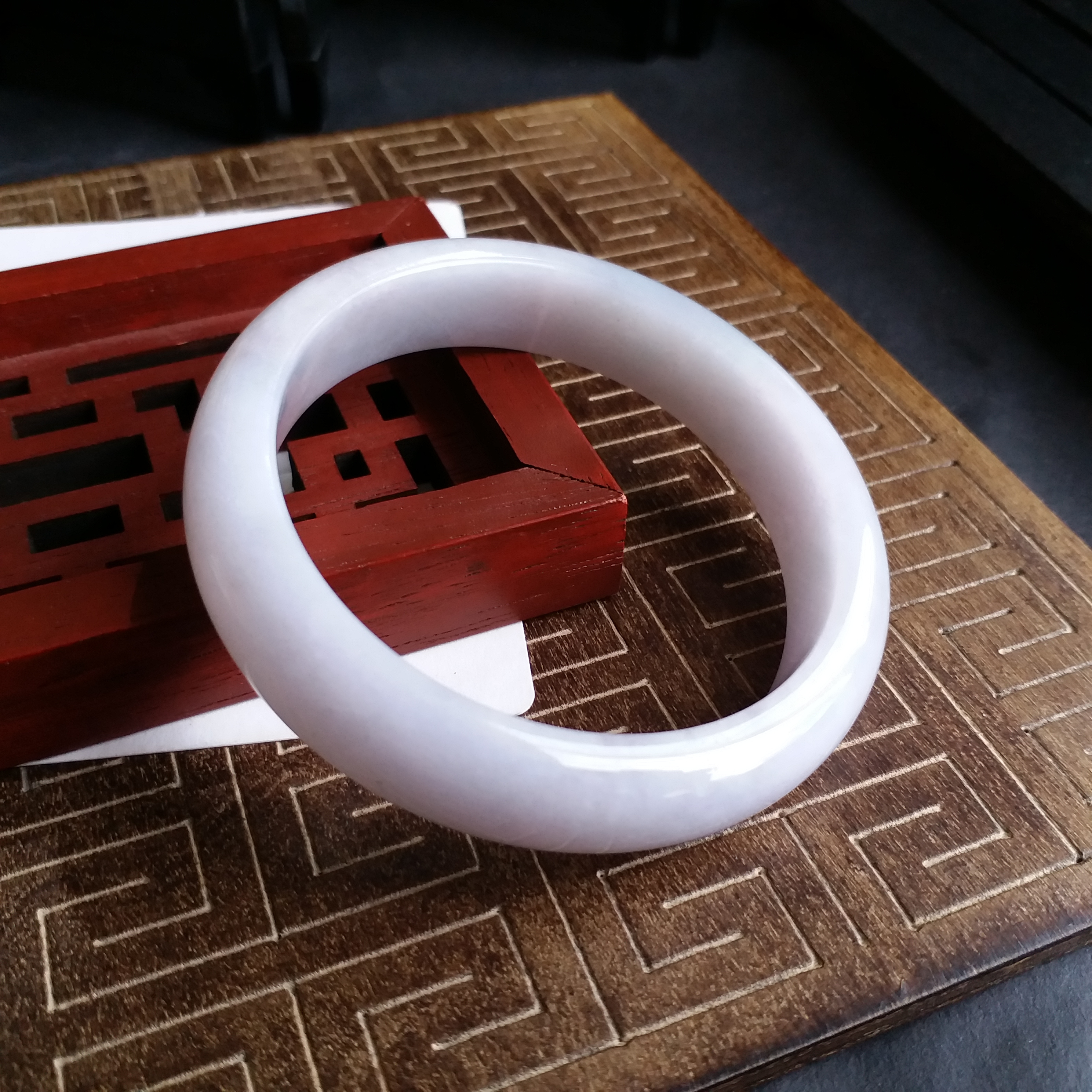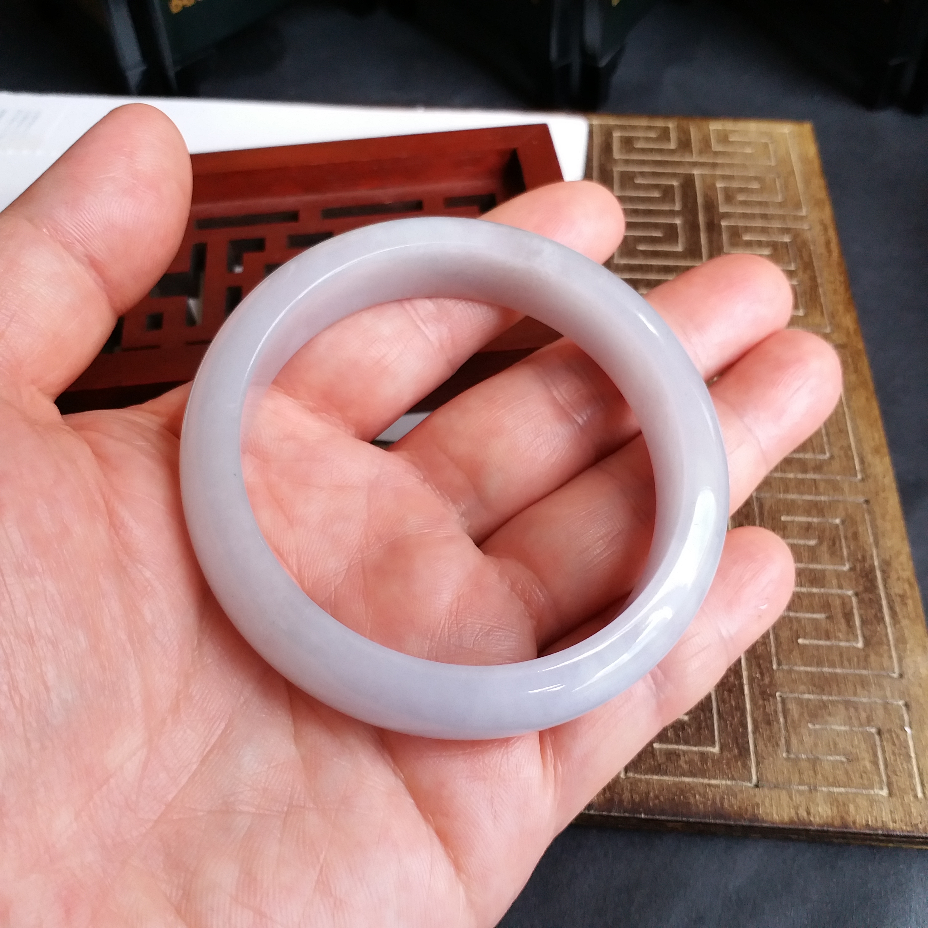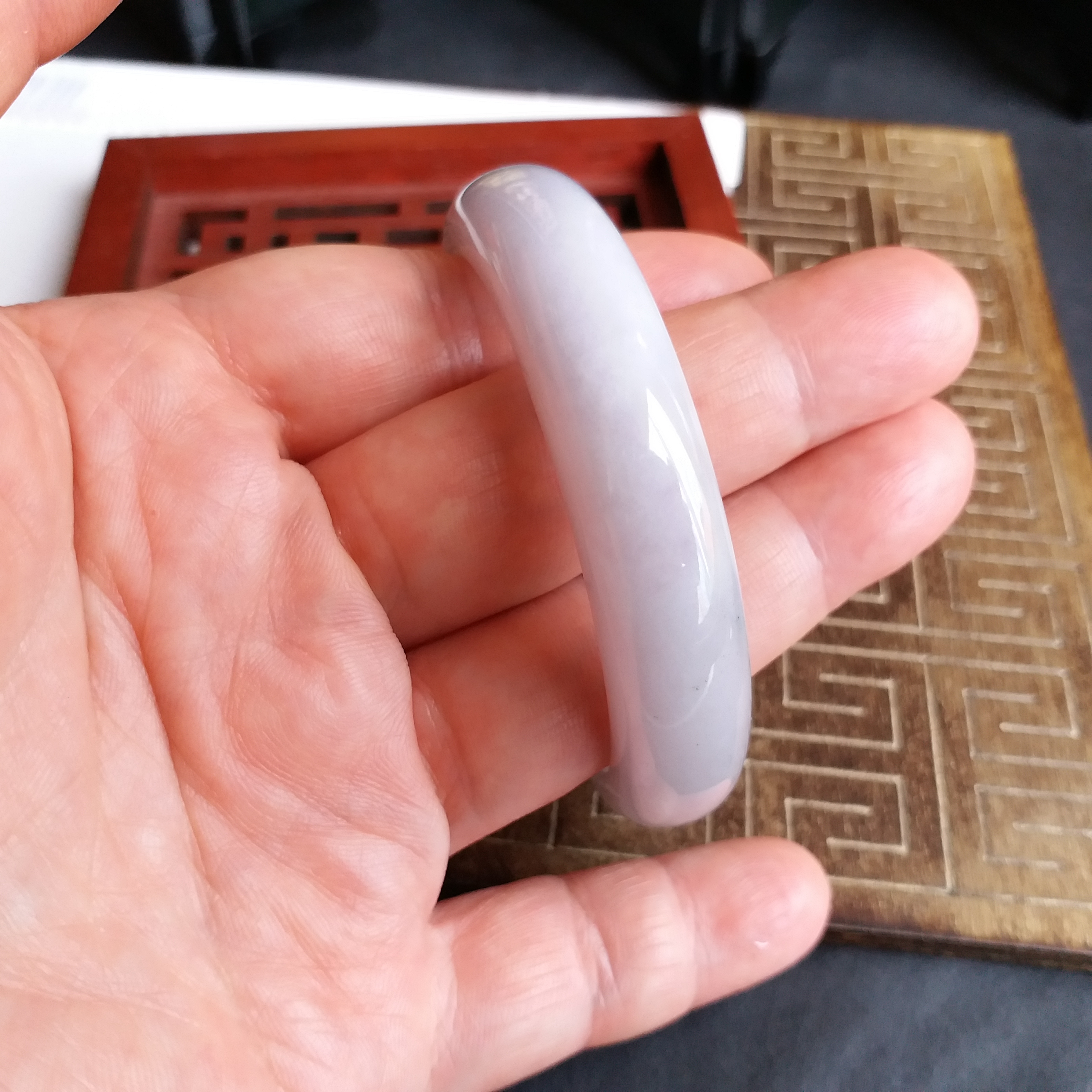 • 冰糯淡紫玉鐲 56.3mm, 天然翡翠A玉, 緬甸玉, Jade, Jadeite
