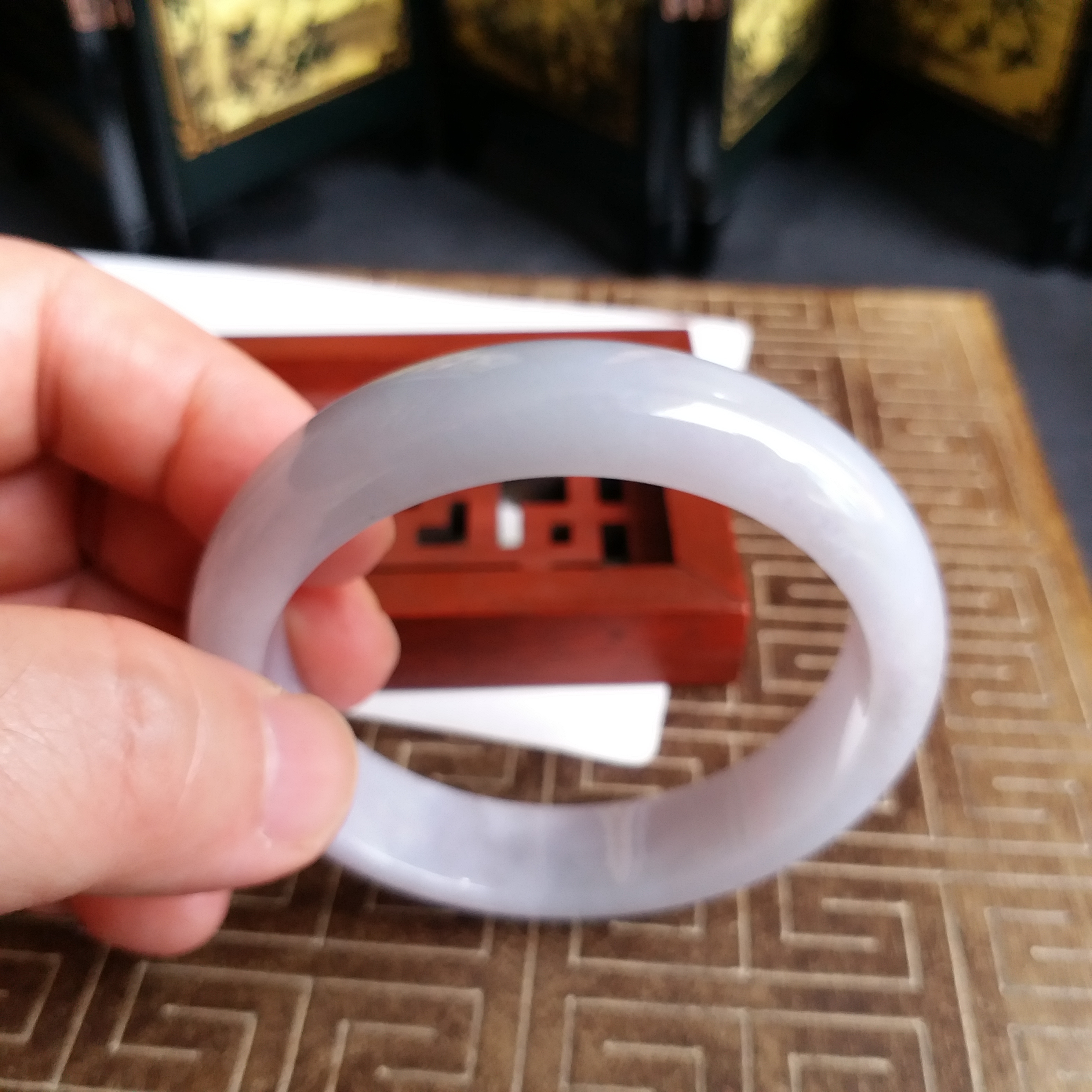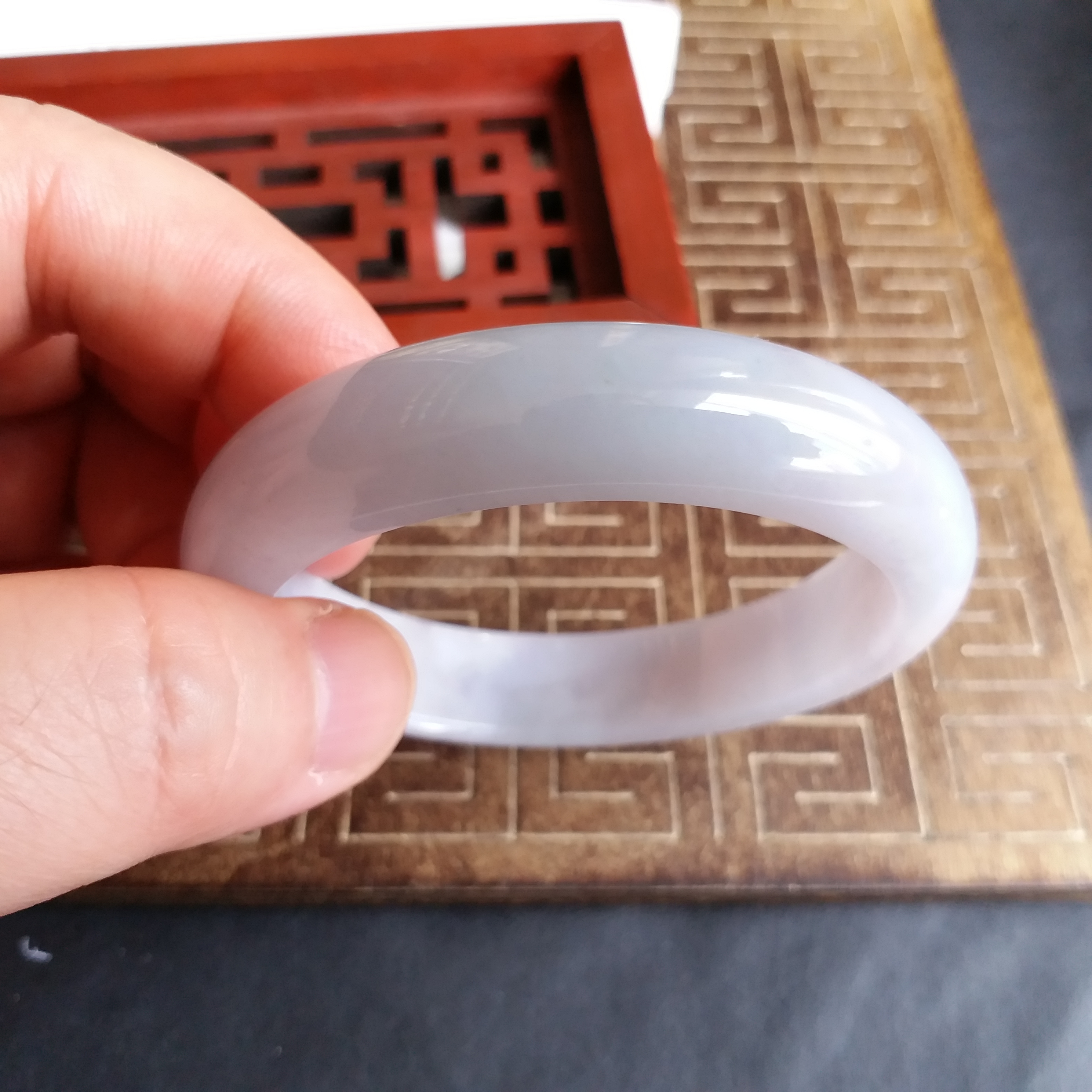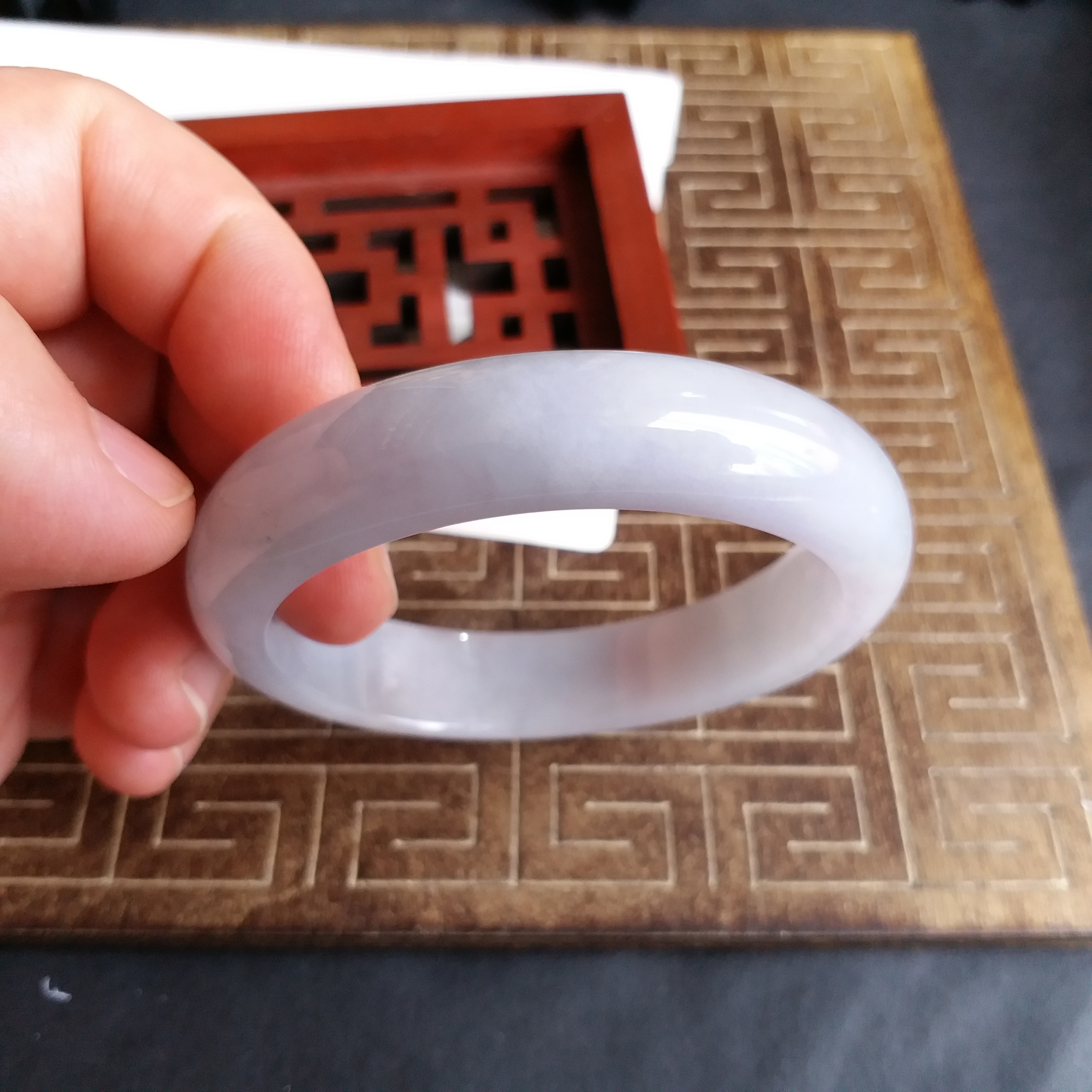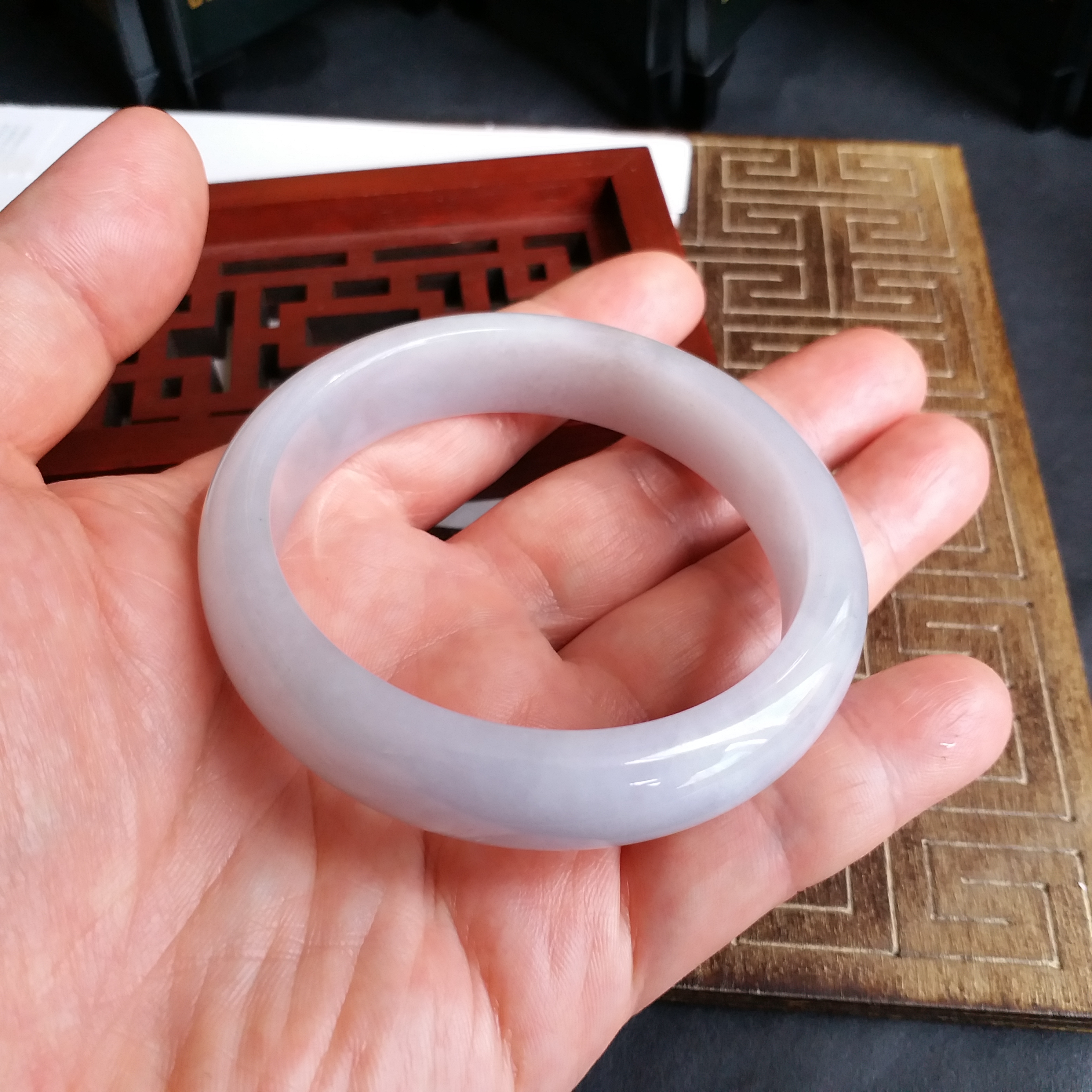 • 冰糯淡紫玉鐲 56.3mm, 天然翡翠A玉, 緬甸玉, Jade, Jadeite