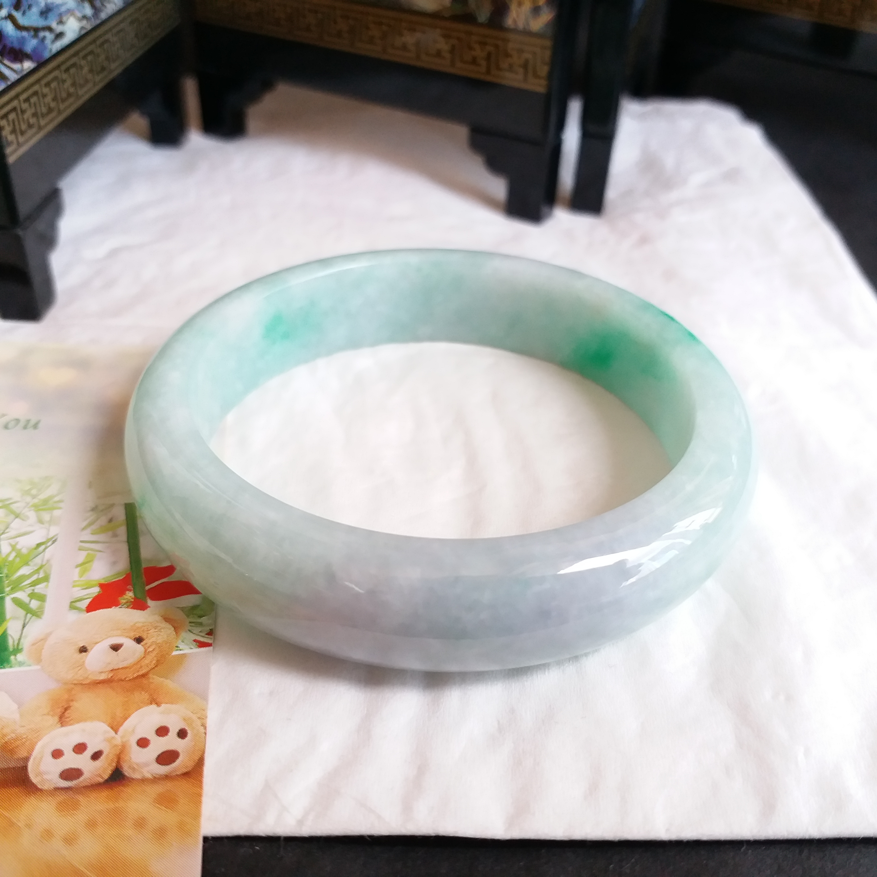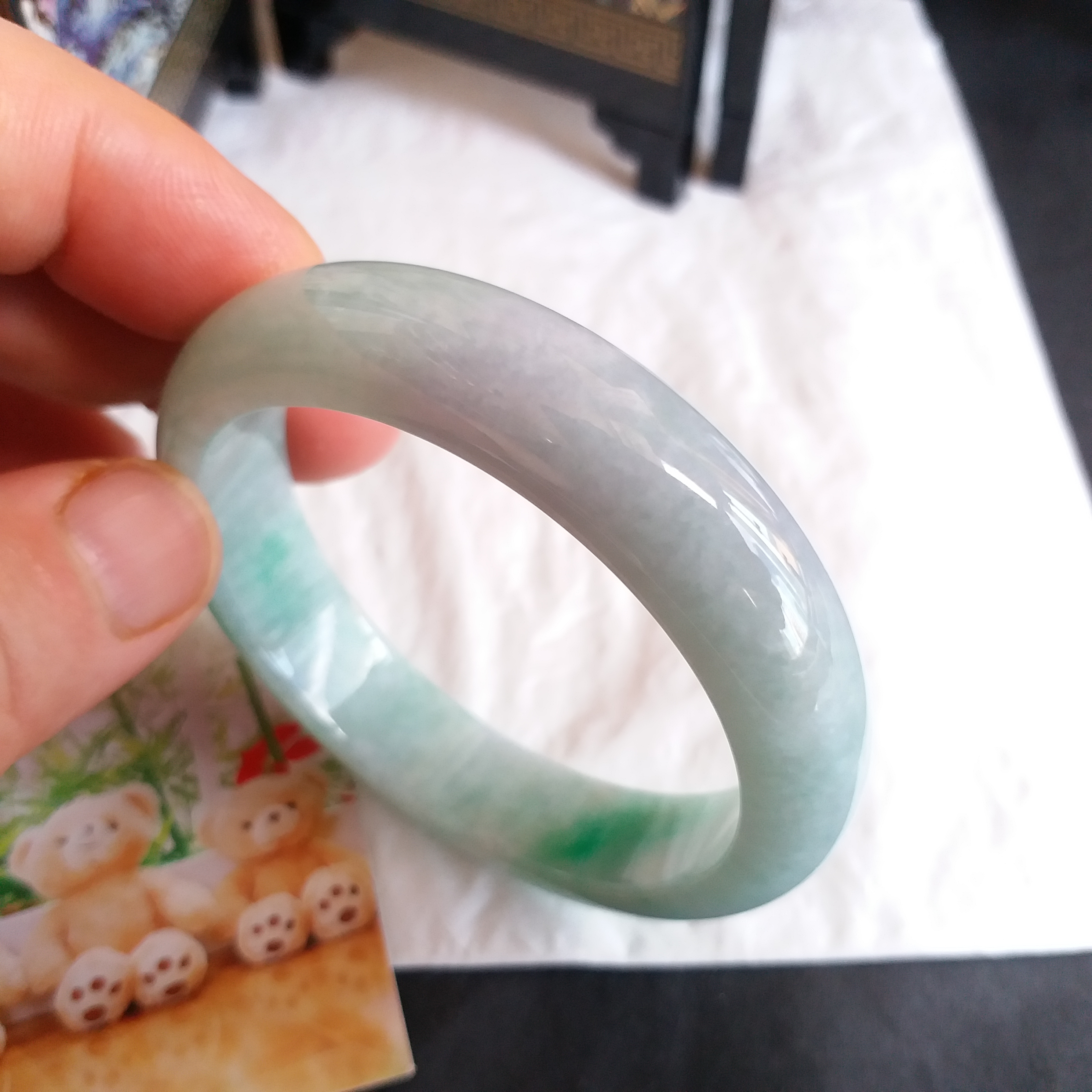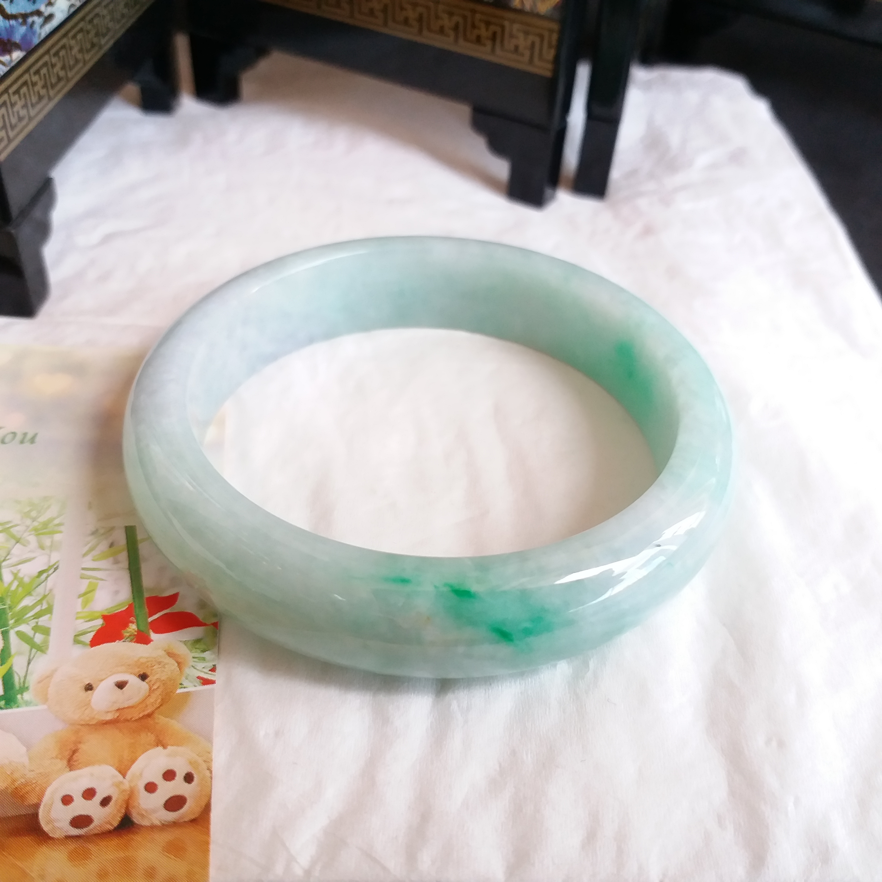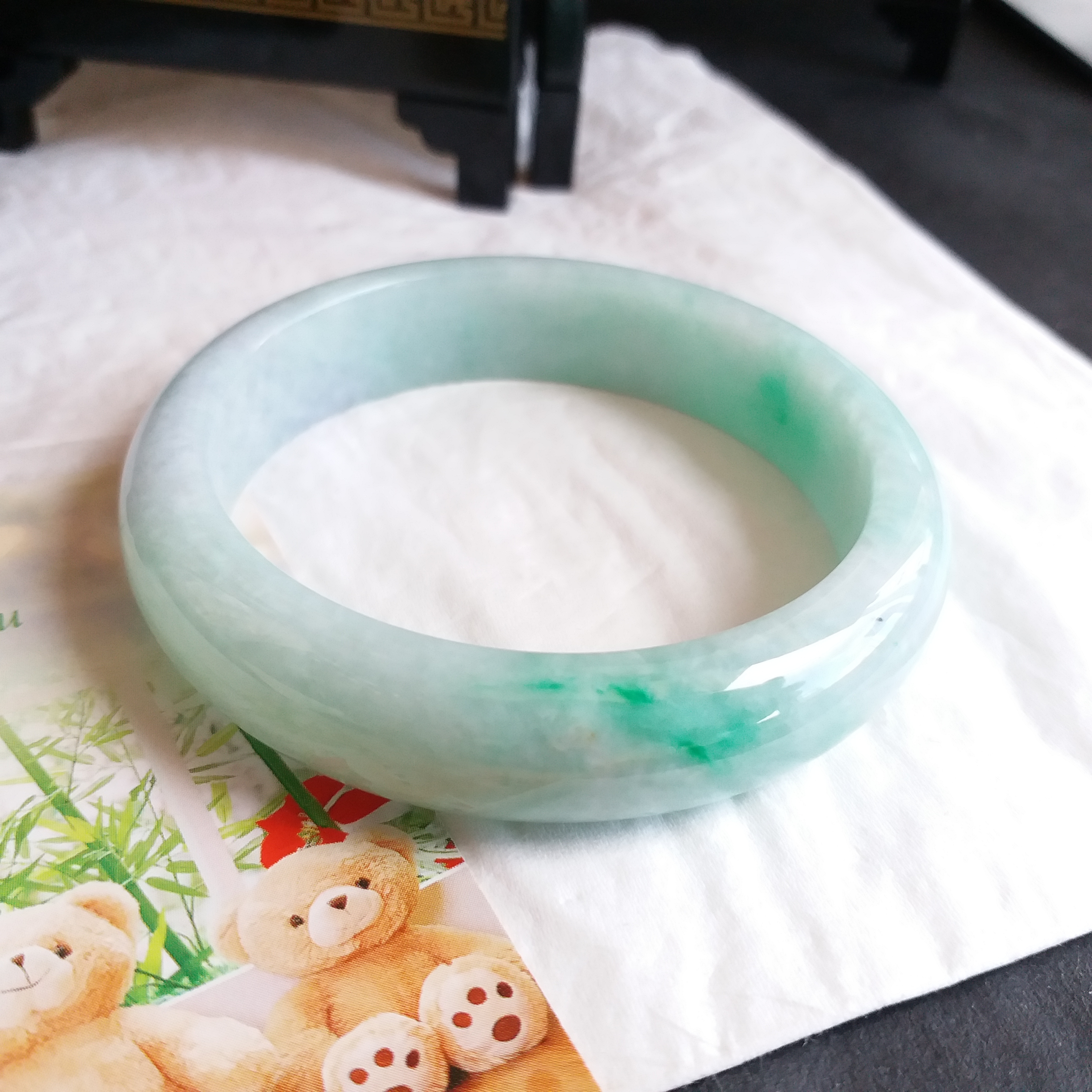 • 冰糯飄綠玉鐲 53.1mm, 天然翡翠A玉, 緬甸玉, Jade, Jadeite