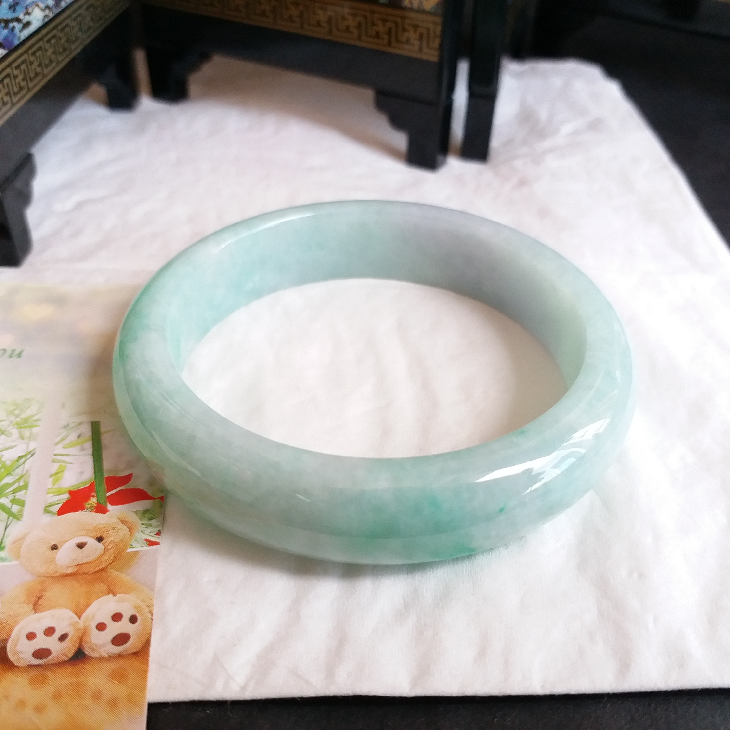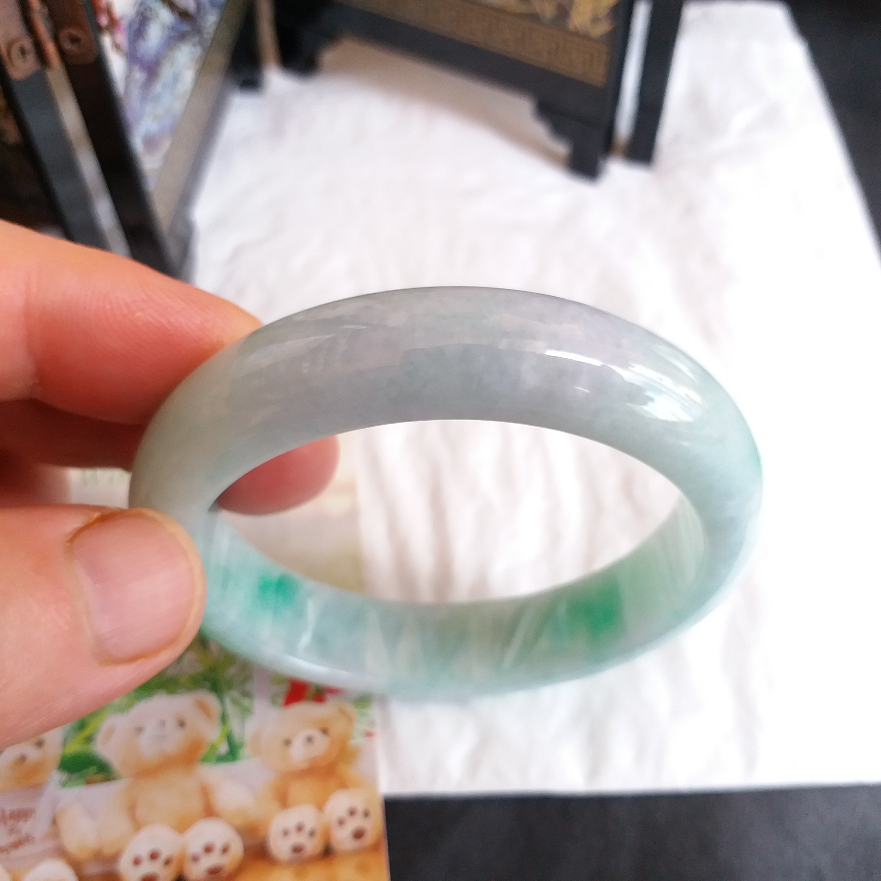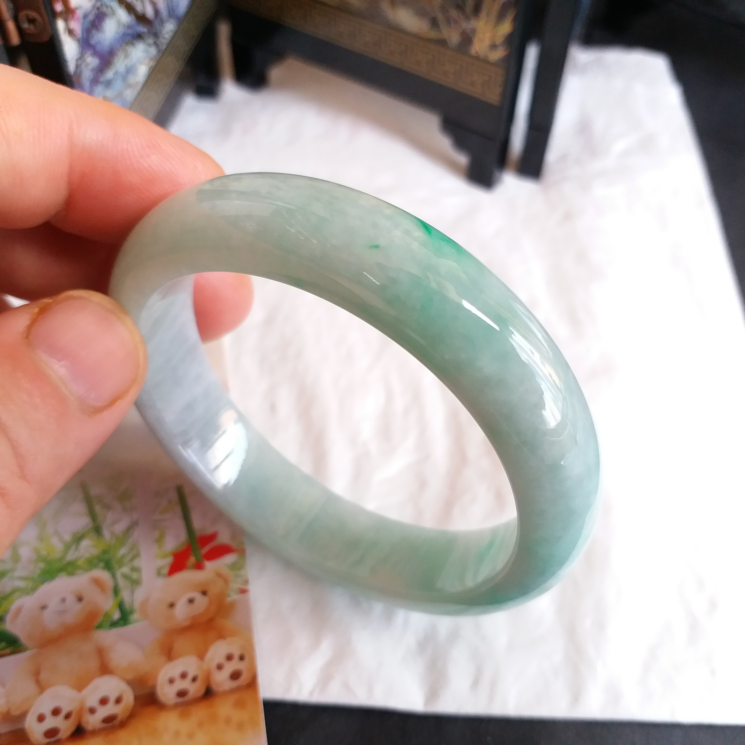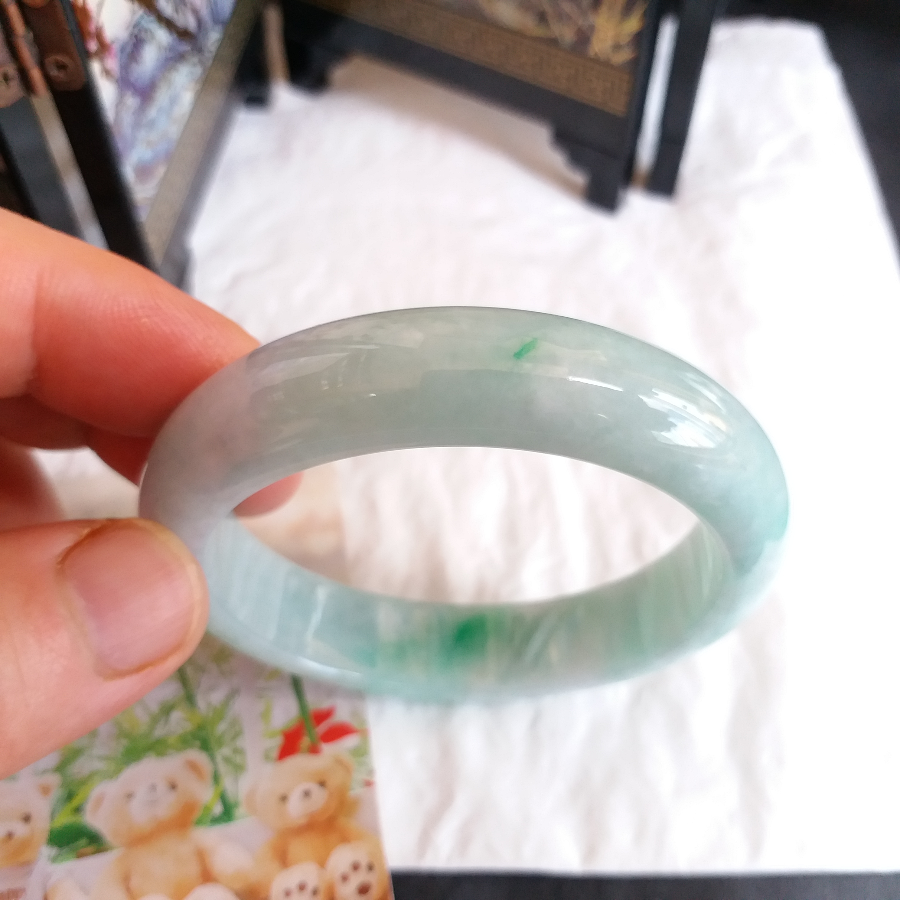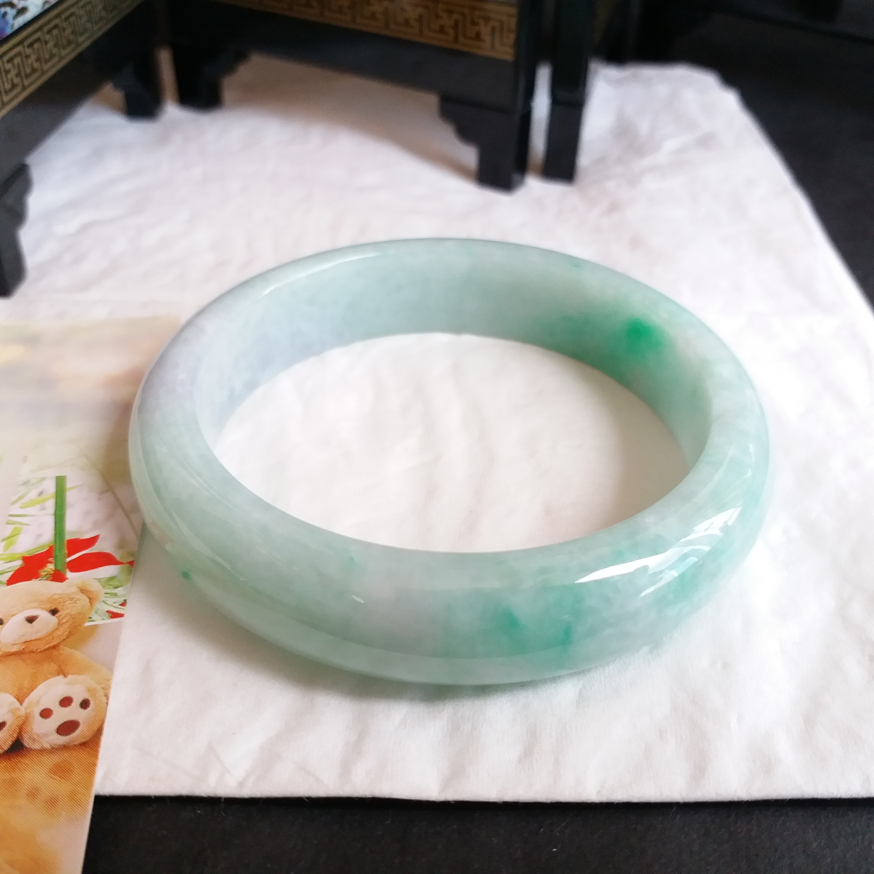 • 冰糯飄綠玉鐲 53.1mm, 天然翡翠A玉, 緬甸玉, Jade, Jadeite