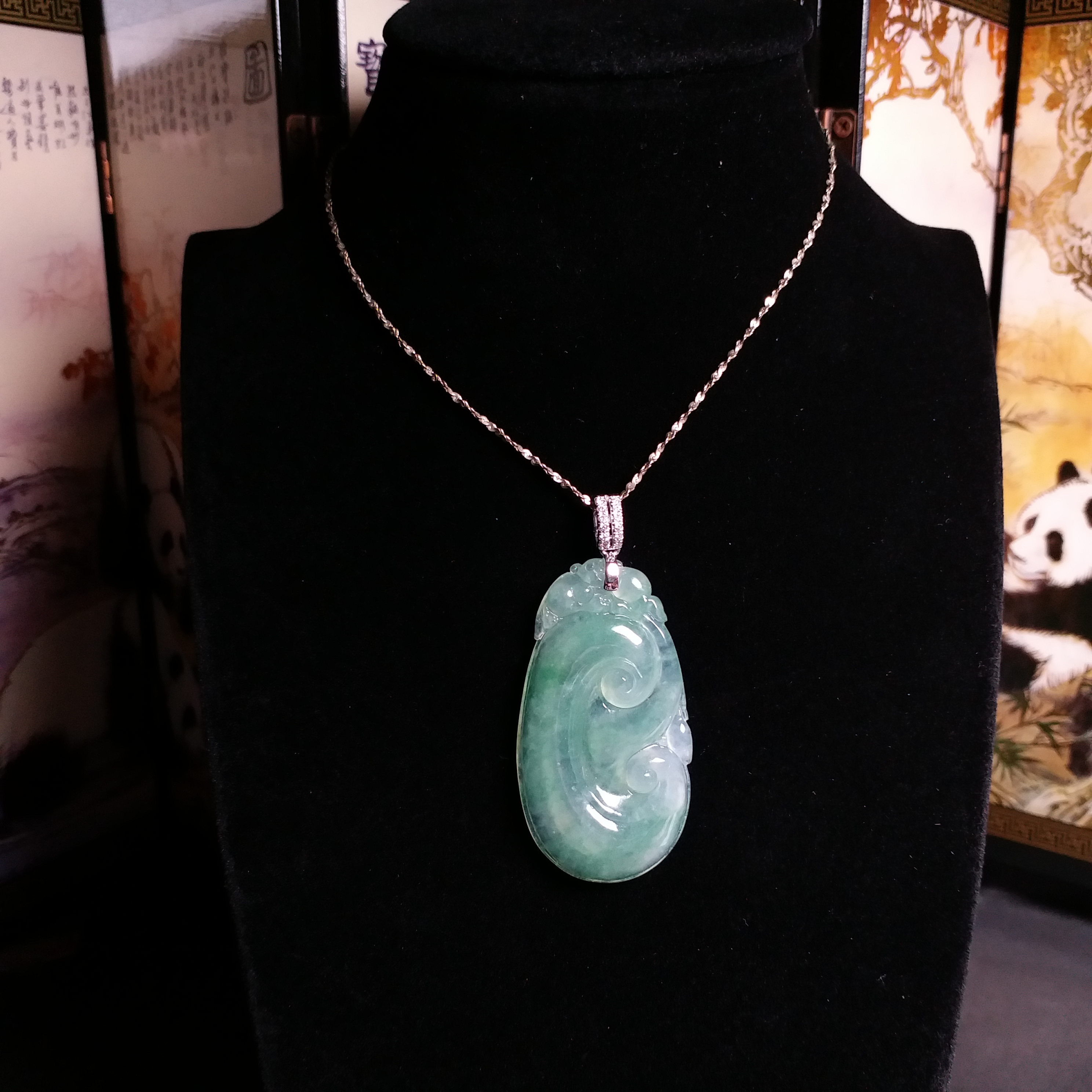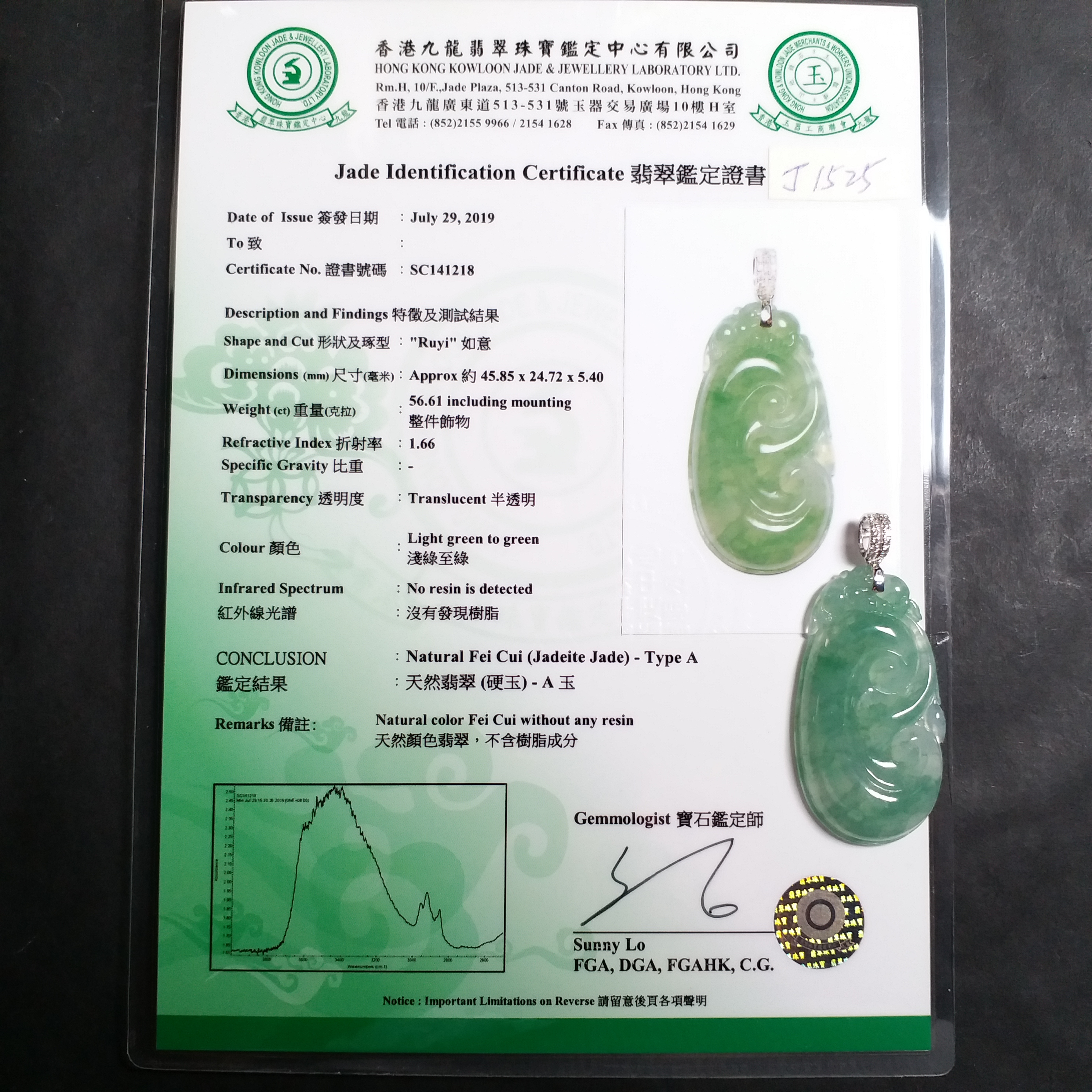 J1525 冰飄綠如意+雙排鑽石18K金扣吊墜