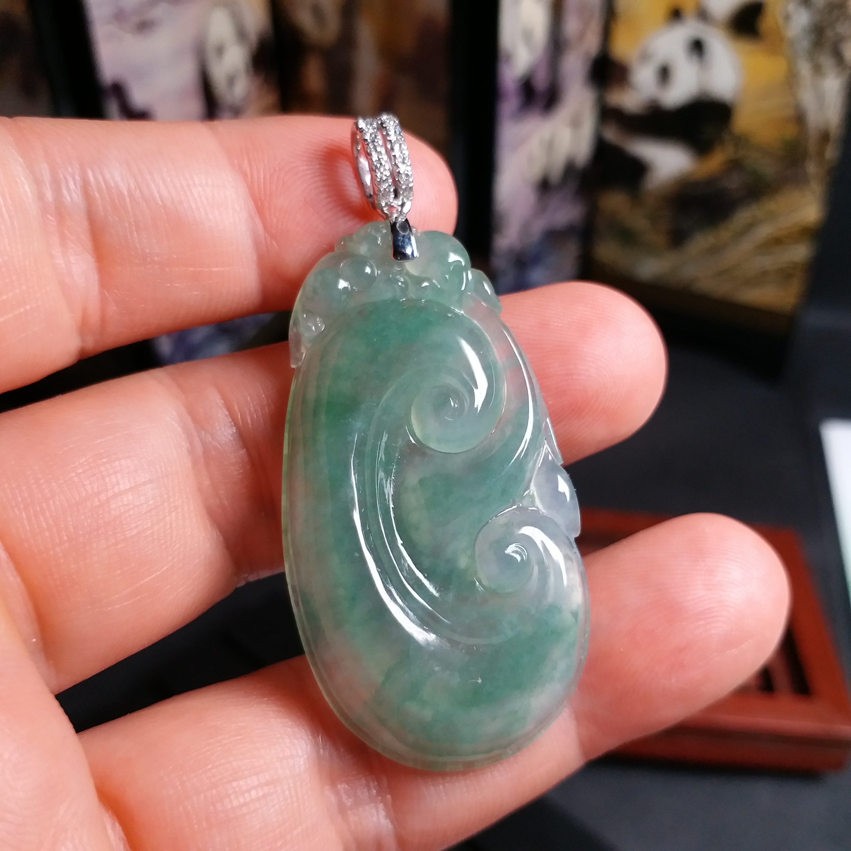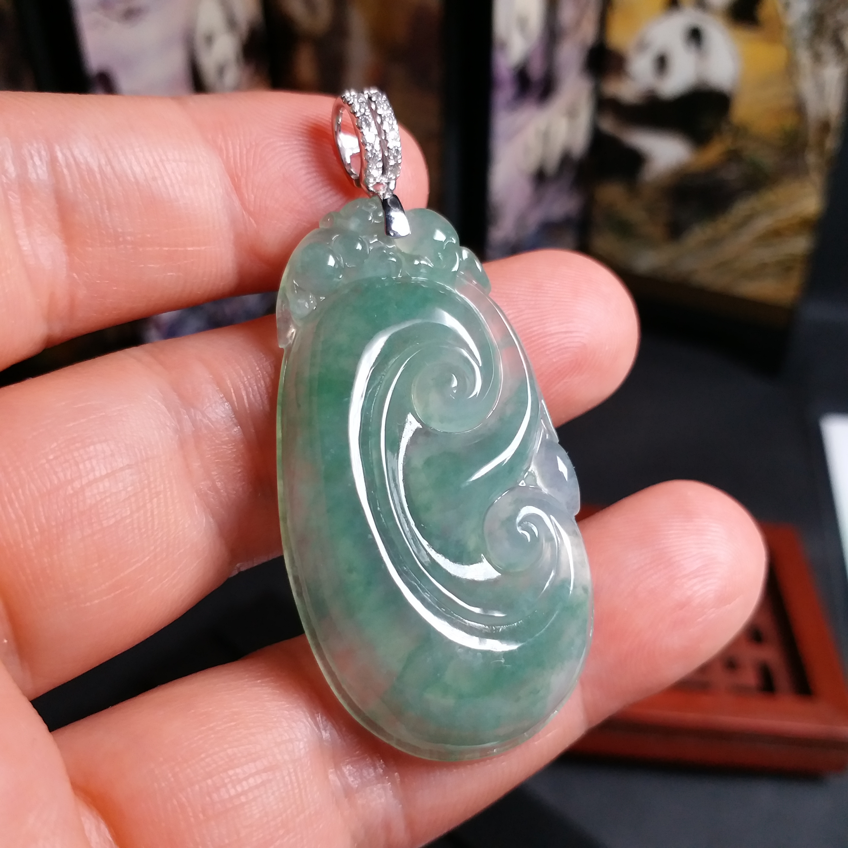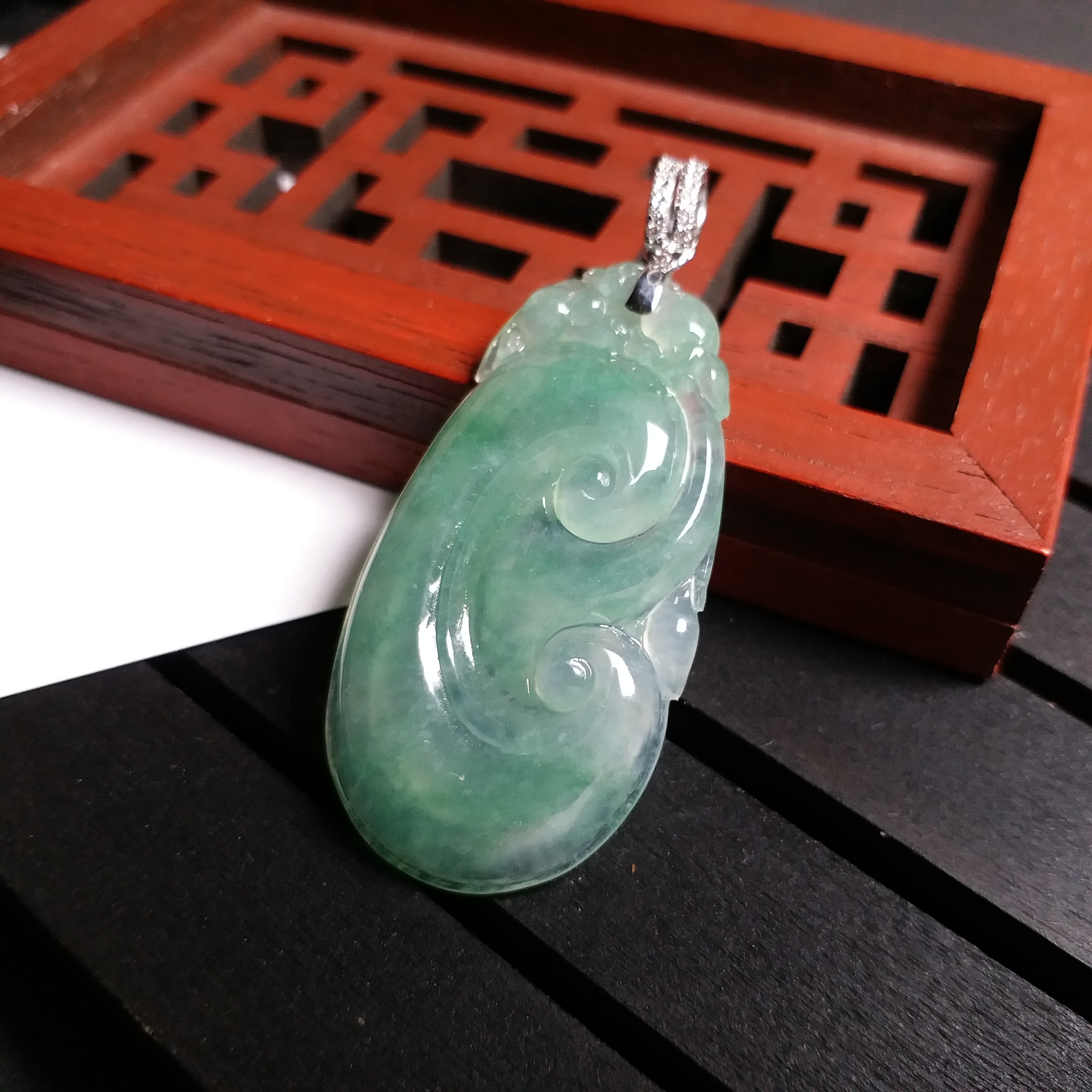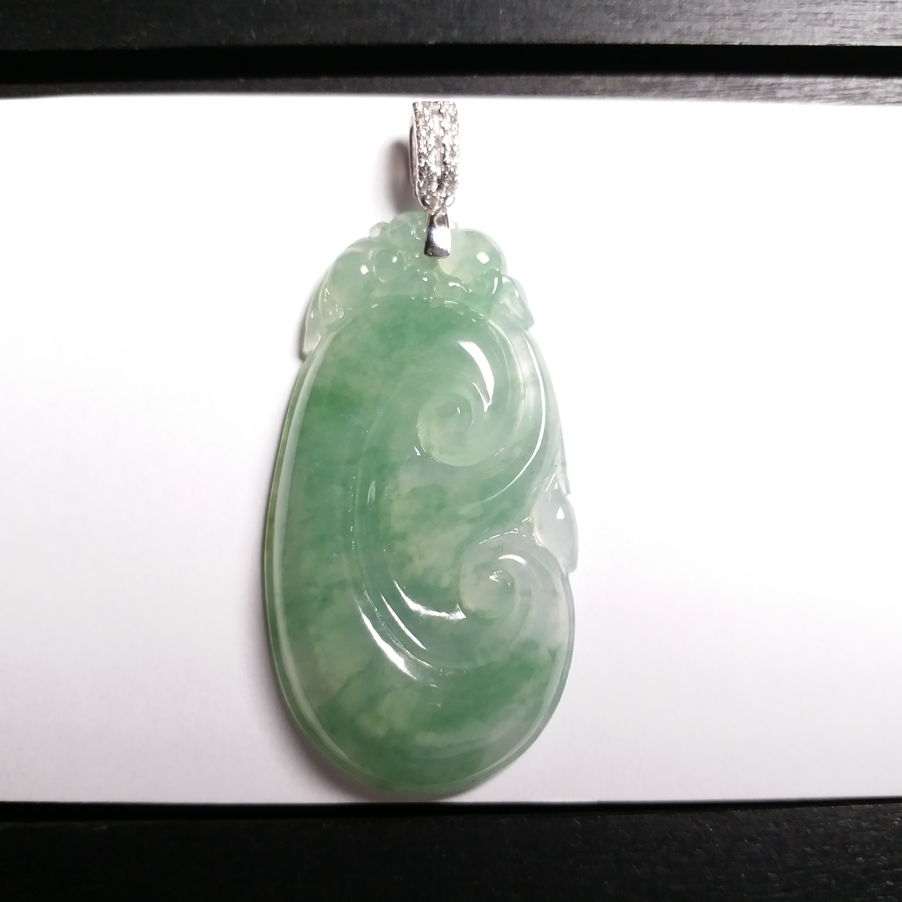 • 冰種晴水大如意吊墜, 天然翡翠A玉, 緬甸玉, Jade, Jadeite