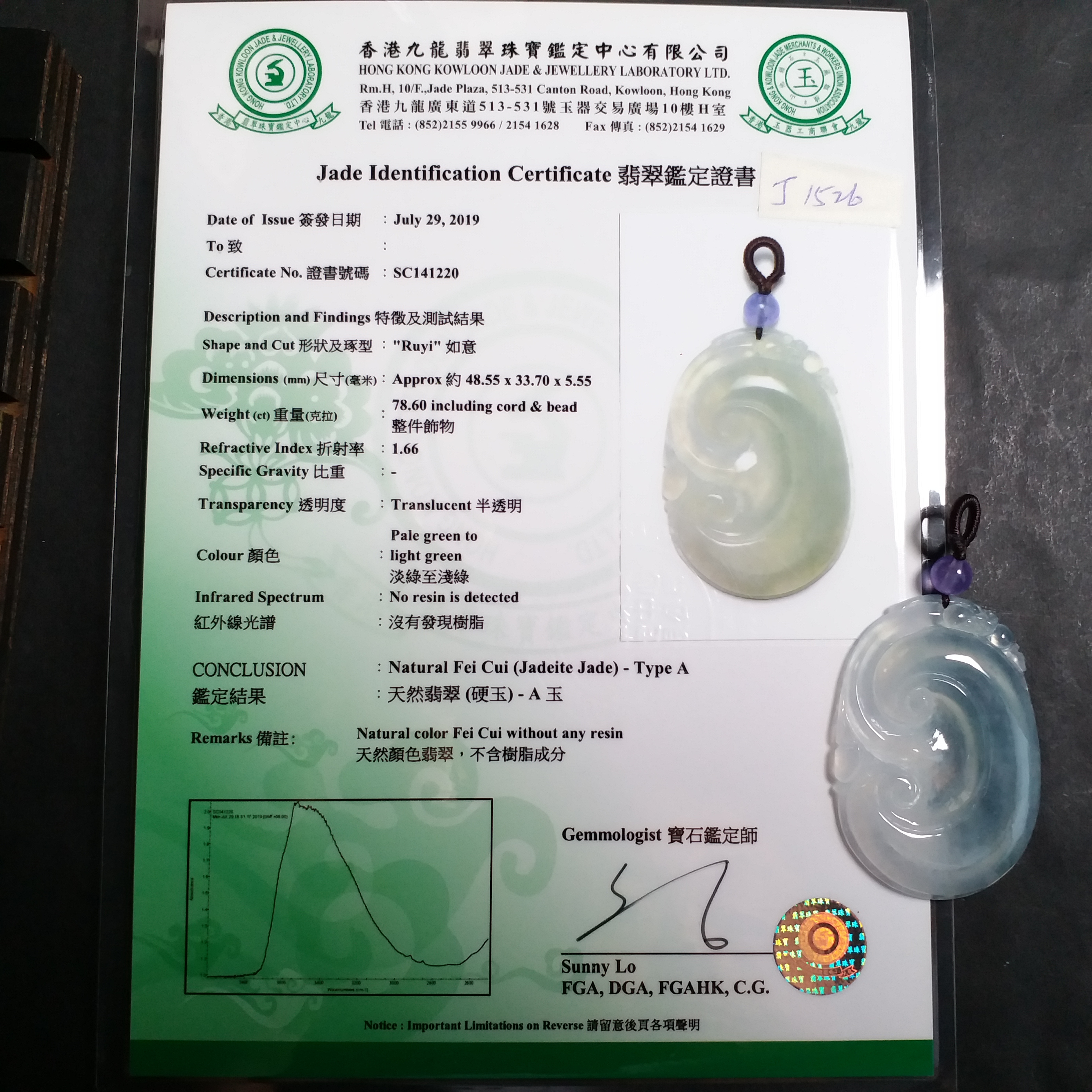 超過$1萬的貨品均包香港翡翠鑑定証書;