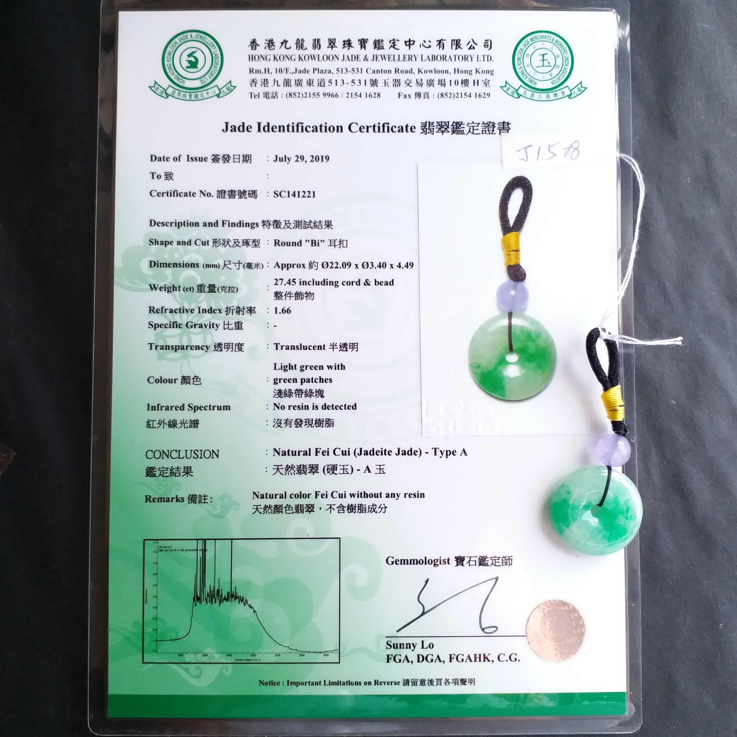 超過$1萬的貨品均包香港翡翠鑑定証書;