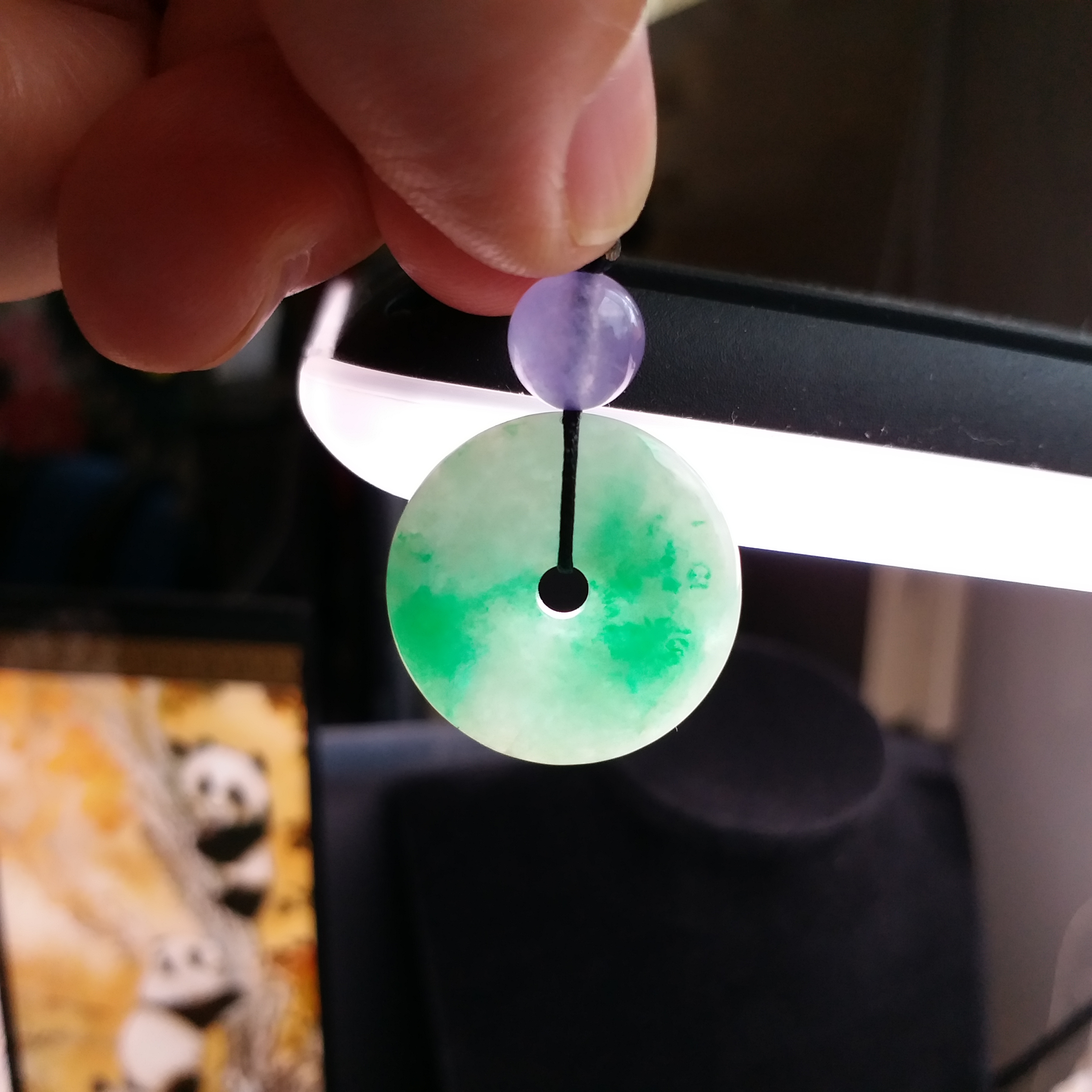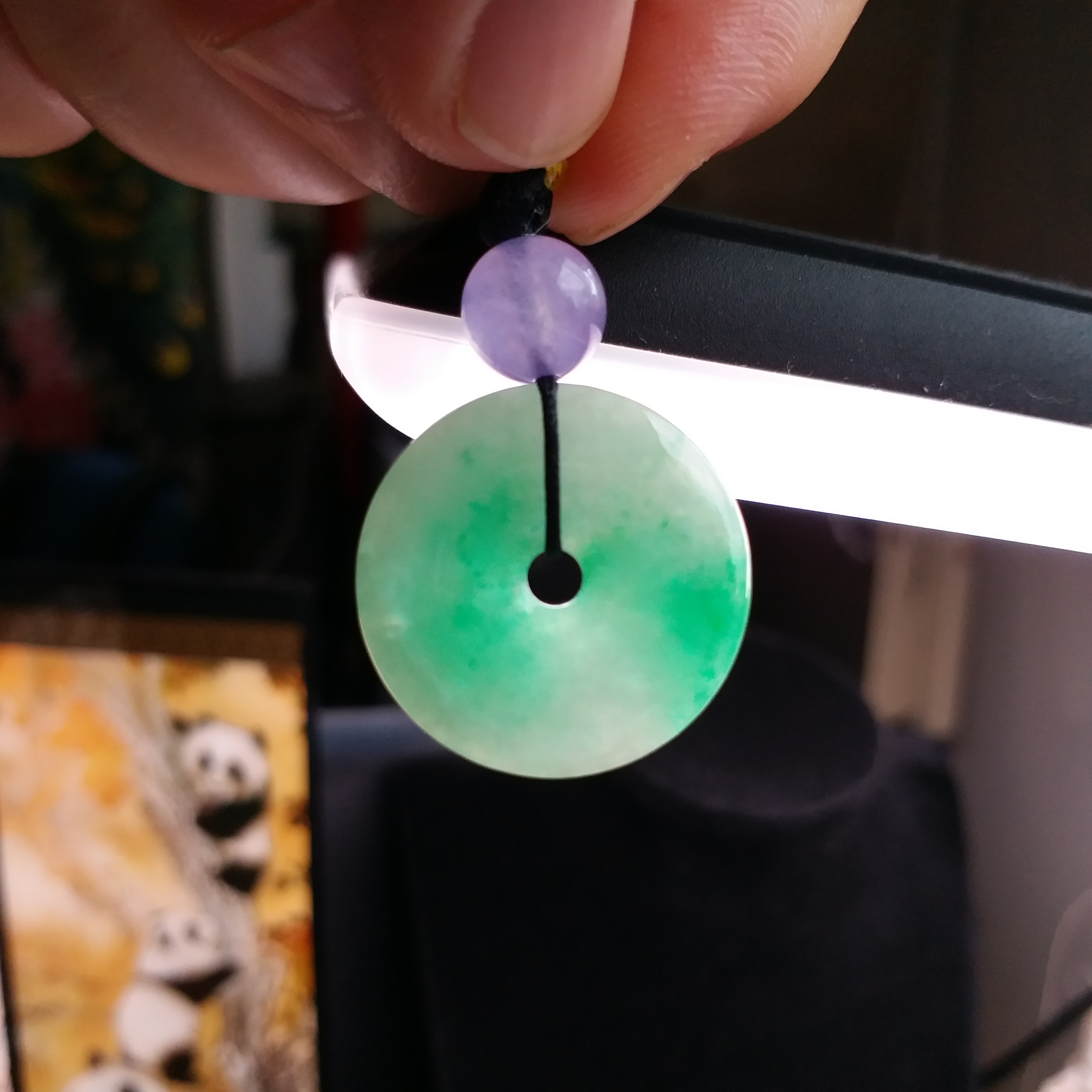 - 天然玉石在不同光線下,會呈現出不同的顏色變化;