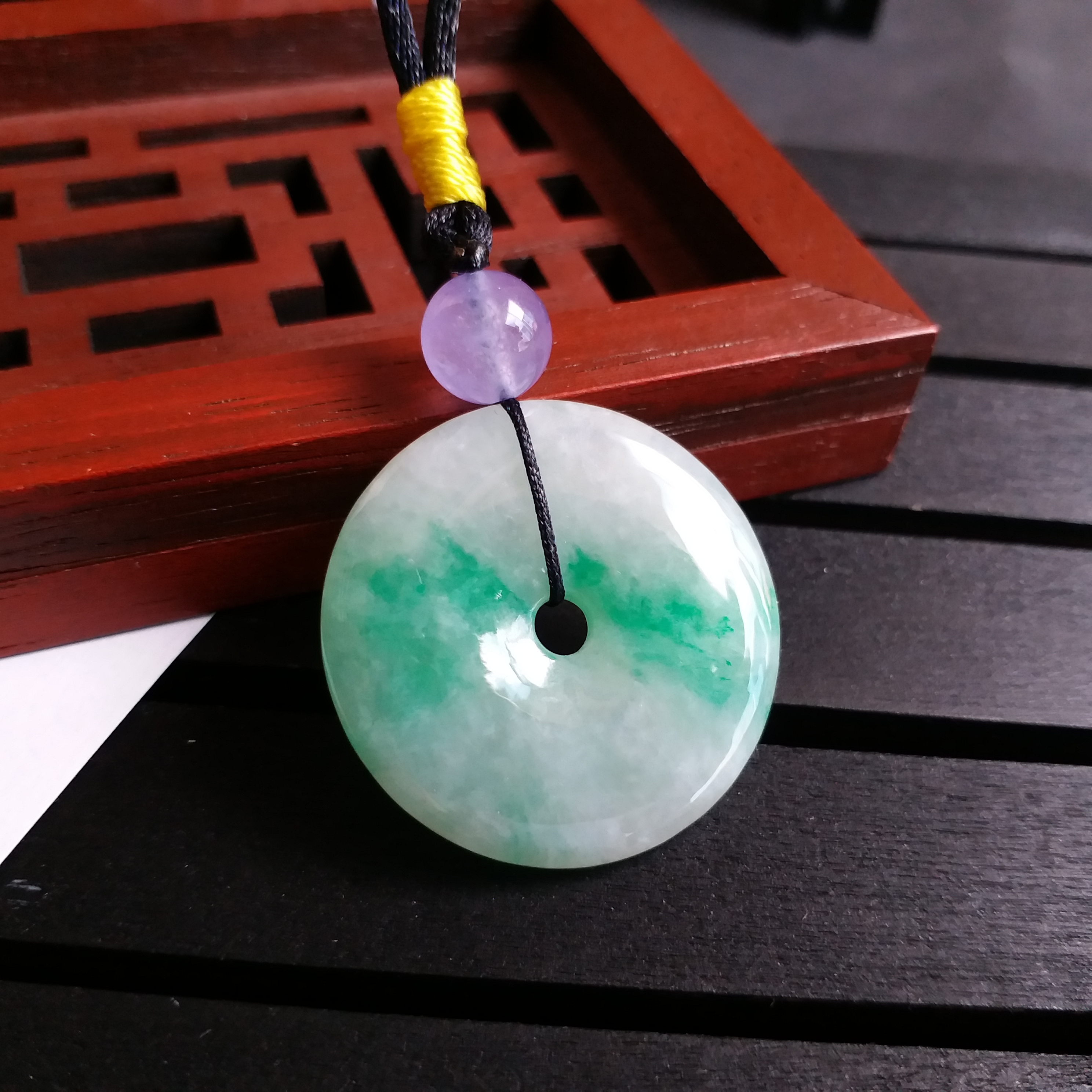 • 冰種飄陽綠平安扣 (29.6mm直徑), 天然翡翠A玉, 緬甸玉, Jade, Jadeite