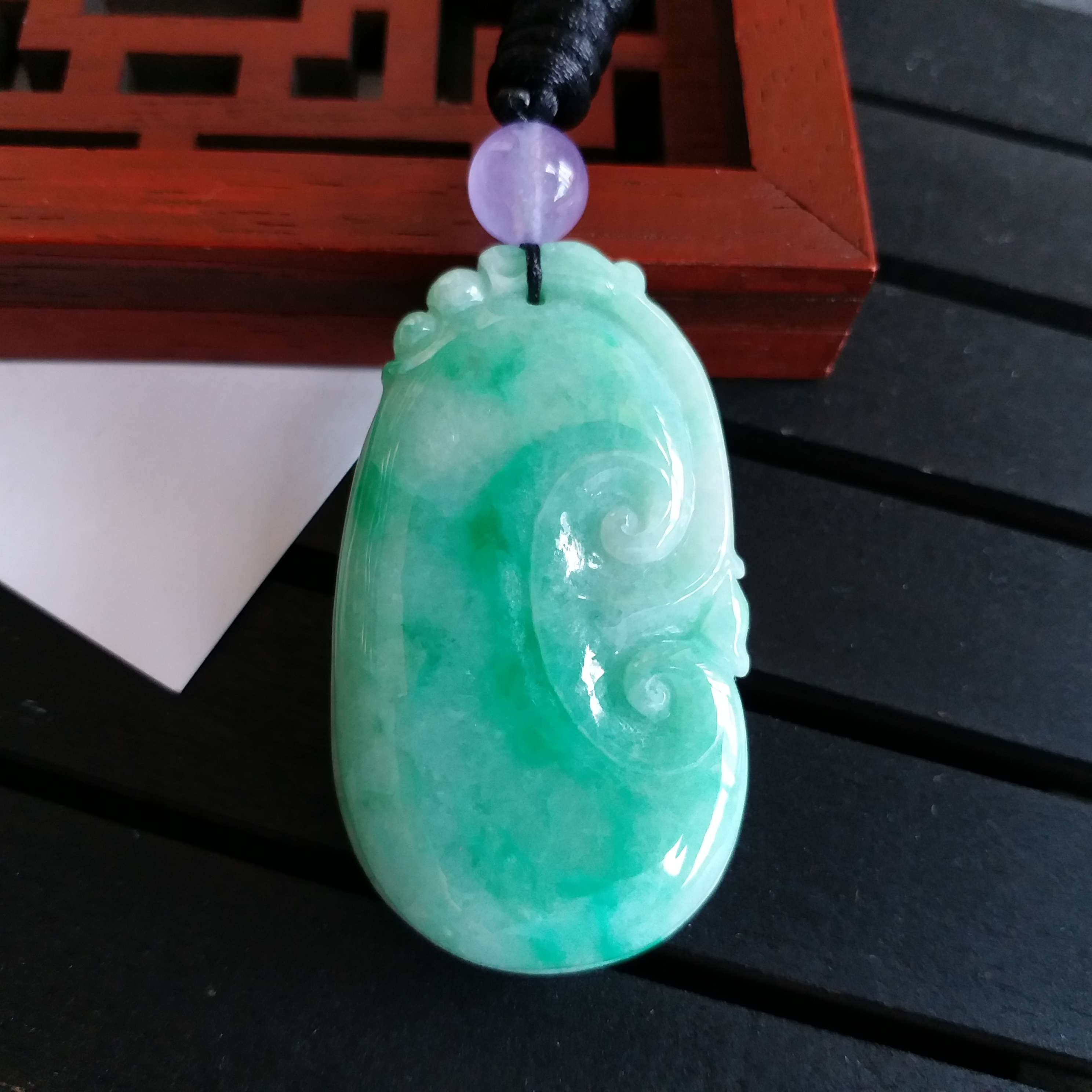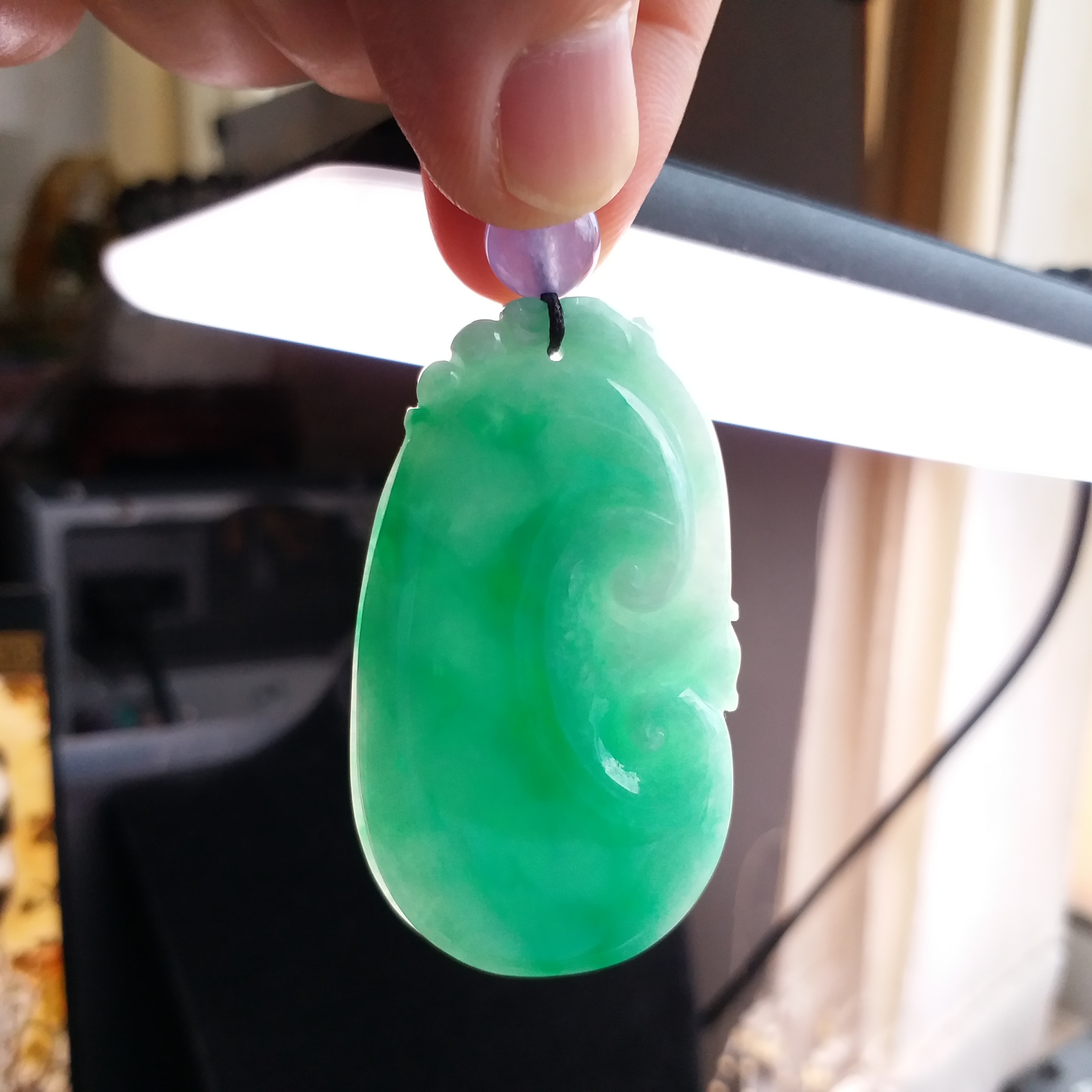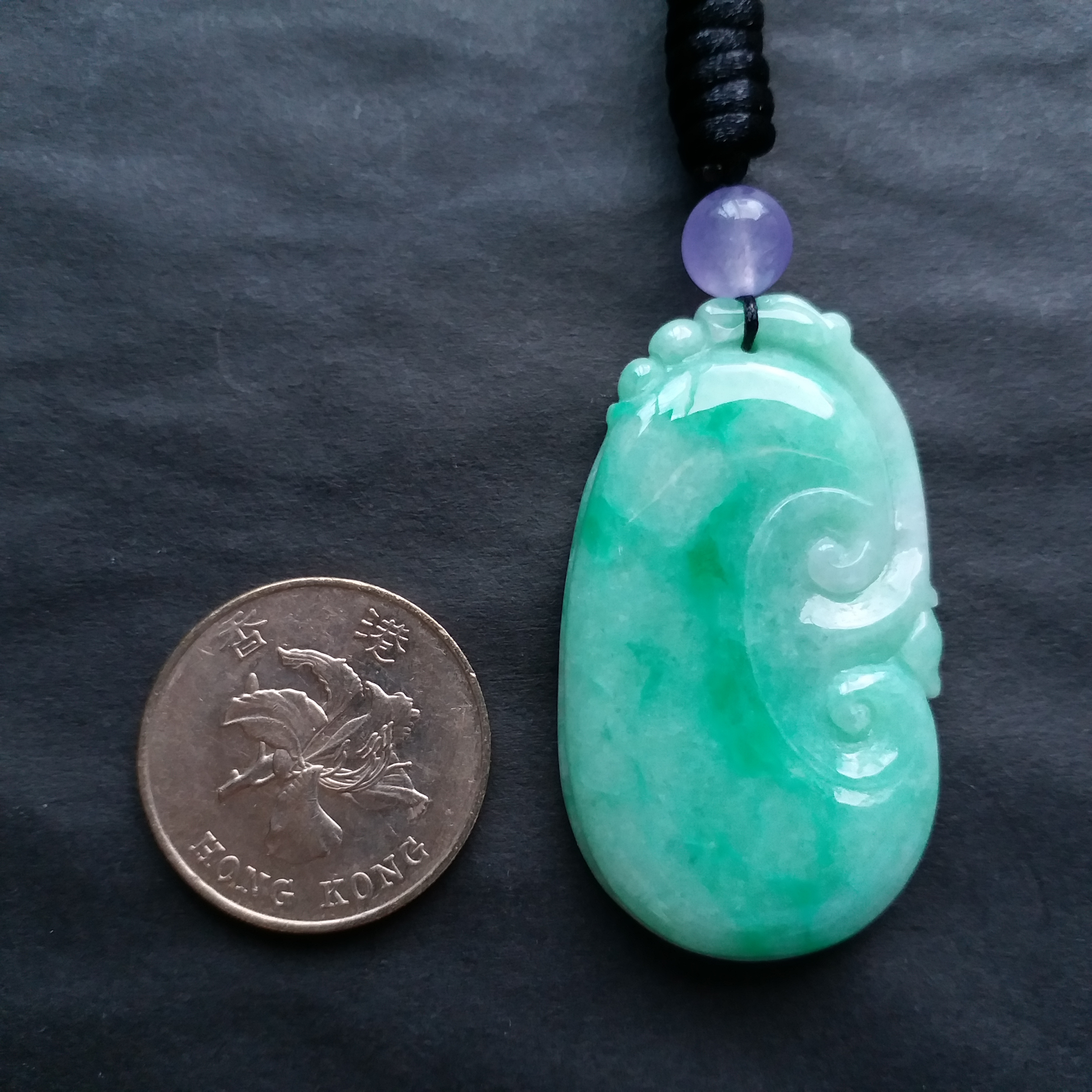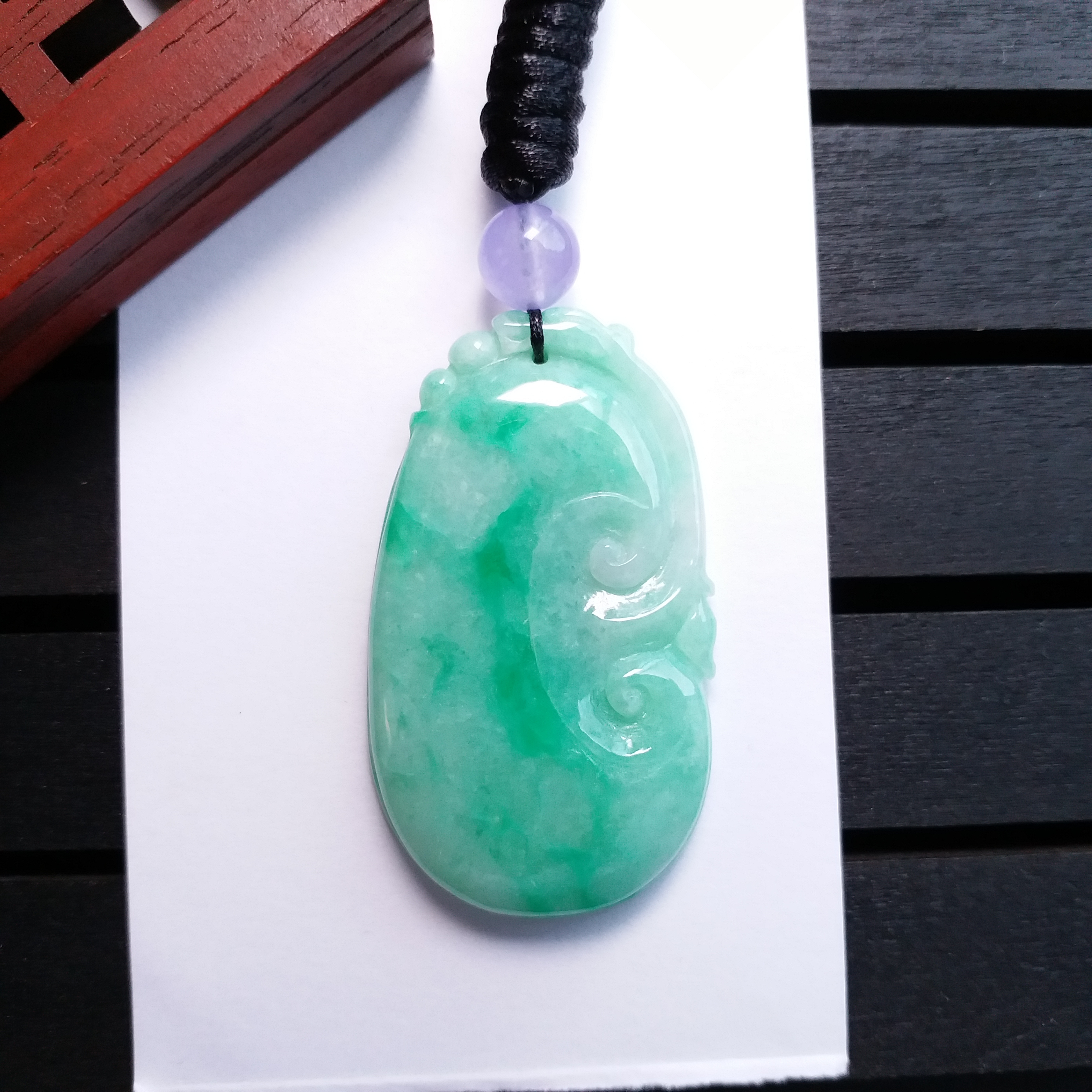 • 冰陽綠大如意吊墜, 天然翡翠A玉, 緬甸玉, Jade, Jadeite
