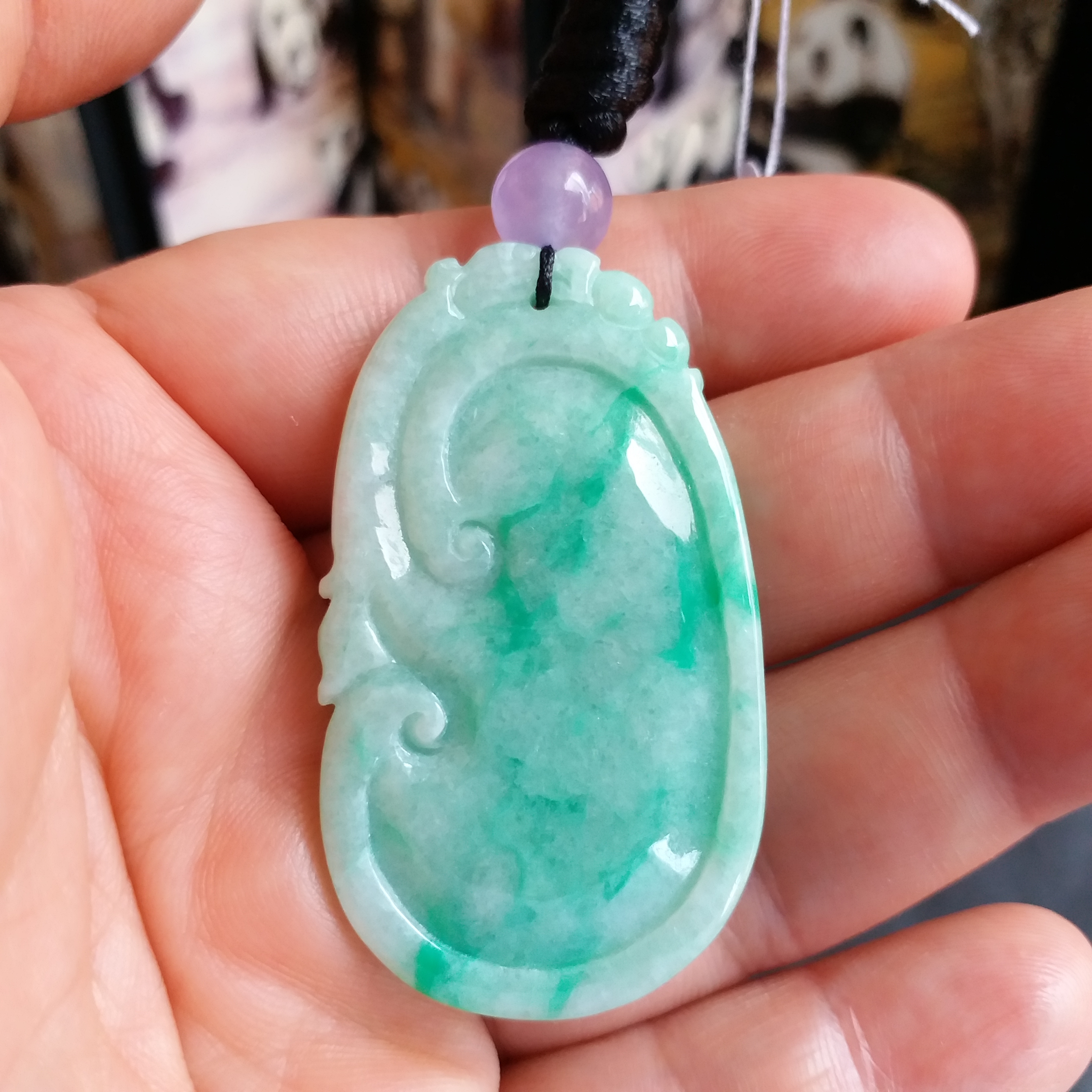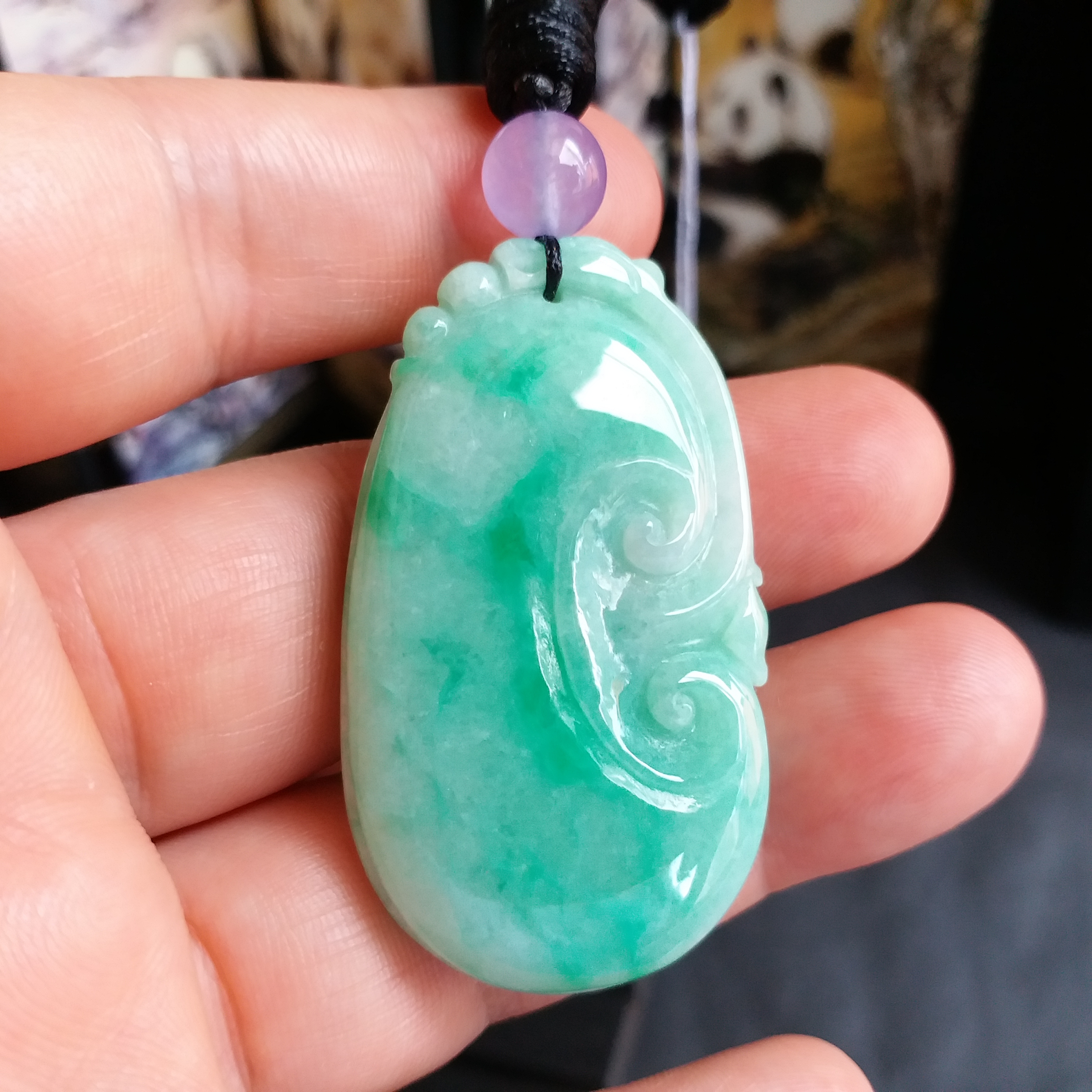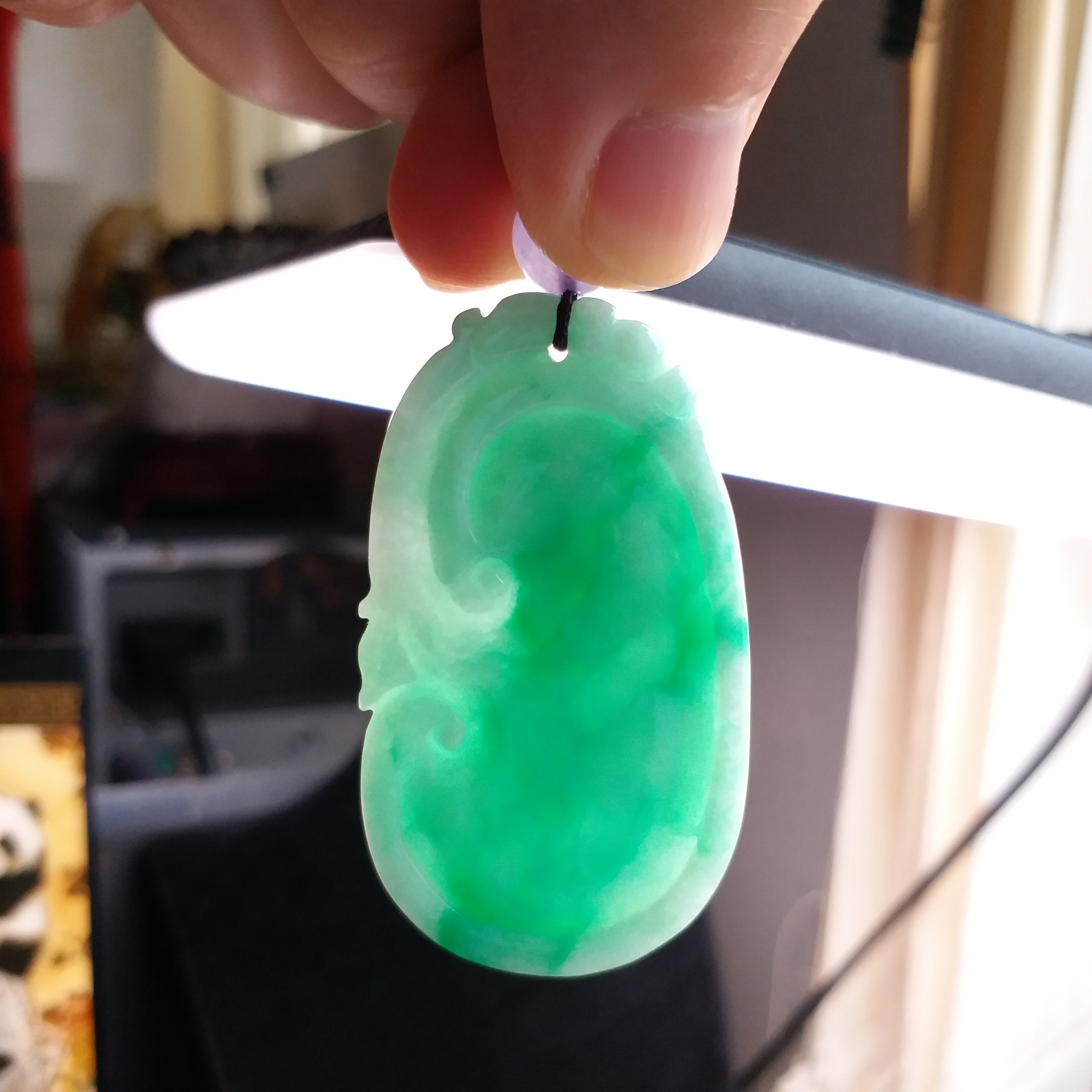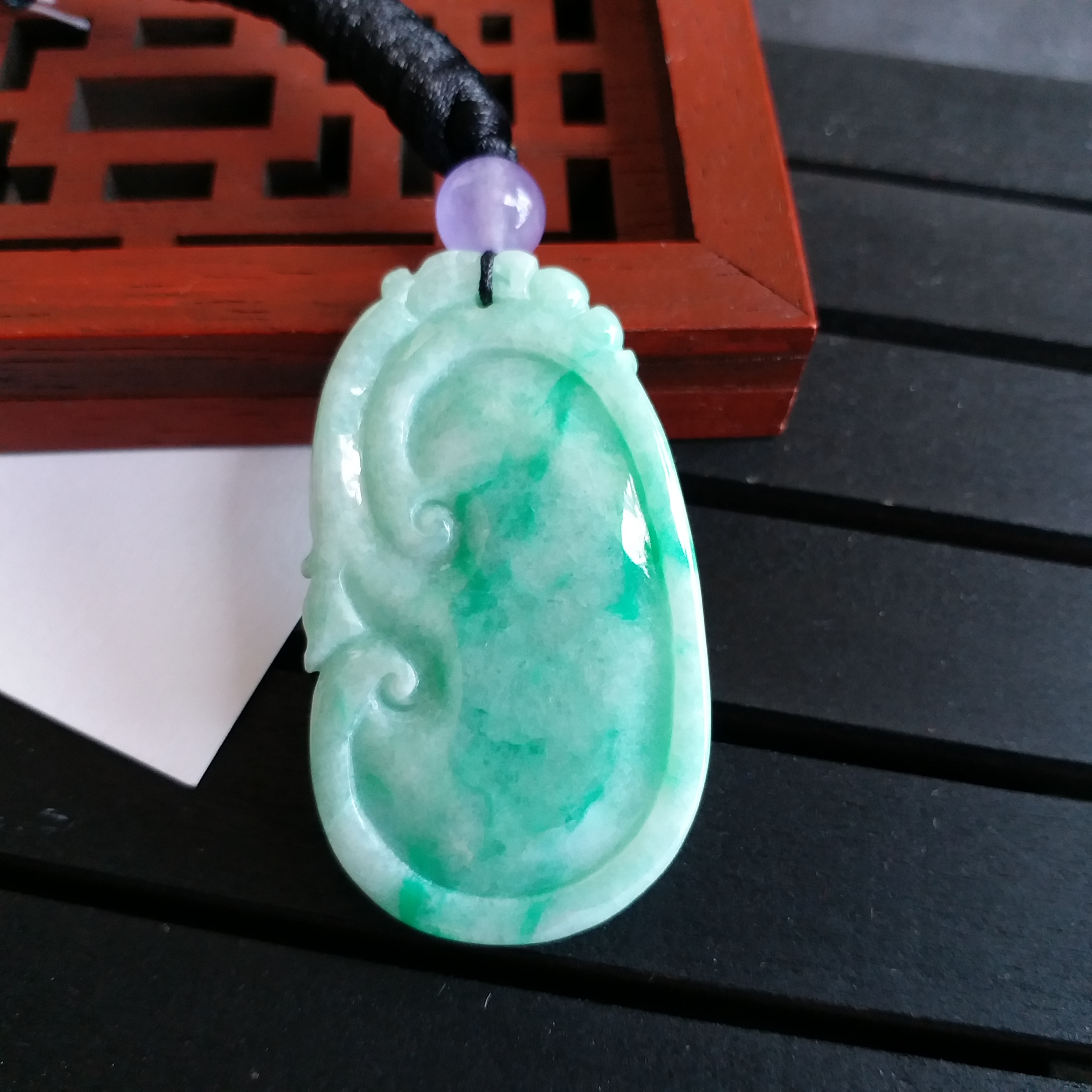 • 冰陽綠大如意吊墜, 天然翡翠A玉, 緬甸玉, Jade, Jadeite