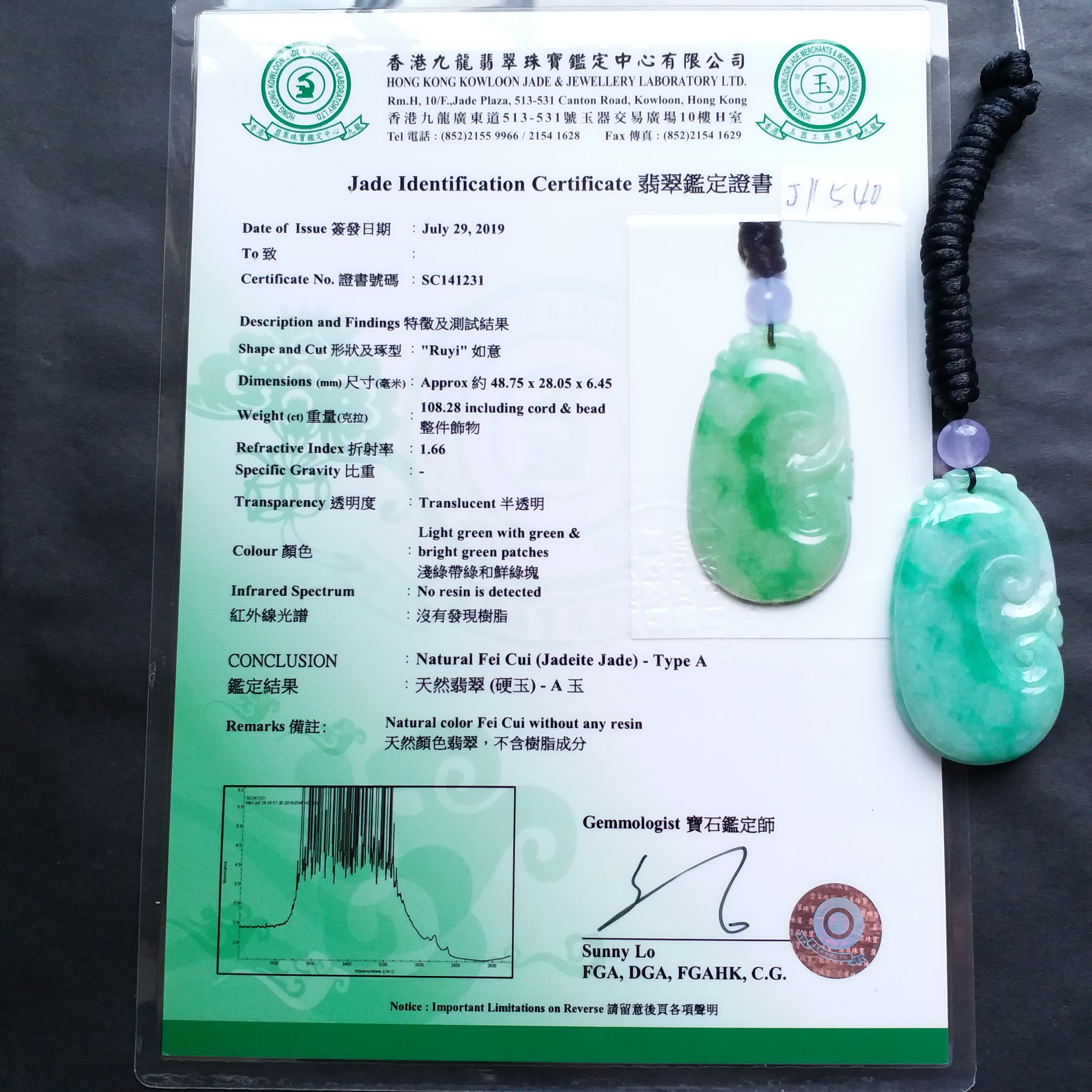 超過$1萬的貨品均包香港翡翠鑑定証書;