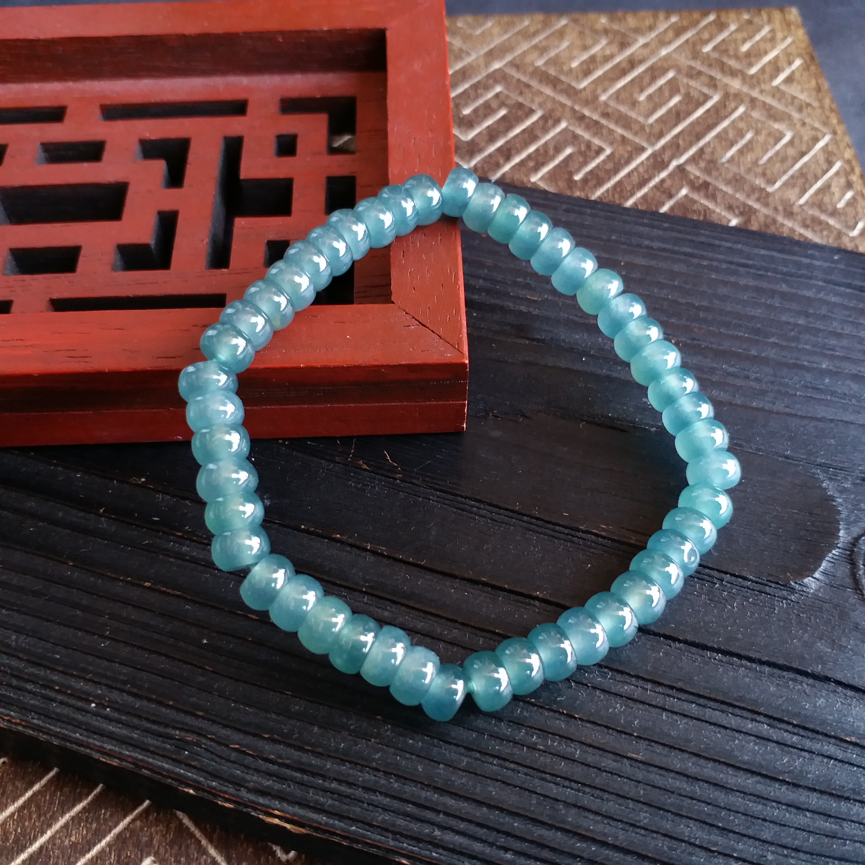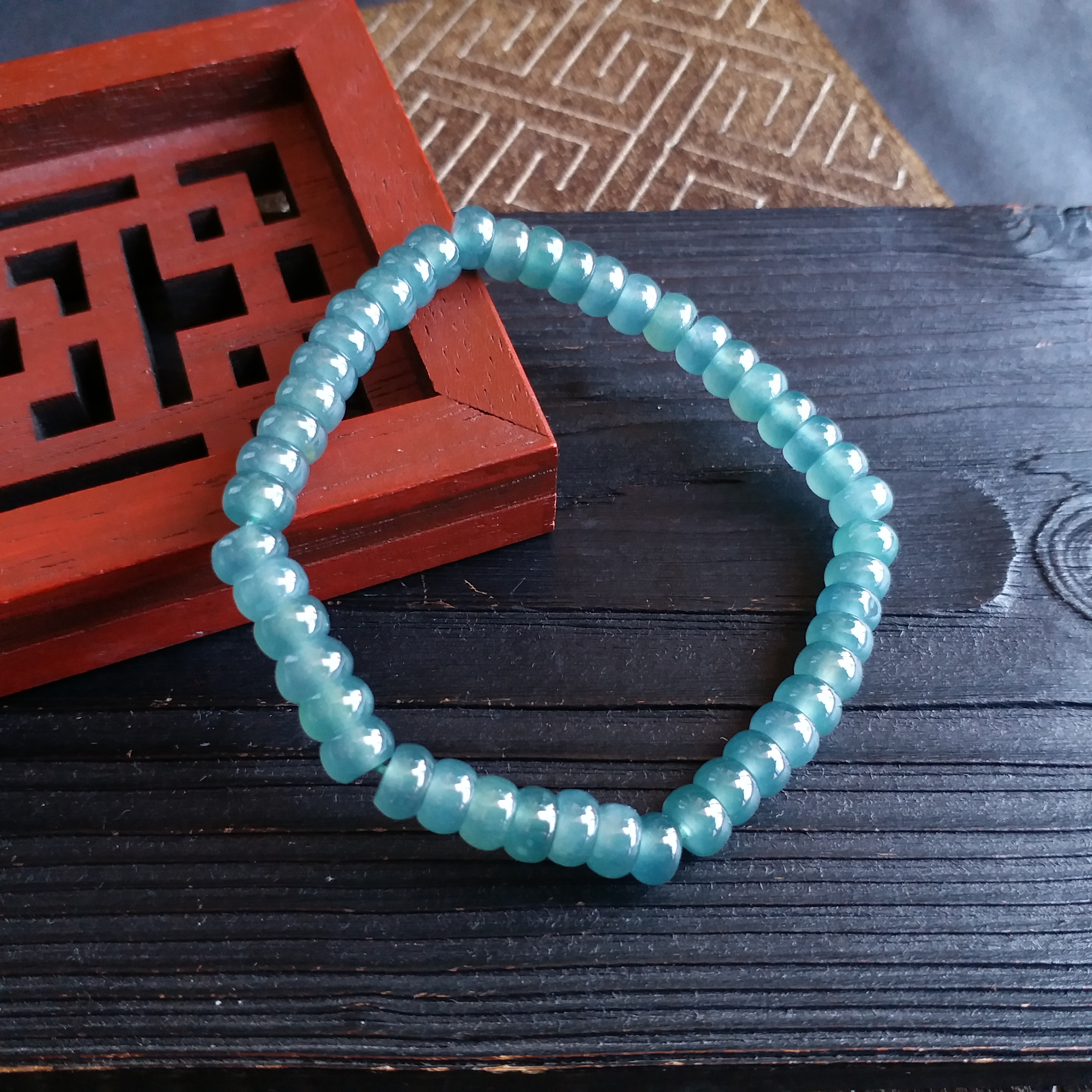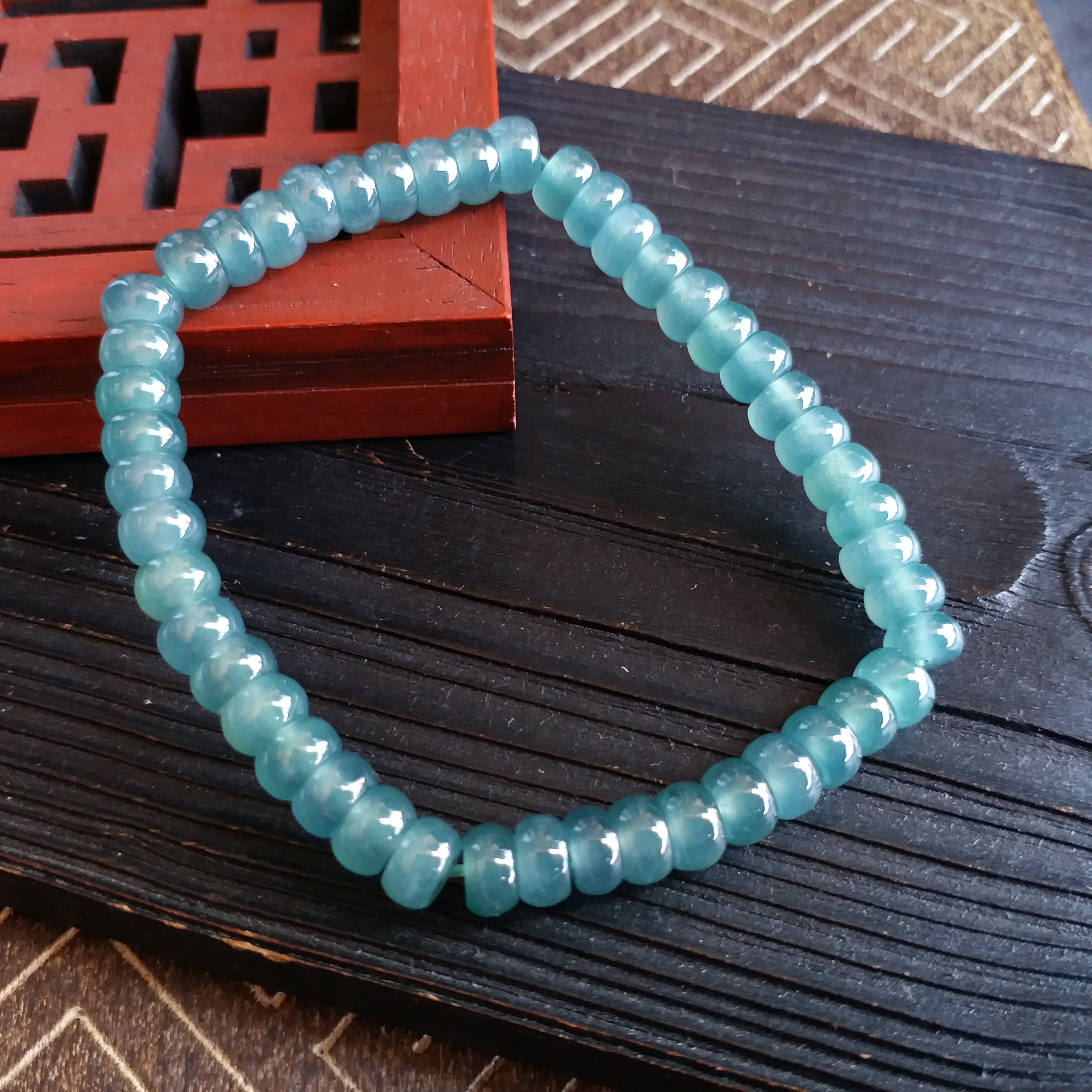 • 冰藍水算盤珠手串, 天然翡翠A玉, 緬甸玉, Jade, Jadeite