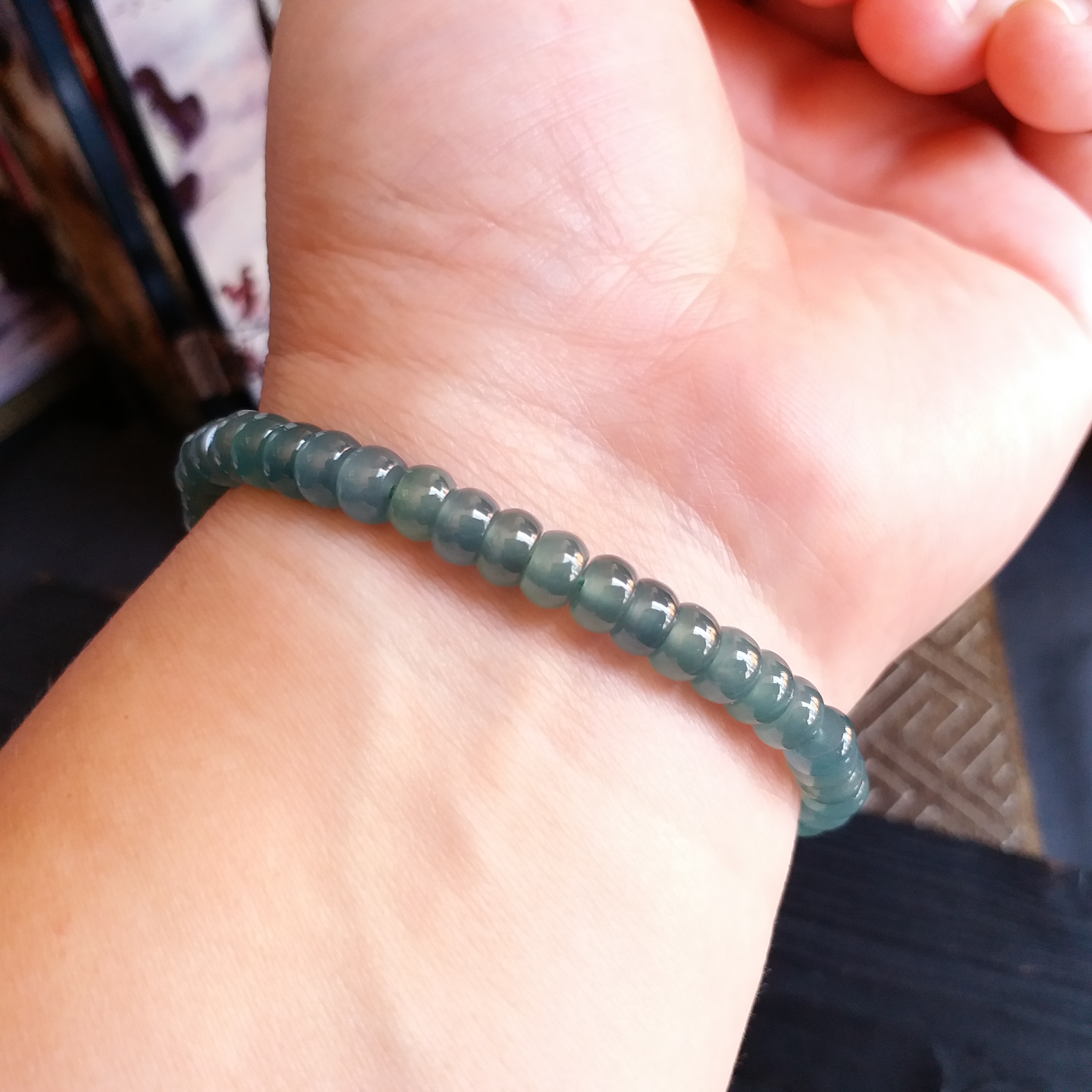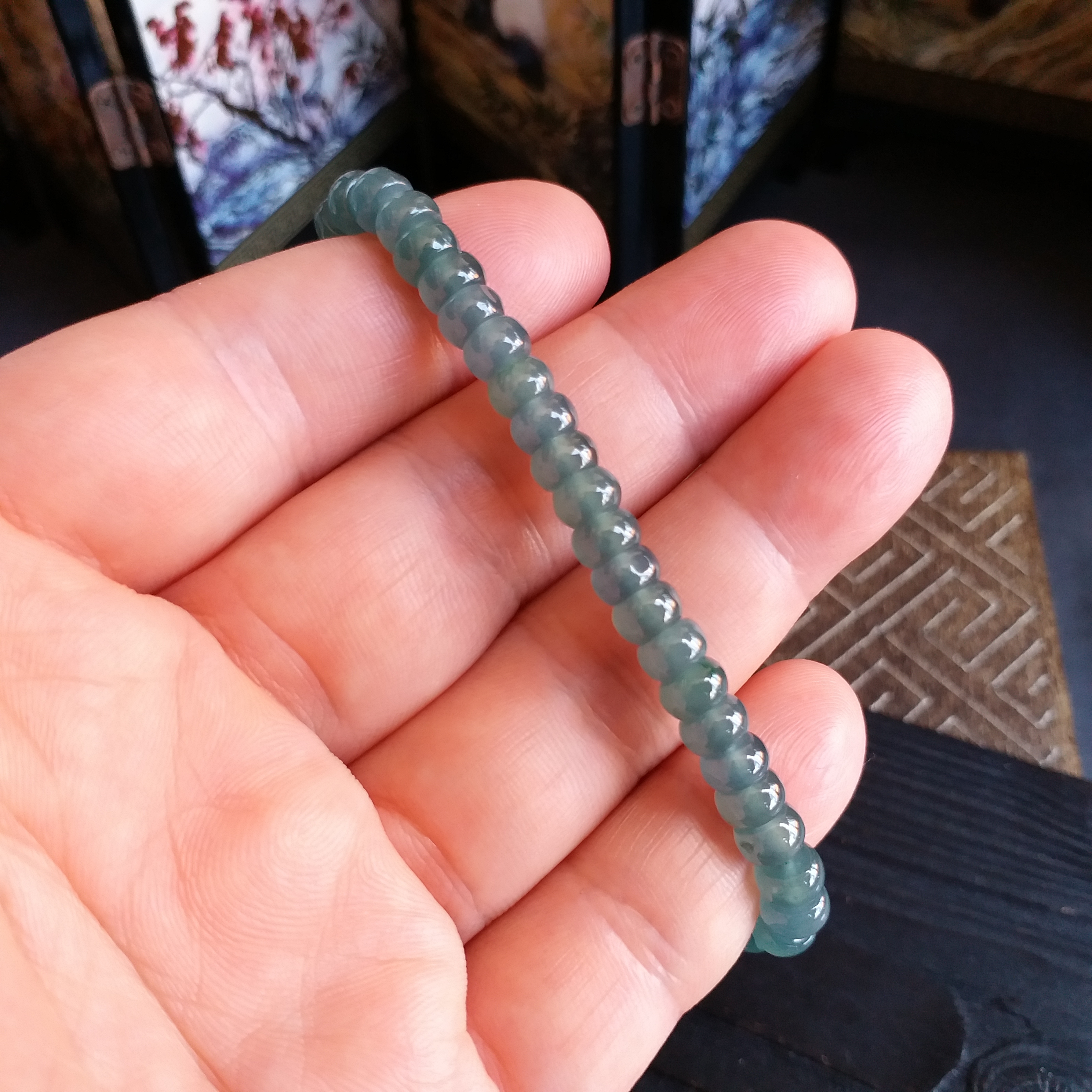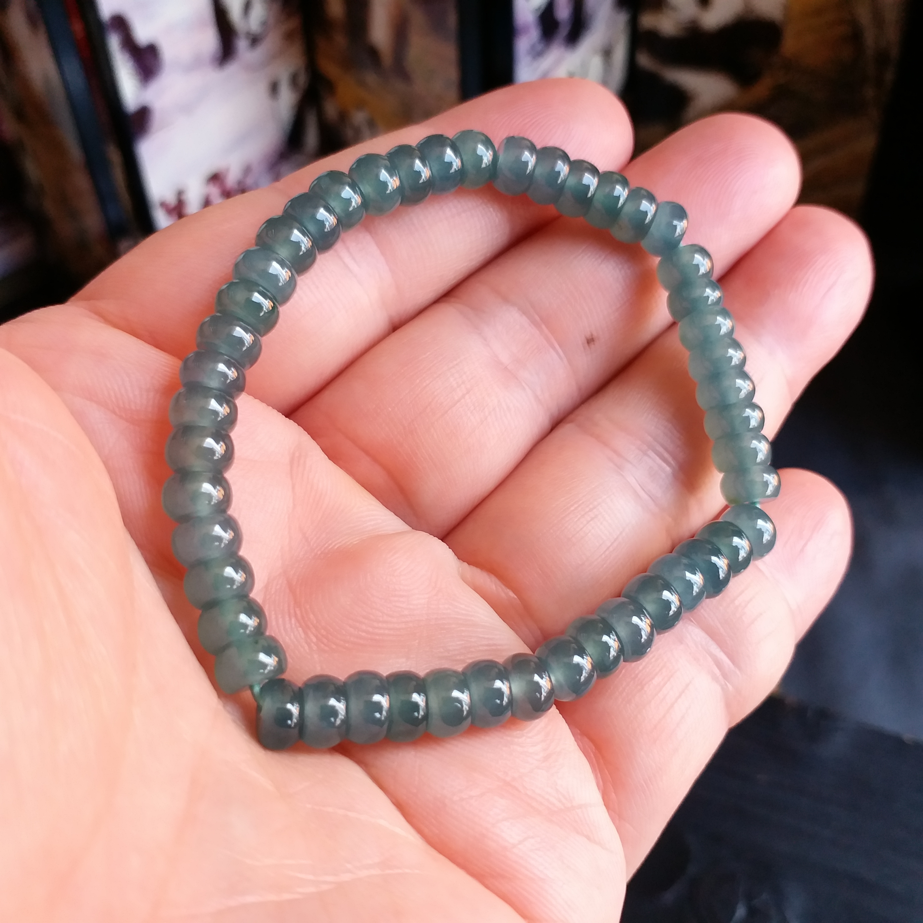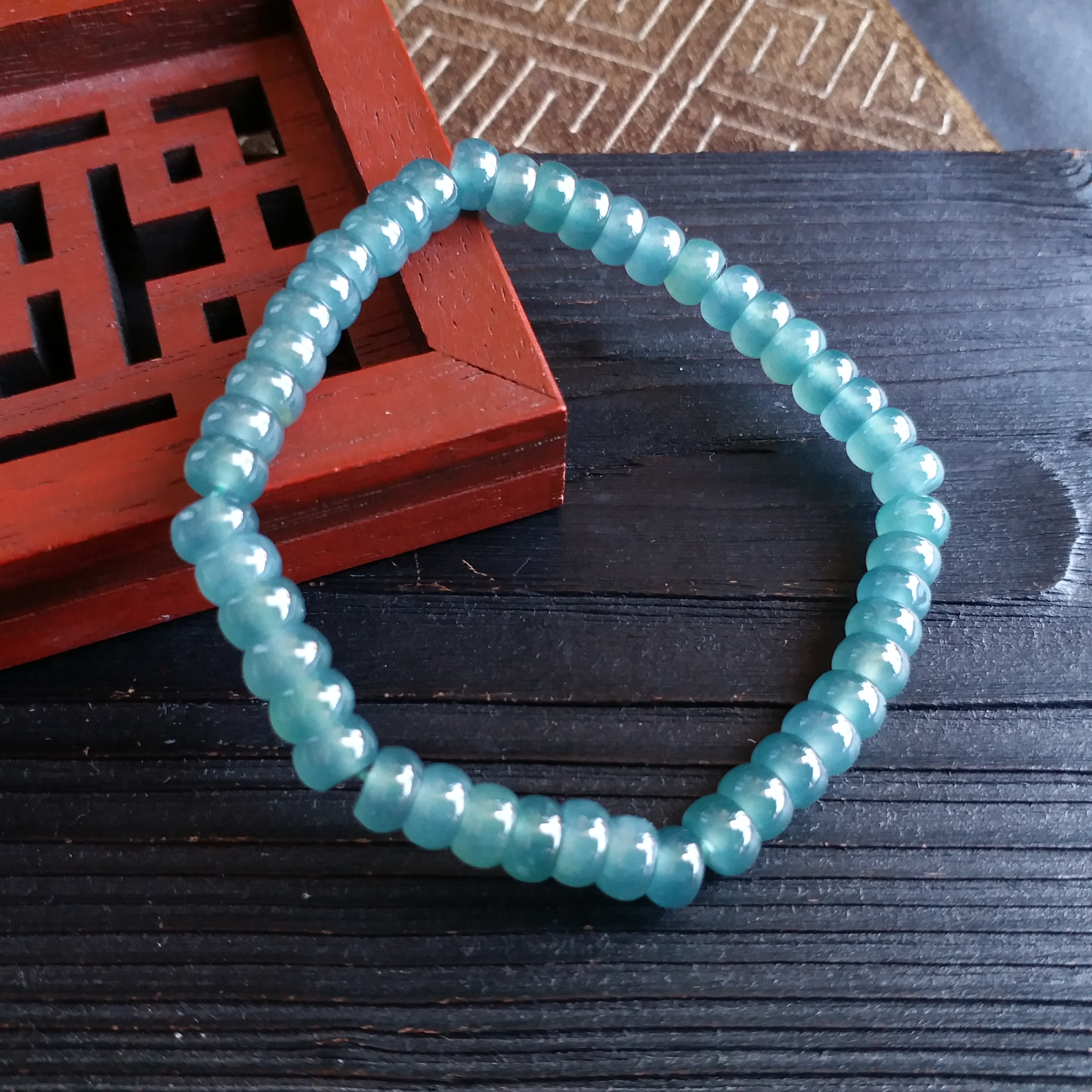 • 冰藍水算盤珠手串, 天然翡翠A玉, 緬甸玉, Jade, Jadeite