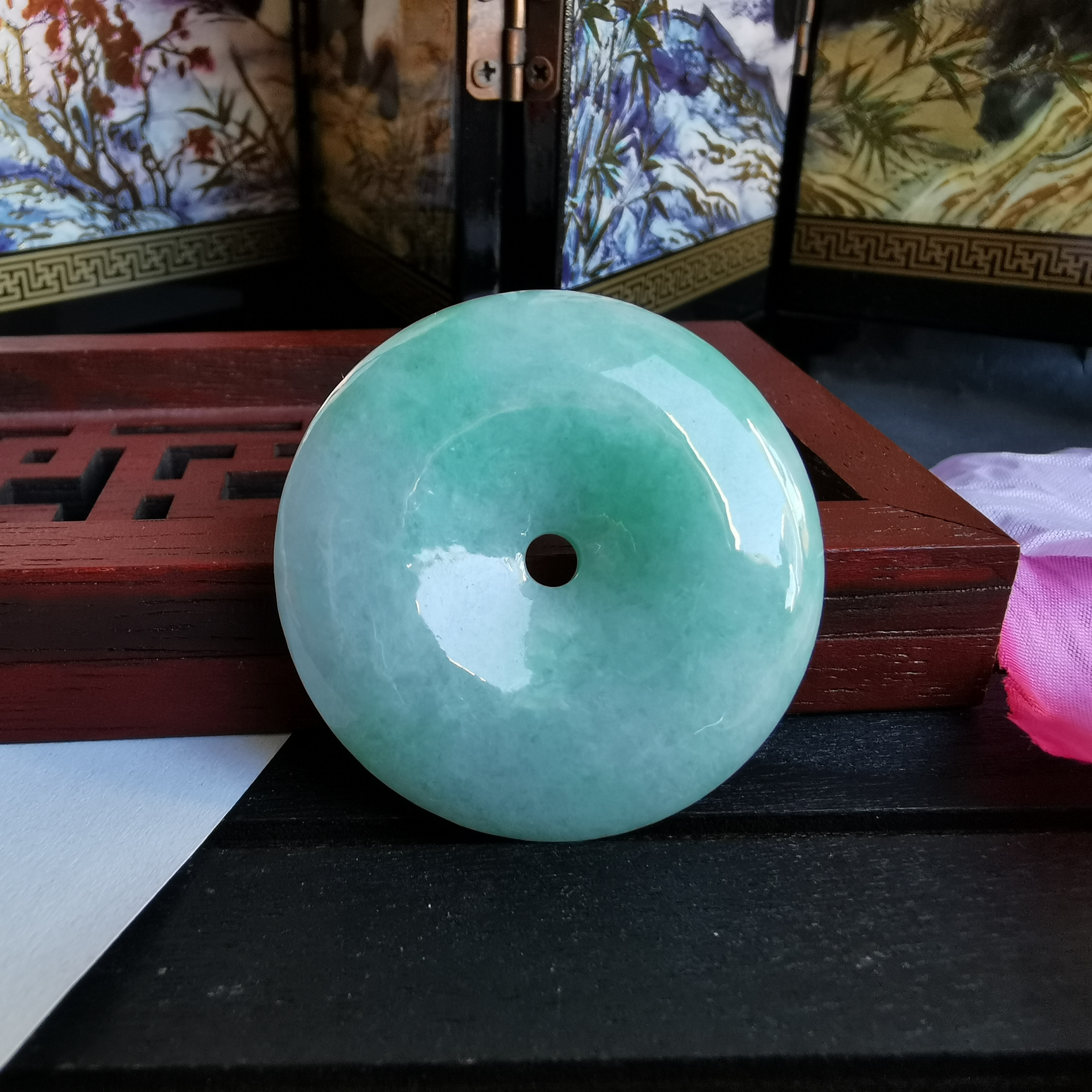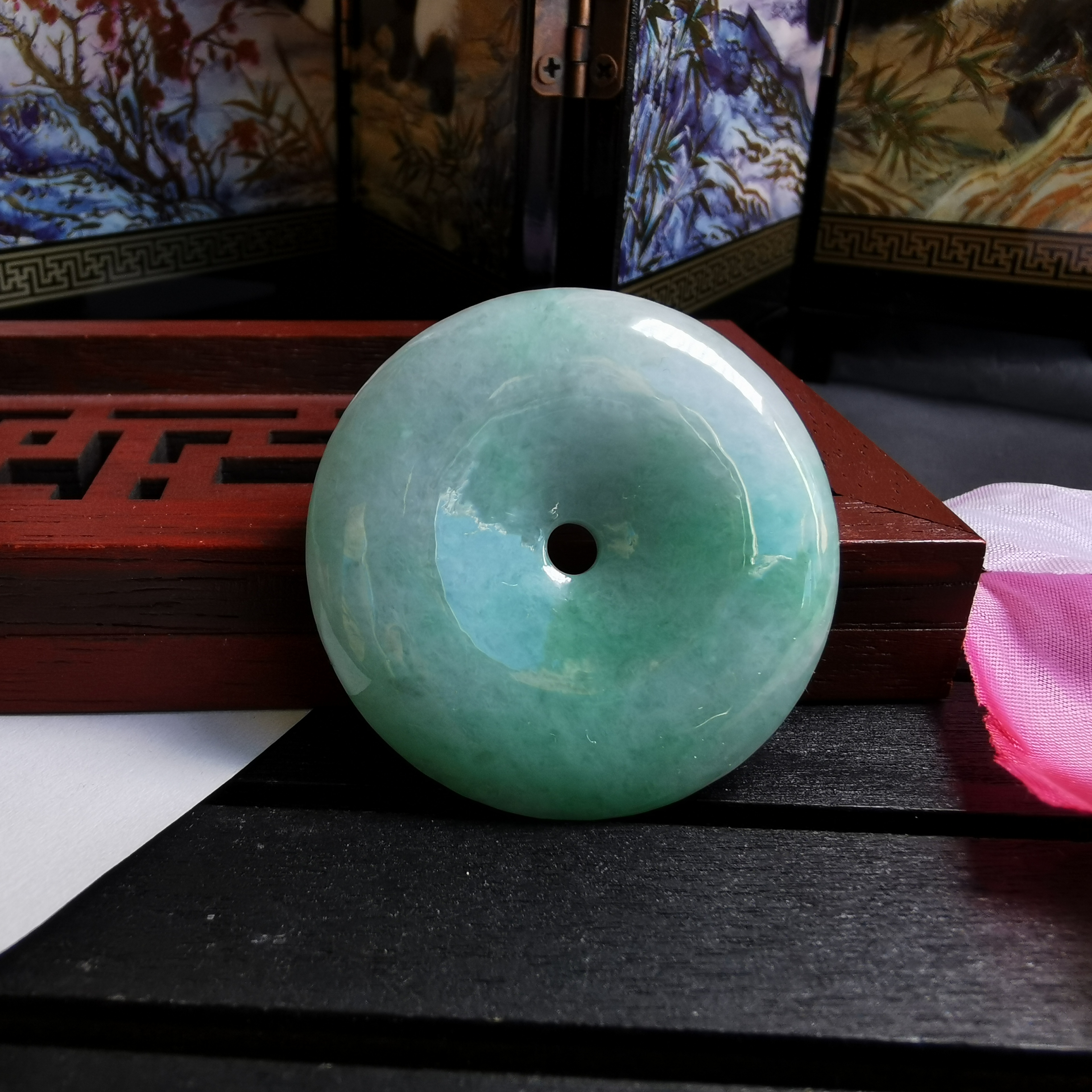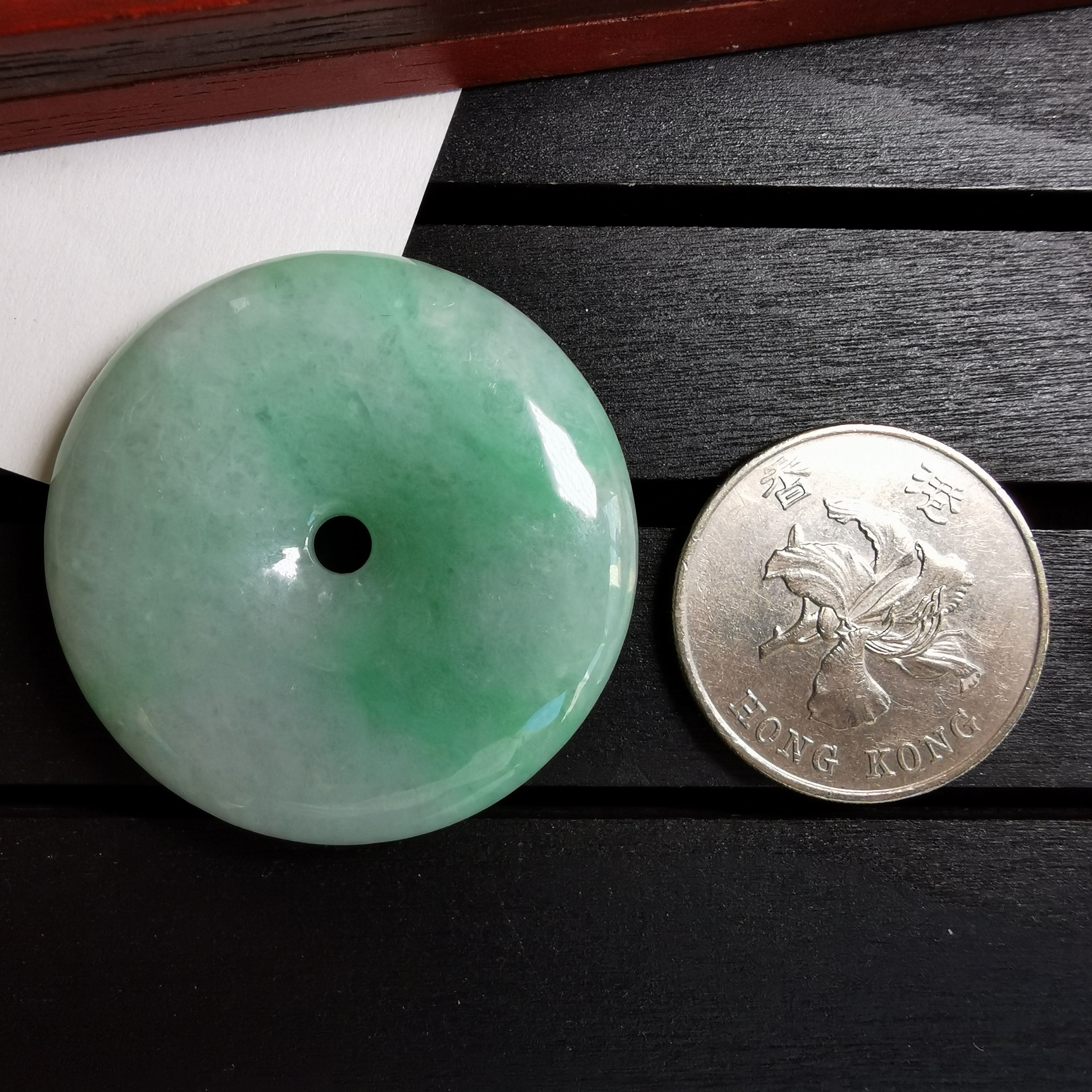 • 冰糯陽綠平安扣 (38.2mm直徑), 天然翡翠A玉, 緬甸玉, Jade, Jadeite