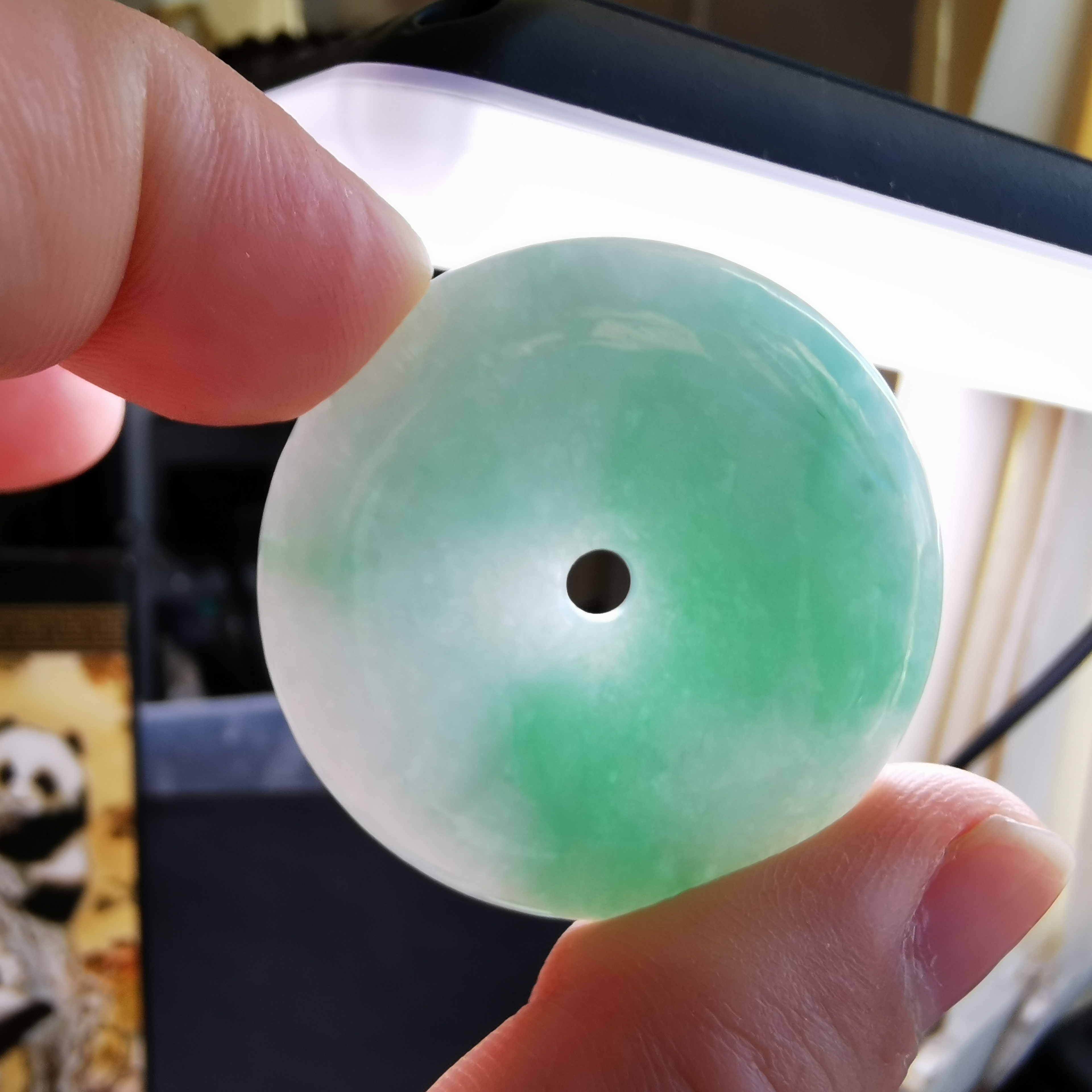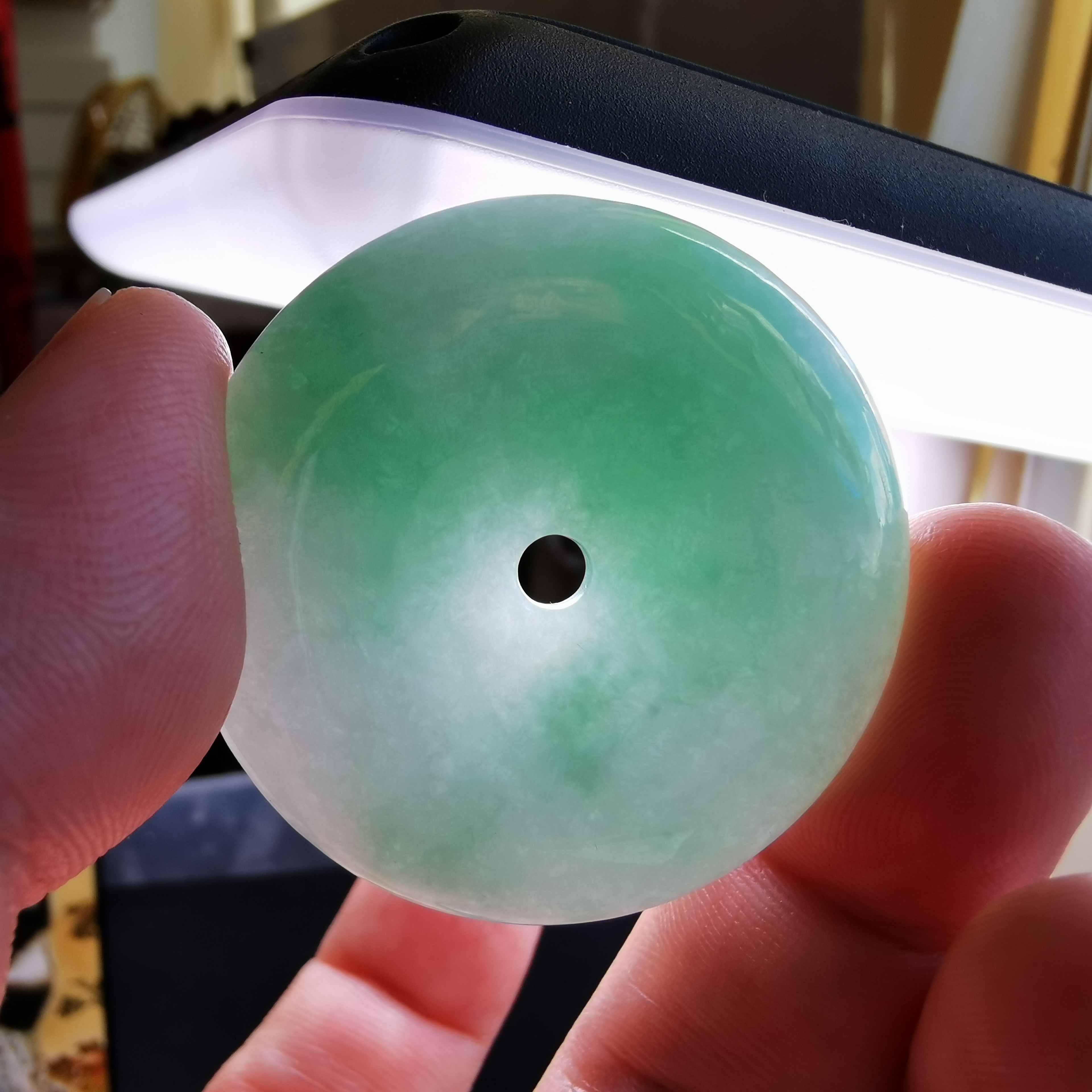 - 天然玉石在不同光線下,會呈現出不同的顏色變化;