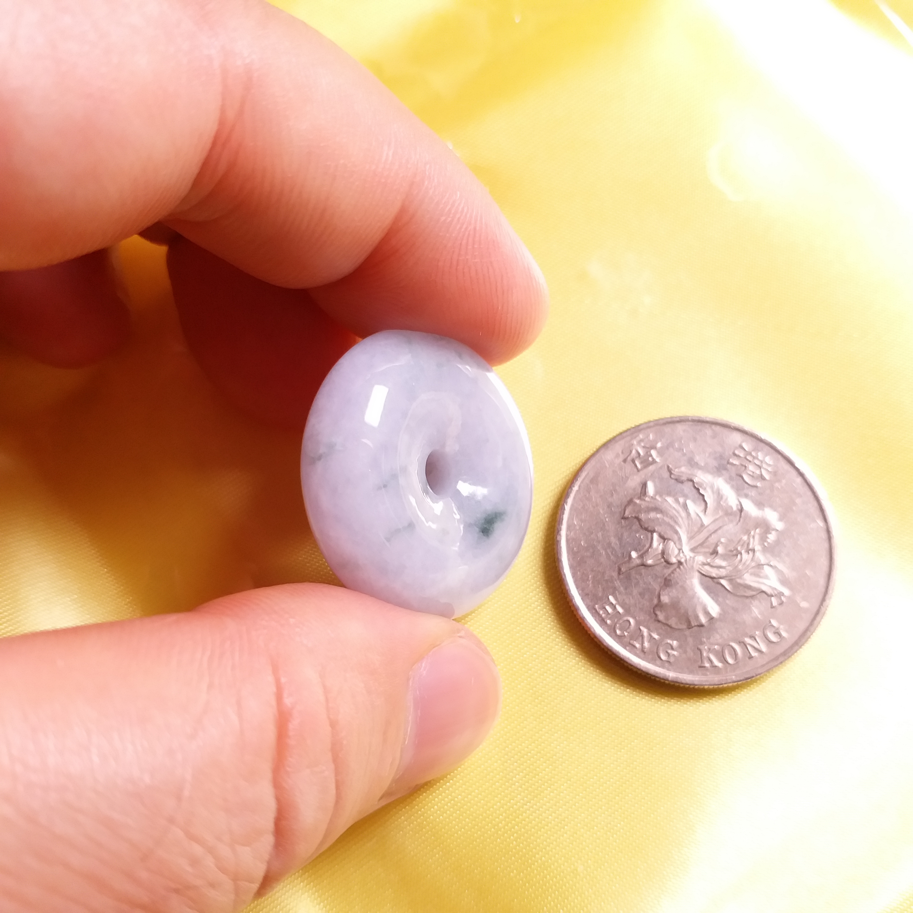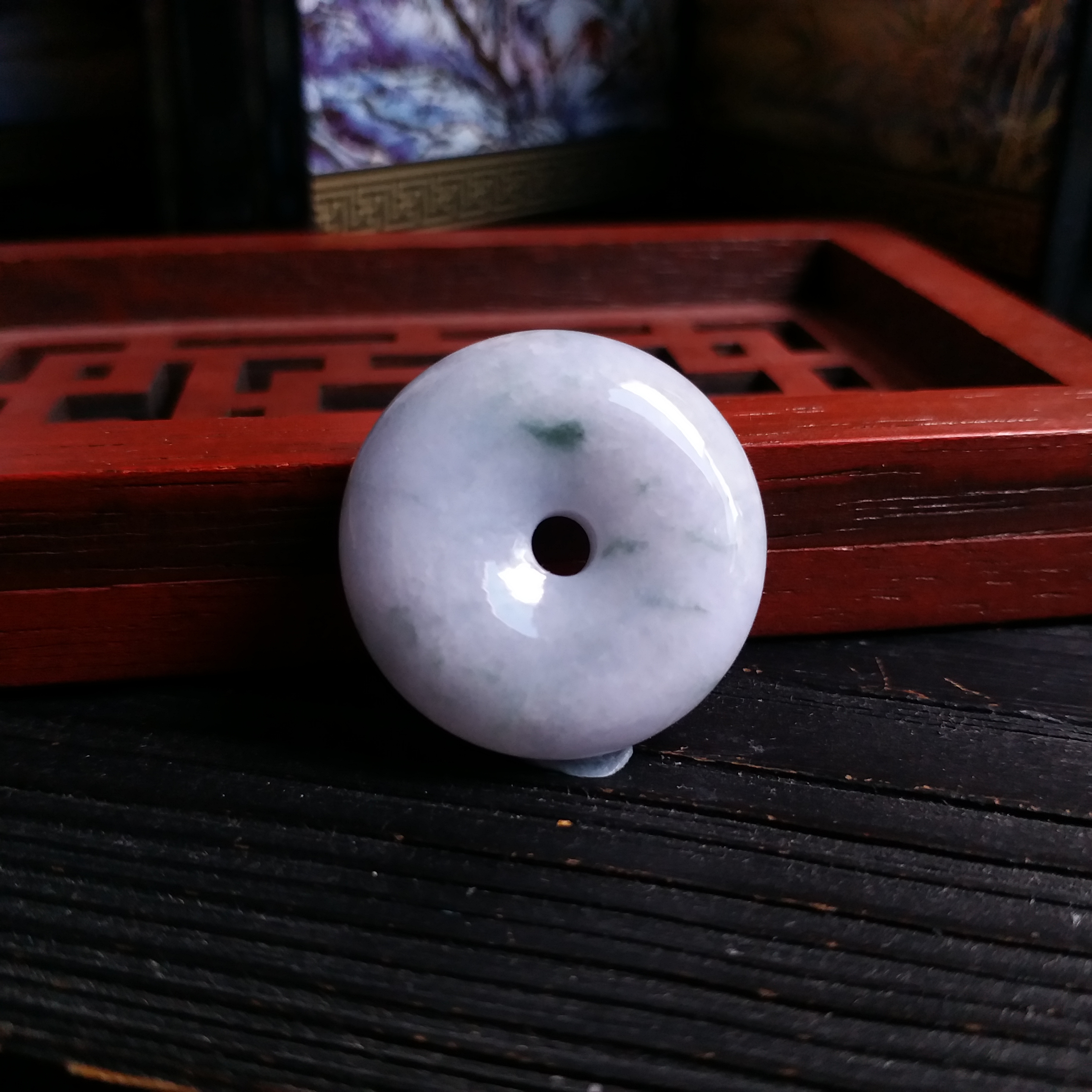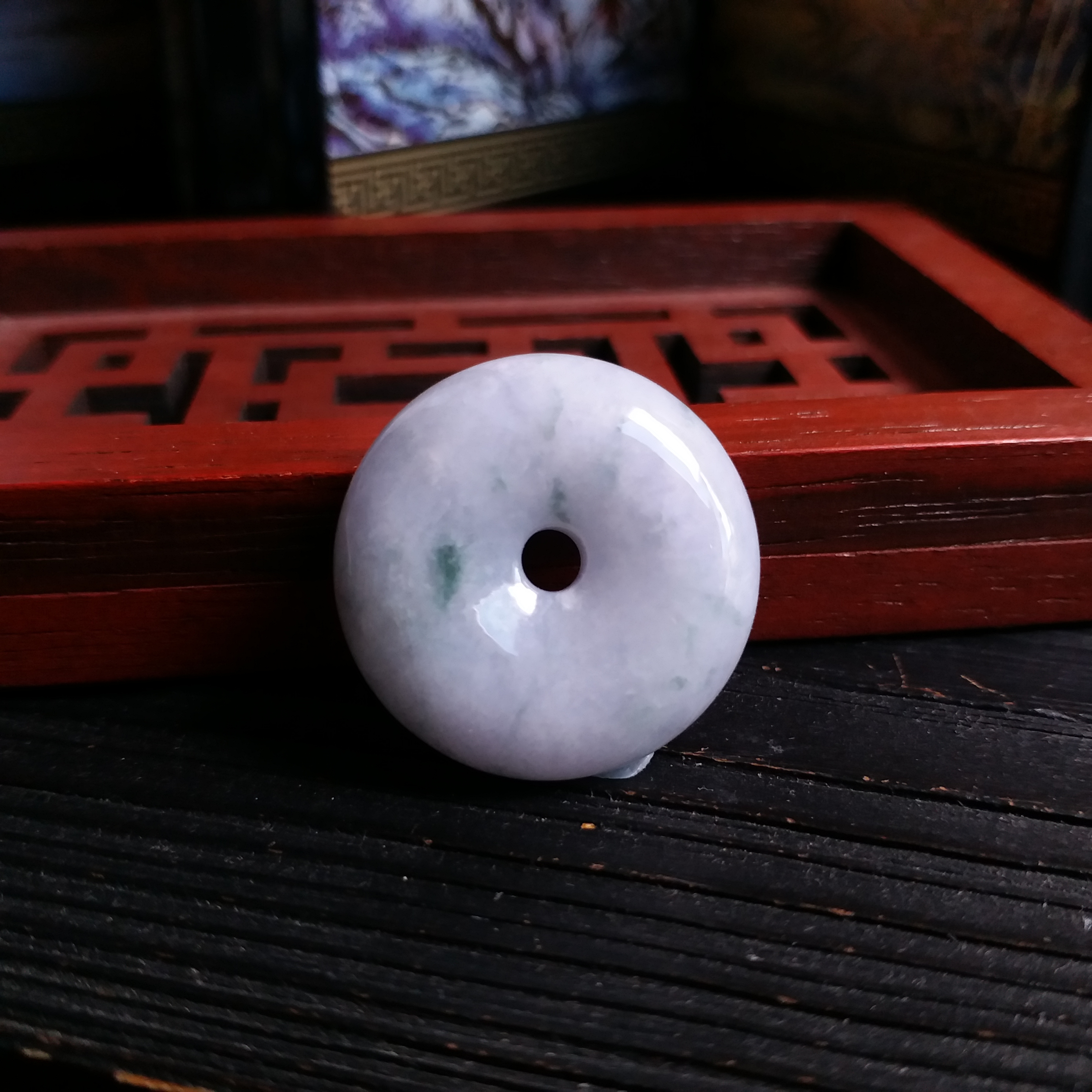 J1560 冰糯紫飄綠花平安扣 (25.3mm直徑)