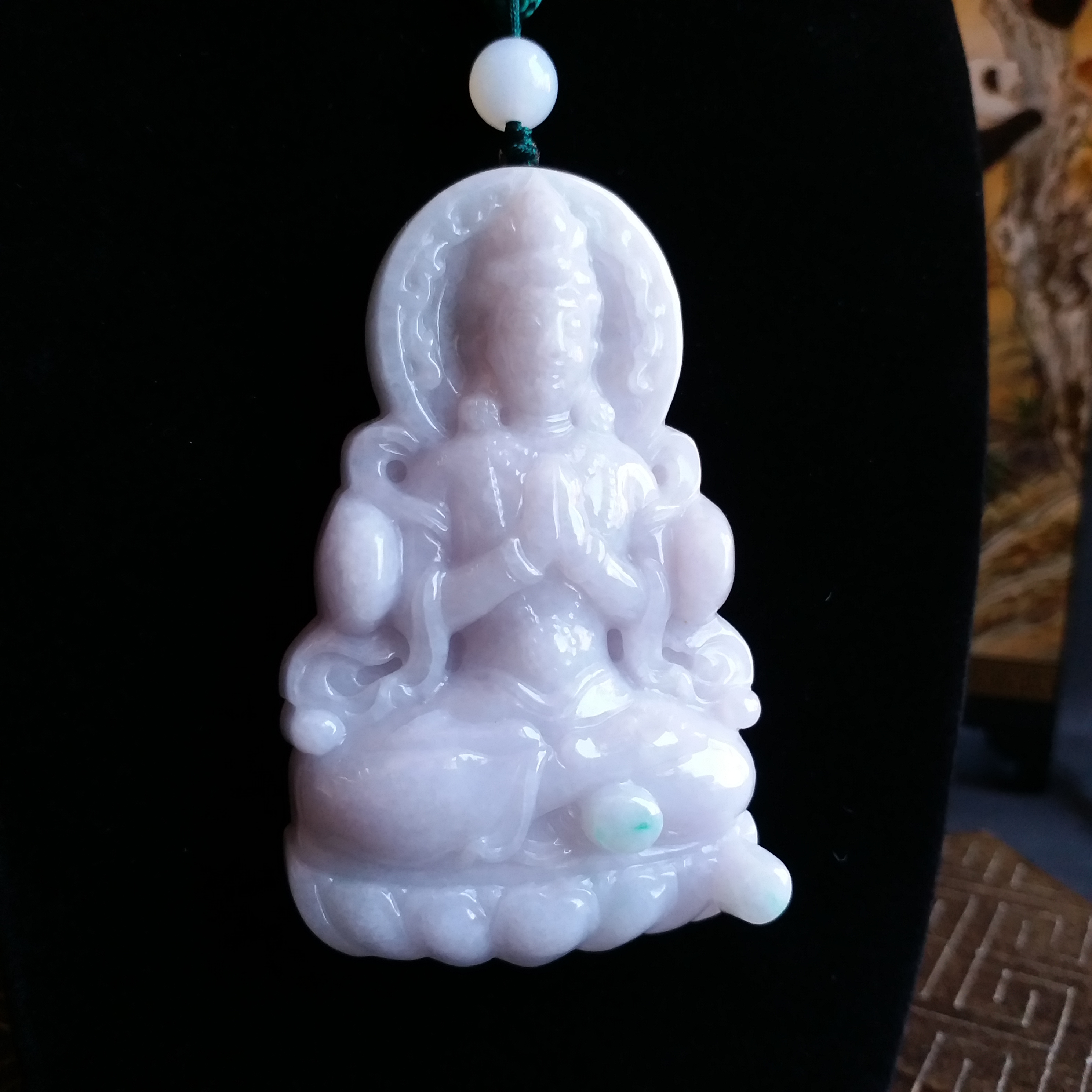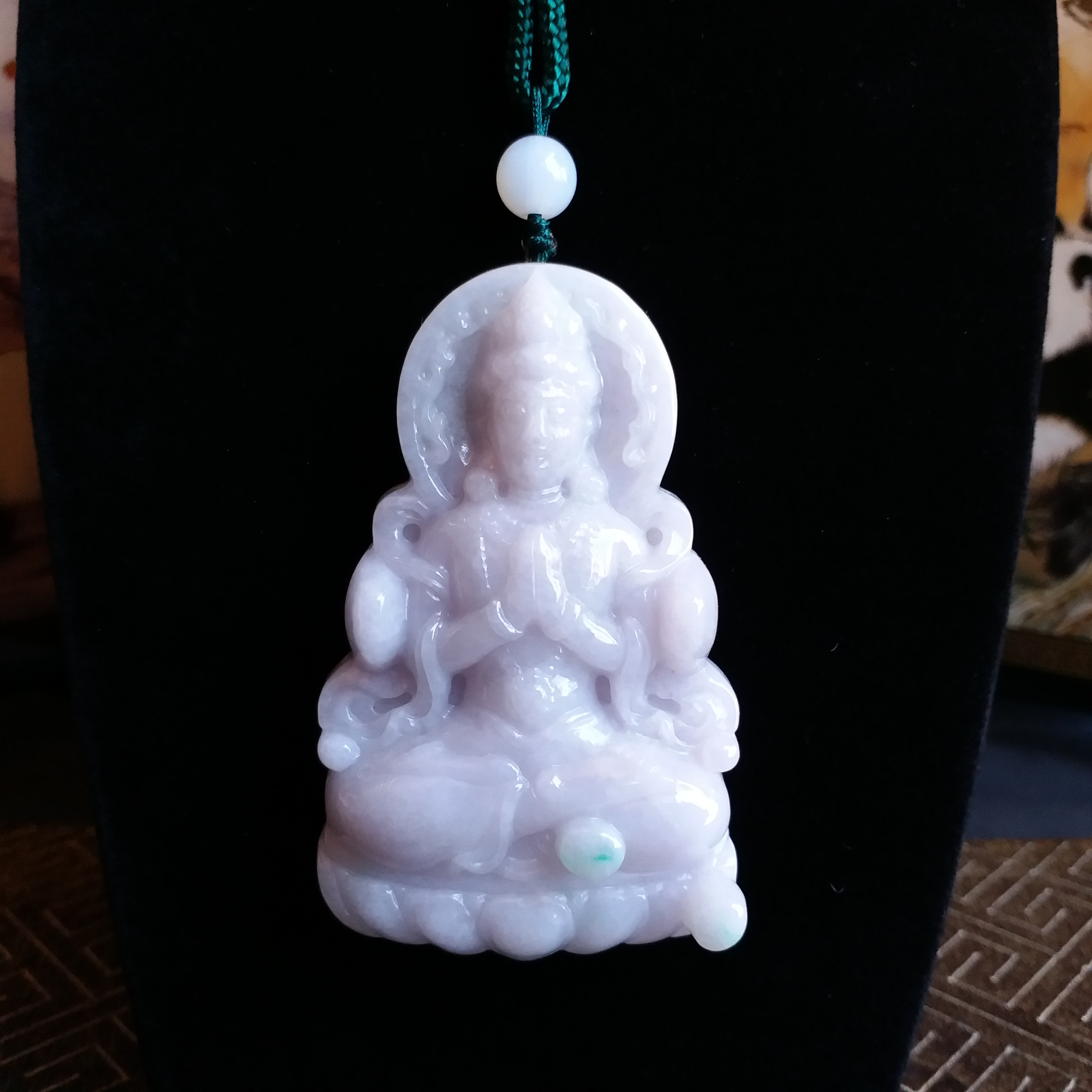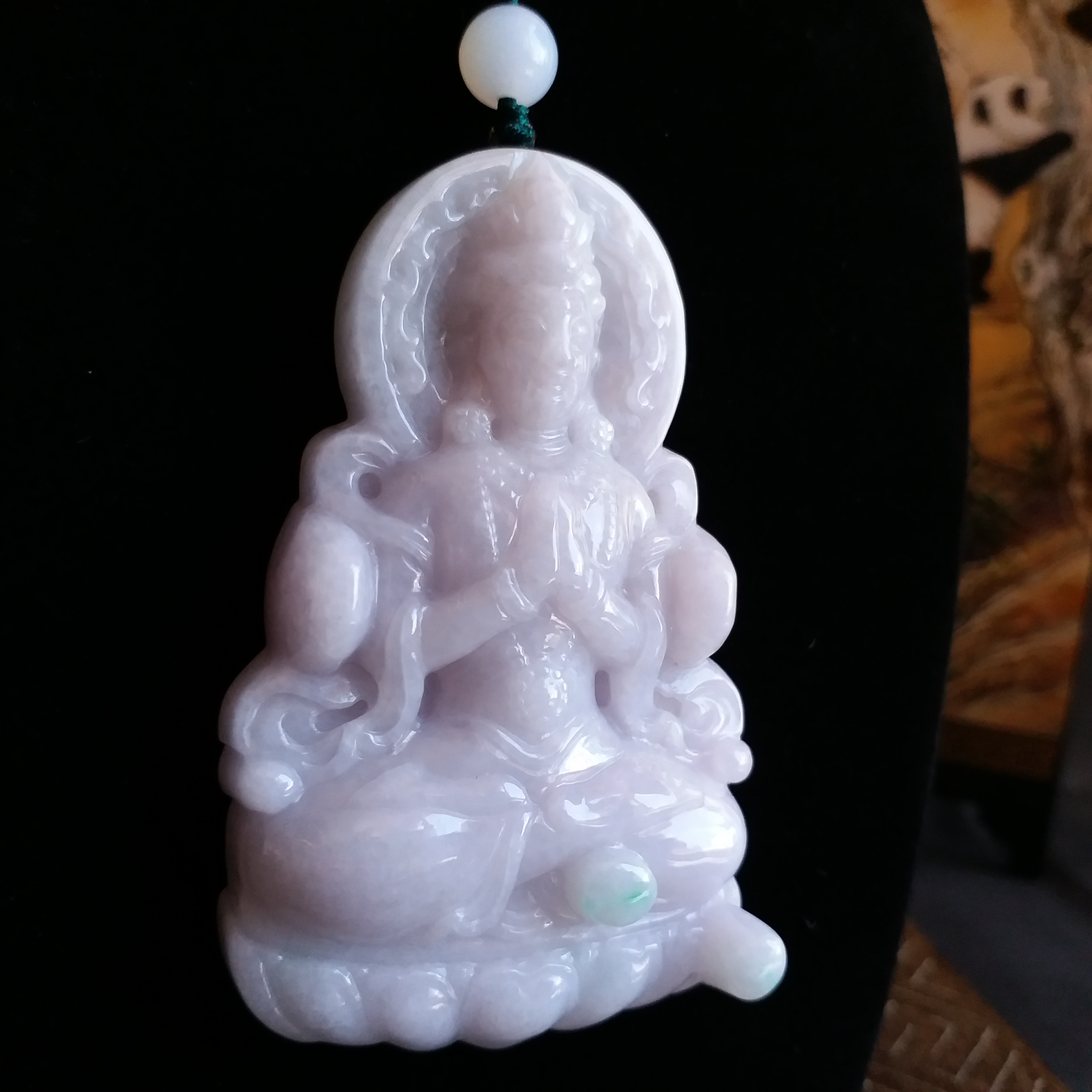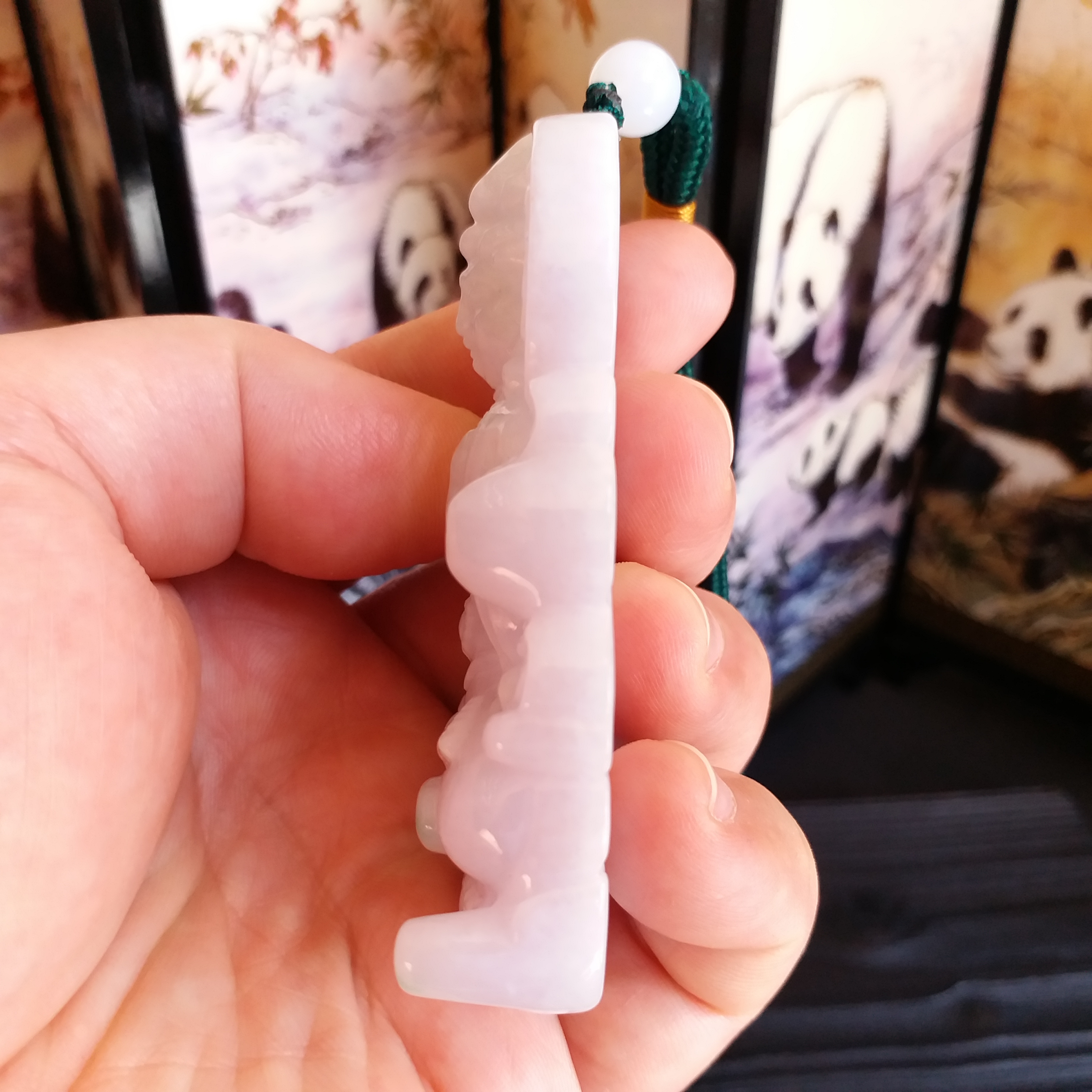 • 冰糯淡紫坐蓮大觀音吊牌, 天然翡翠A玉, 緬甸玉, Jade, Jadeite