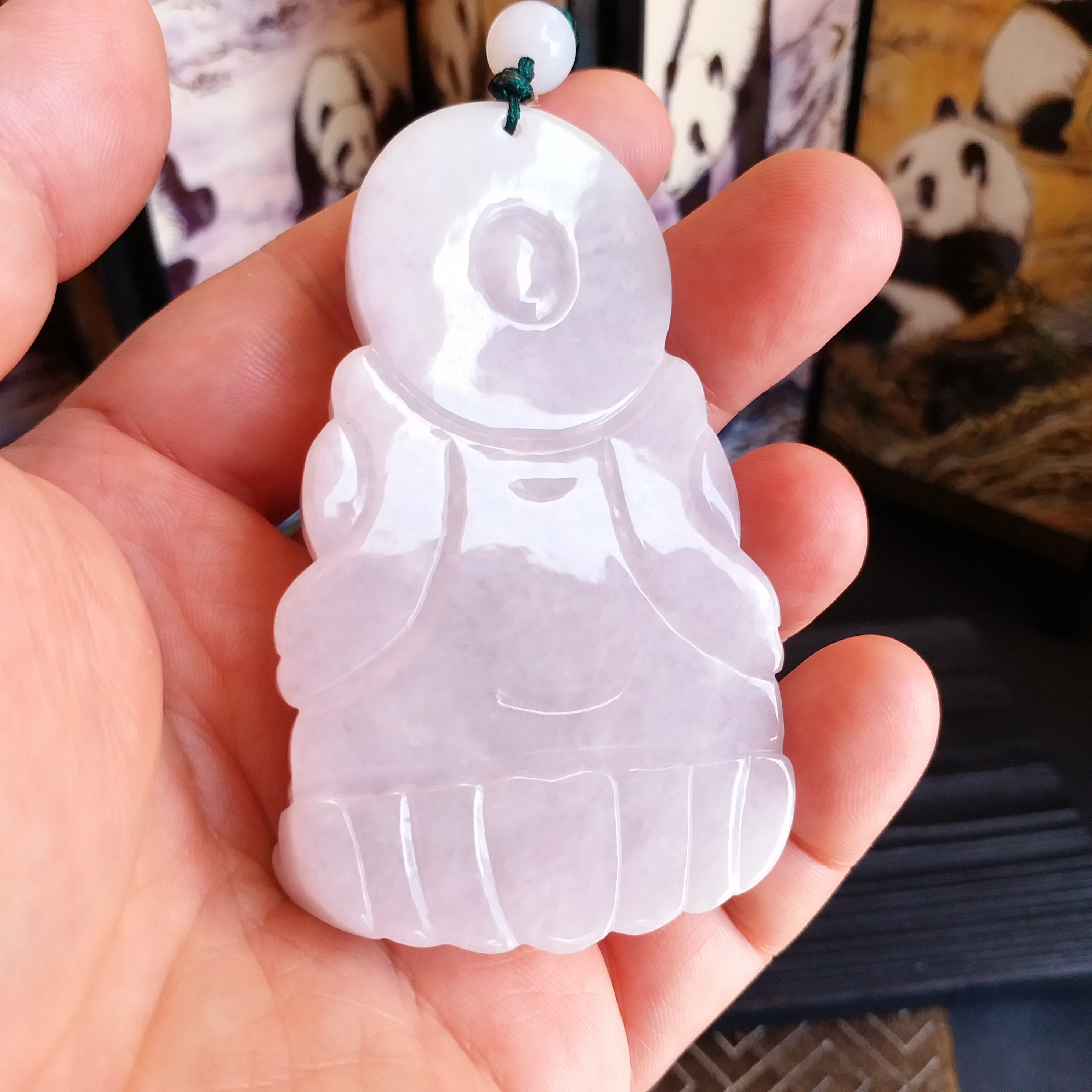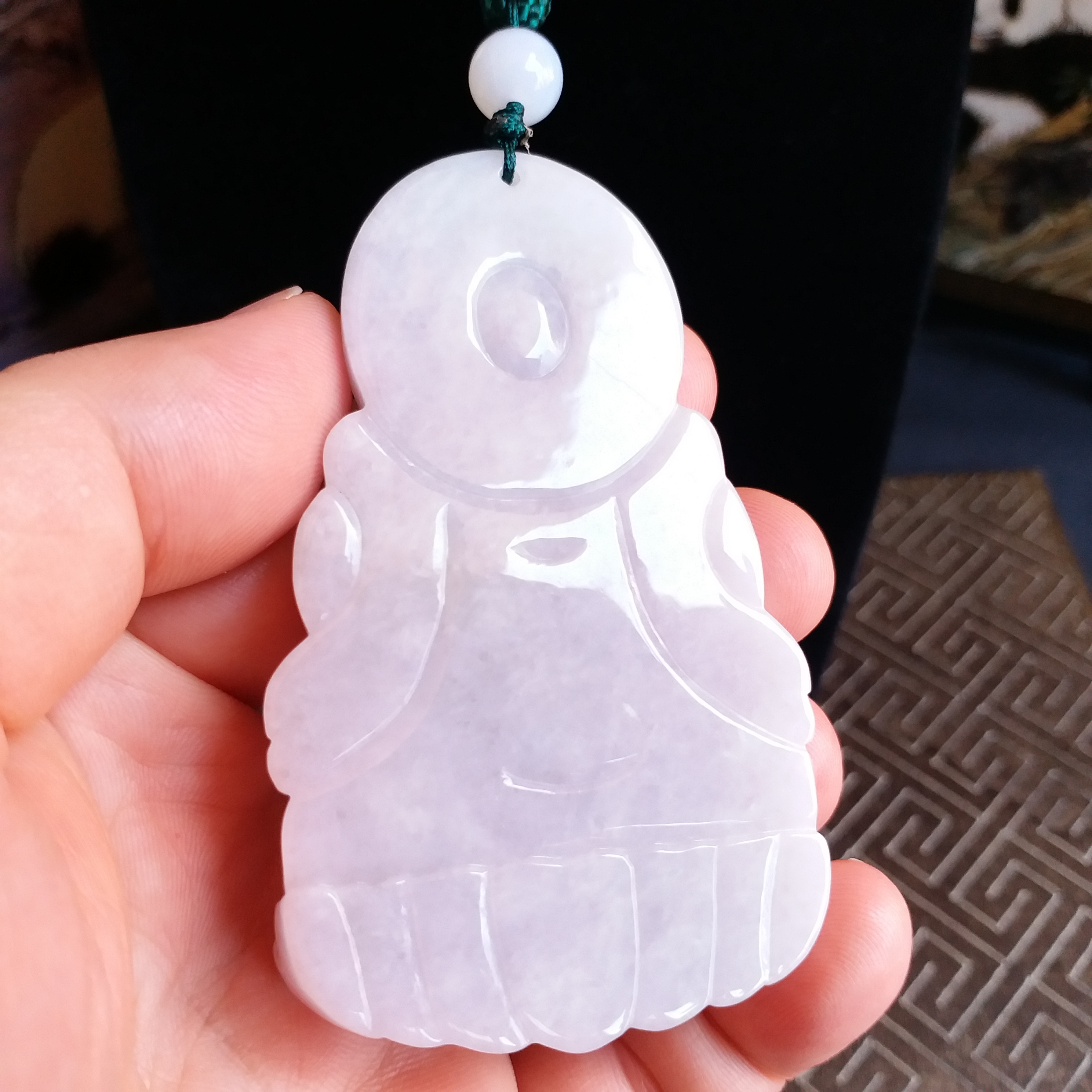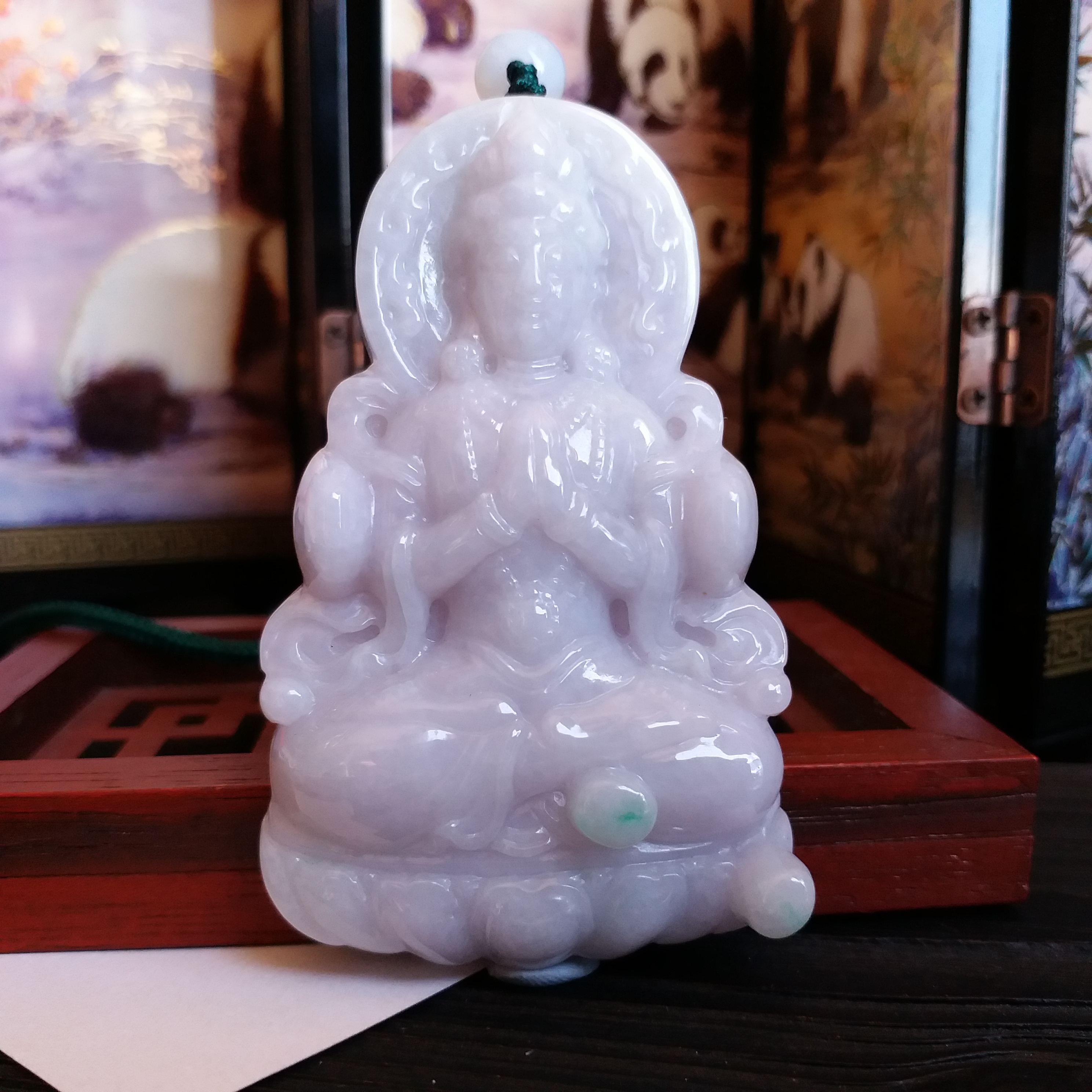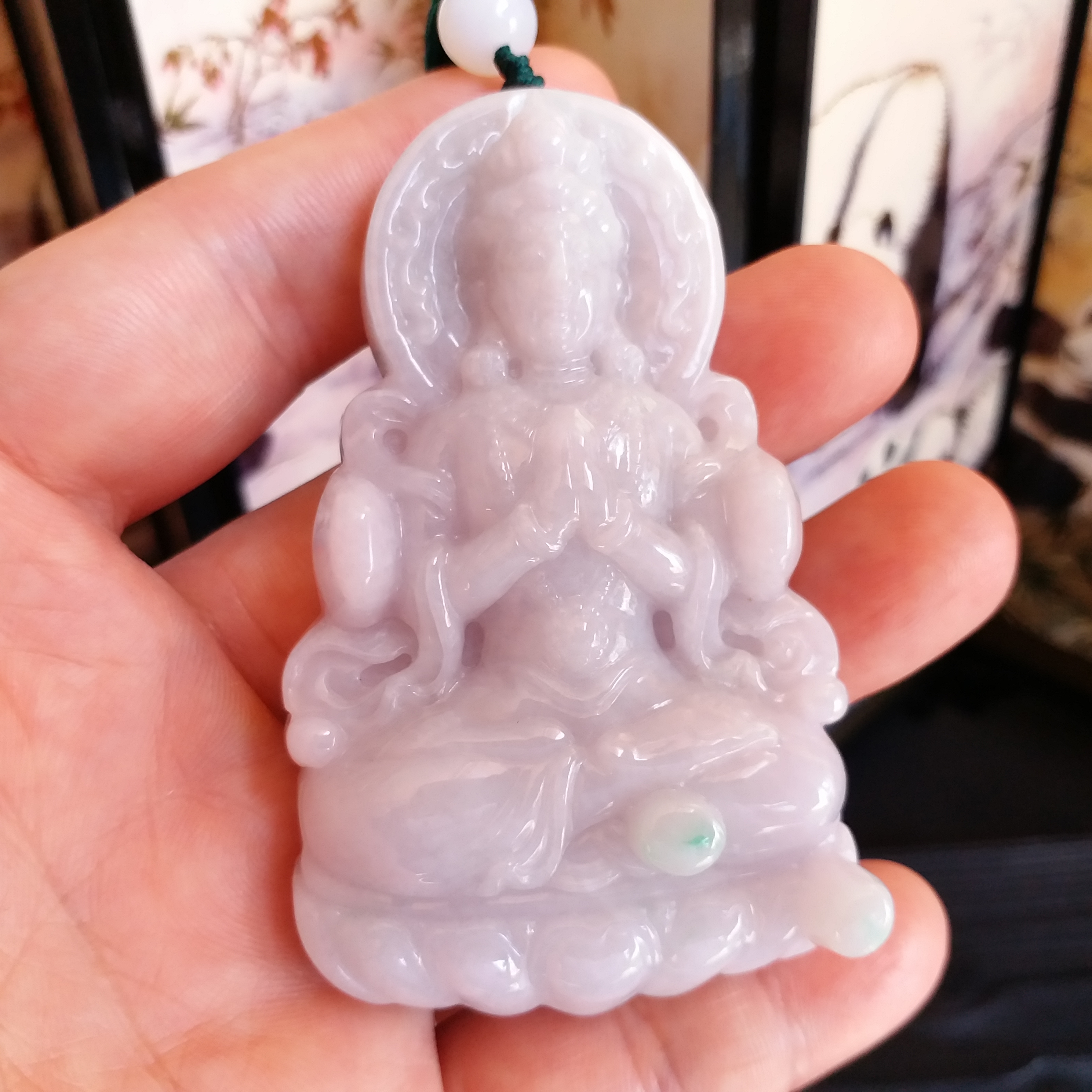 • 冰糯淡紫坐蓮大觀音吊牌, 天然翡翠A玉, 緬甸玉, Jade, Jadeite