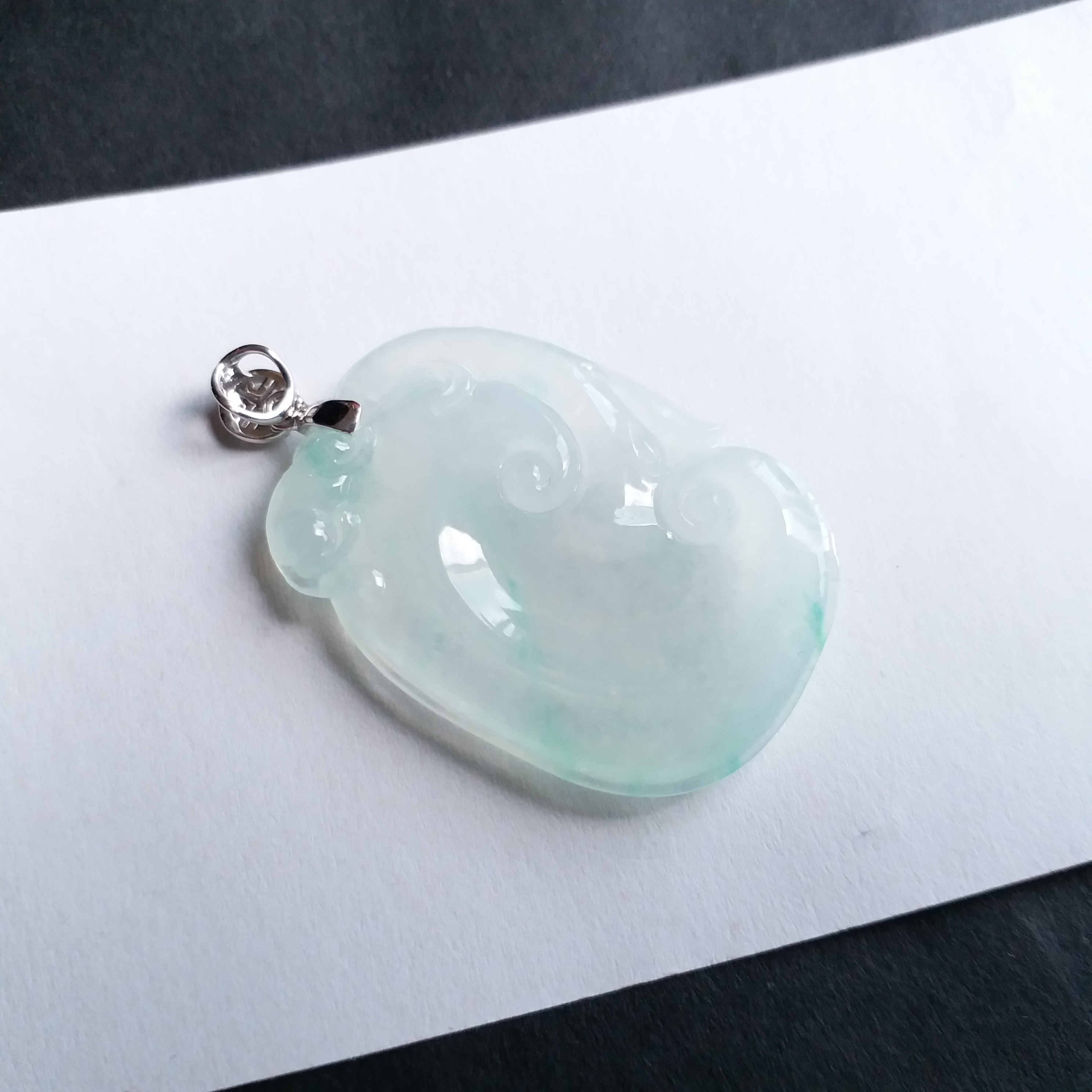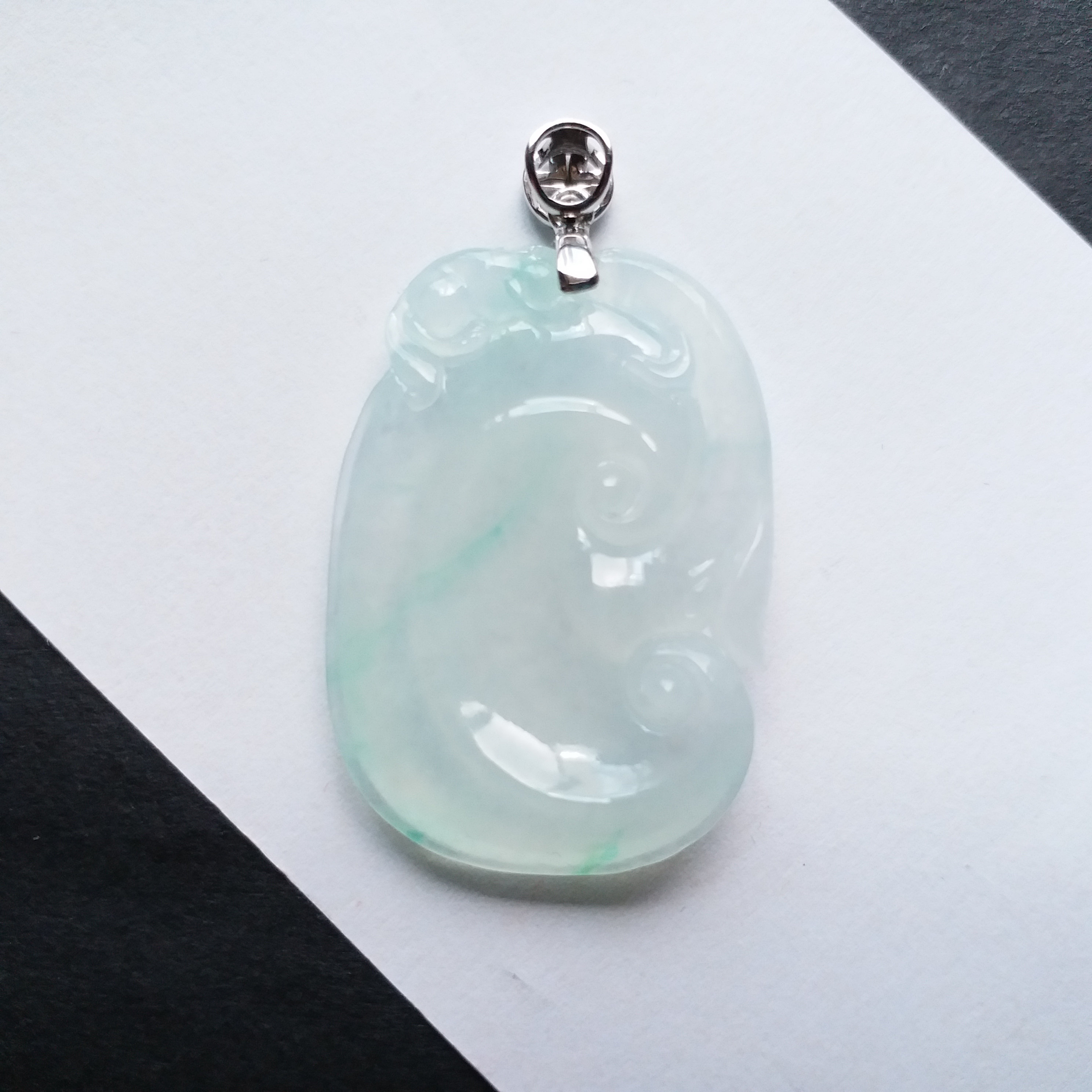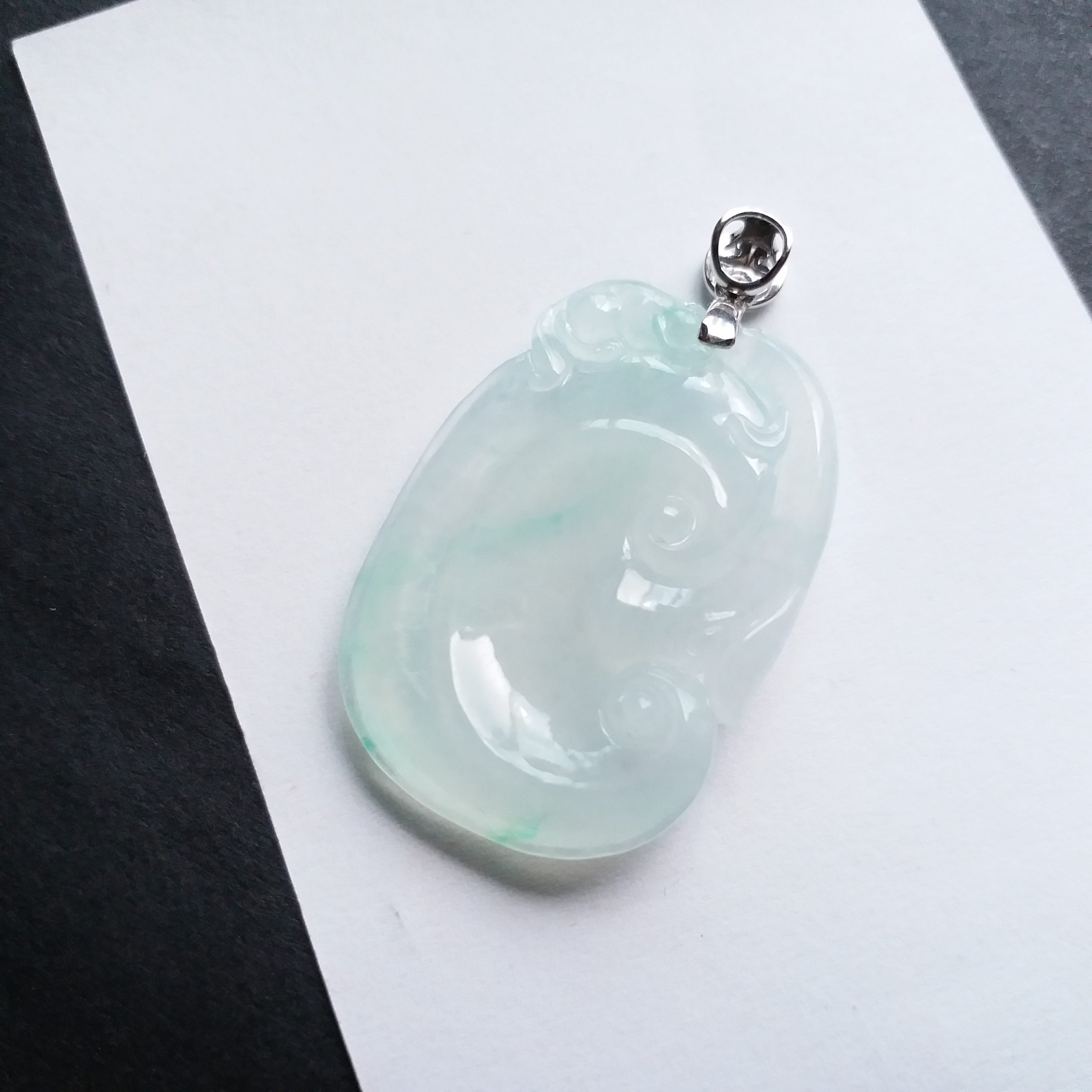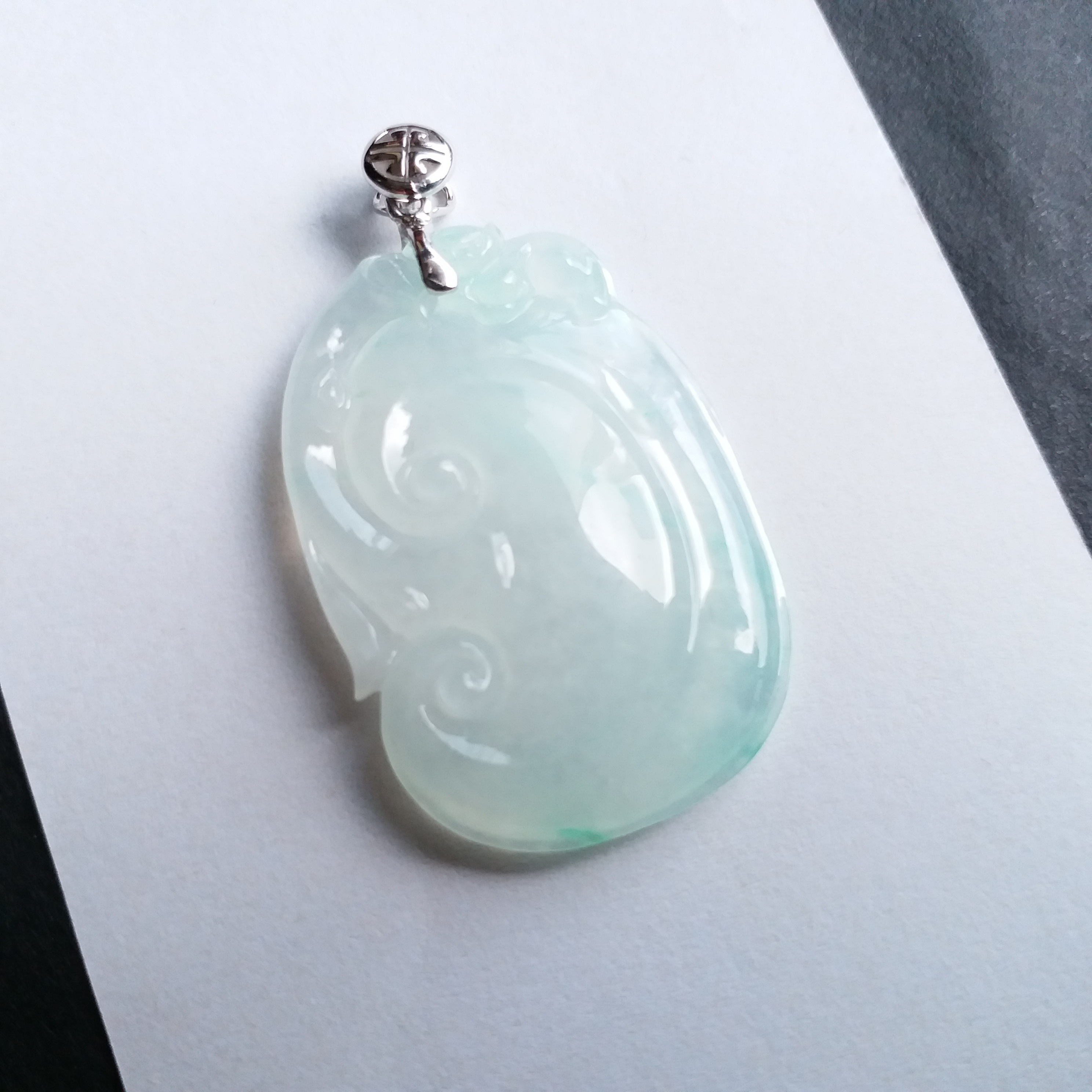 • 冰種飄綠如意+18K金扣吊墜, 天然翡翠A玉, 緬甸玉, Jade, Jadeite